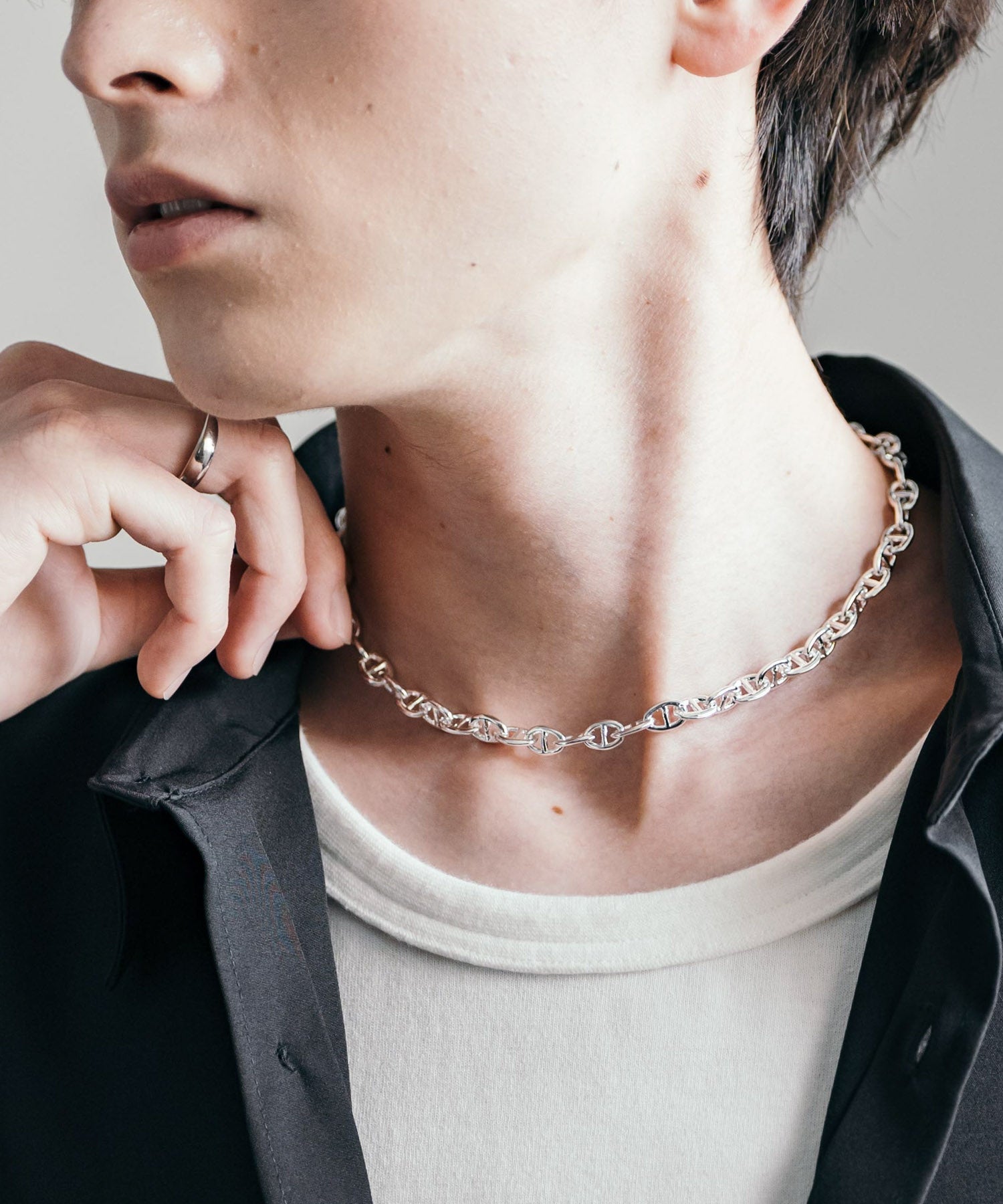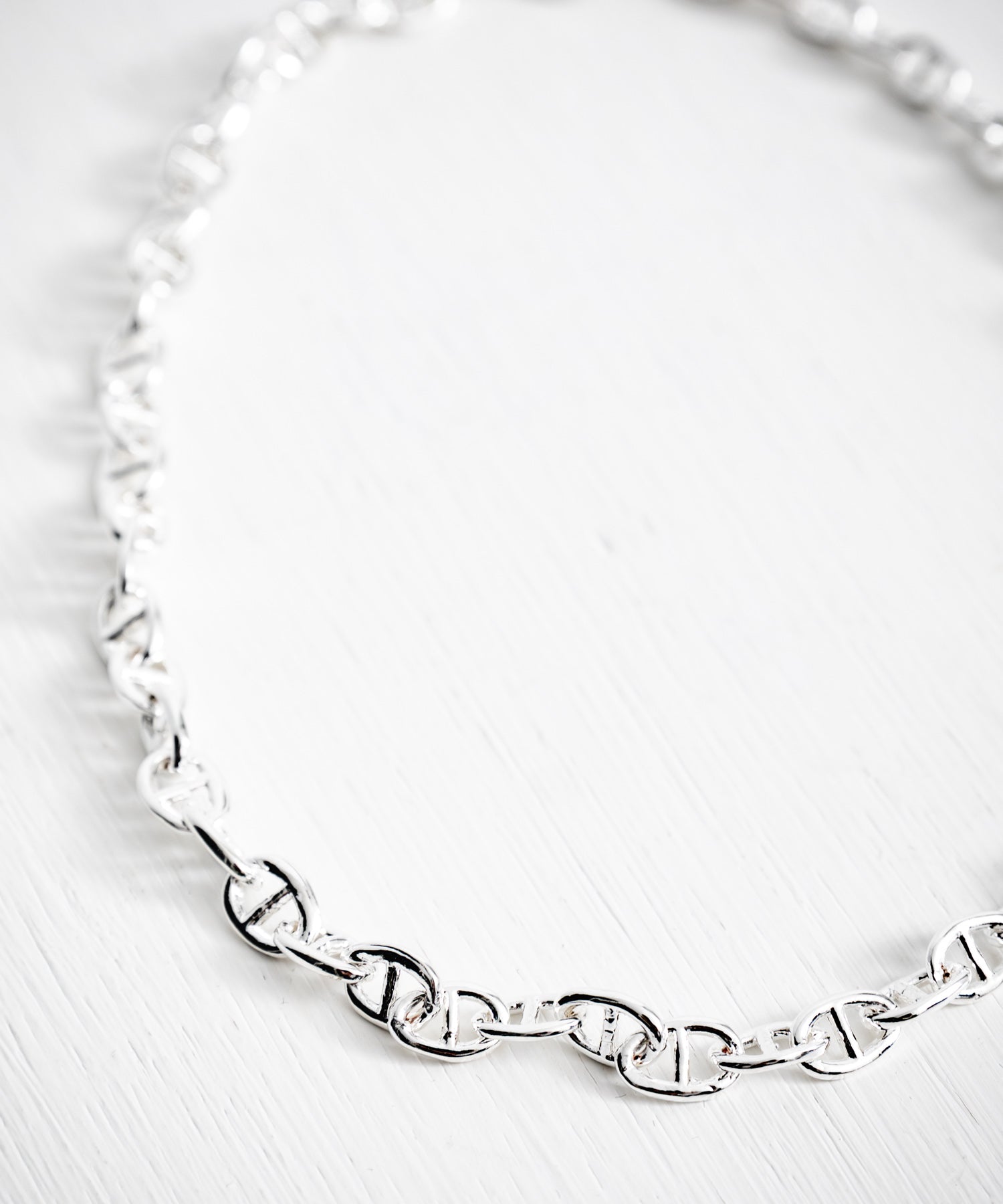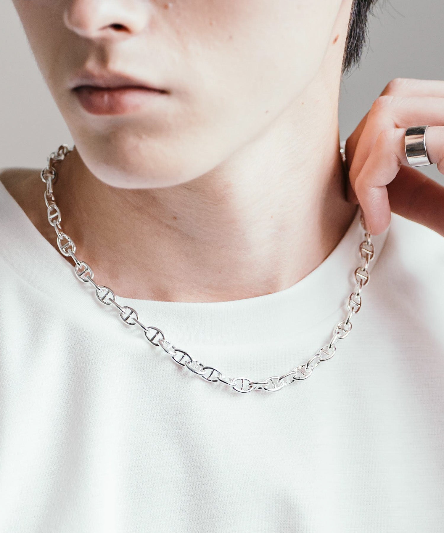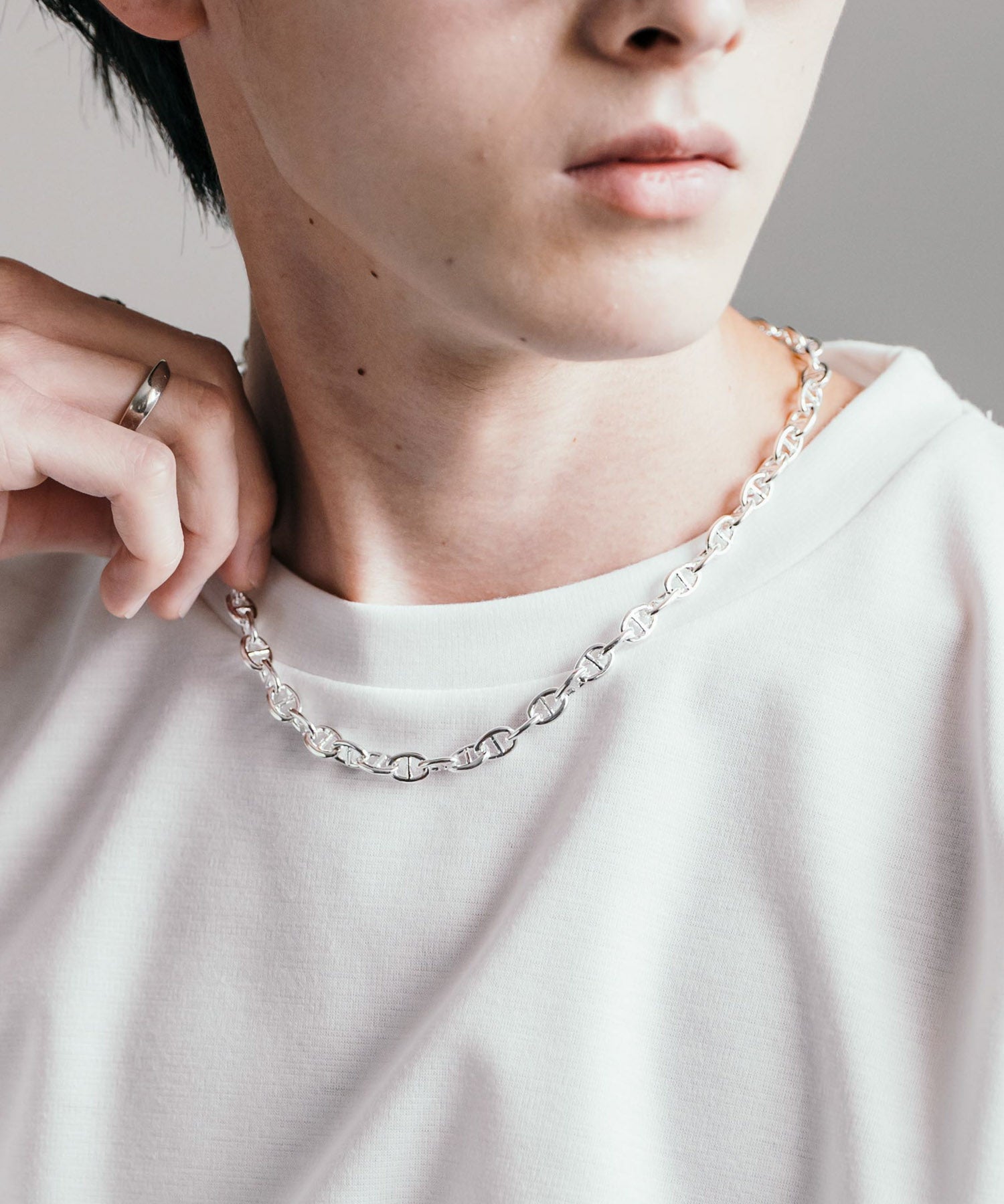 十分な存在感!コーデを引き締めるマリーナチェーンシルバーネックレス。