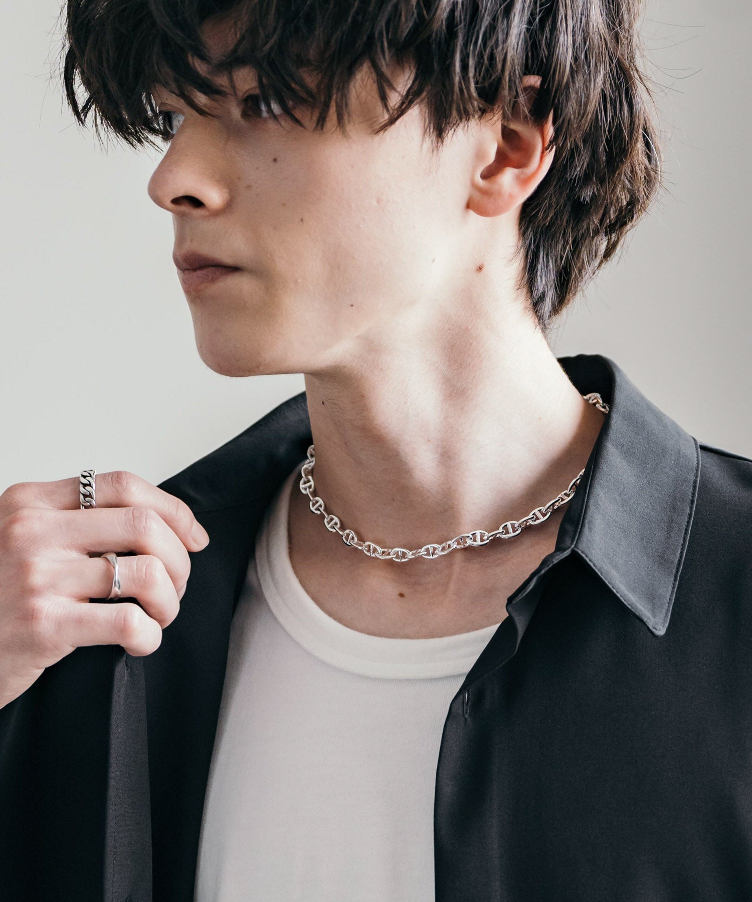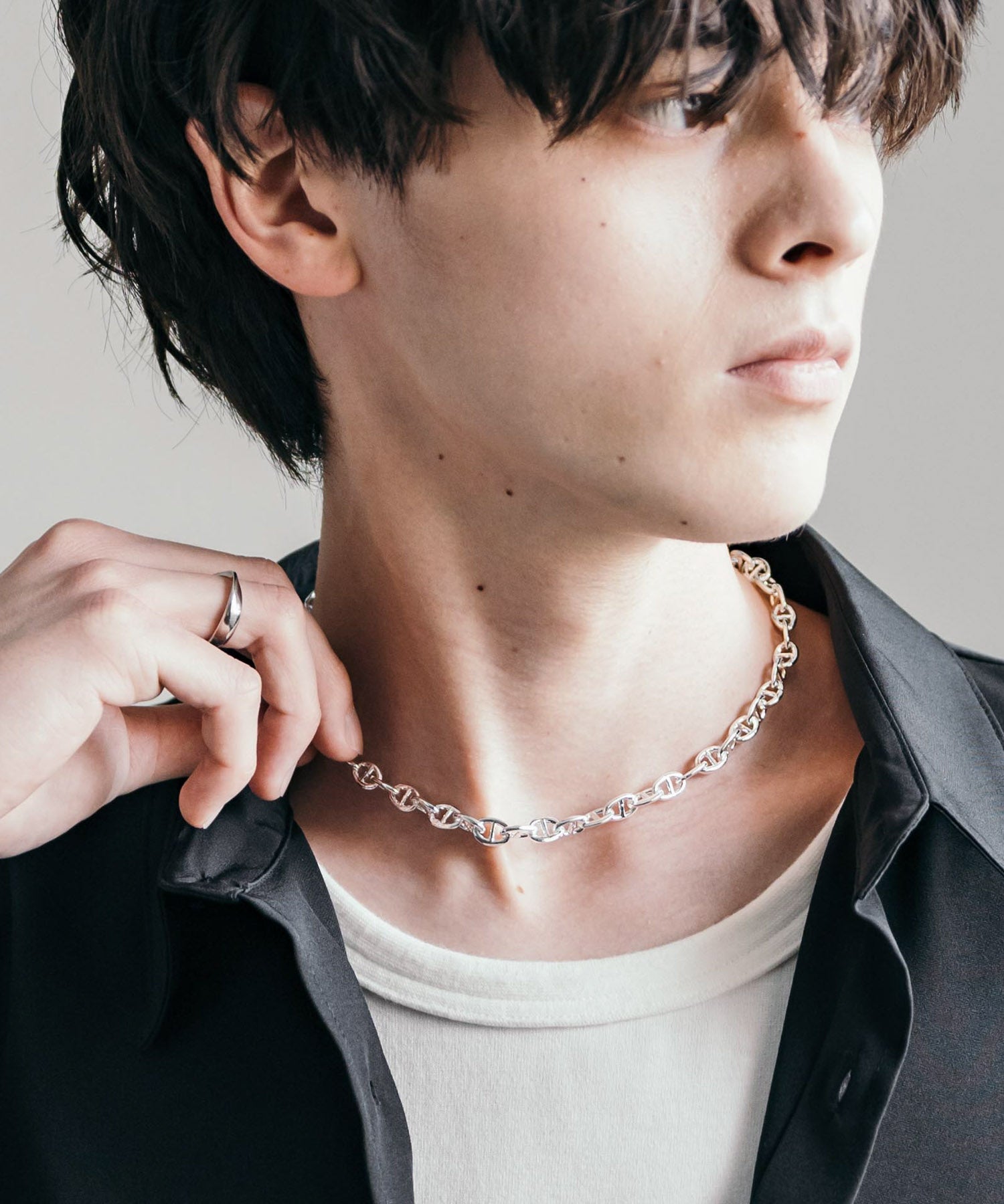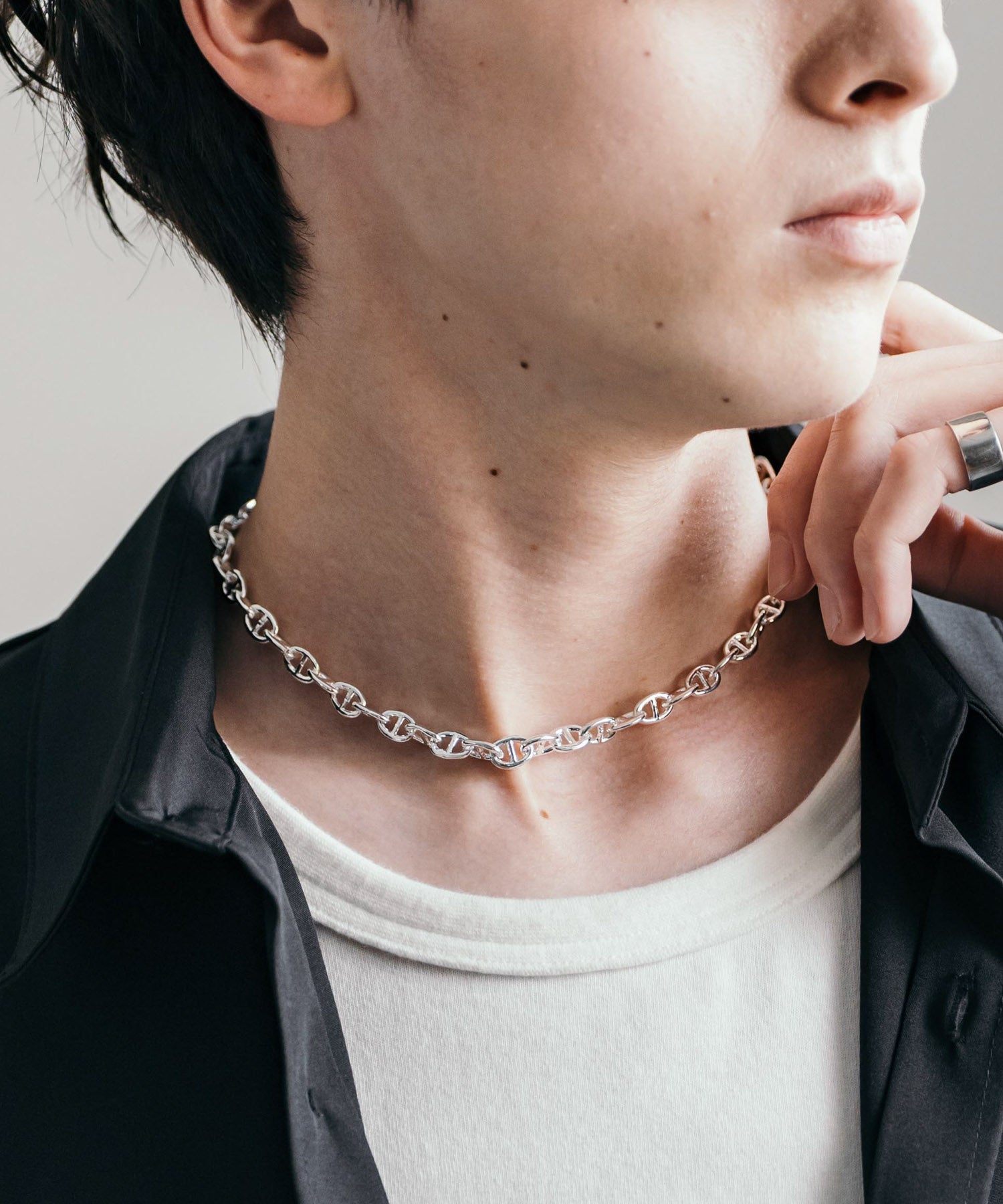 十分な存在感!コーデを引き締めるマリーナチェーンシルバーネックレス。