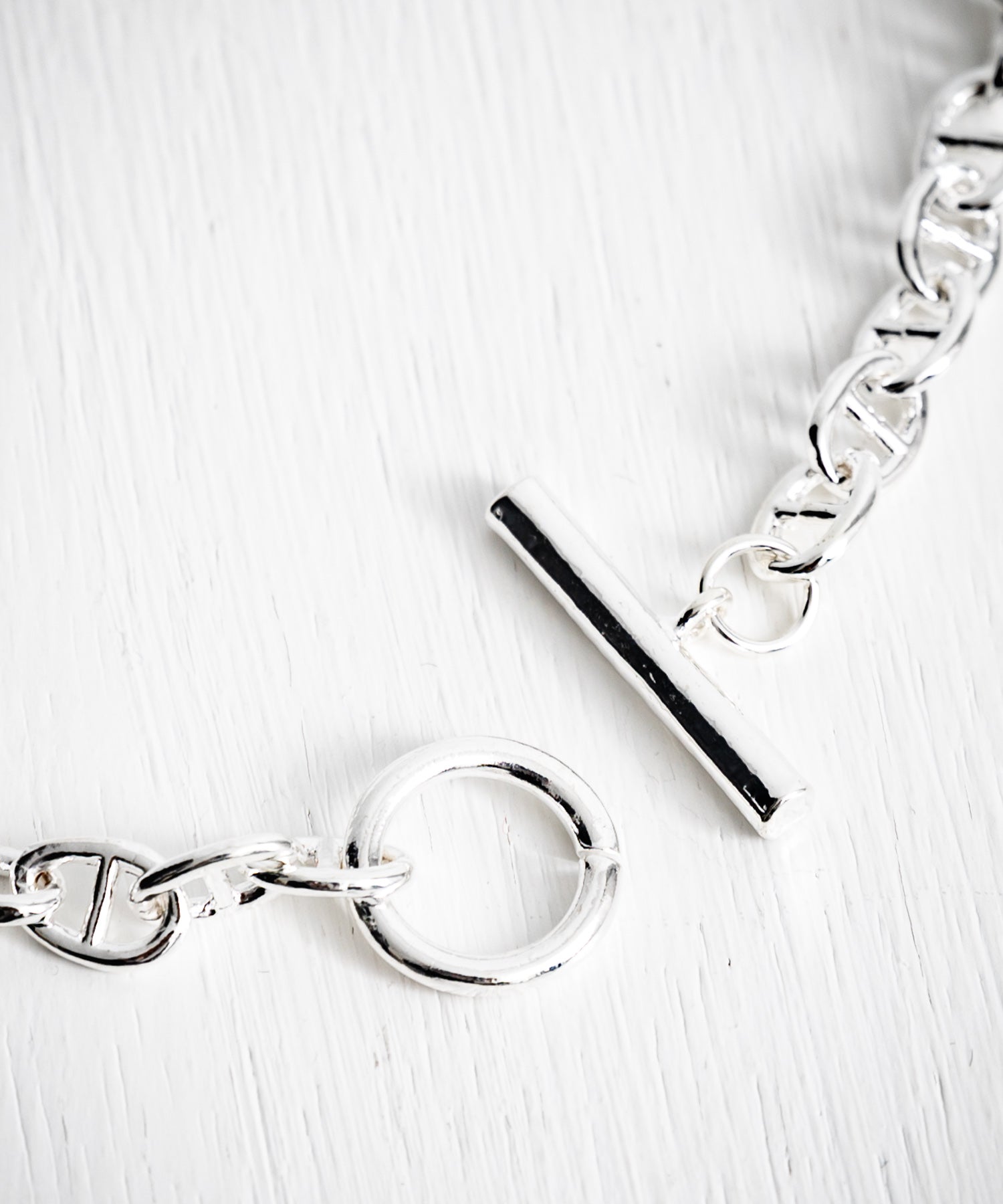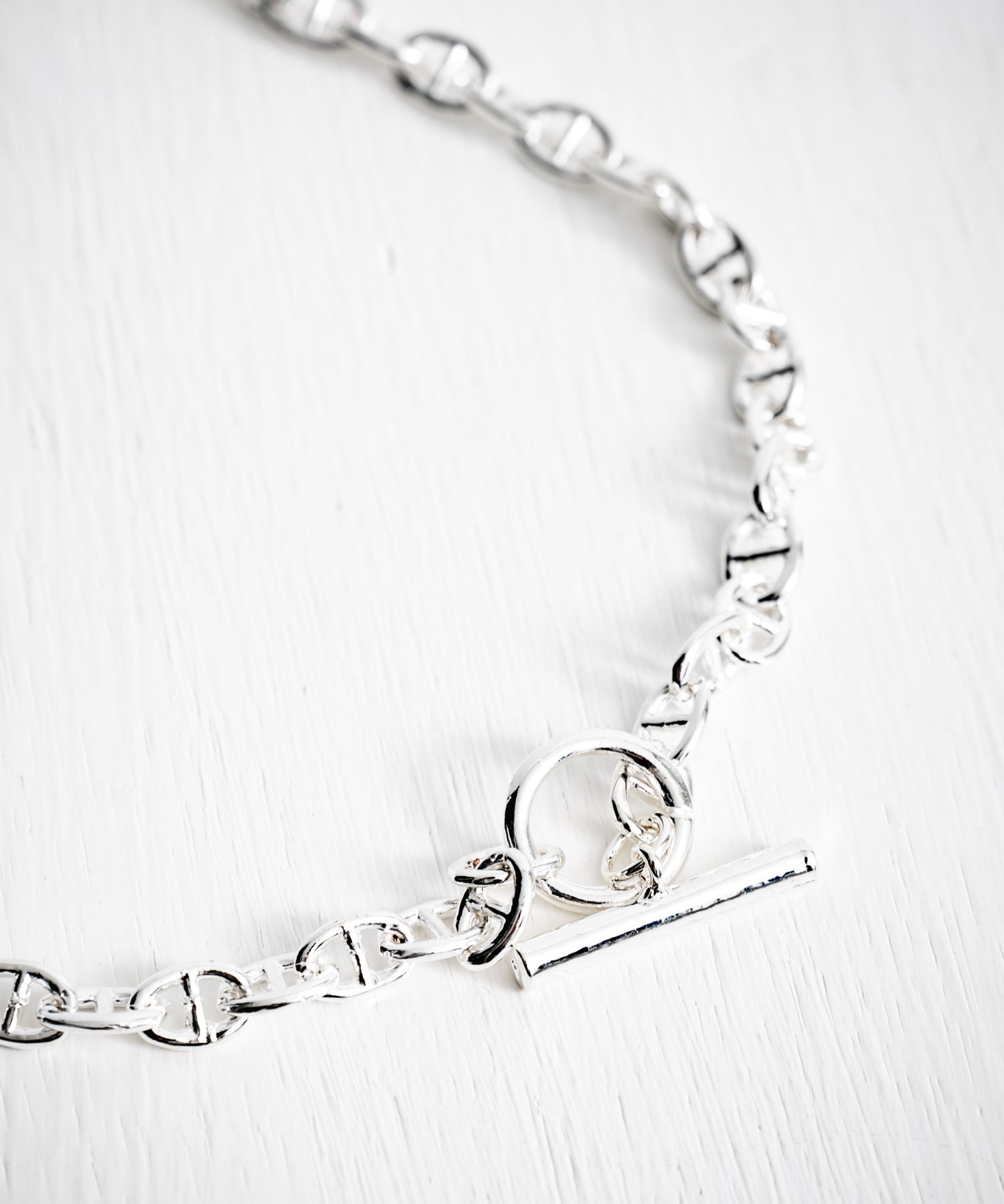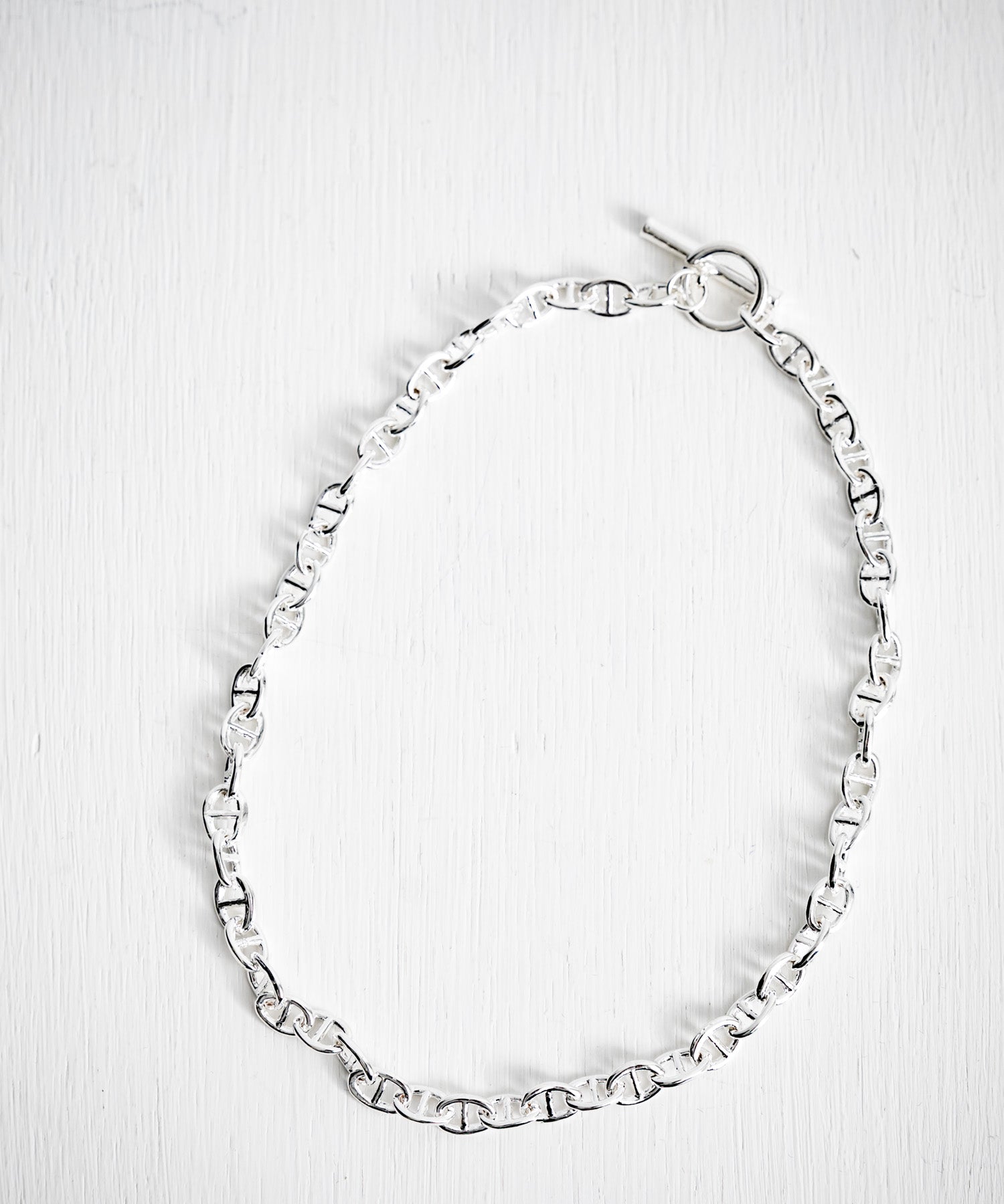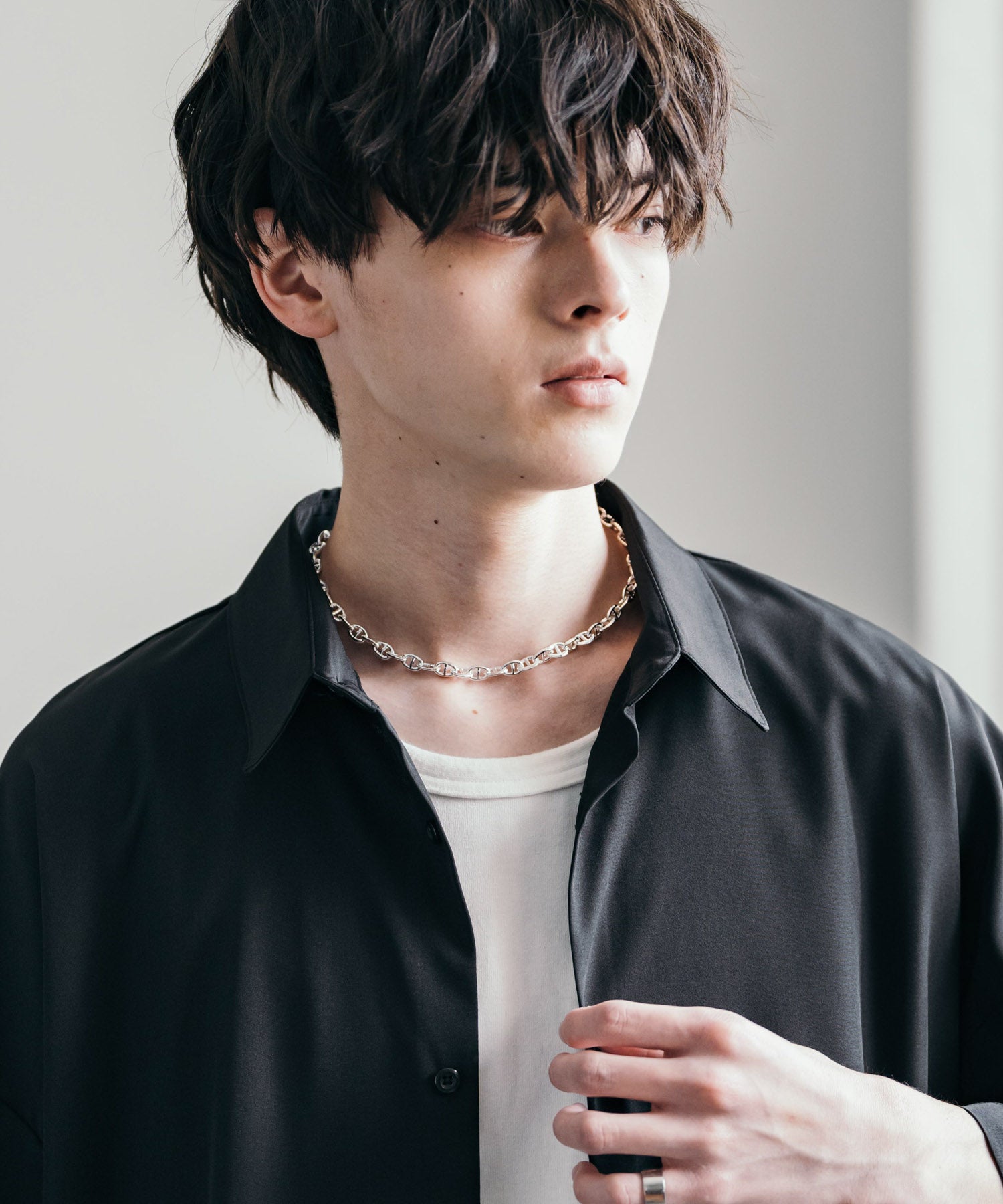 十分な存在感!コーデを引き締めるマリーナチェーンシルバーネックレス。
