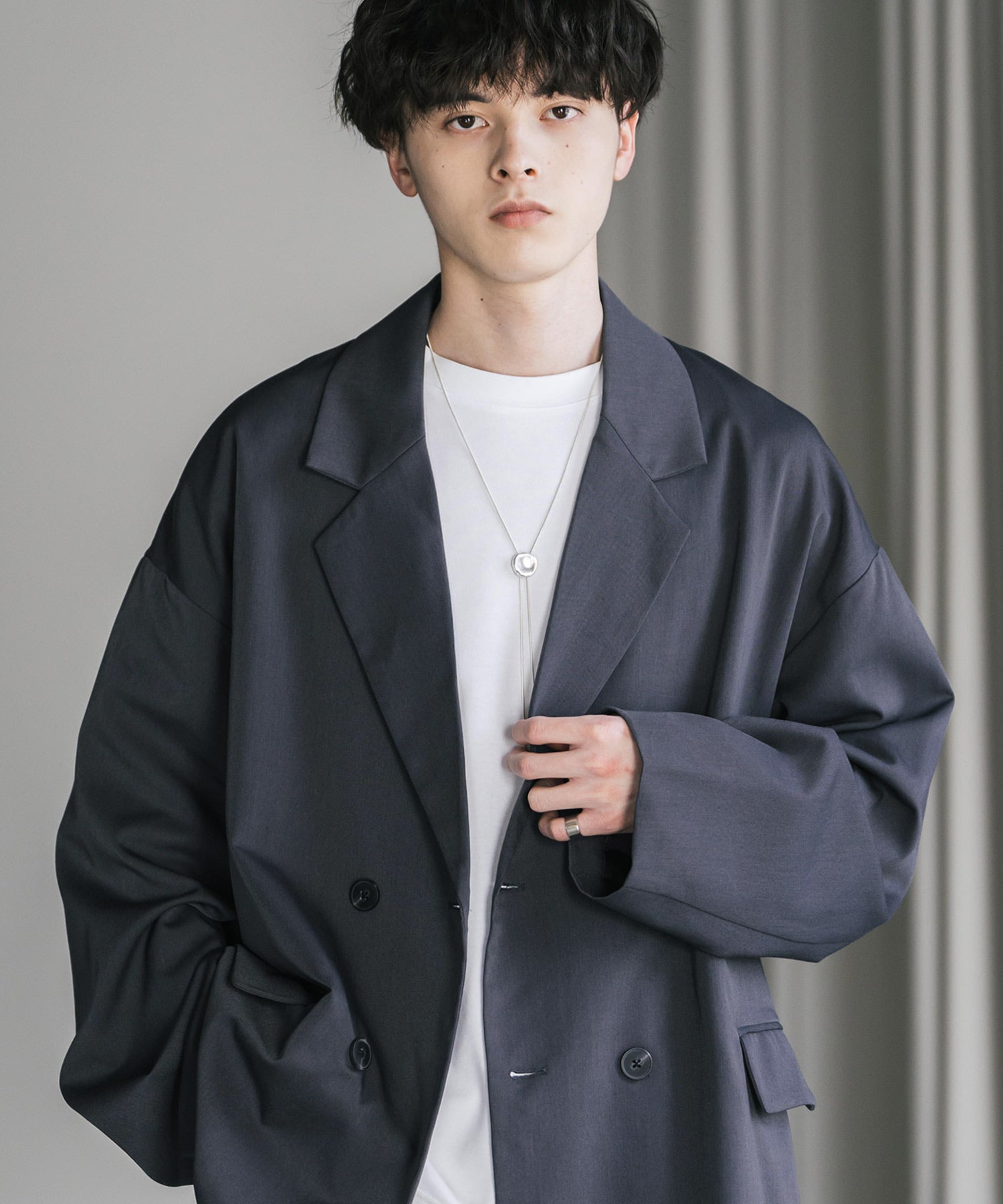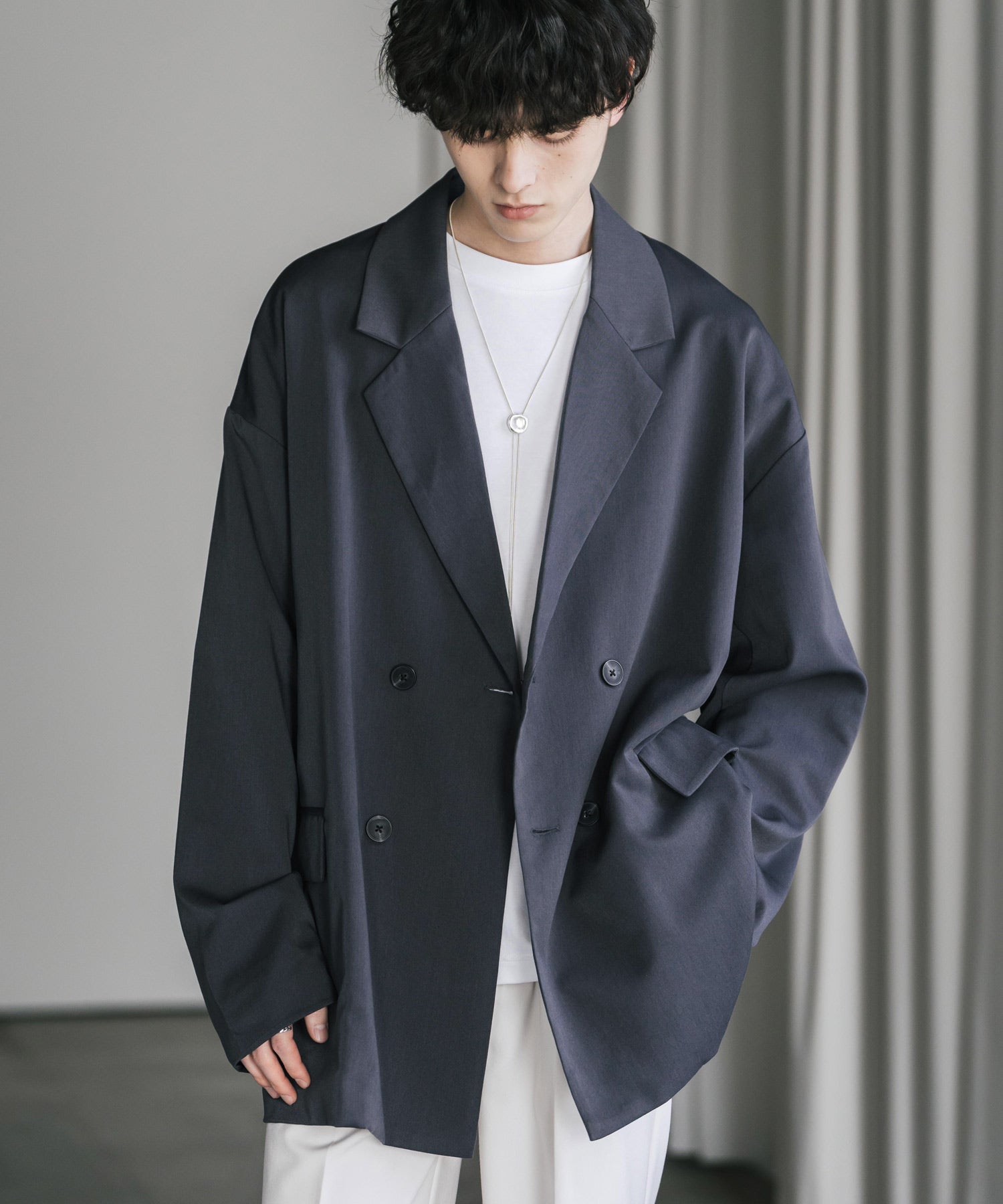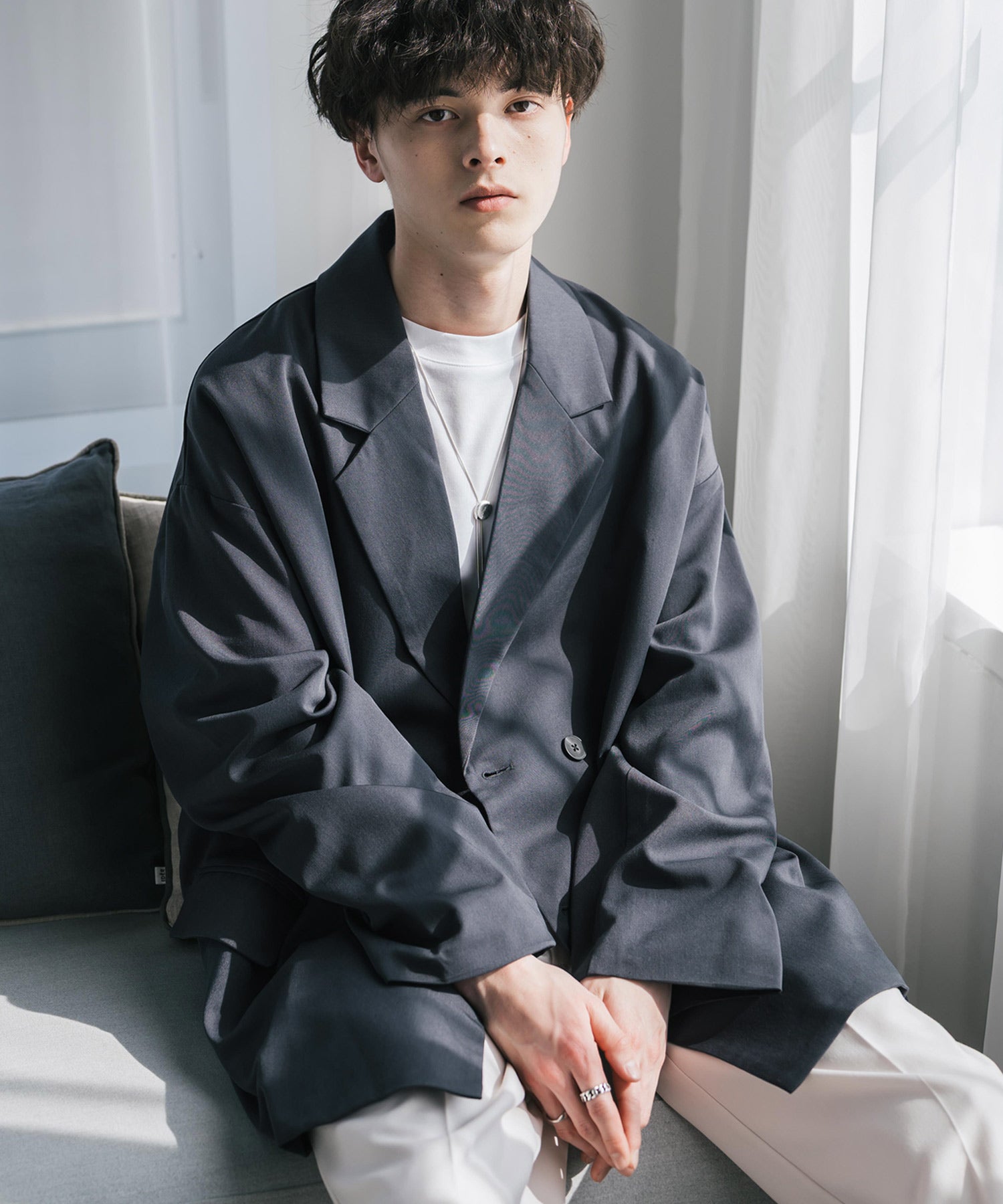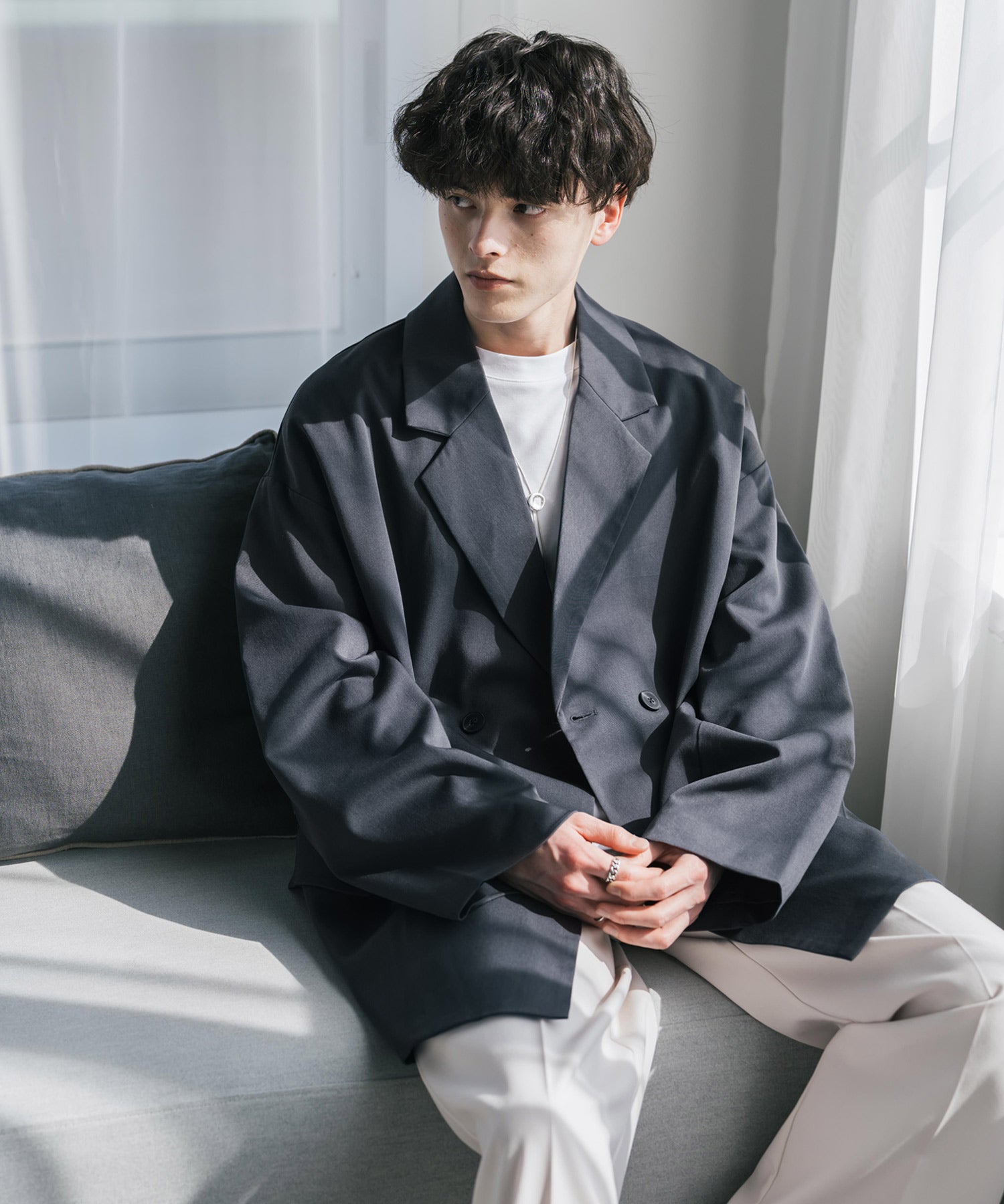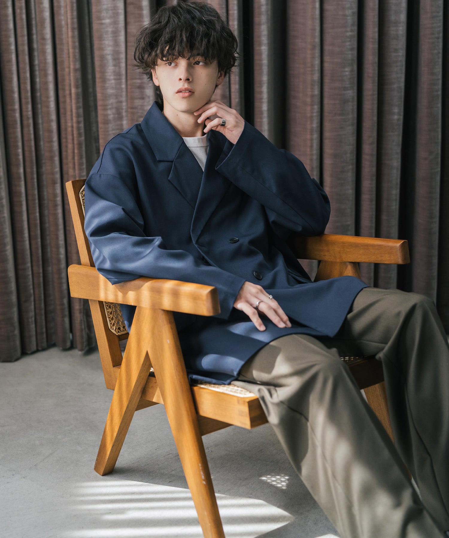 ざっくりしたサイジングに、ダブルブレスト仕様を掛け合わせたデザイン。
