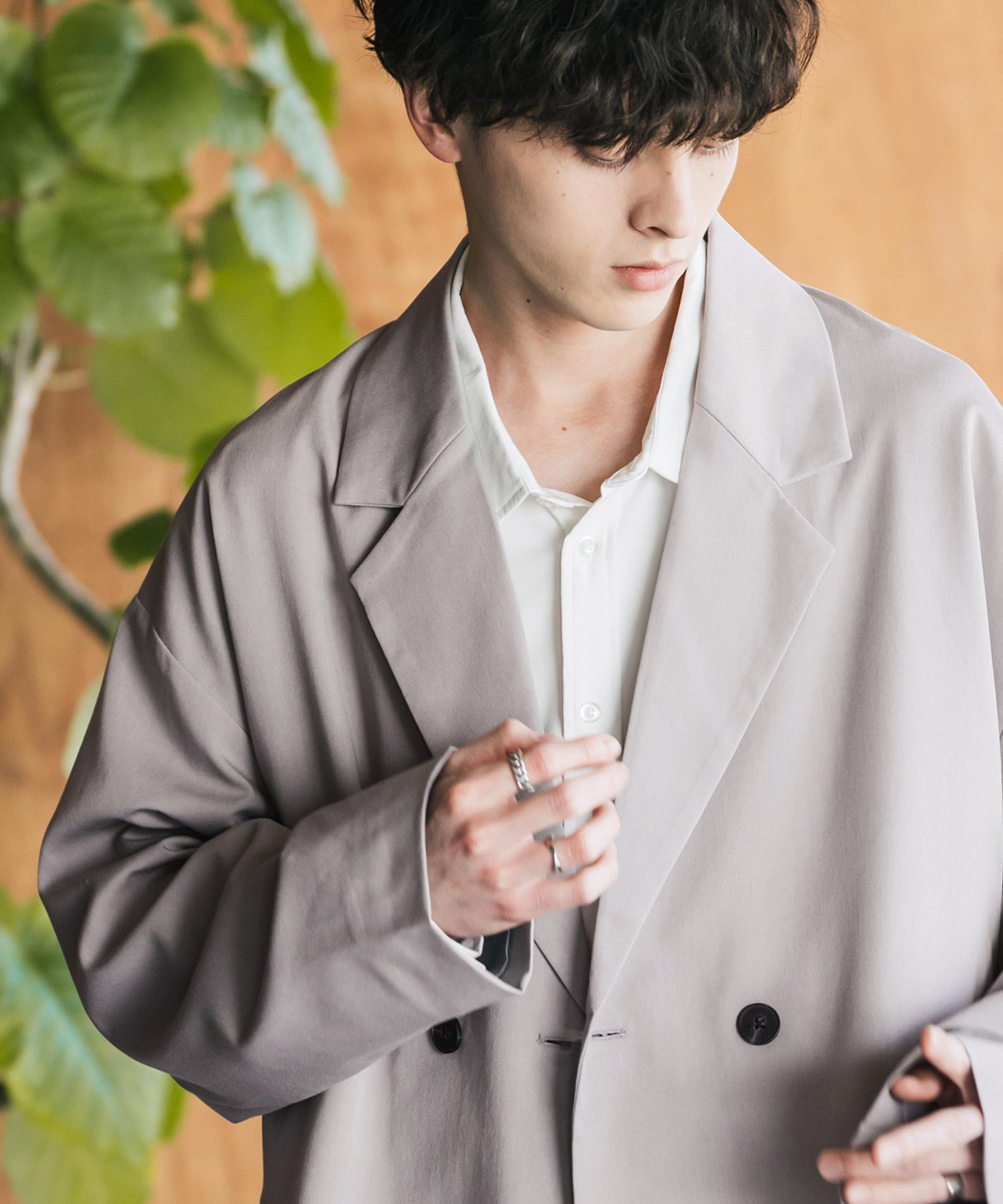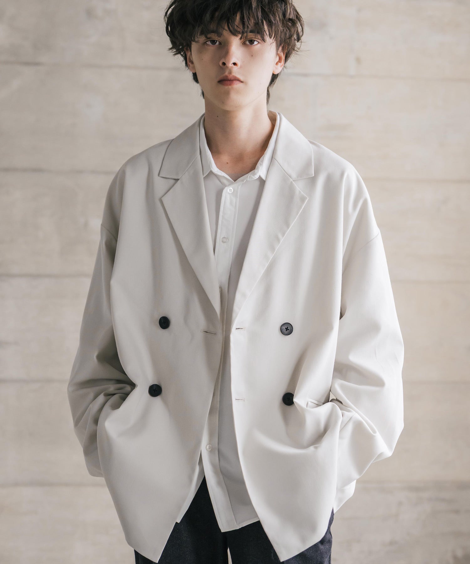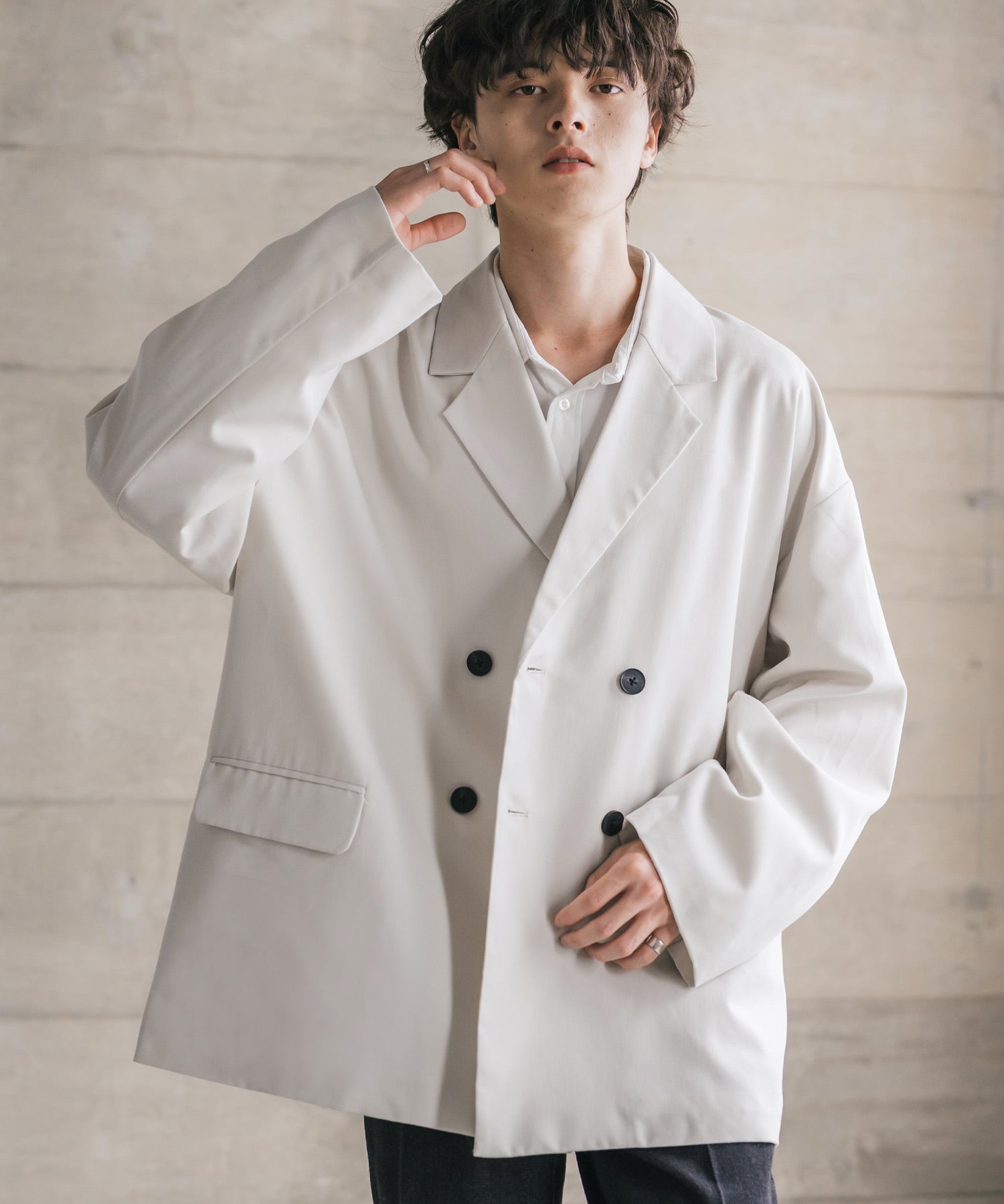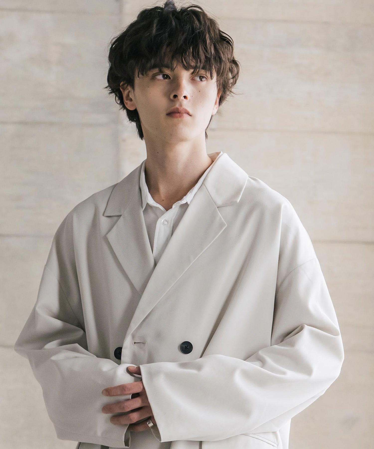 ざっくりしたサイジングに、ダブルブレスト仕様を掛け合わせたデザイン。