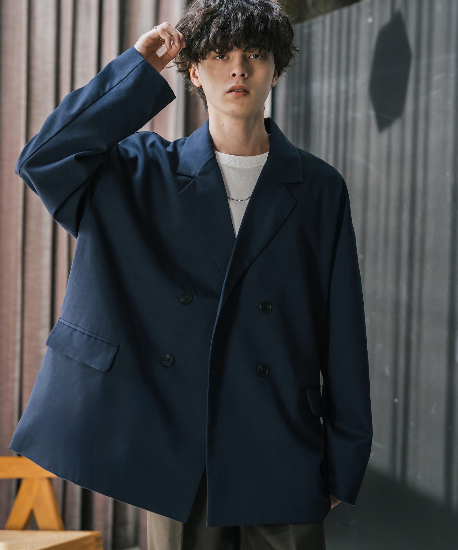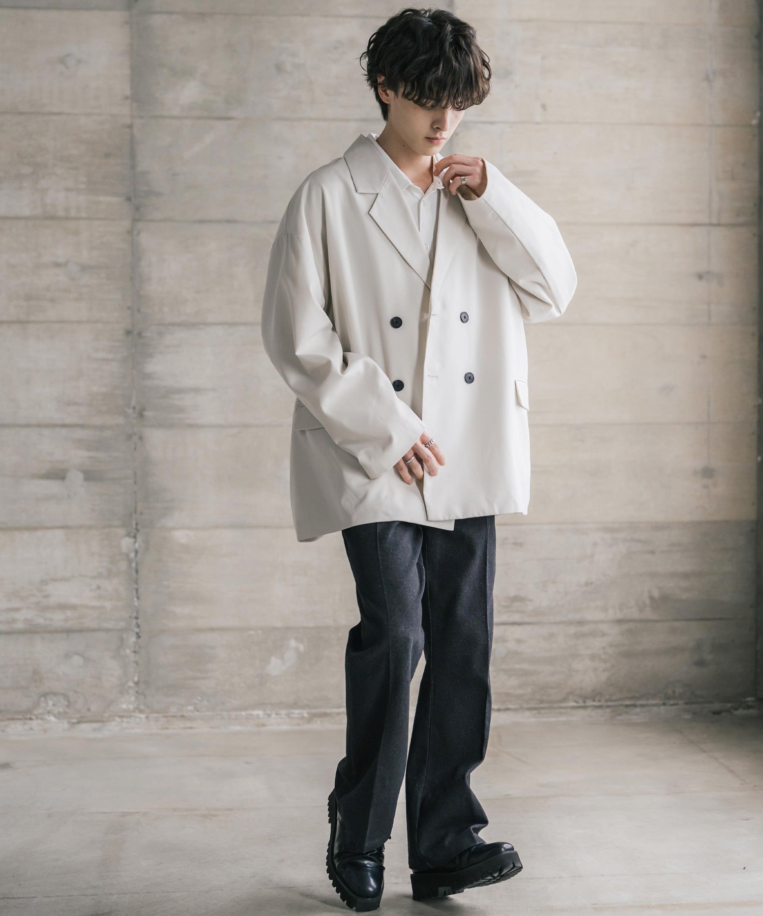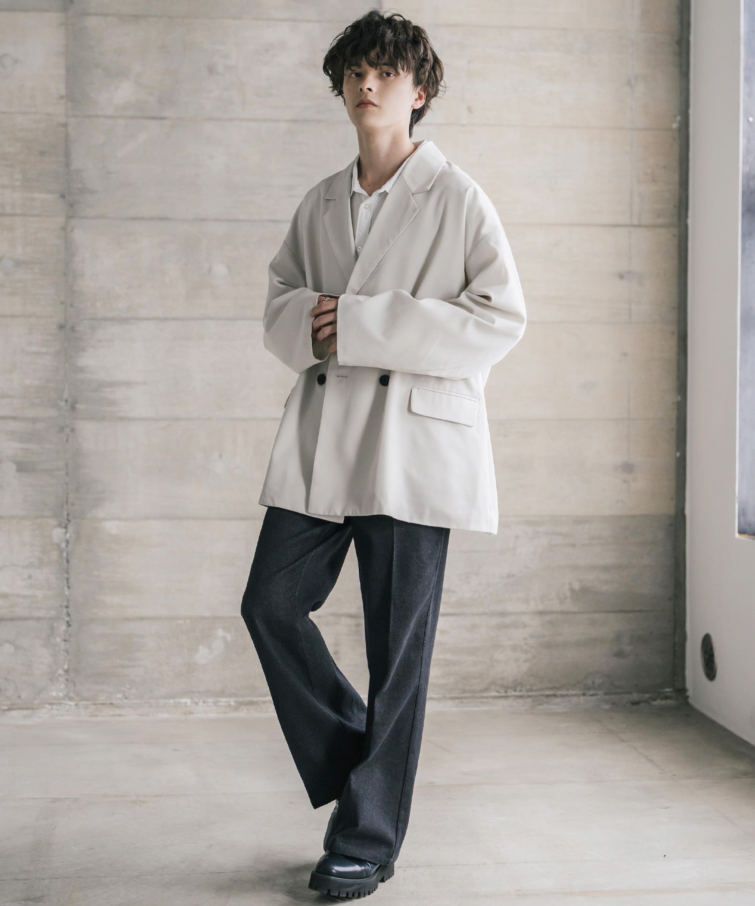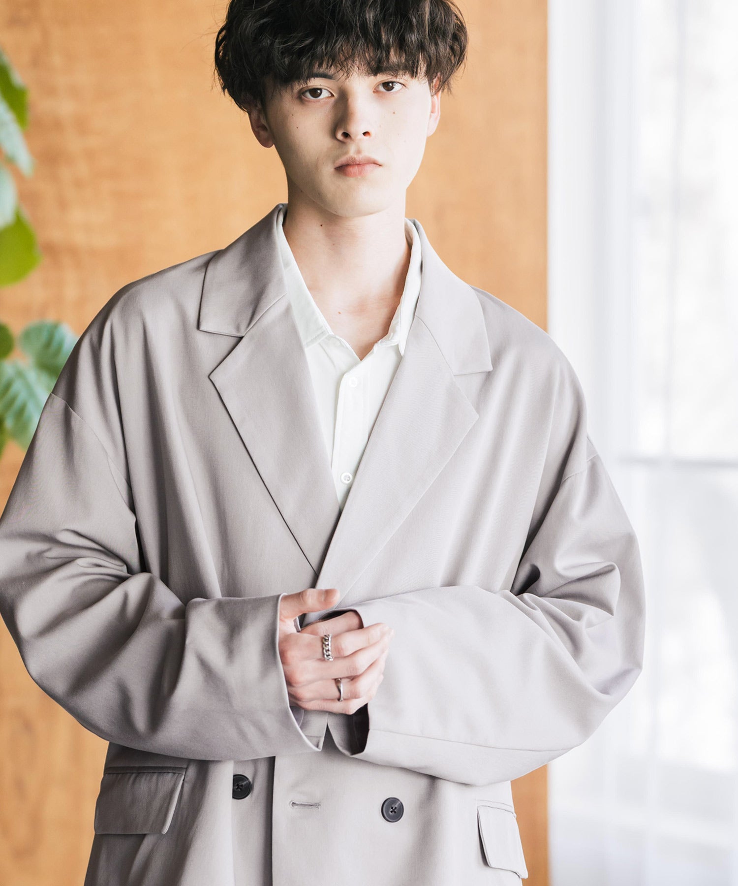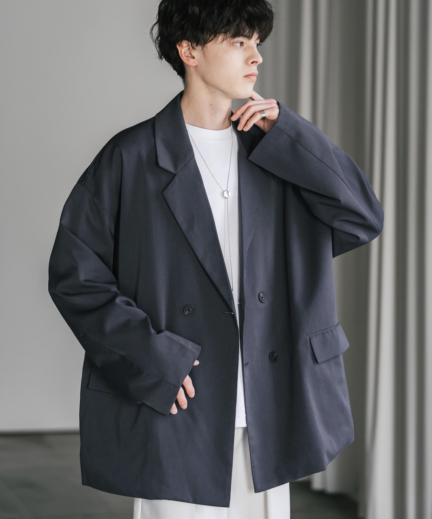 ざっくりしたサイジングに、ダブルブレスト仕様を掛け合わせたデザイン。