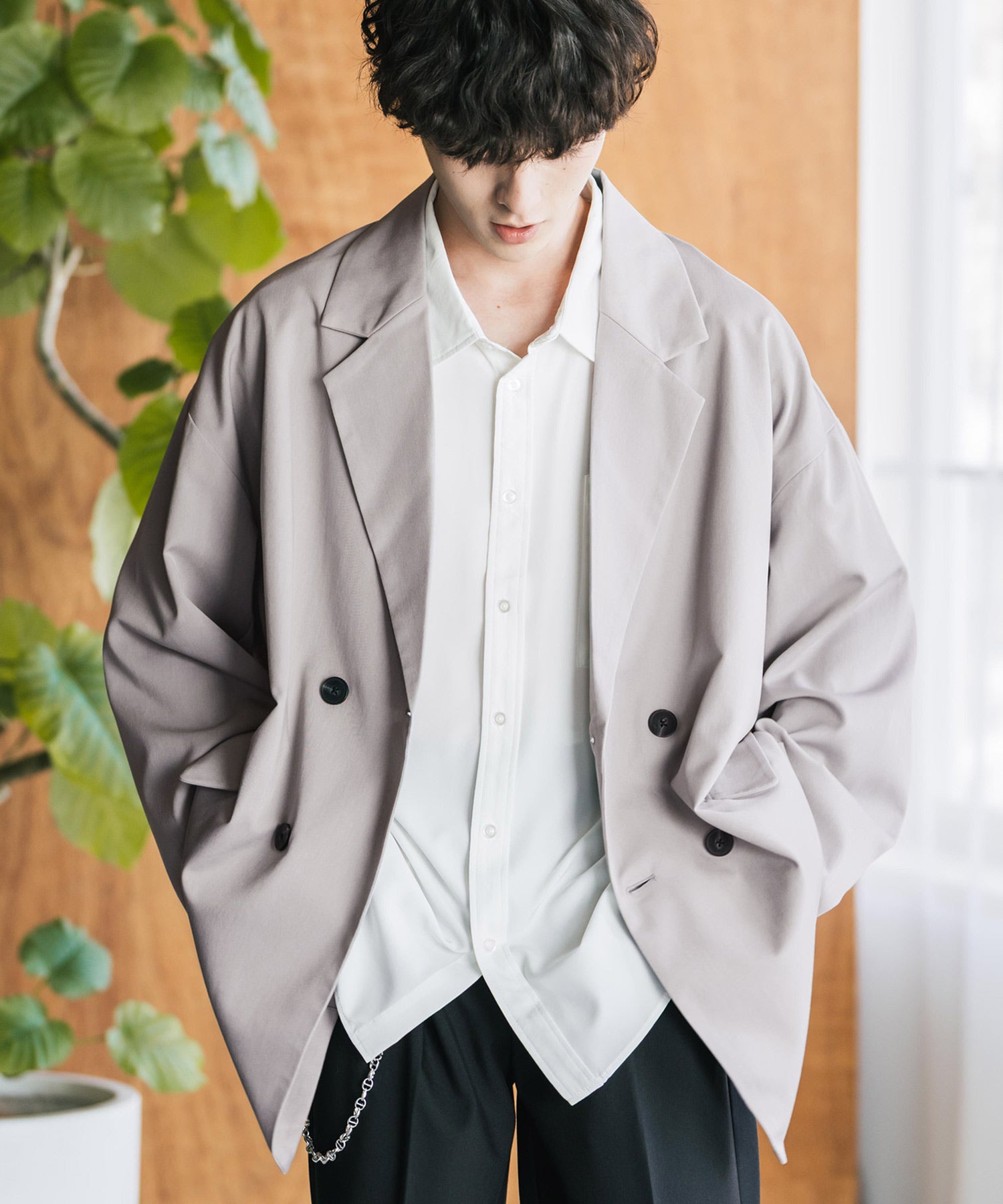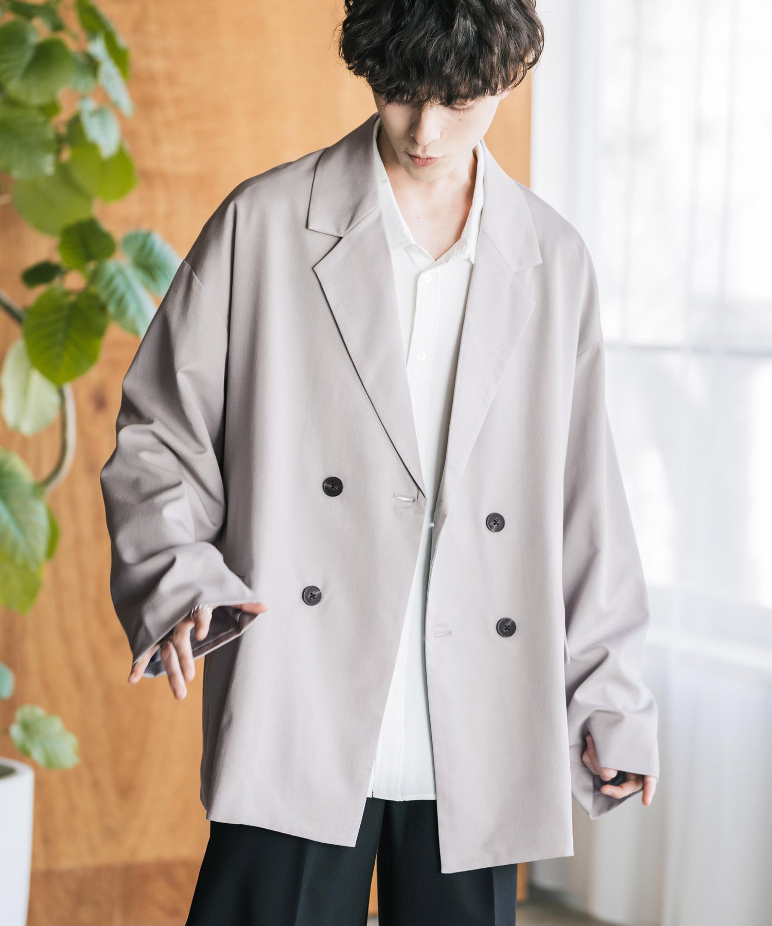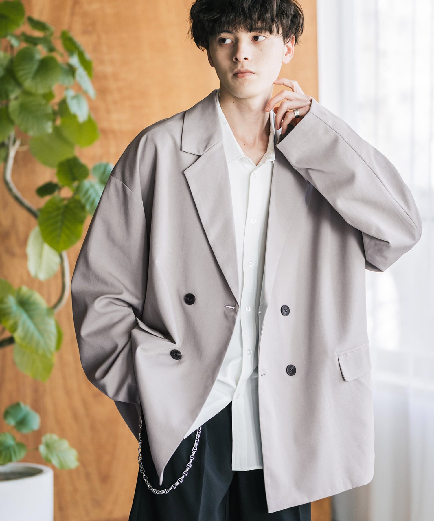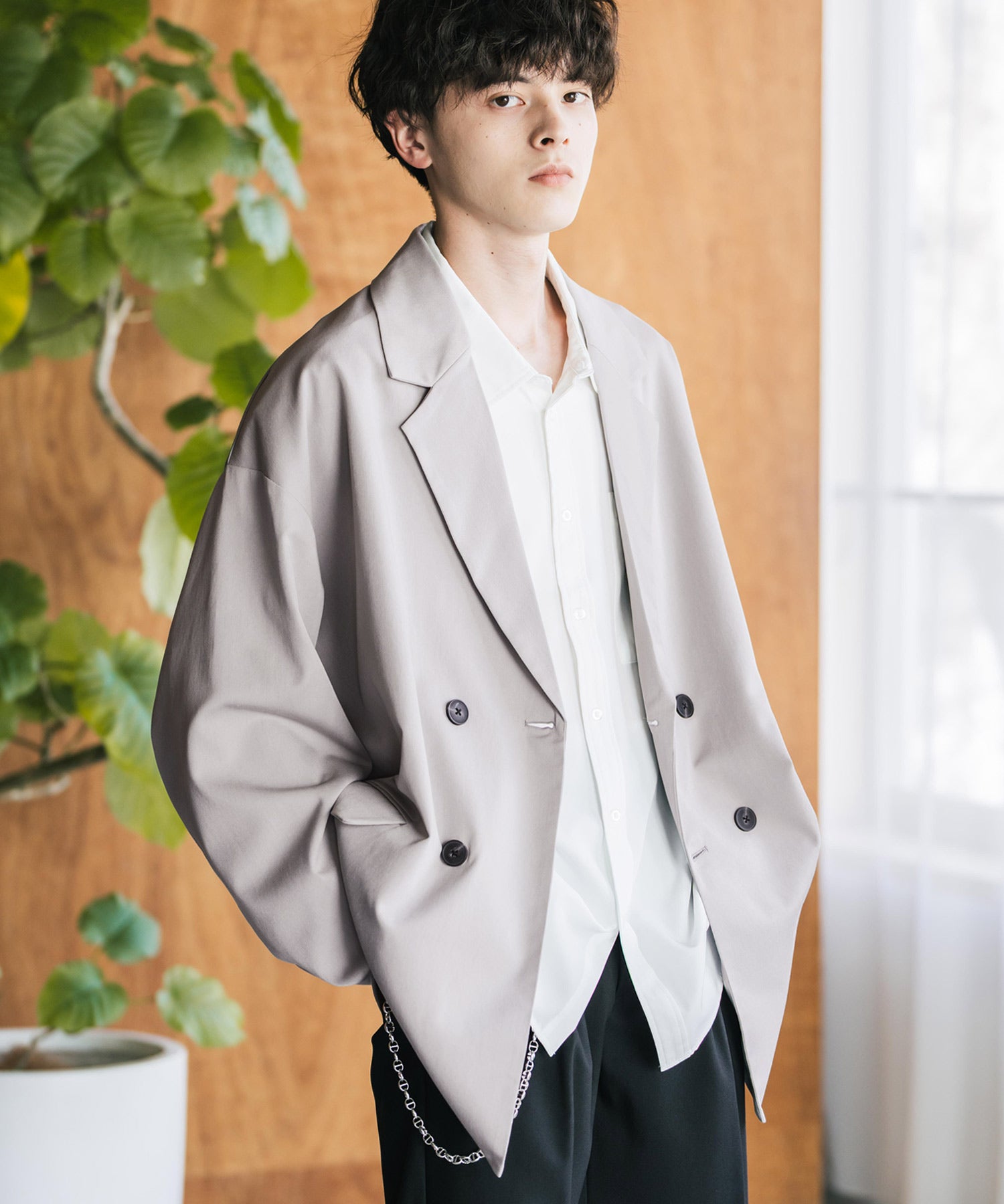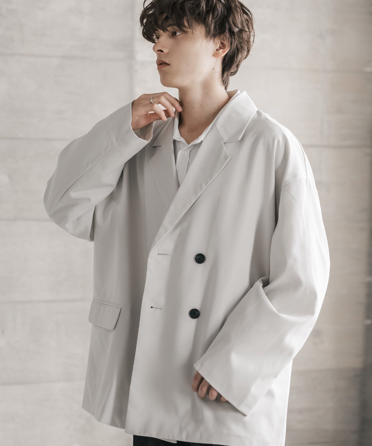 ざっくりしたサイジングに、ダブルブレスト仕様を掛け合わせたデザイン。