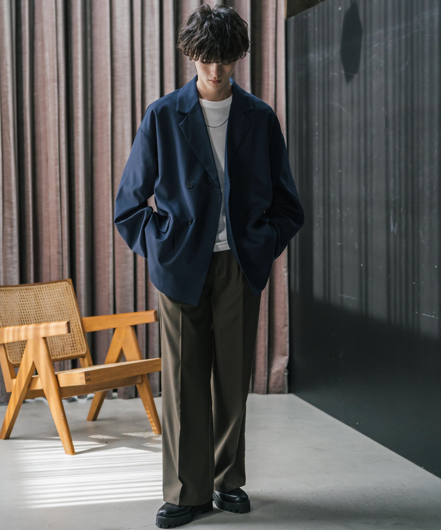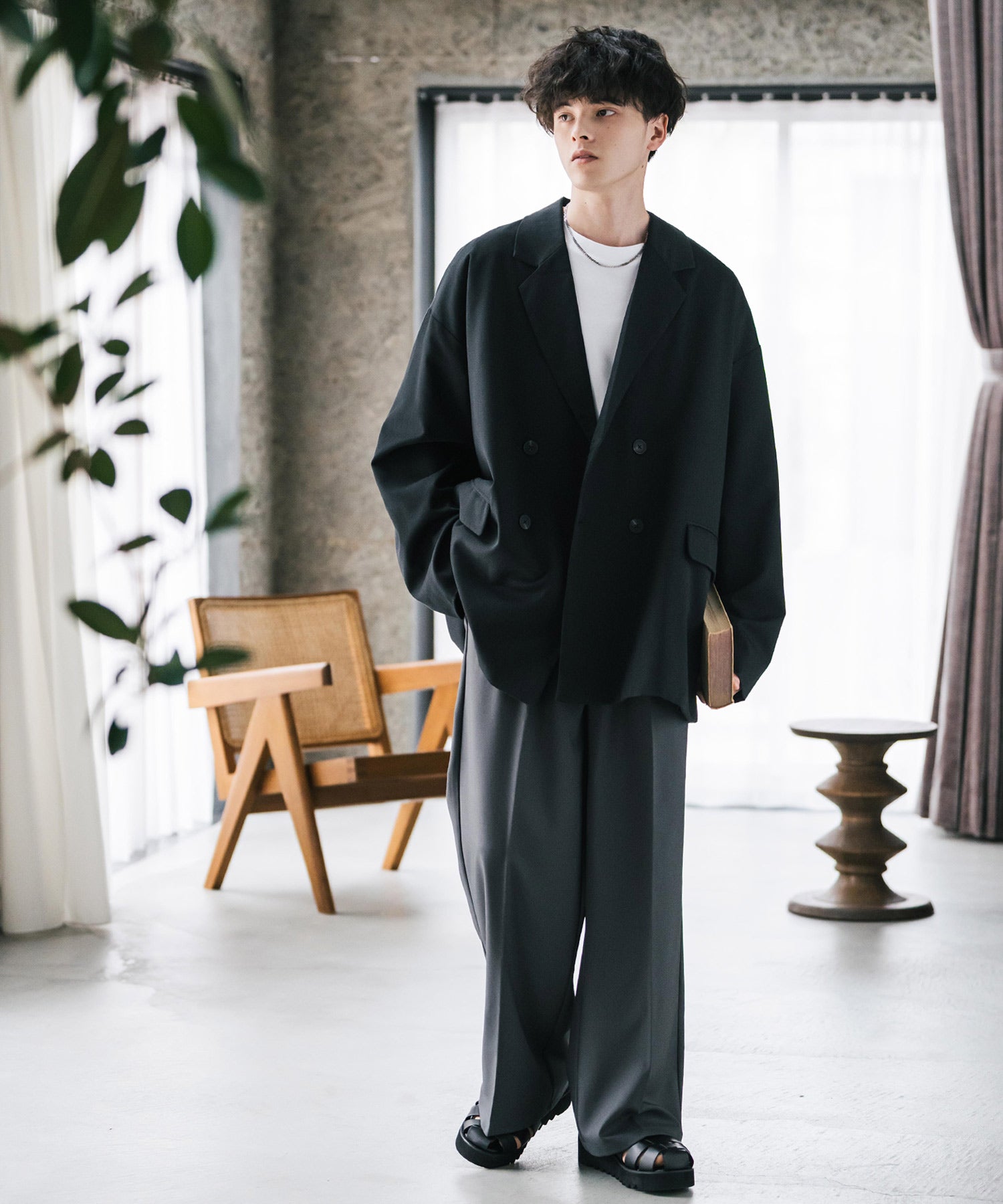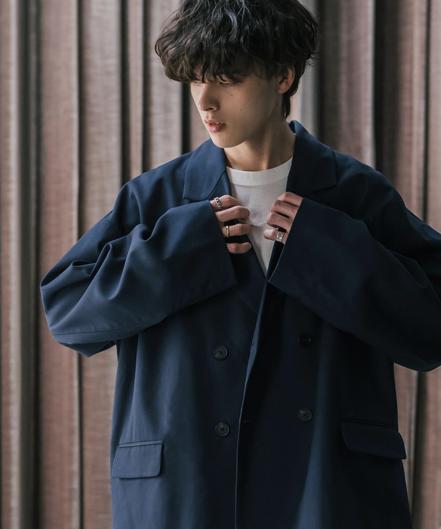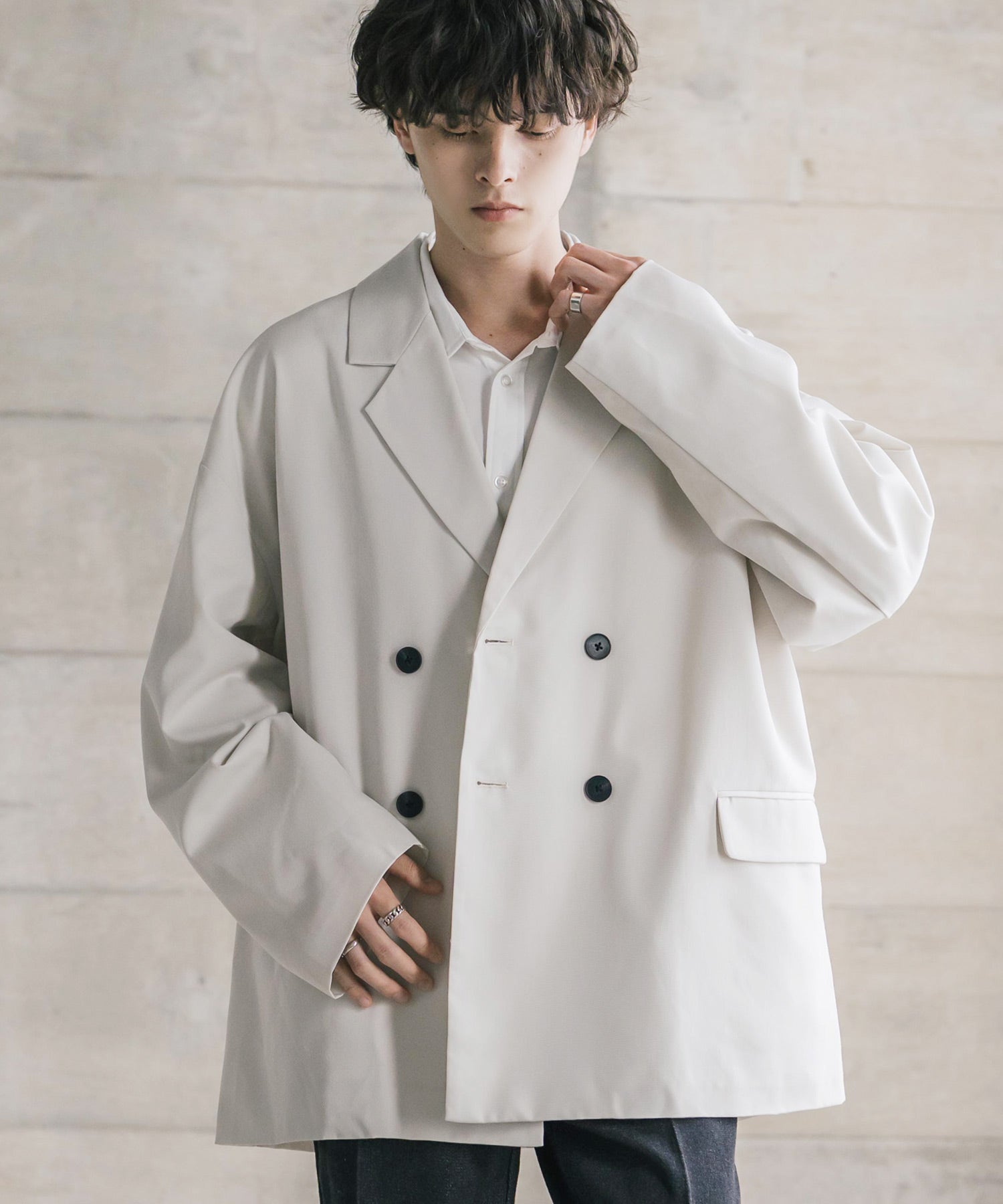ざっくりしたサイジングに、ダブルブレスト仕様を掛け合わせたデザイン。