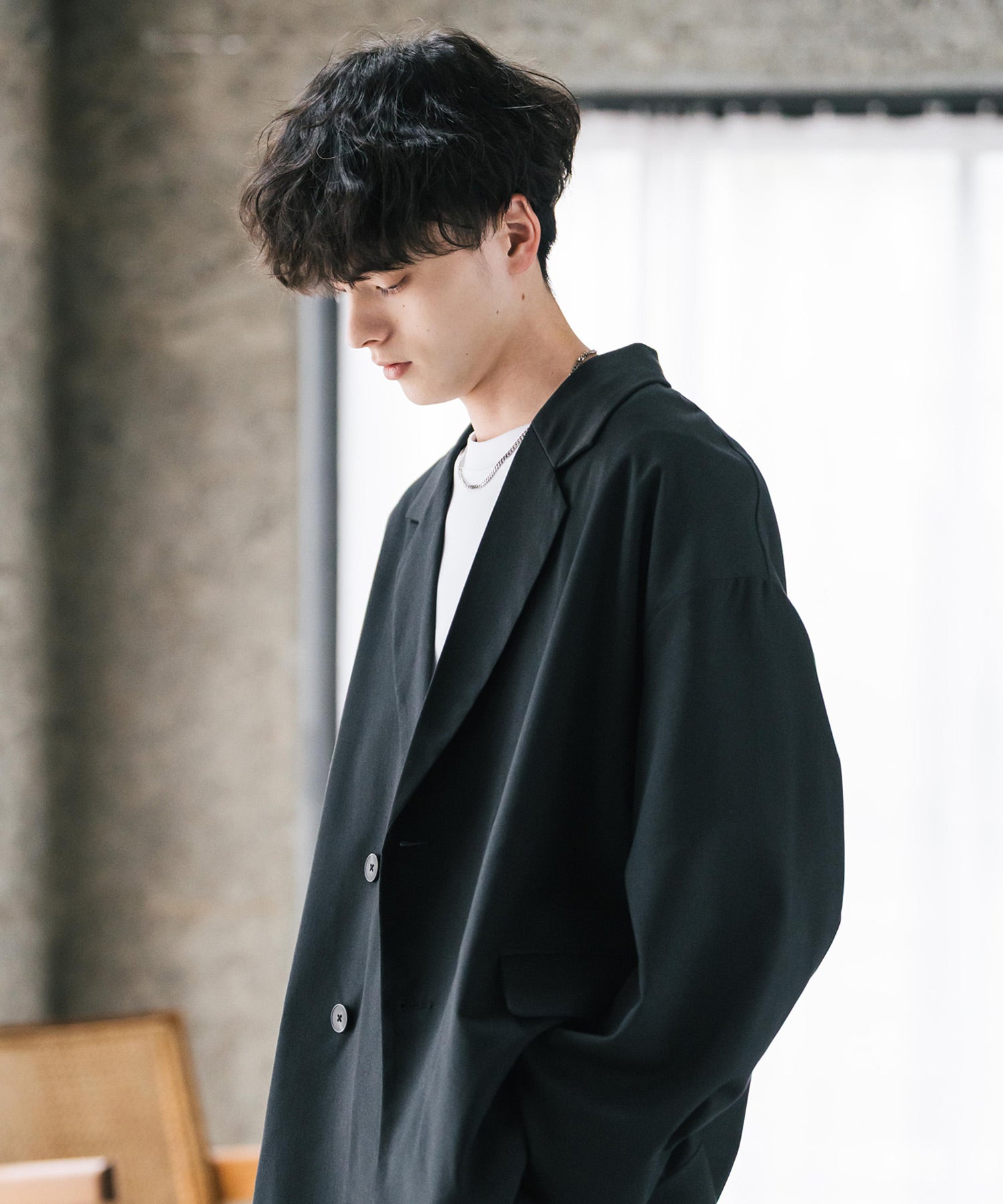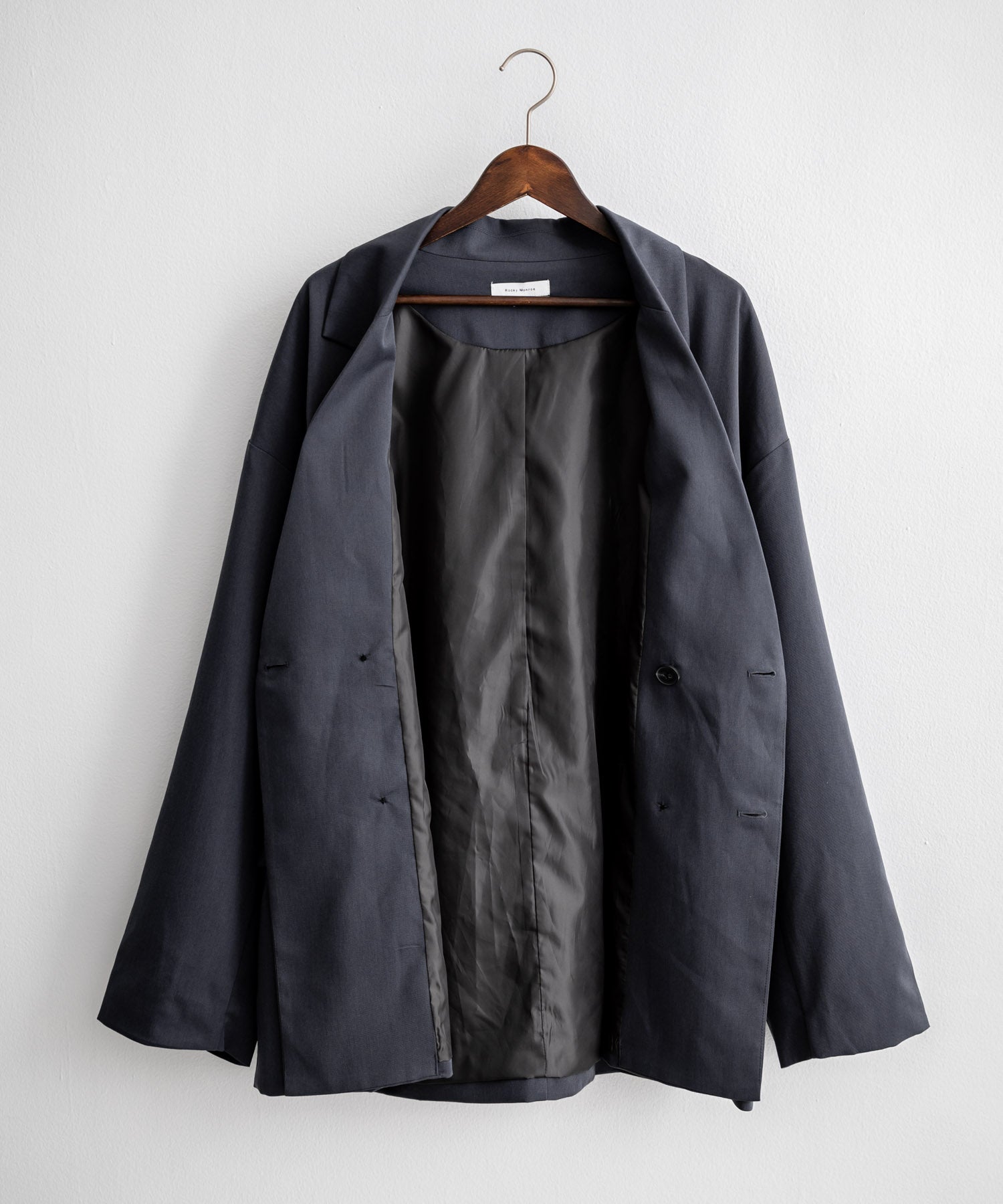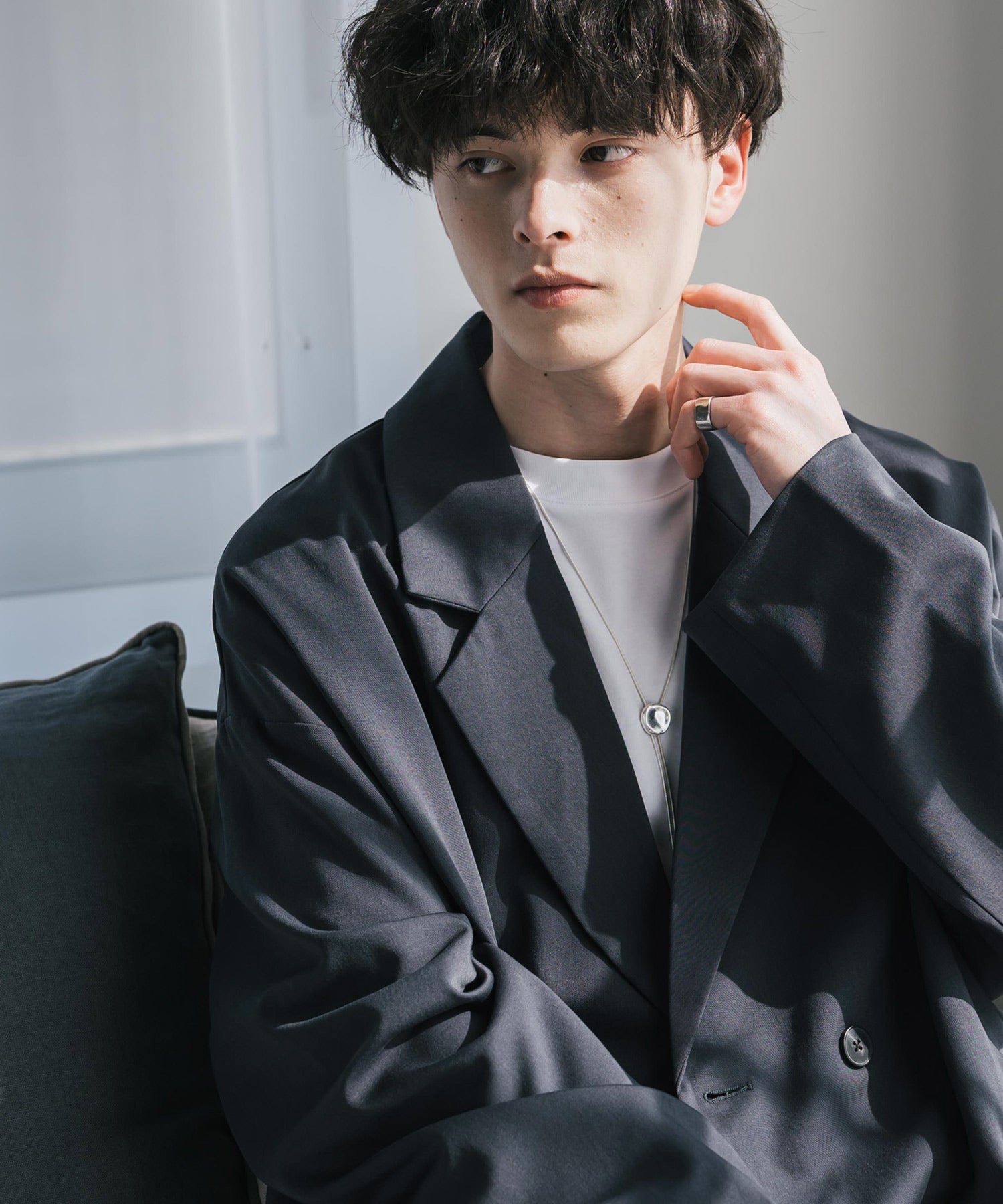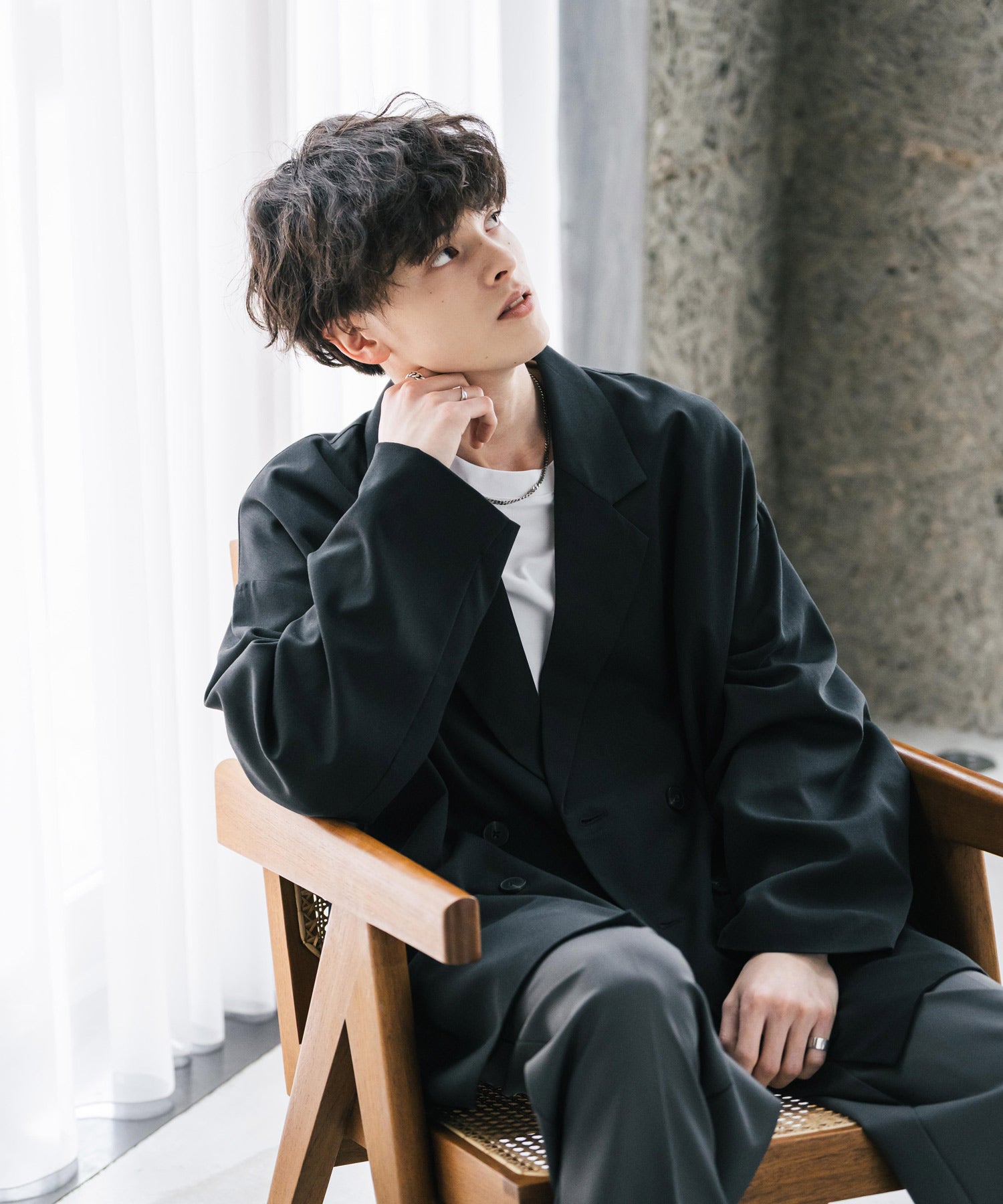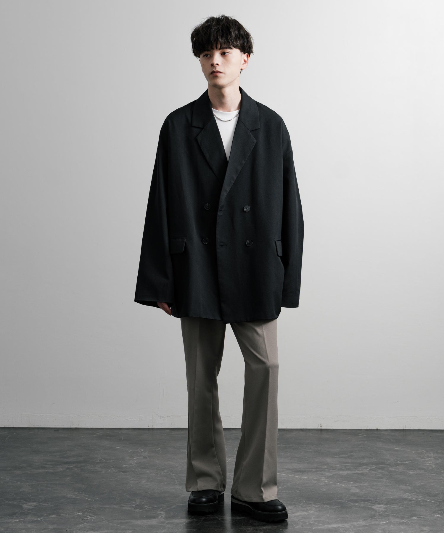 ざっくりしたサイジングに、ダブルブレスト仕様を掛け合わせたデザイン。