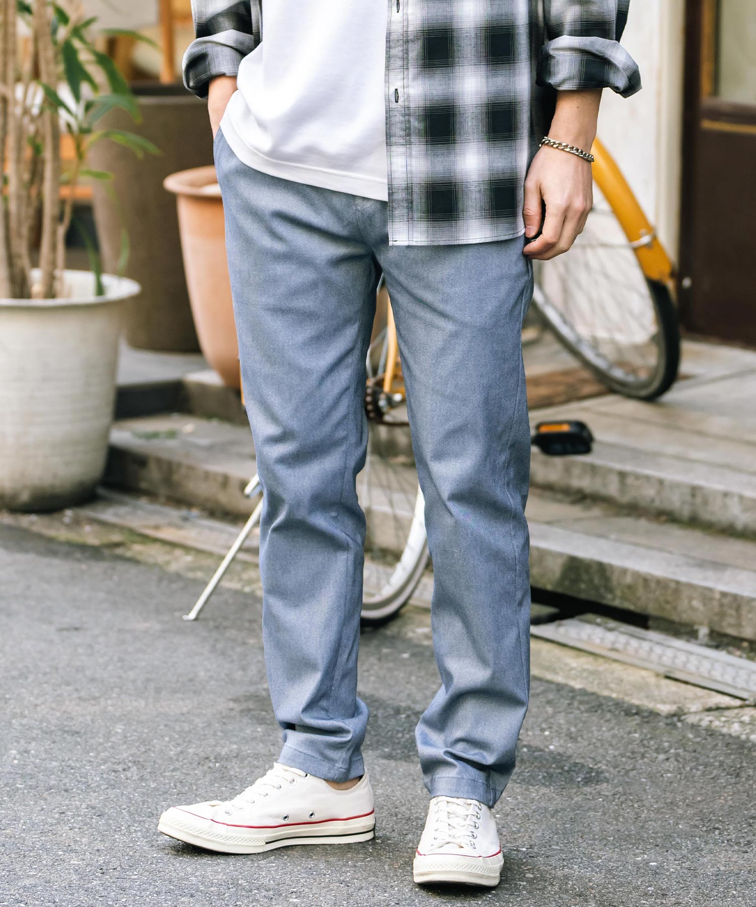細すぎず、適度にゆとりのあるサイズ感でスッキリとした着こなしに。