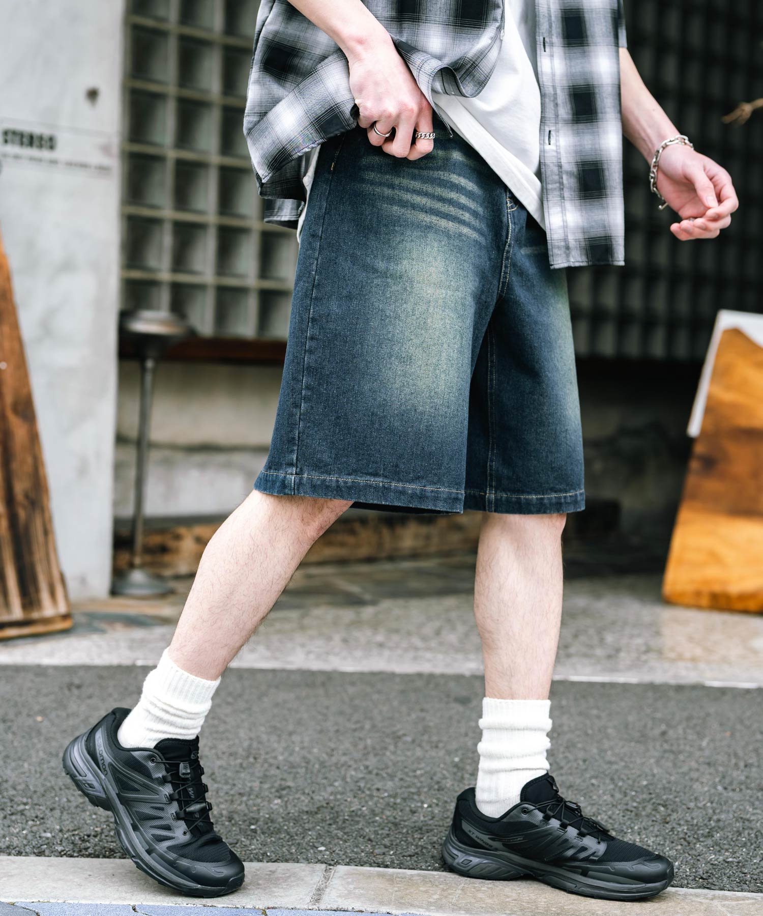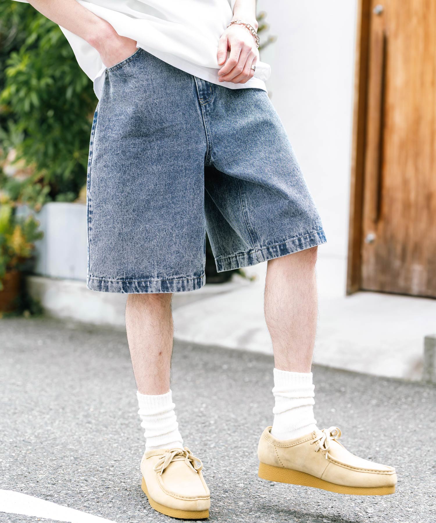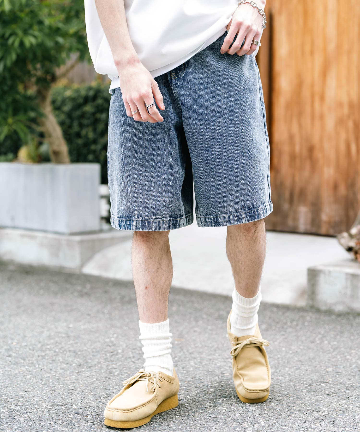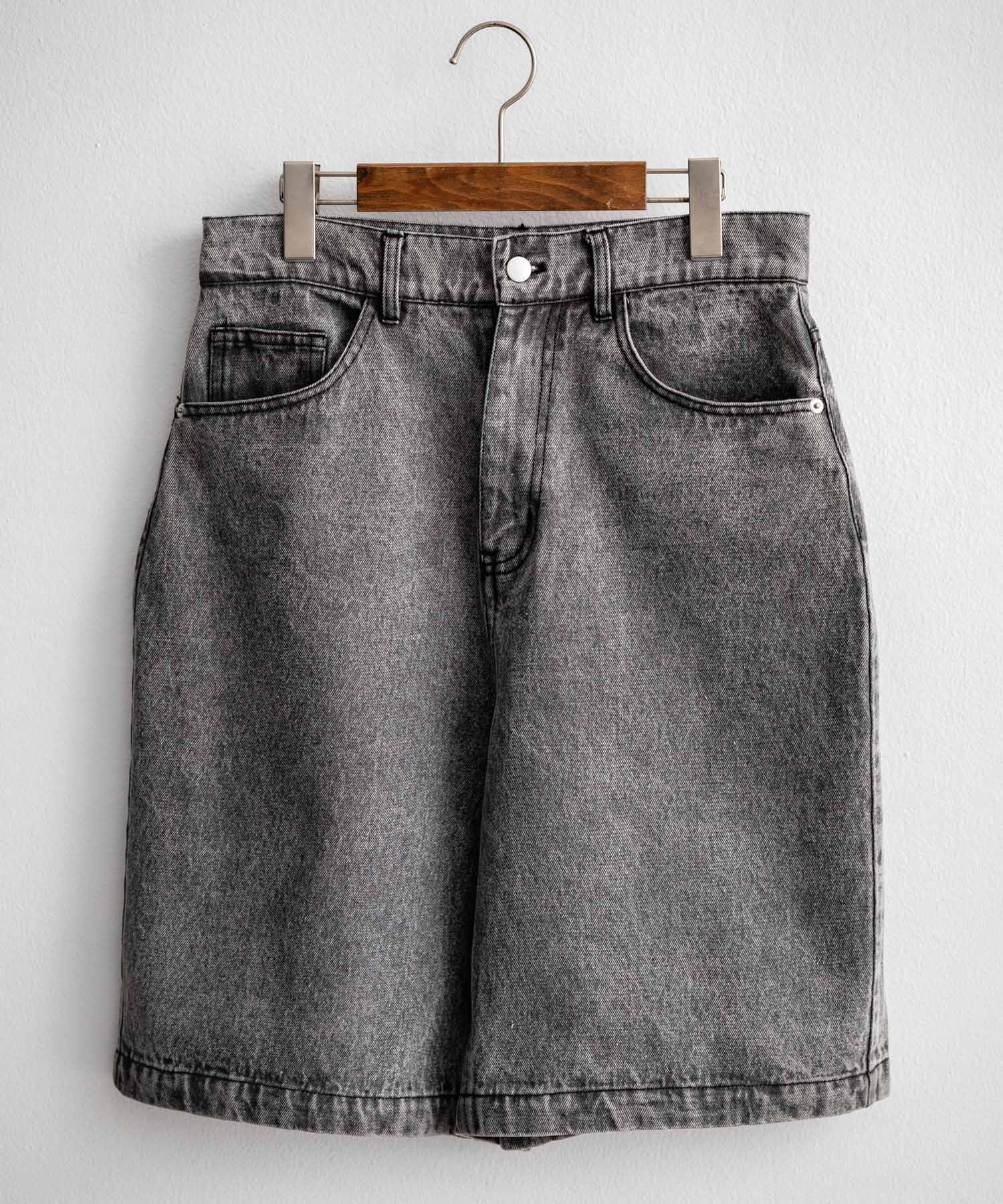 膝丈にトレンド感あるワイドシルエット!デニムショーツ/半パン/短パン。