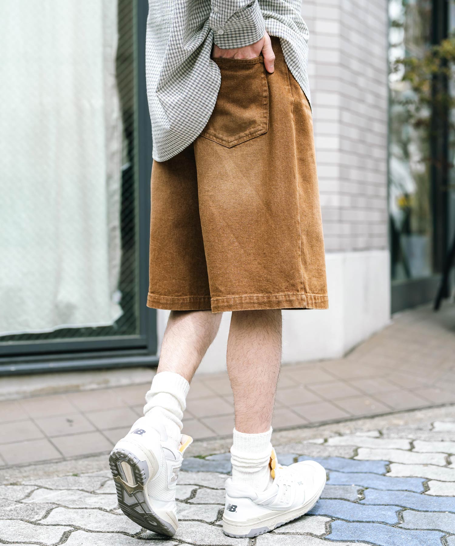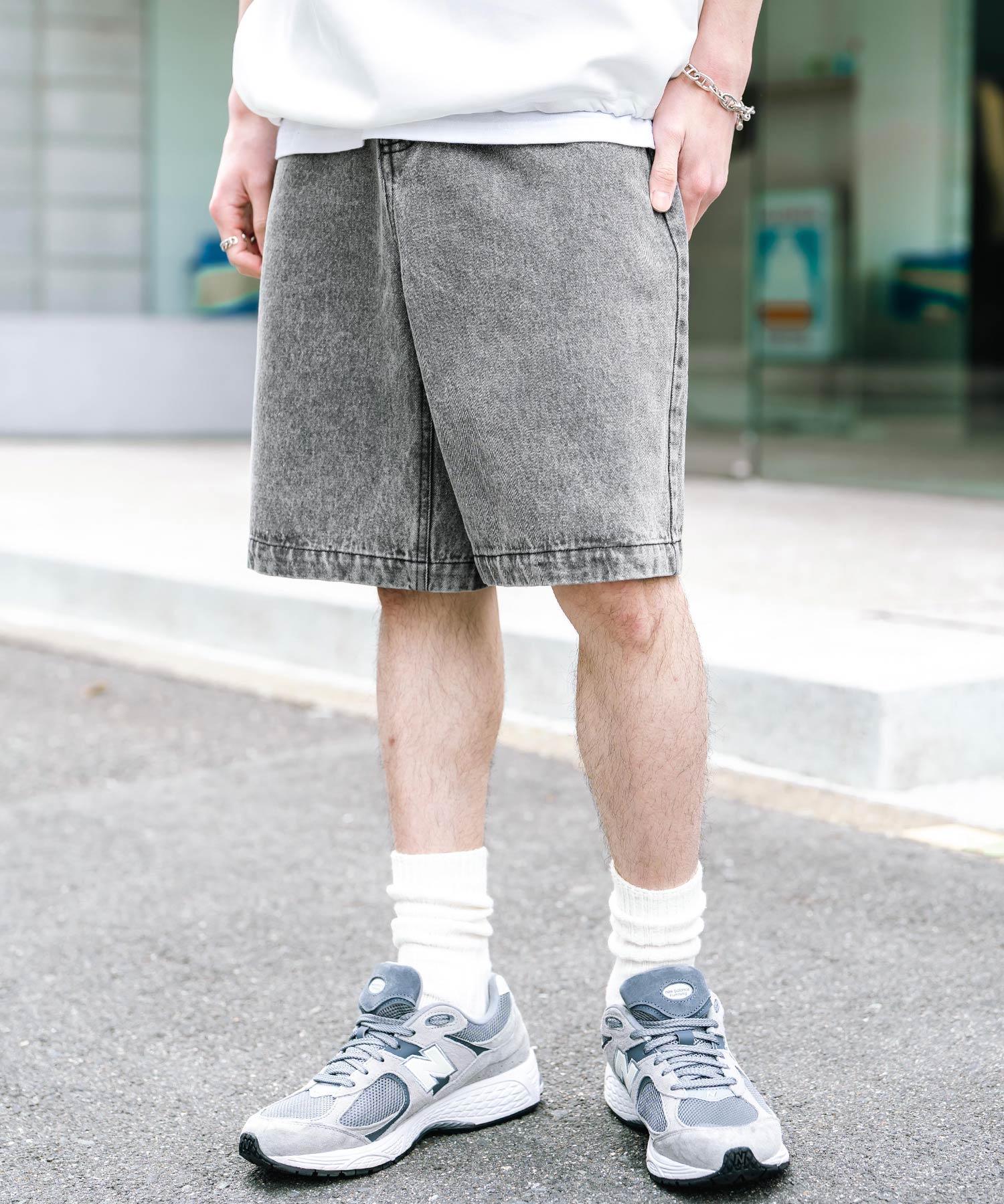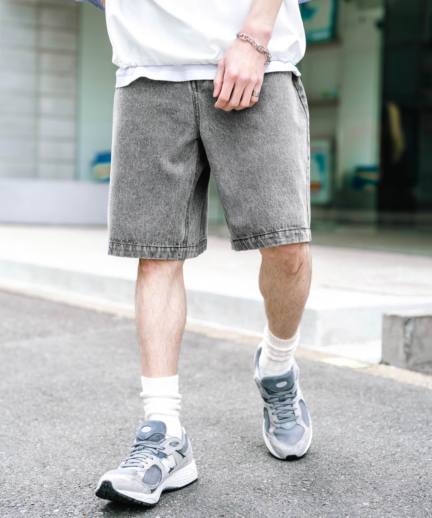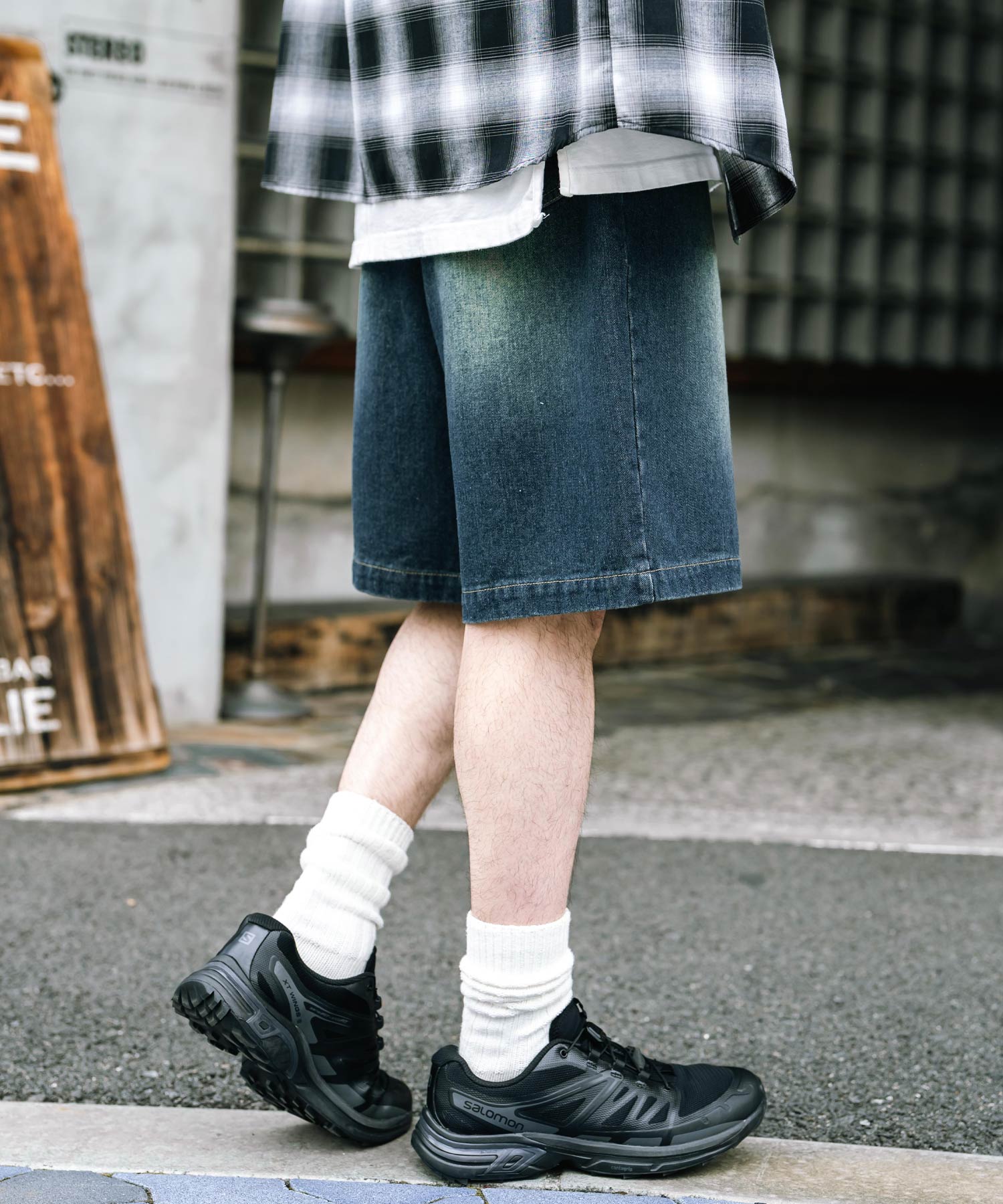 膝丈にトレンド感あるワイドシルエット!デニムショーツ/半パン/短パン。