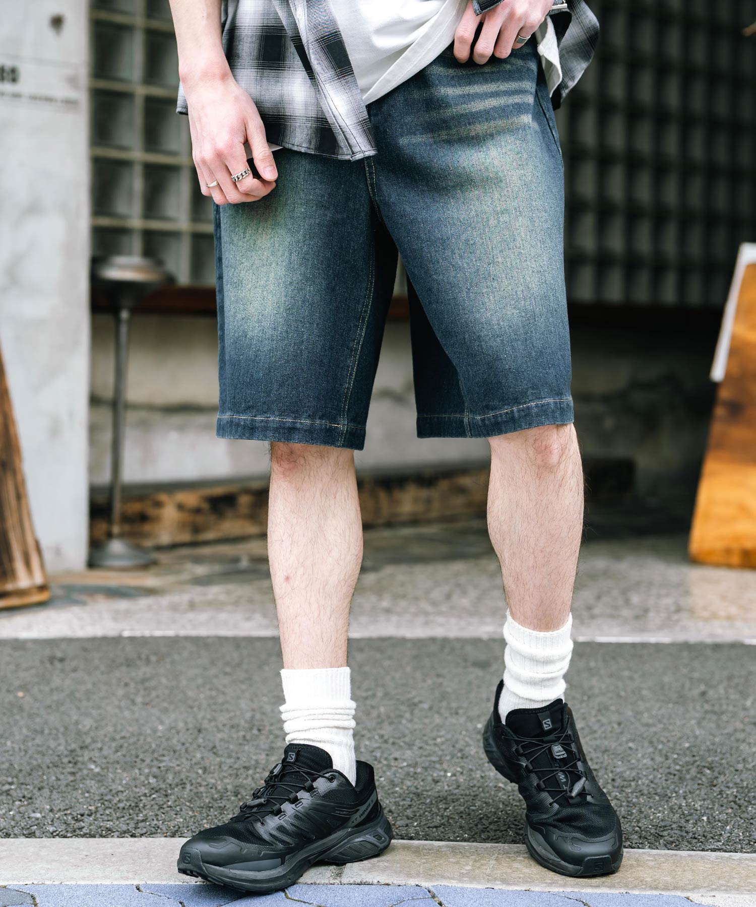 ヴィンテージライクな風合いと絶妙な褪せ感が魅力のデニムショーツ/ハーフパンツ。
