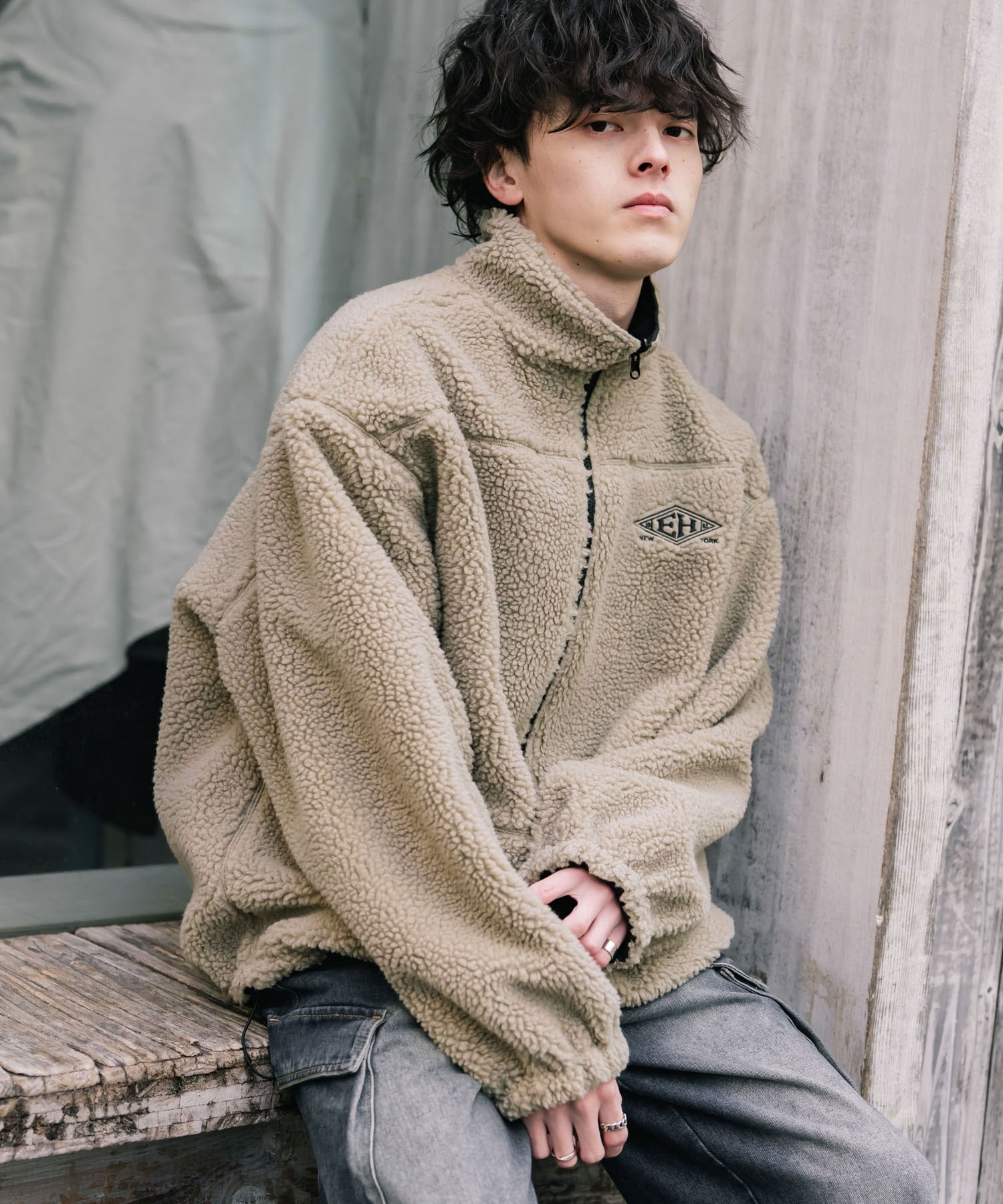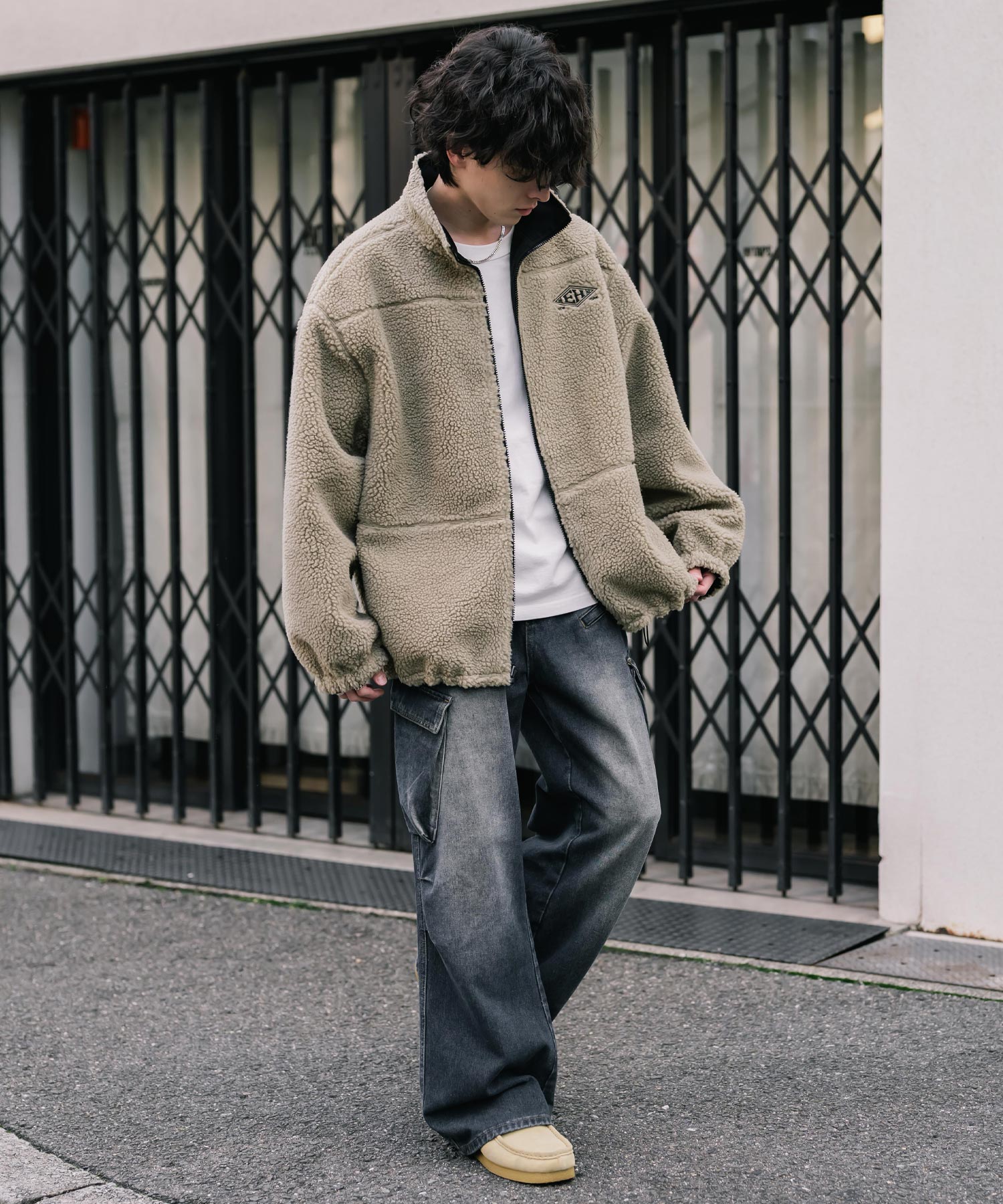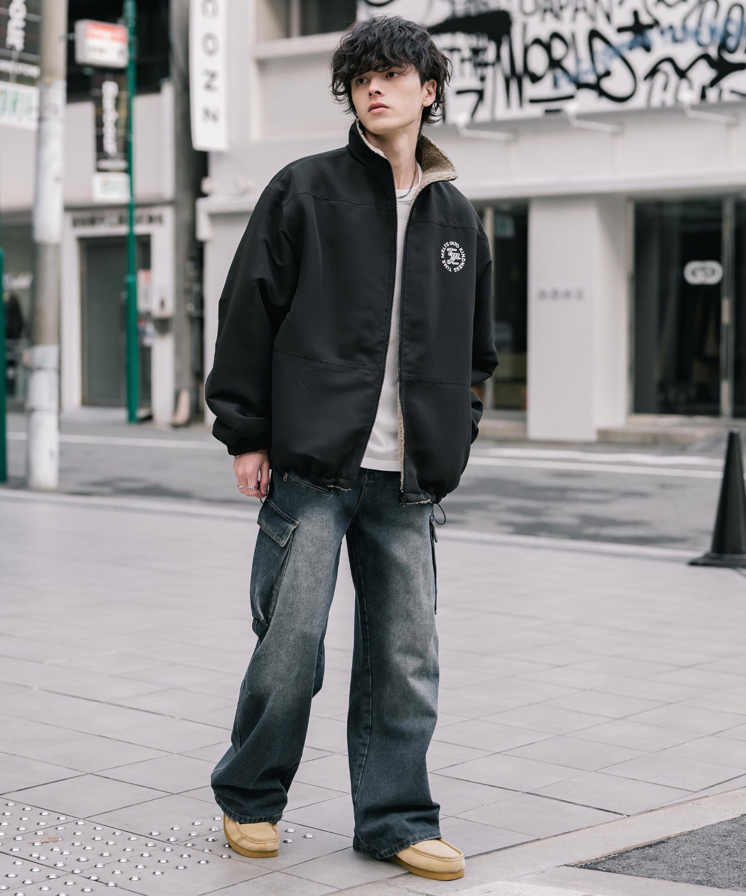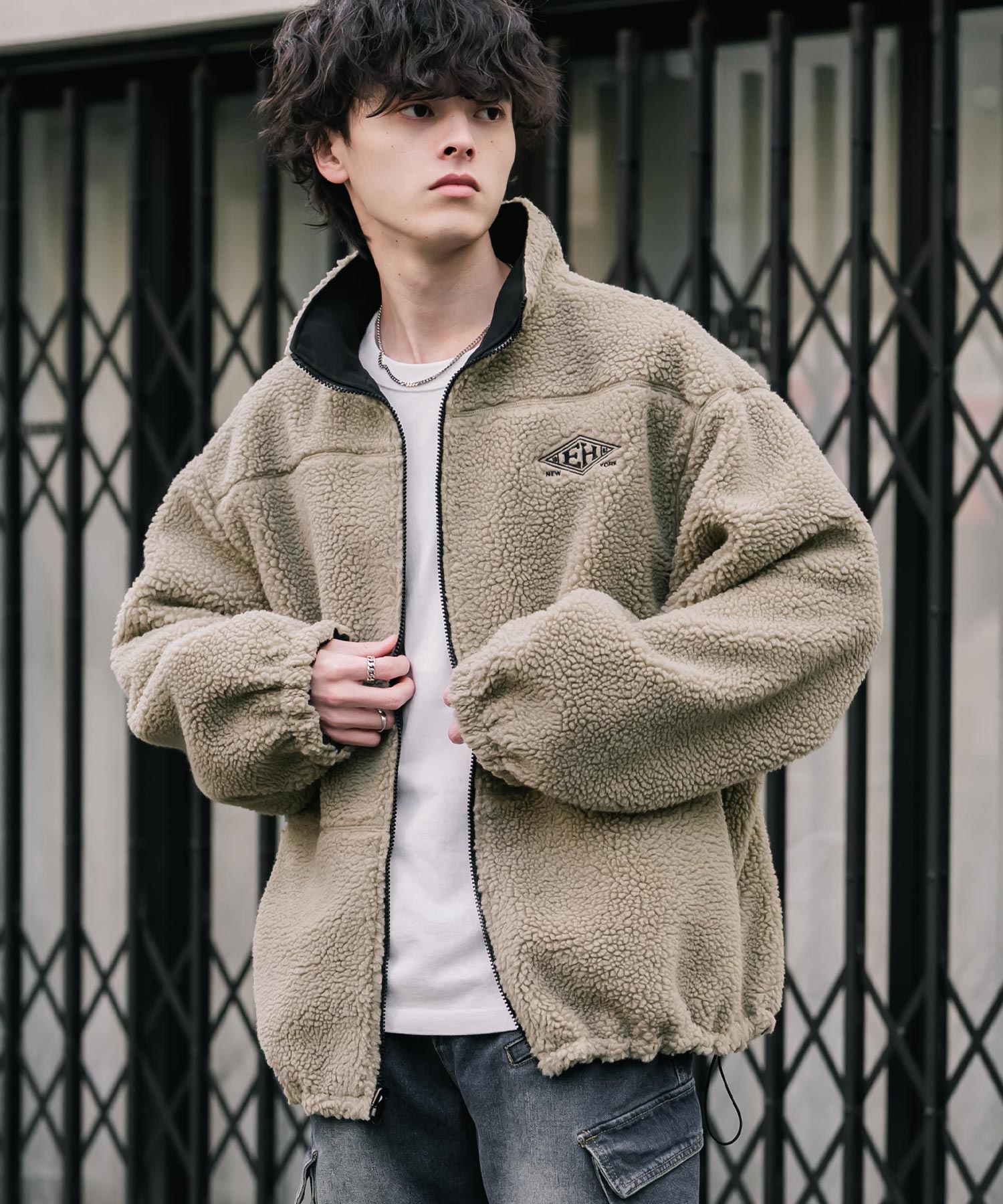 リバーシブルで使える2way仕様!オーバーサイズスタンドネックボアブルゾン。