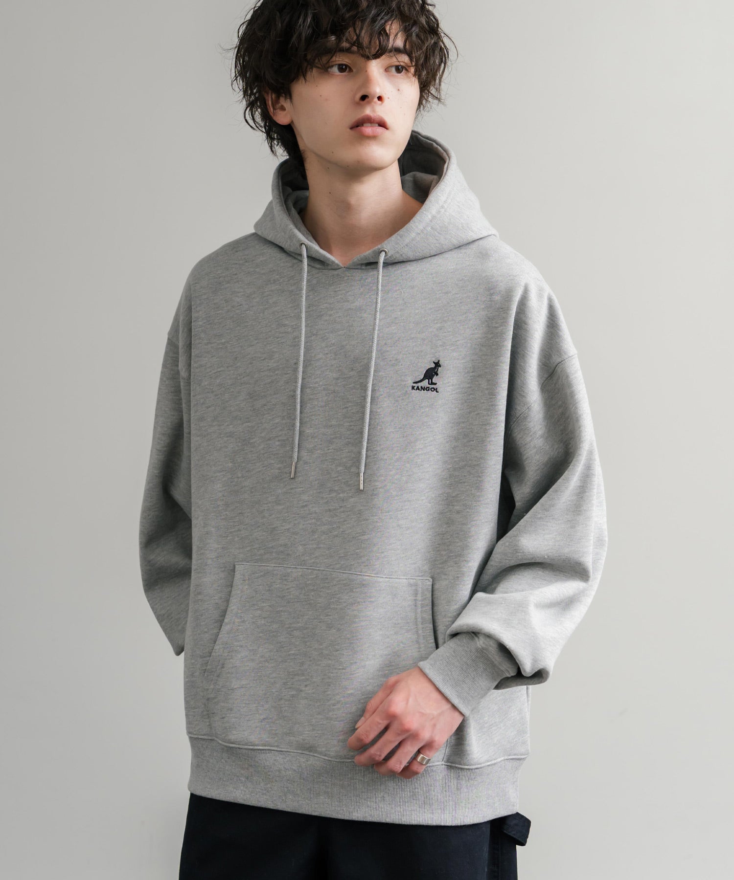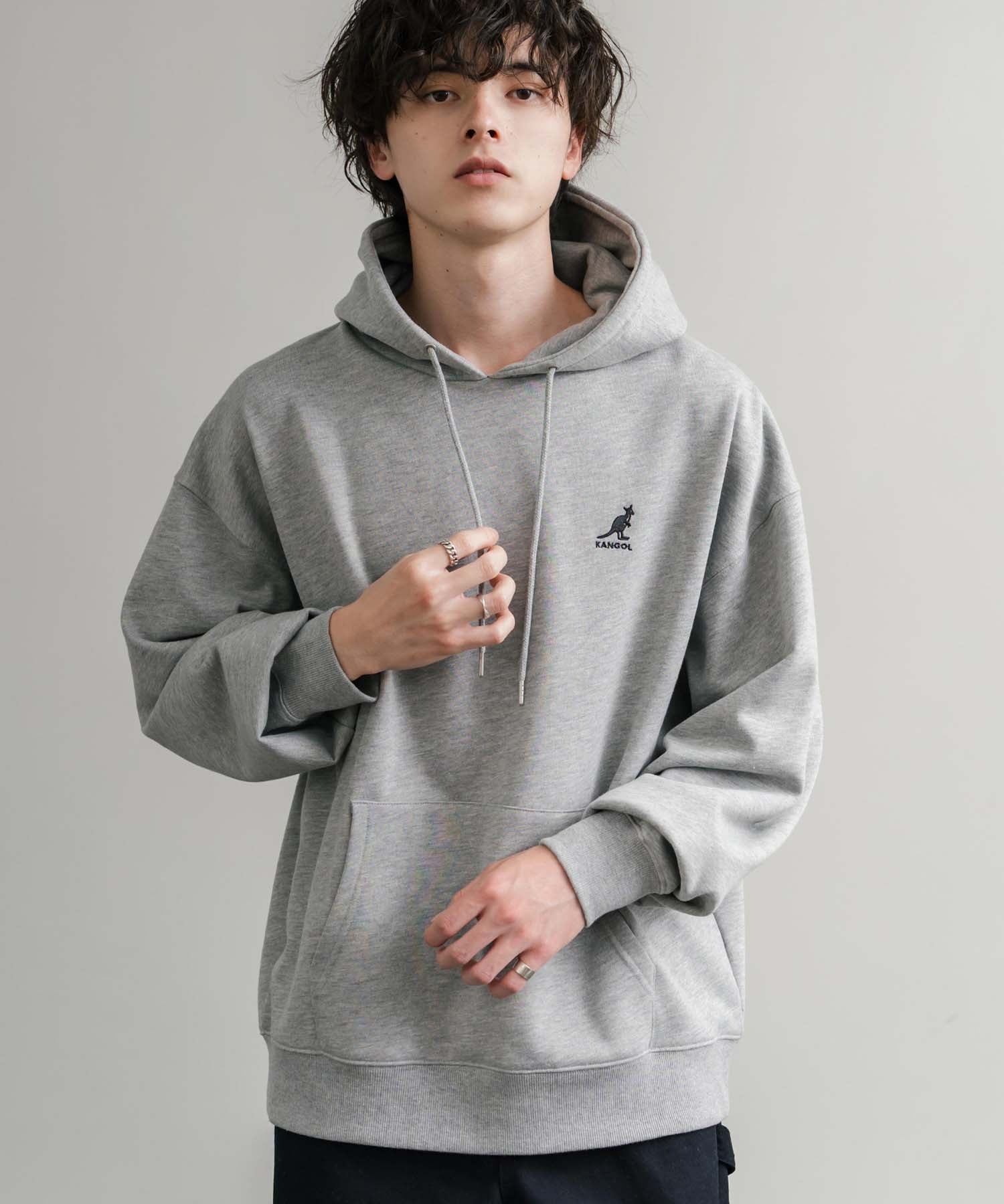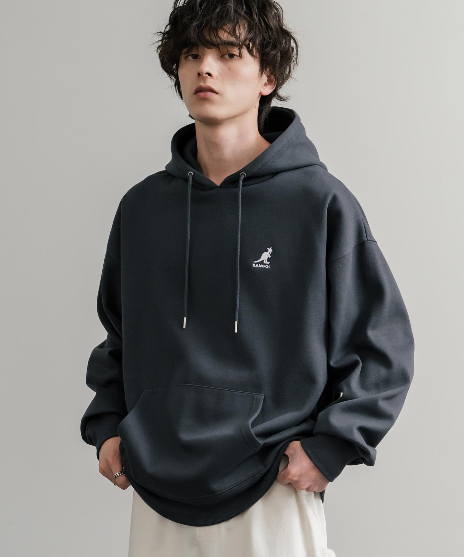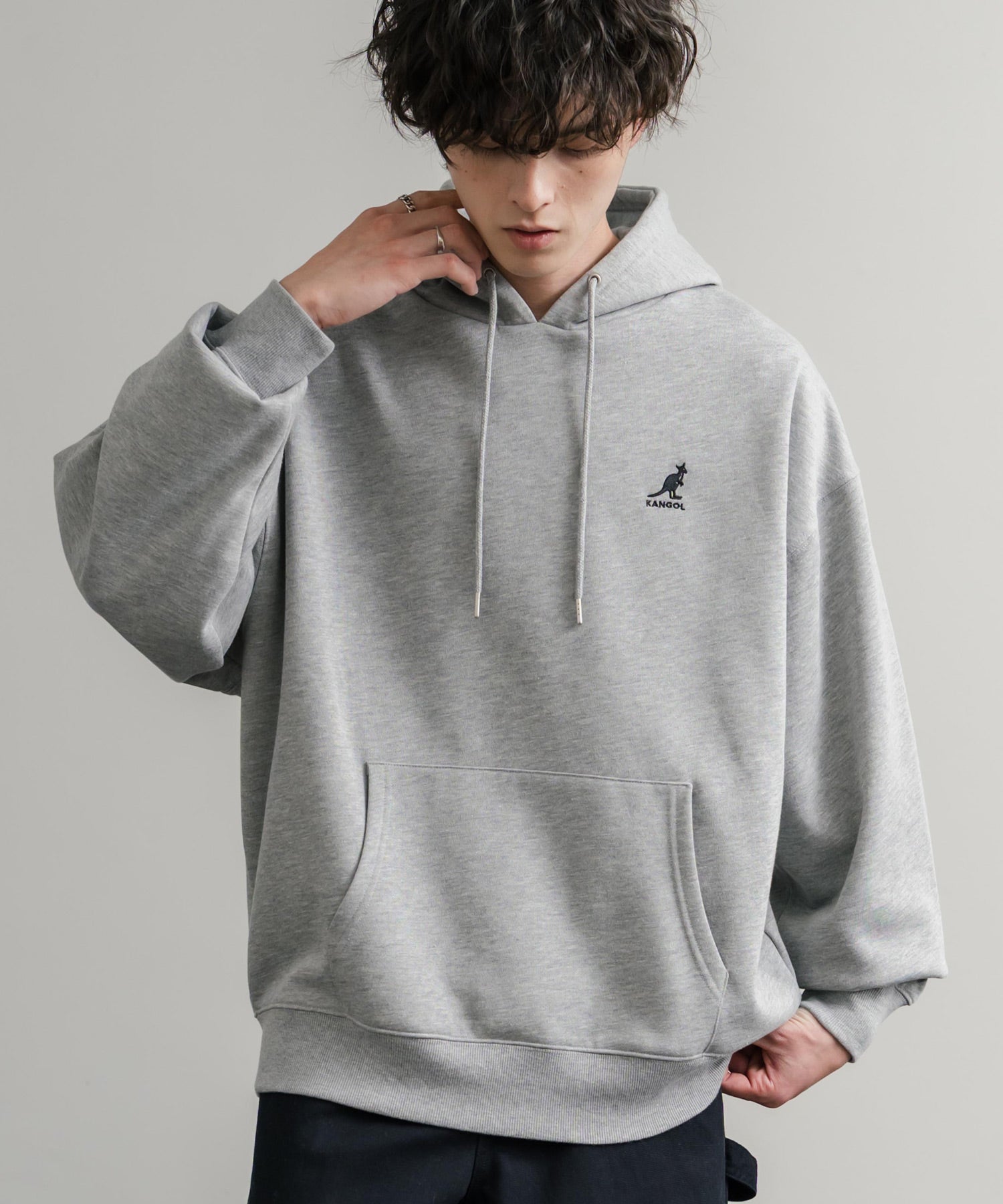 トレンドに左右されない着回し力の高さ!KANGOL別注コラボ裏起毛パーカー。
