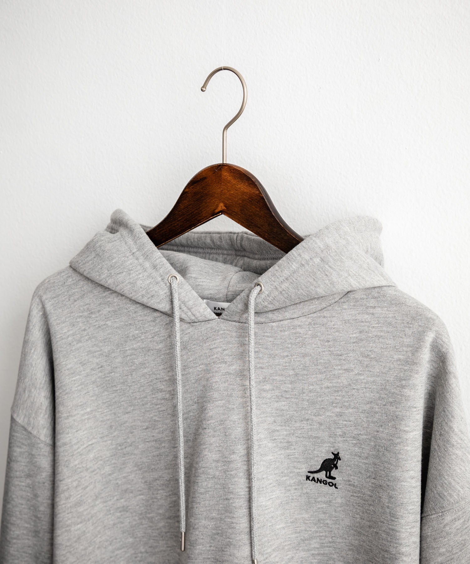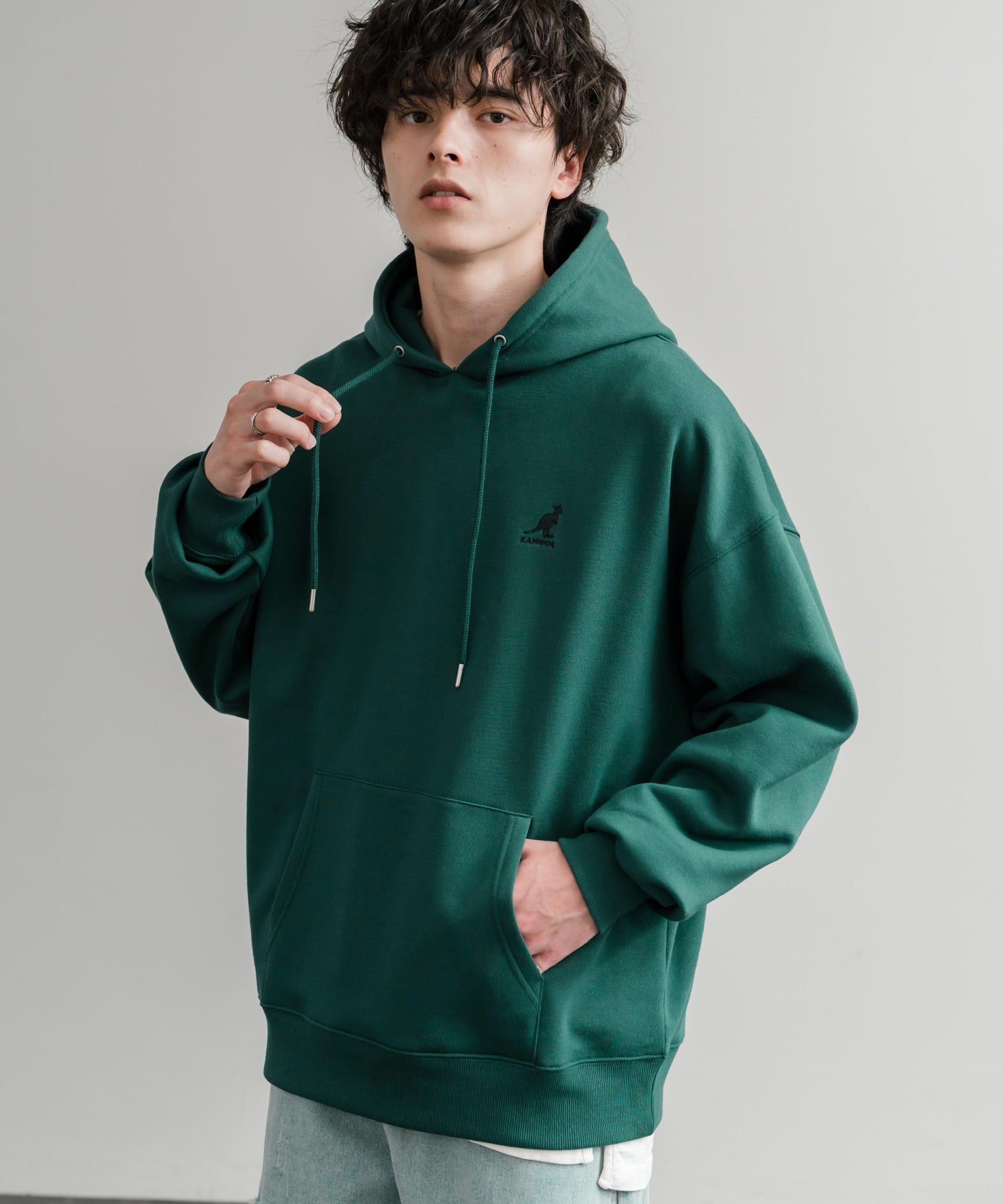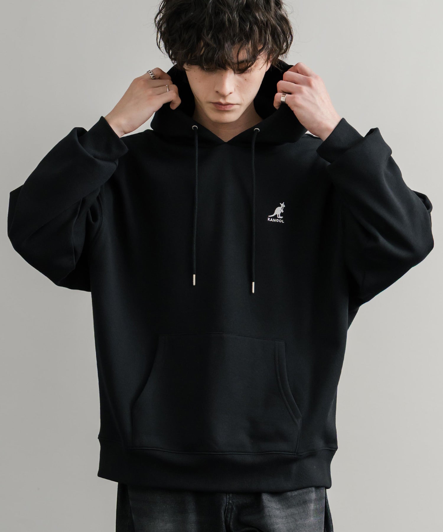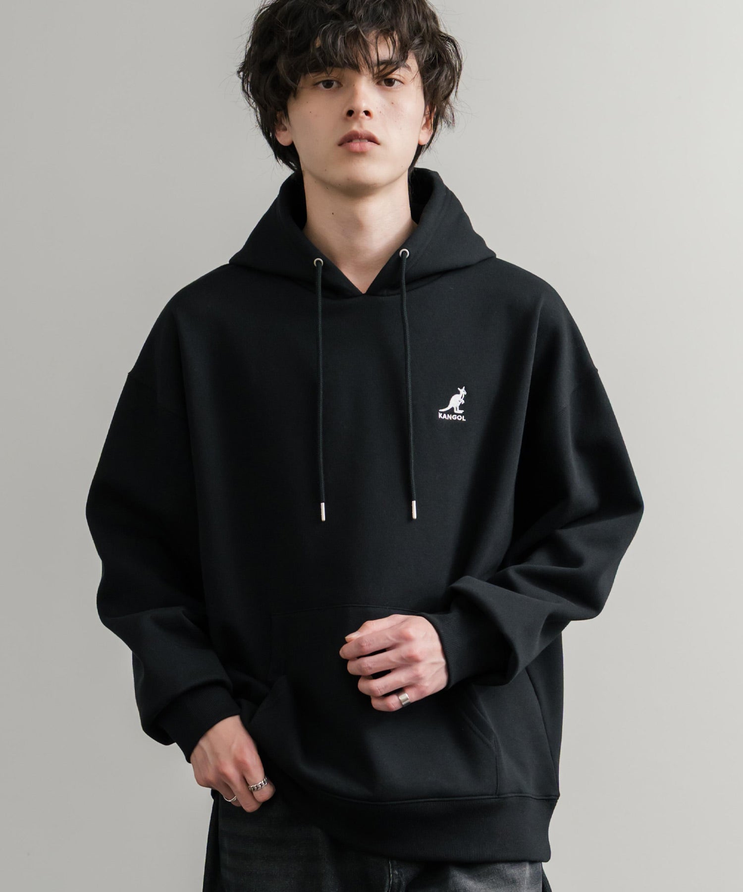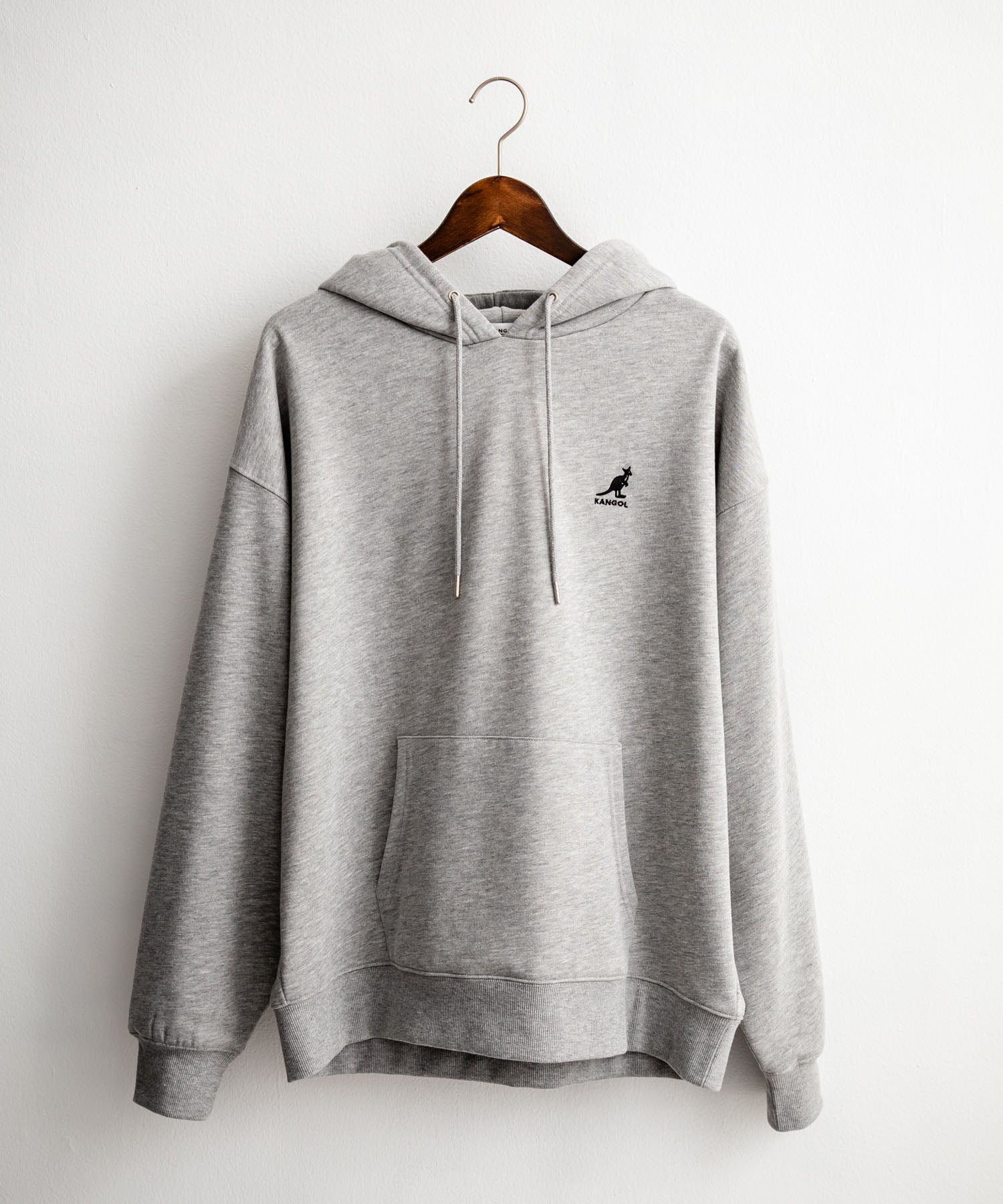 トレンドに左右されない着回し力の高さ!KANGOL別注コラボ裏起毛パーカー。