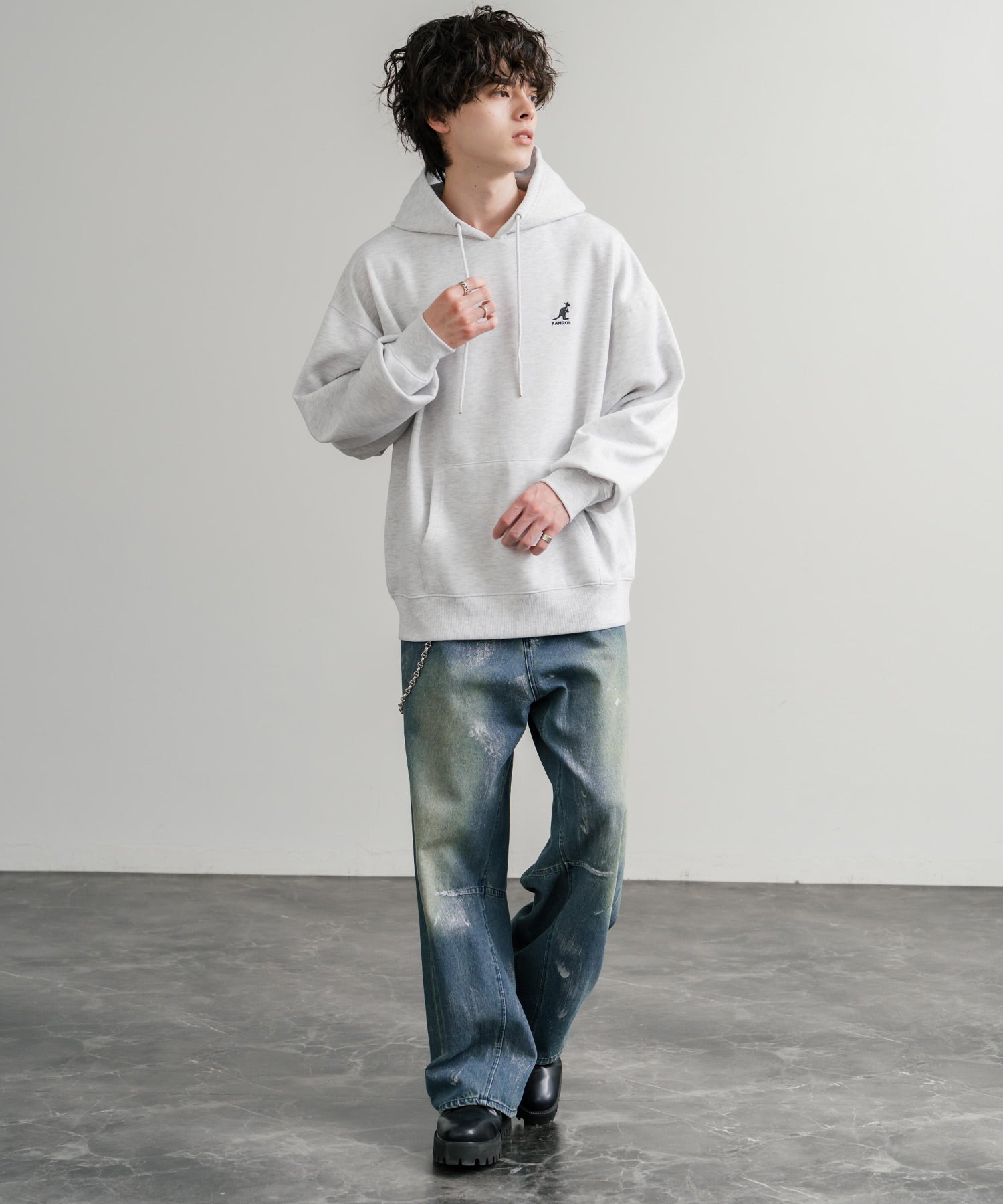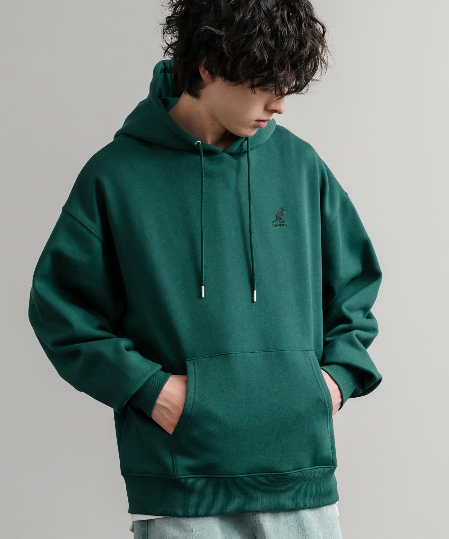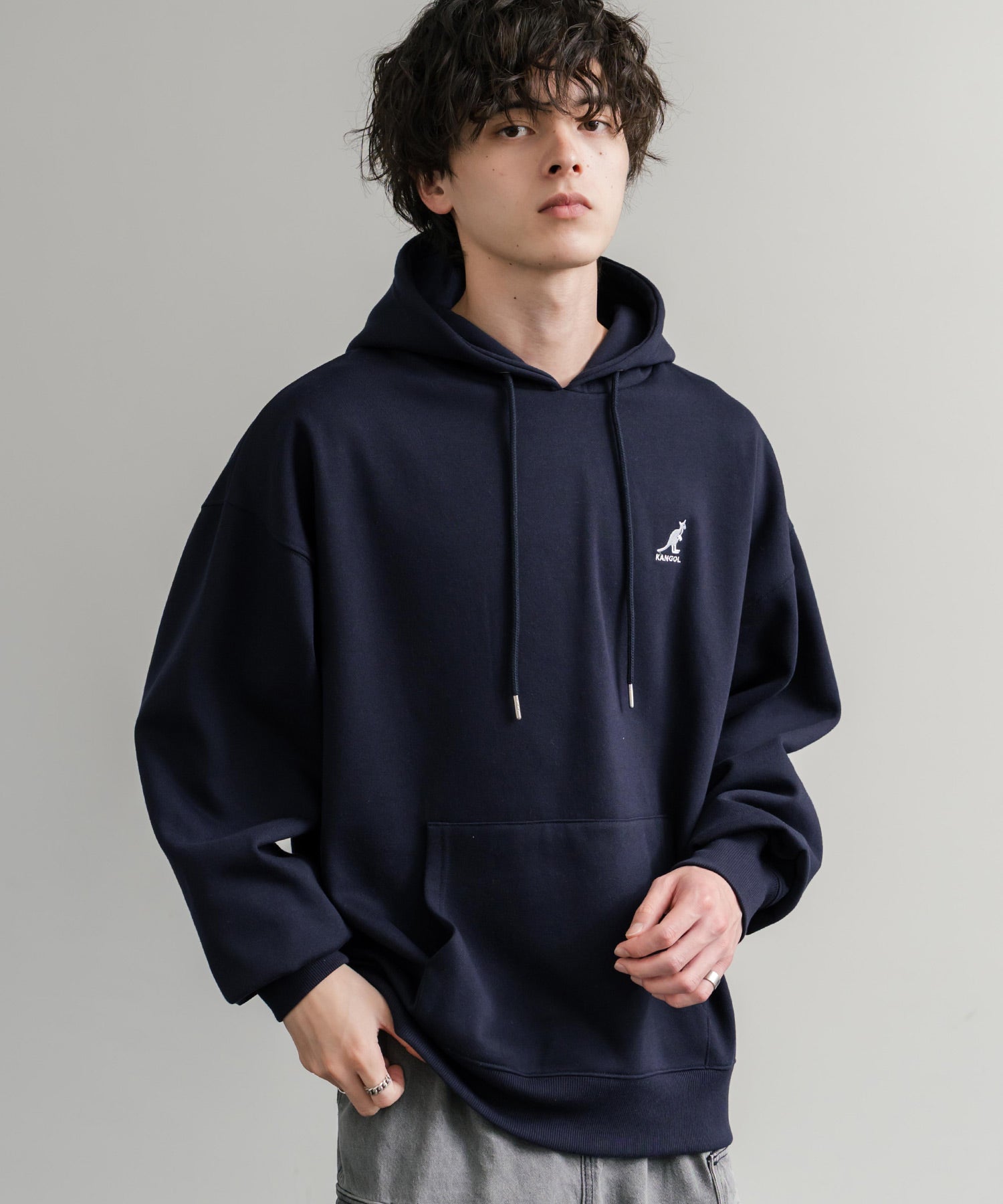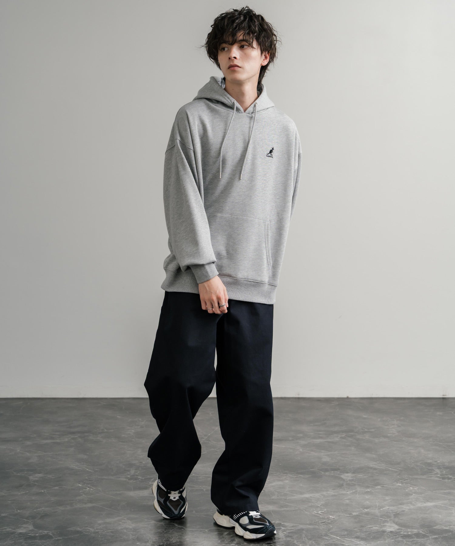 トレンドに左右されない着回し力の高さ!KANGOL別注コラボ裏起毛パーカー。