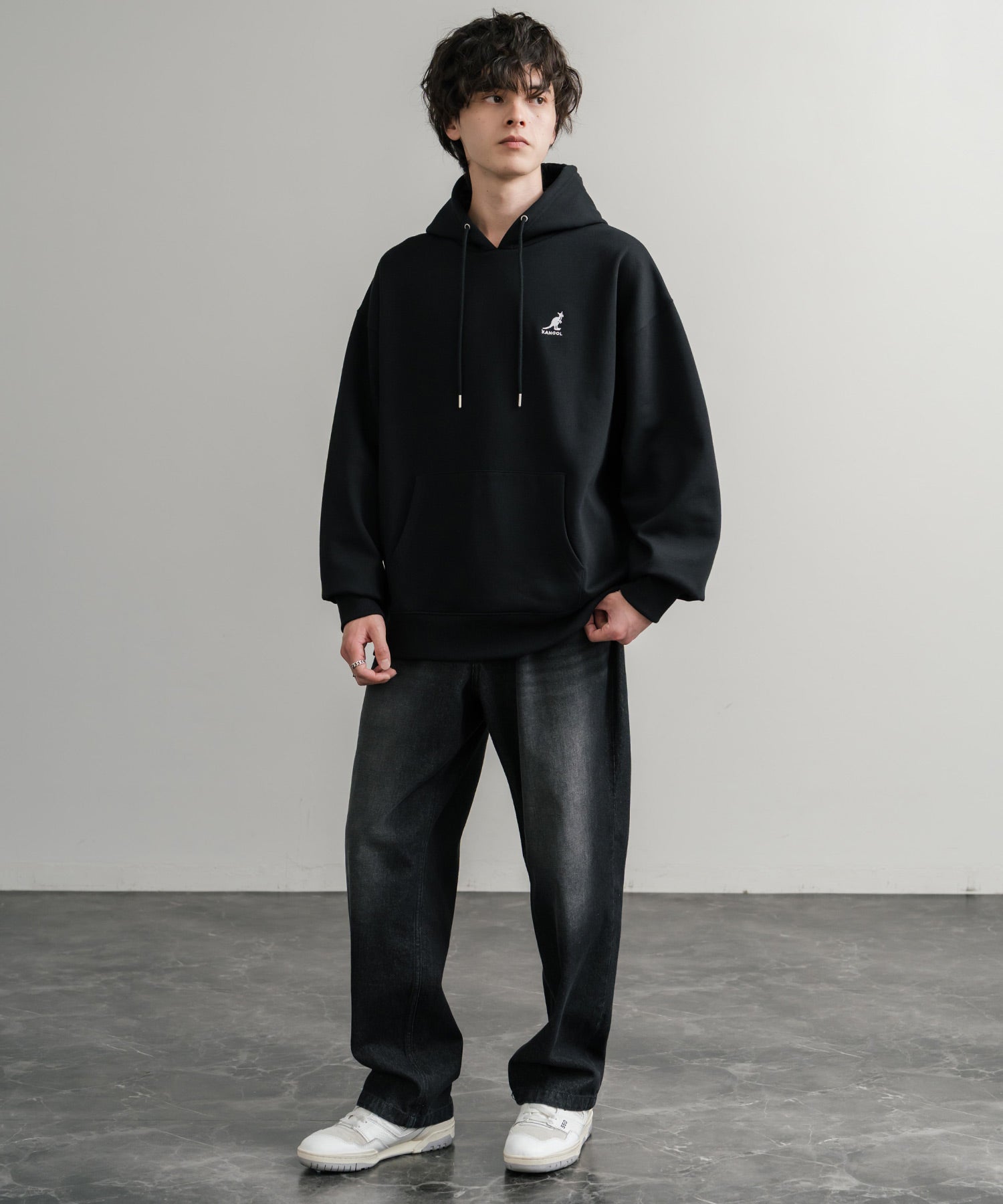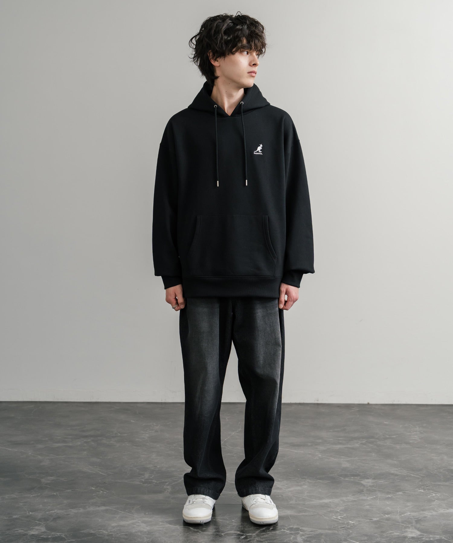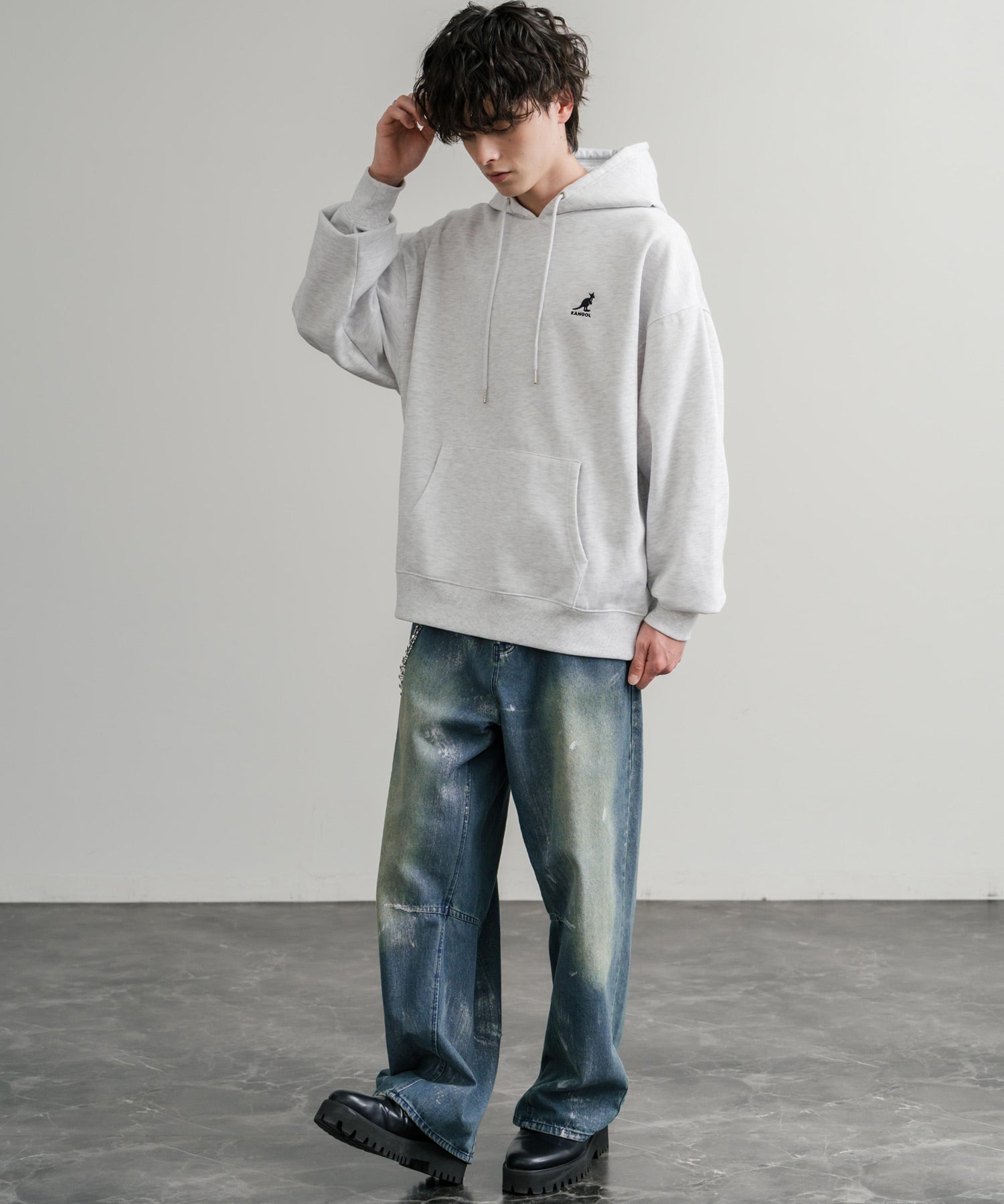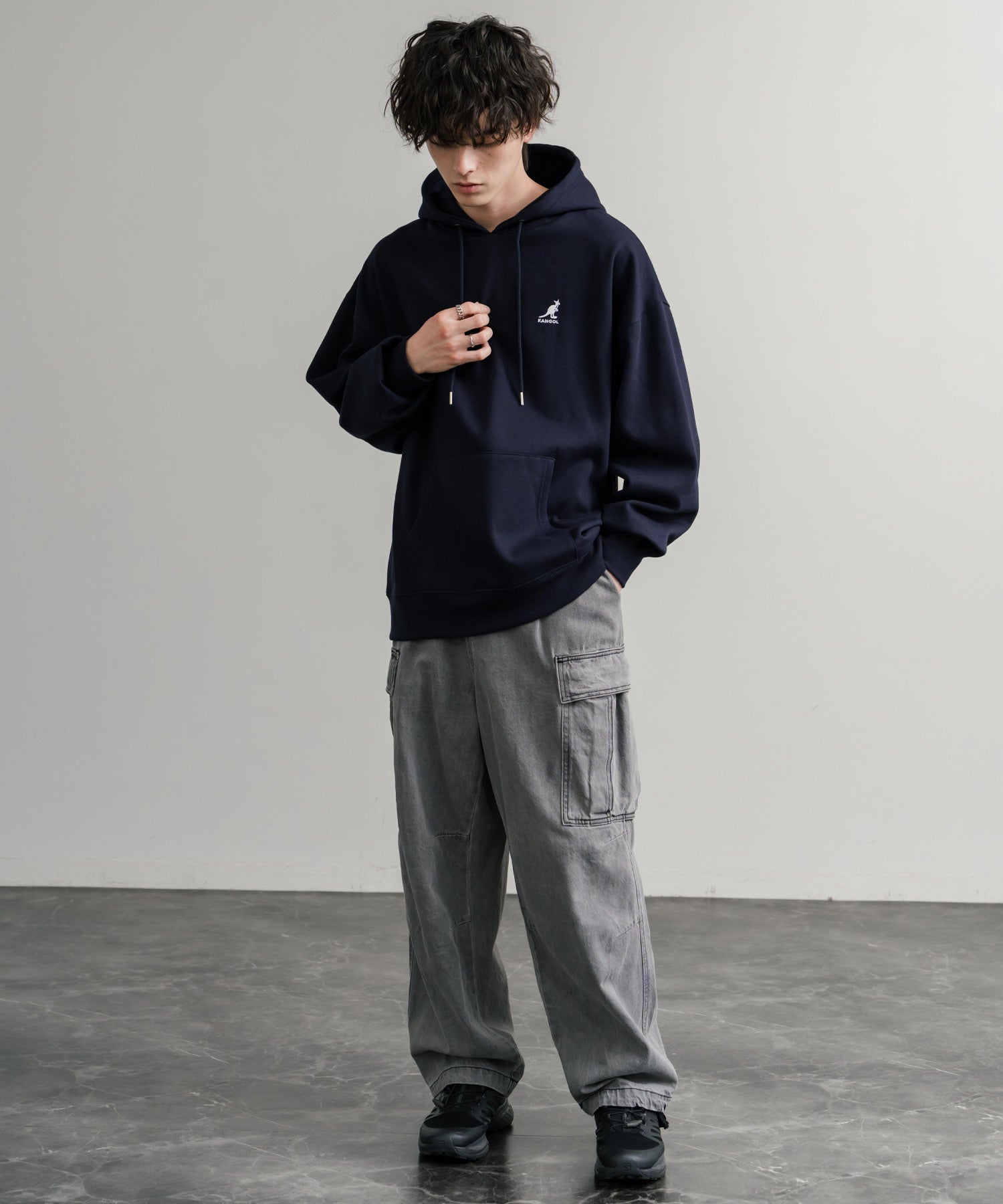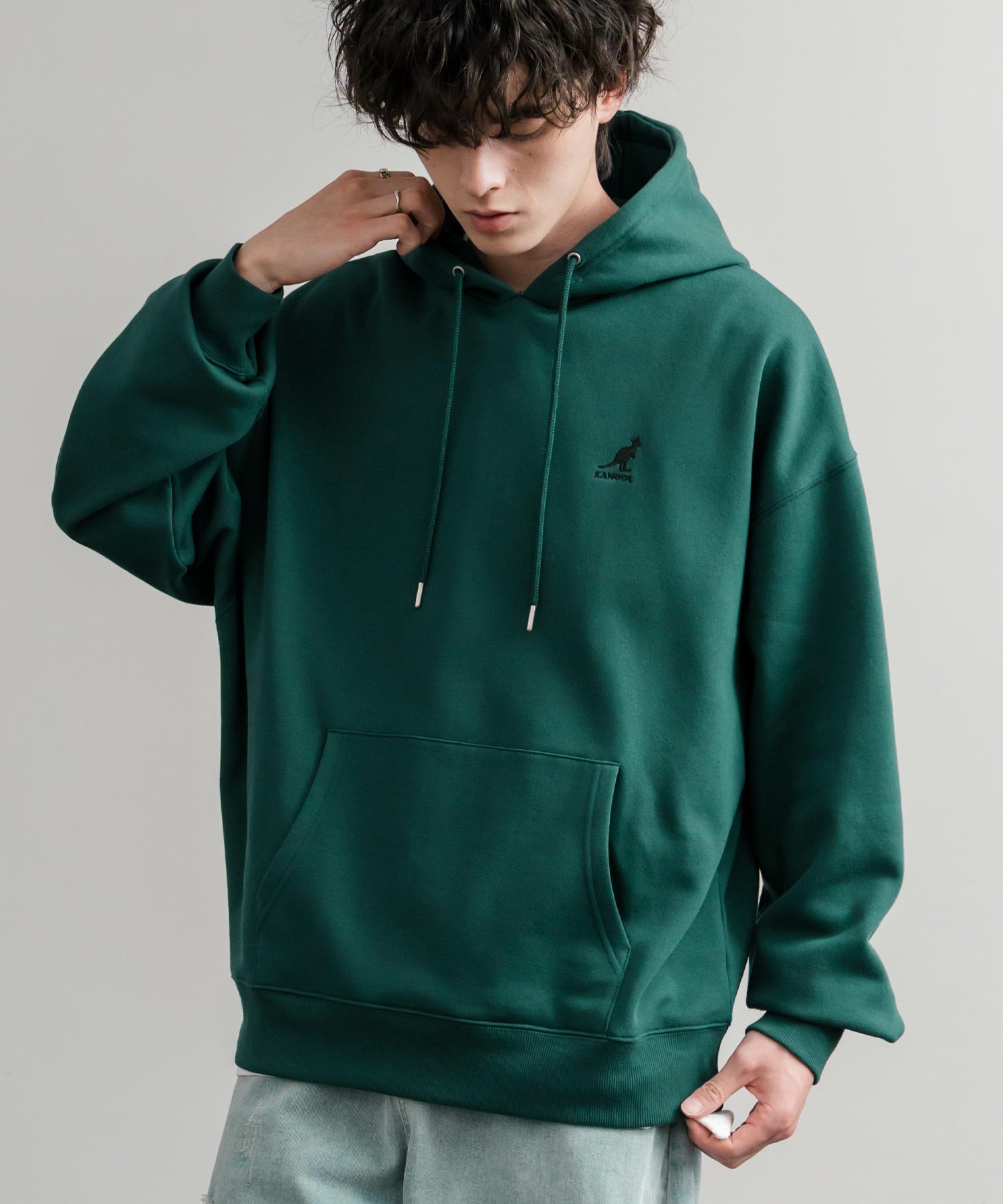 トレンドに左右されない着回し力の高さ!KANGOL別注コラボ裏起毛パーカー。