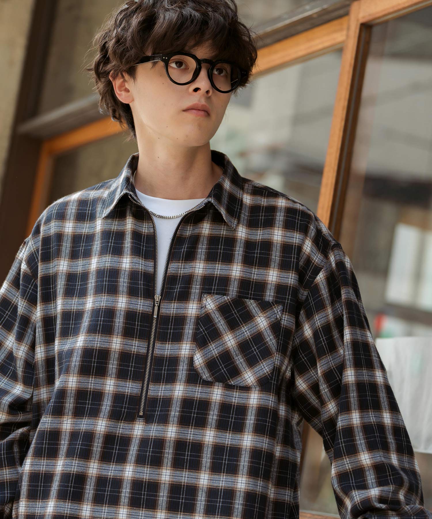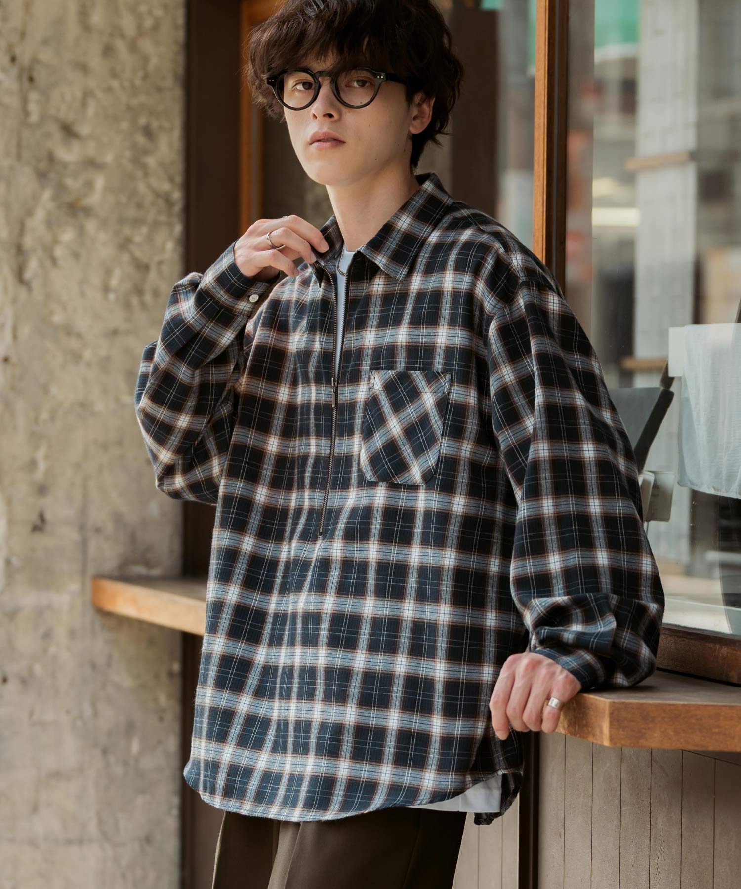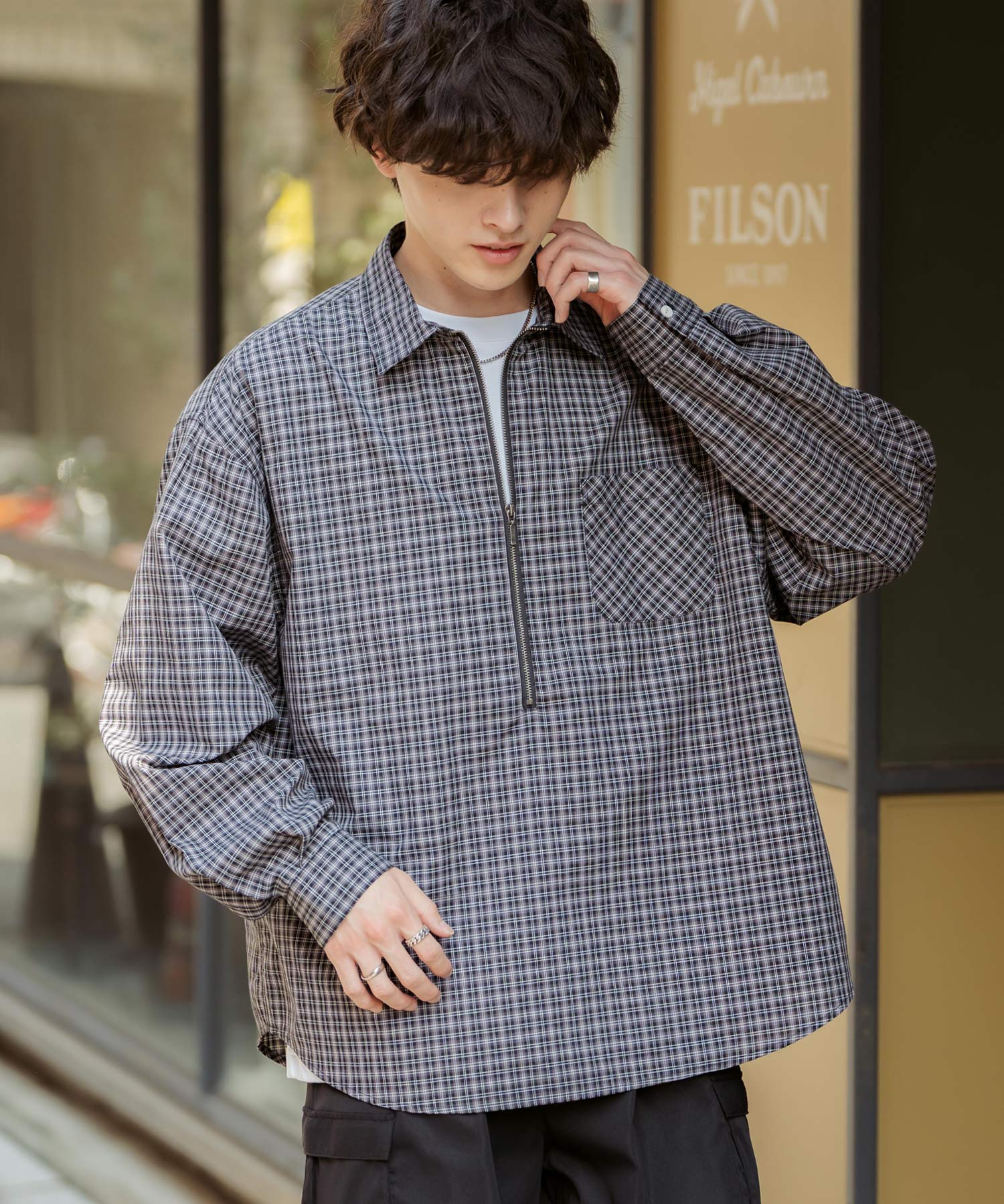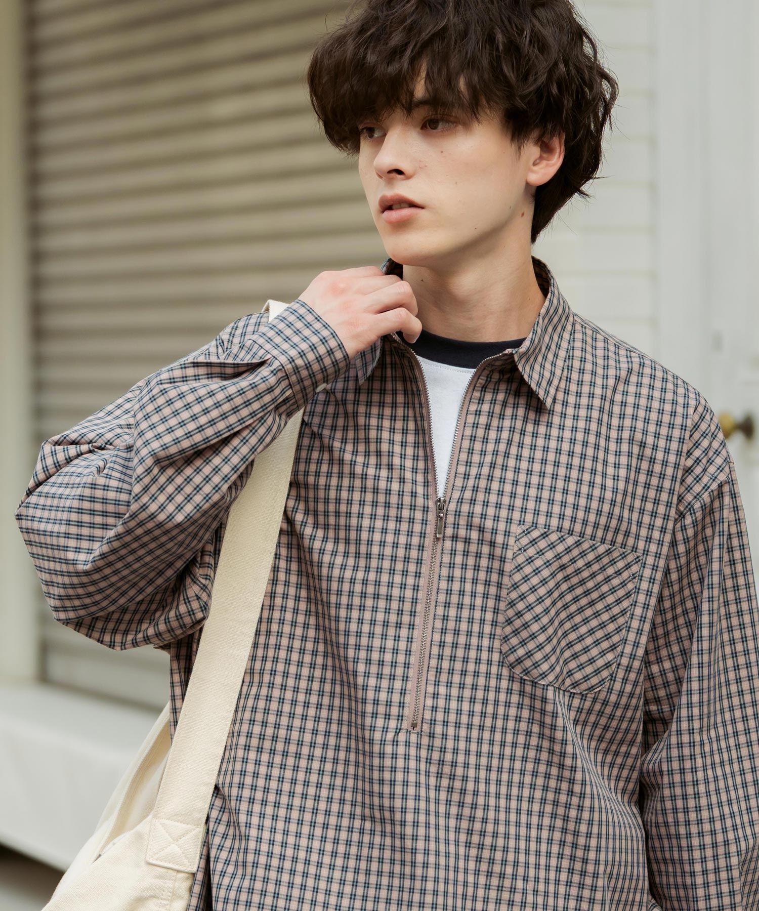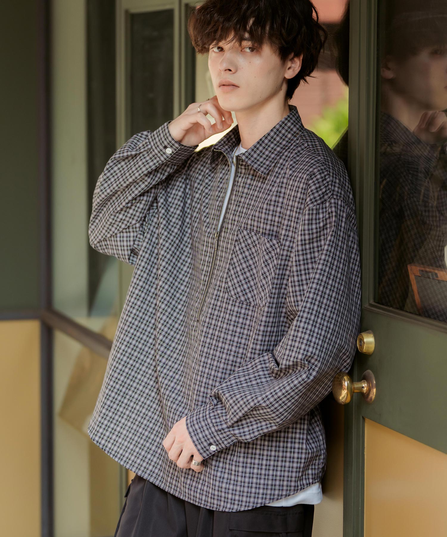 着るだけでサマになるチェック柄!ハーフジップオーバーサイズチェックシャツ。