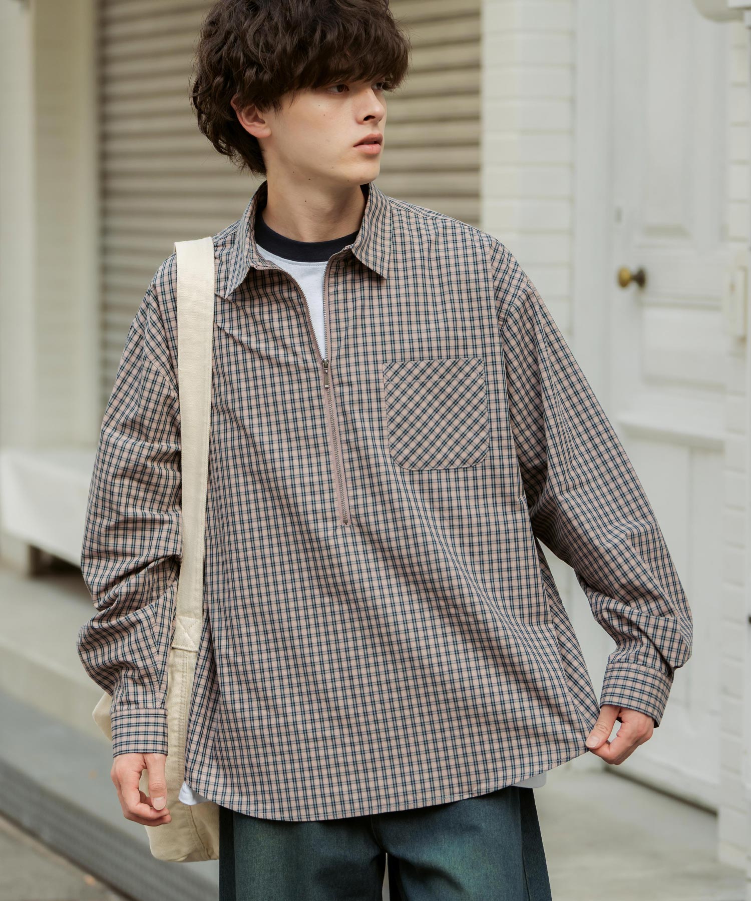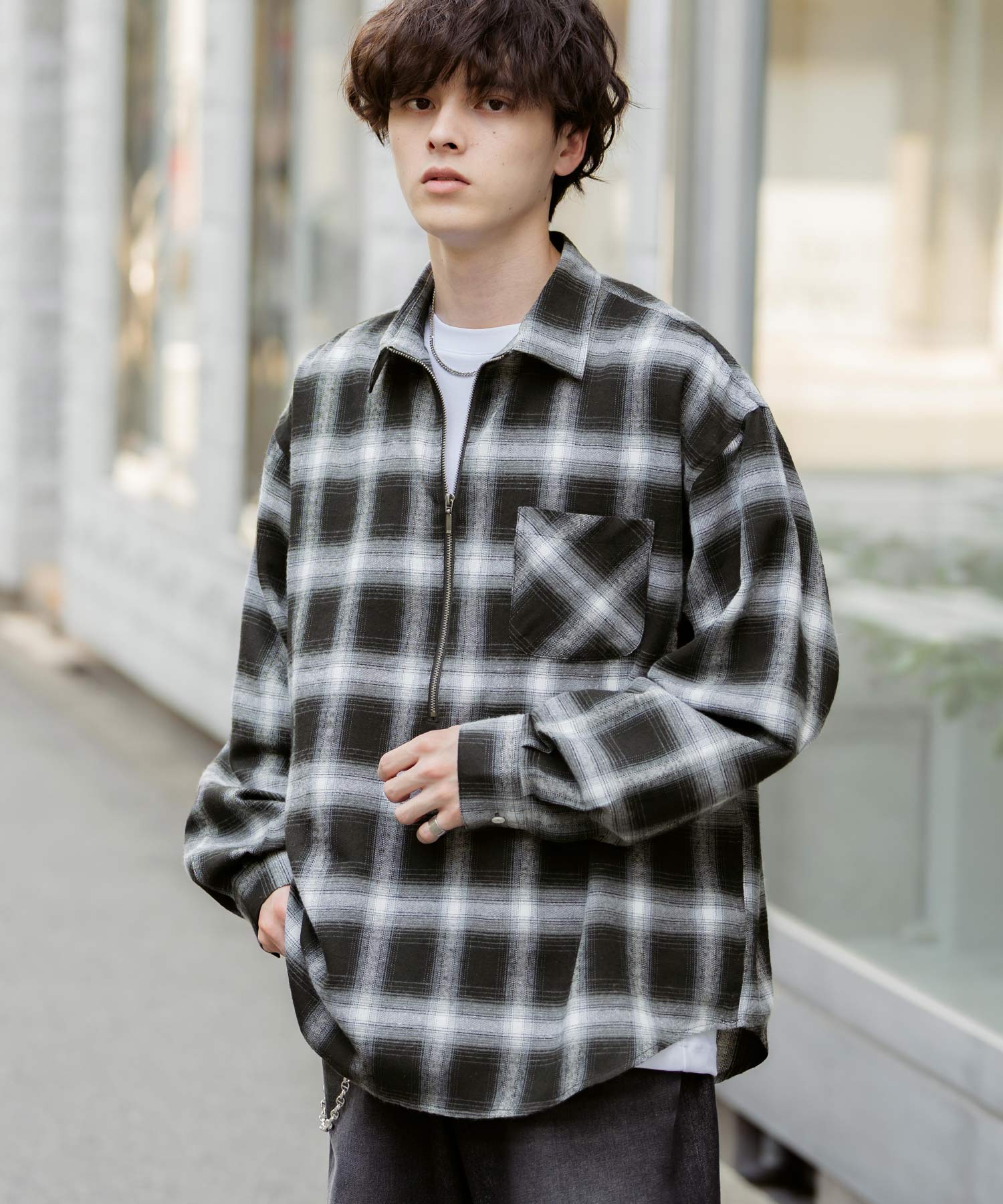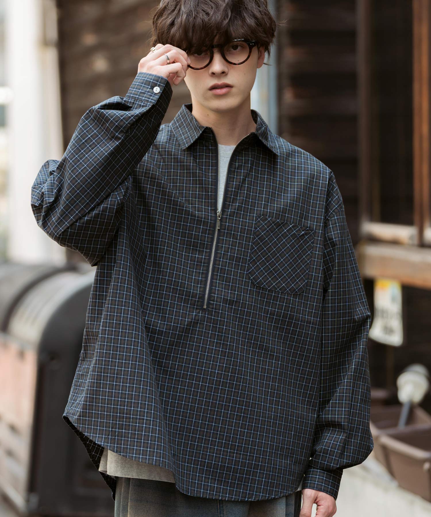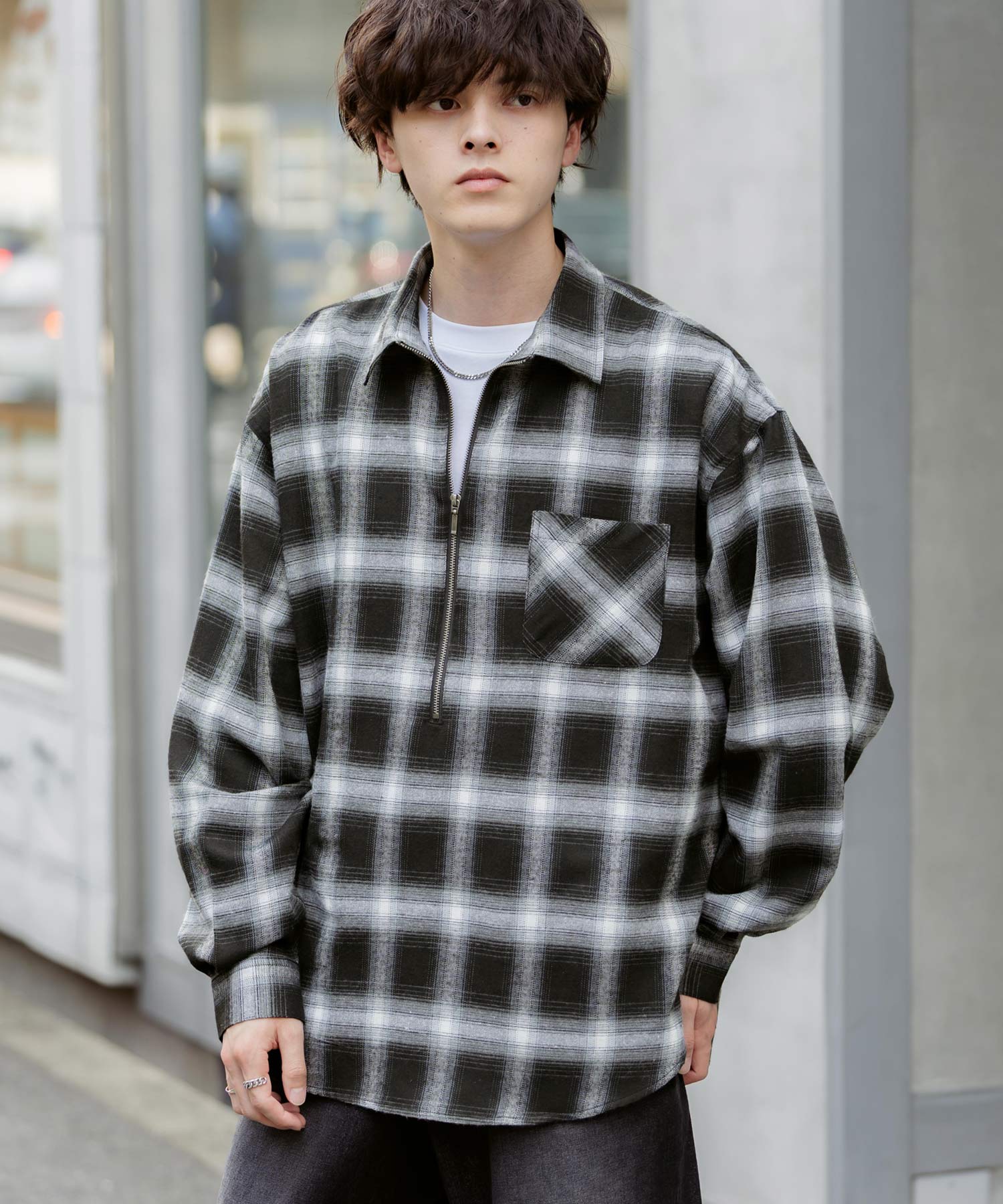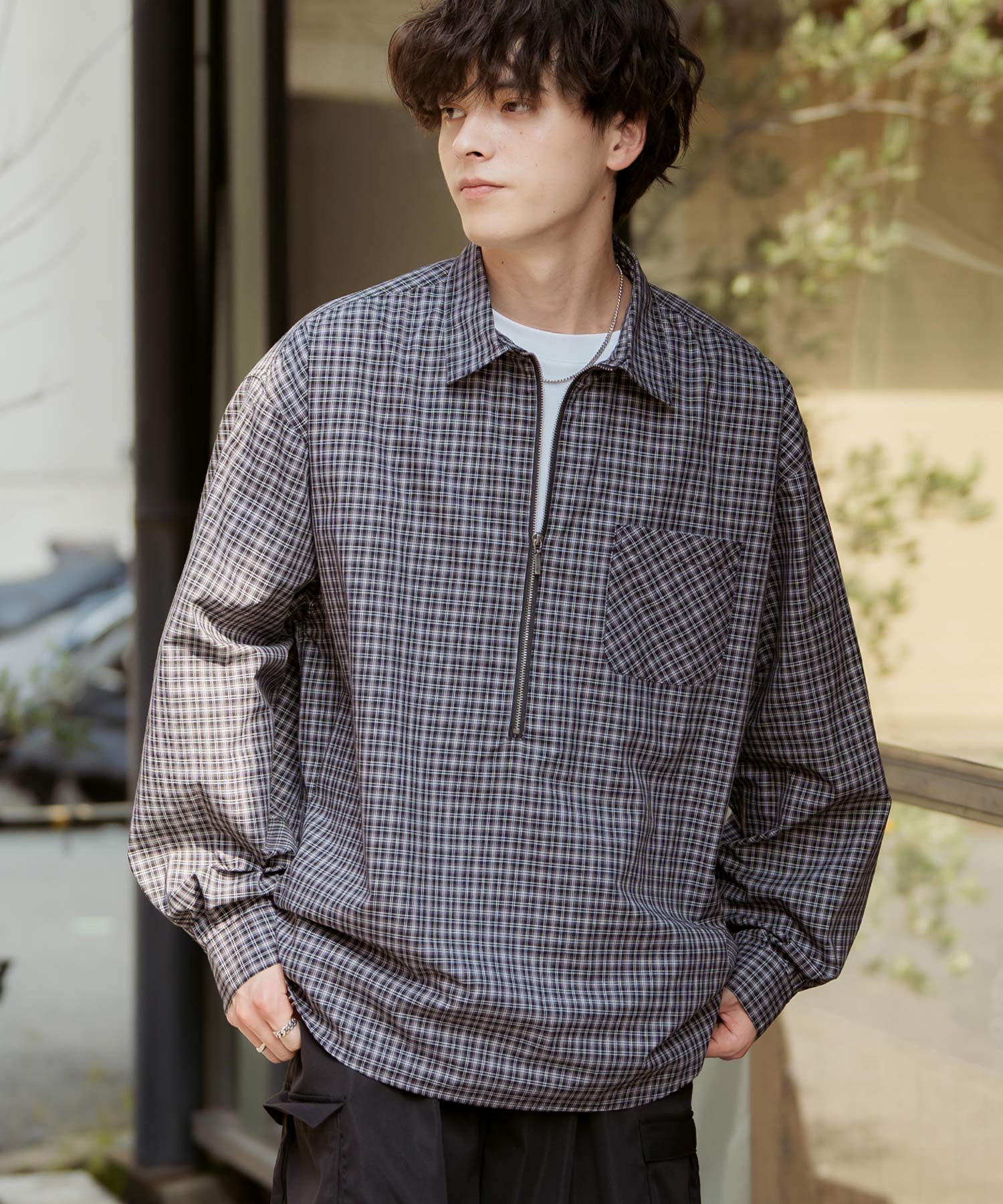 着るだけでサマになるチェック柄!ハーフジップオーバーサイズチェックシャツ。