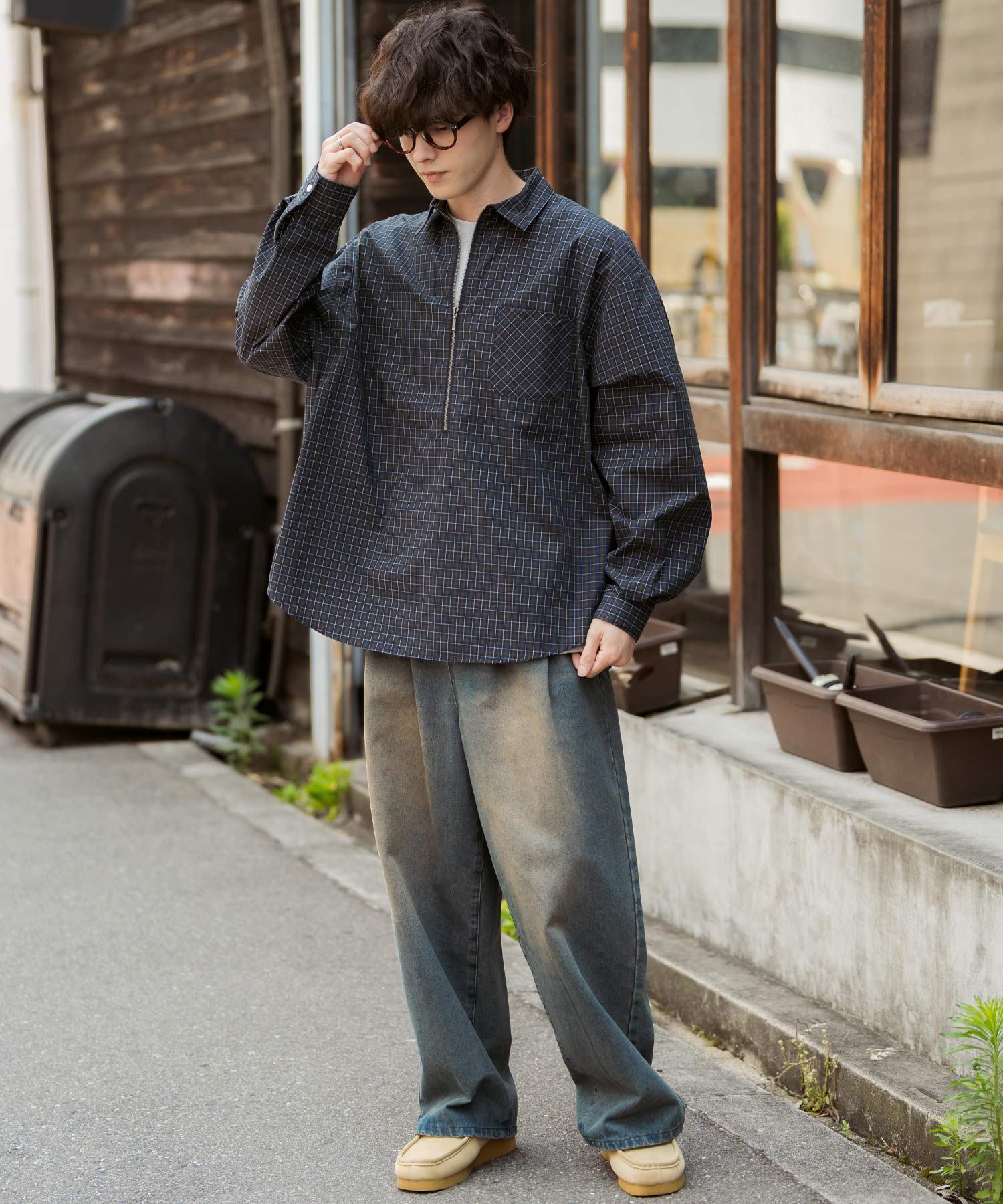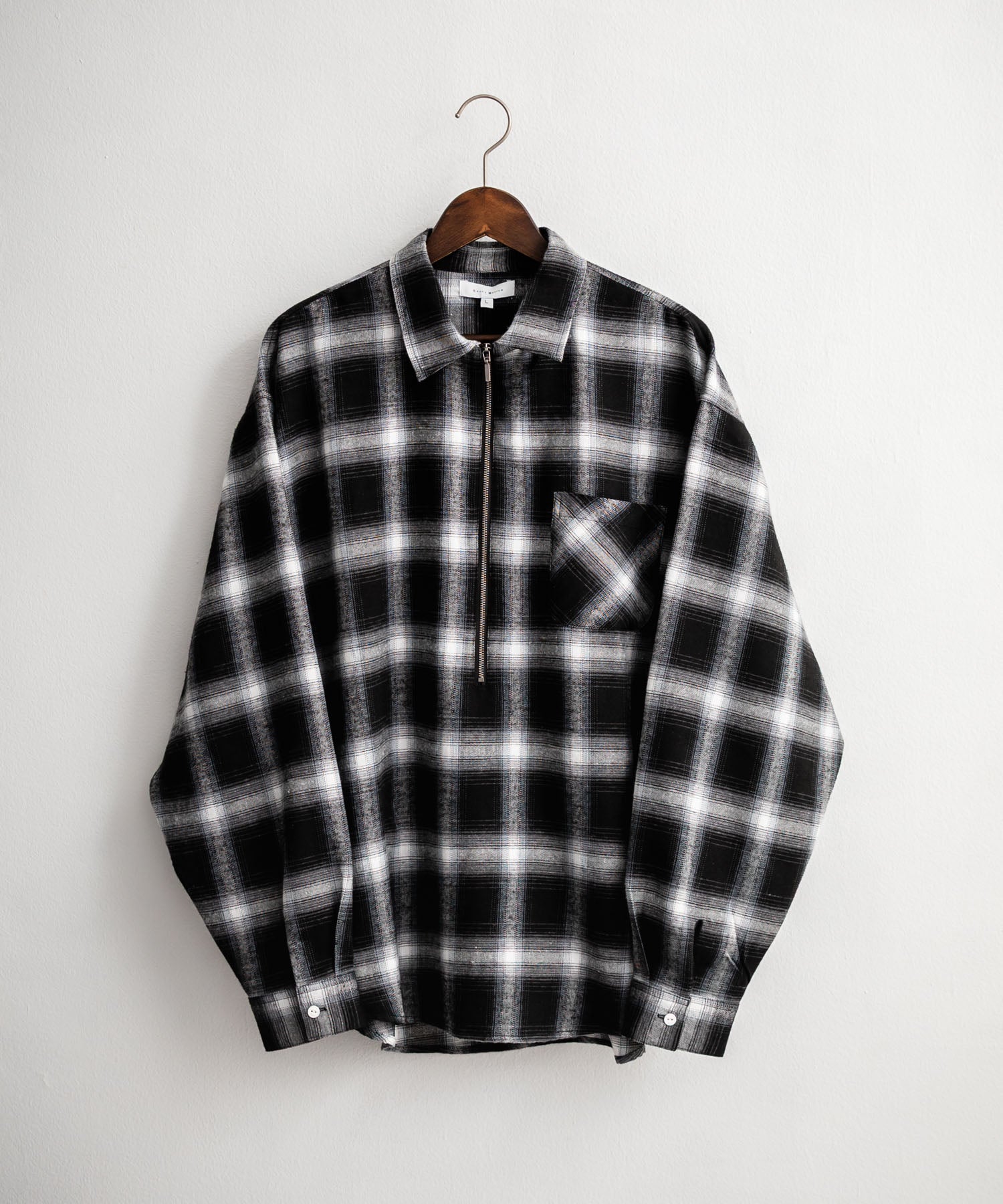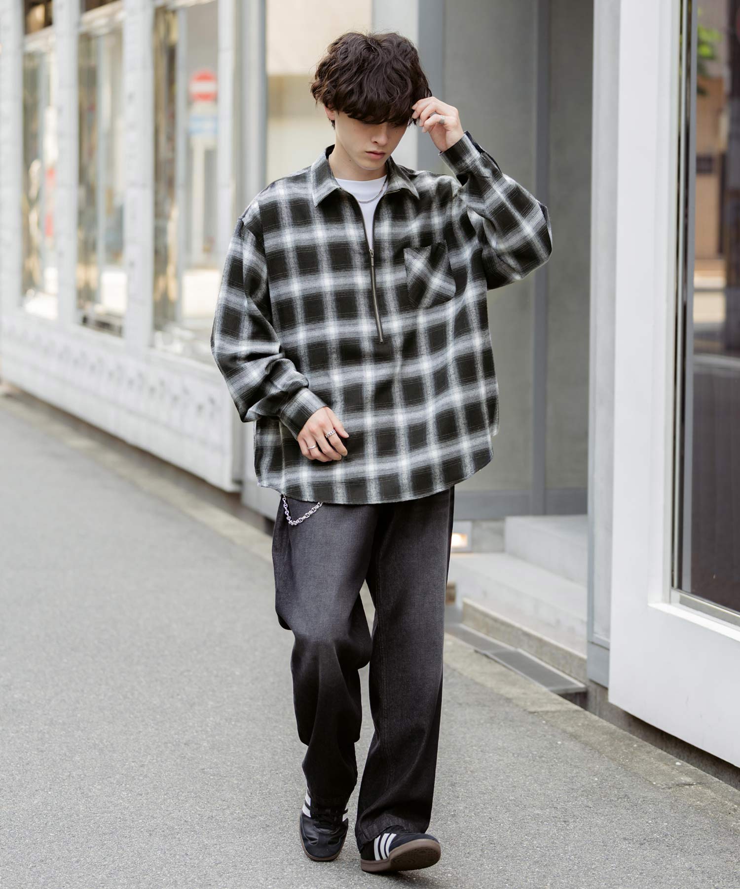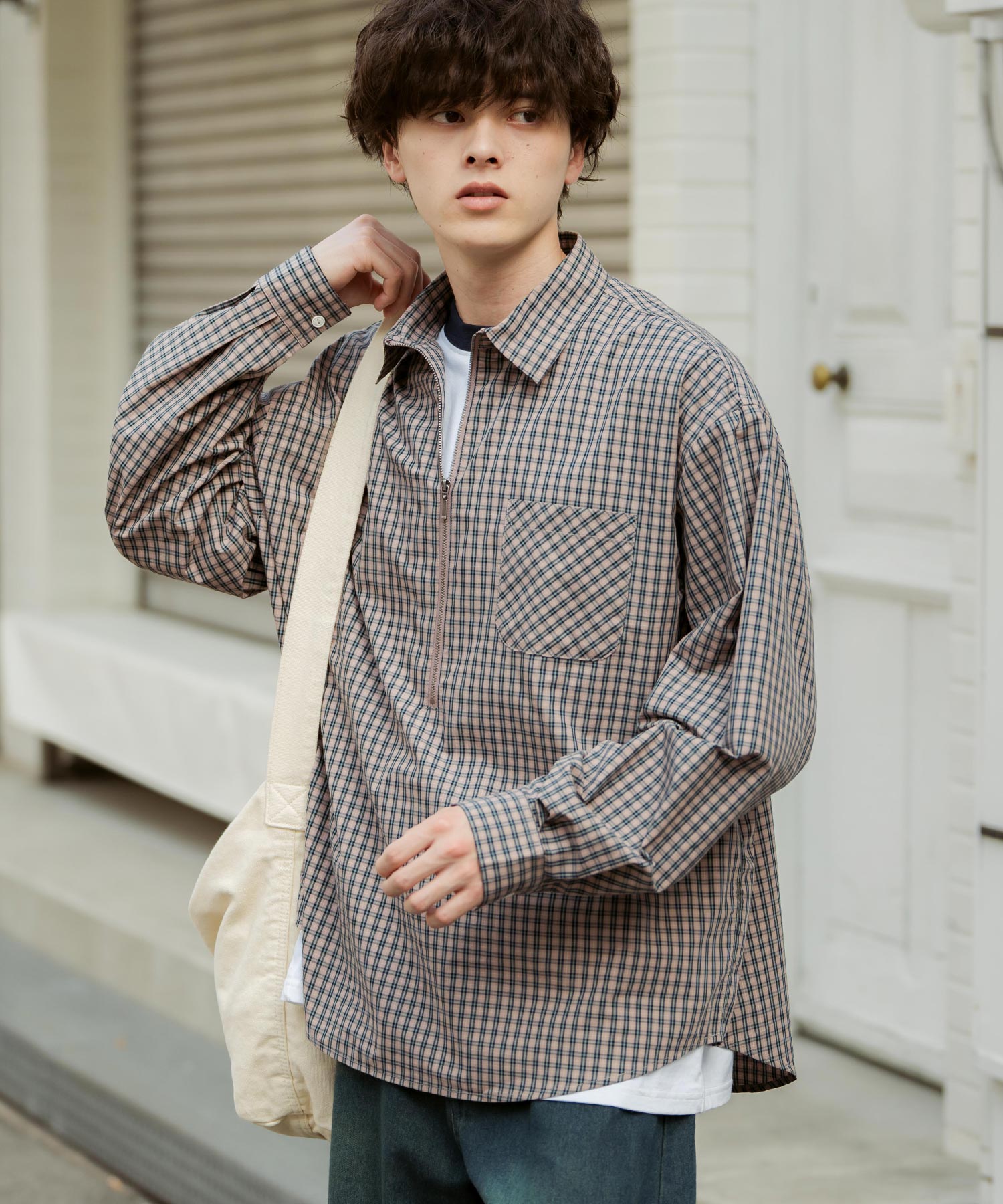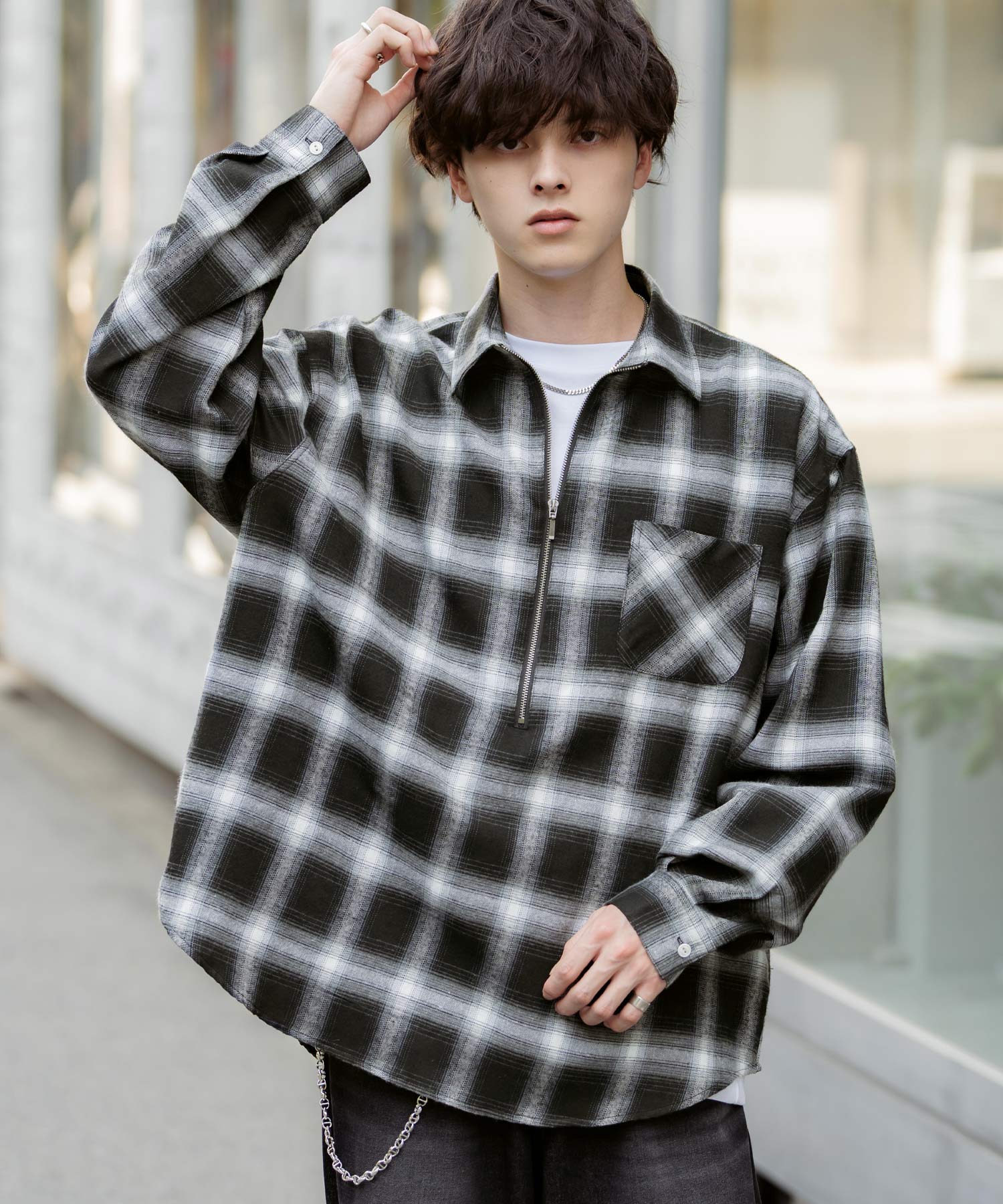 着るだけでサマになるチェック柄!ハーフジップオーバーサイズチェックシャツ。