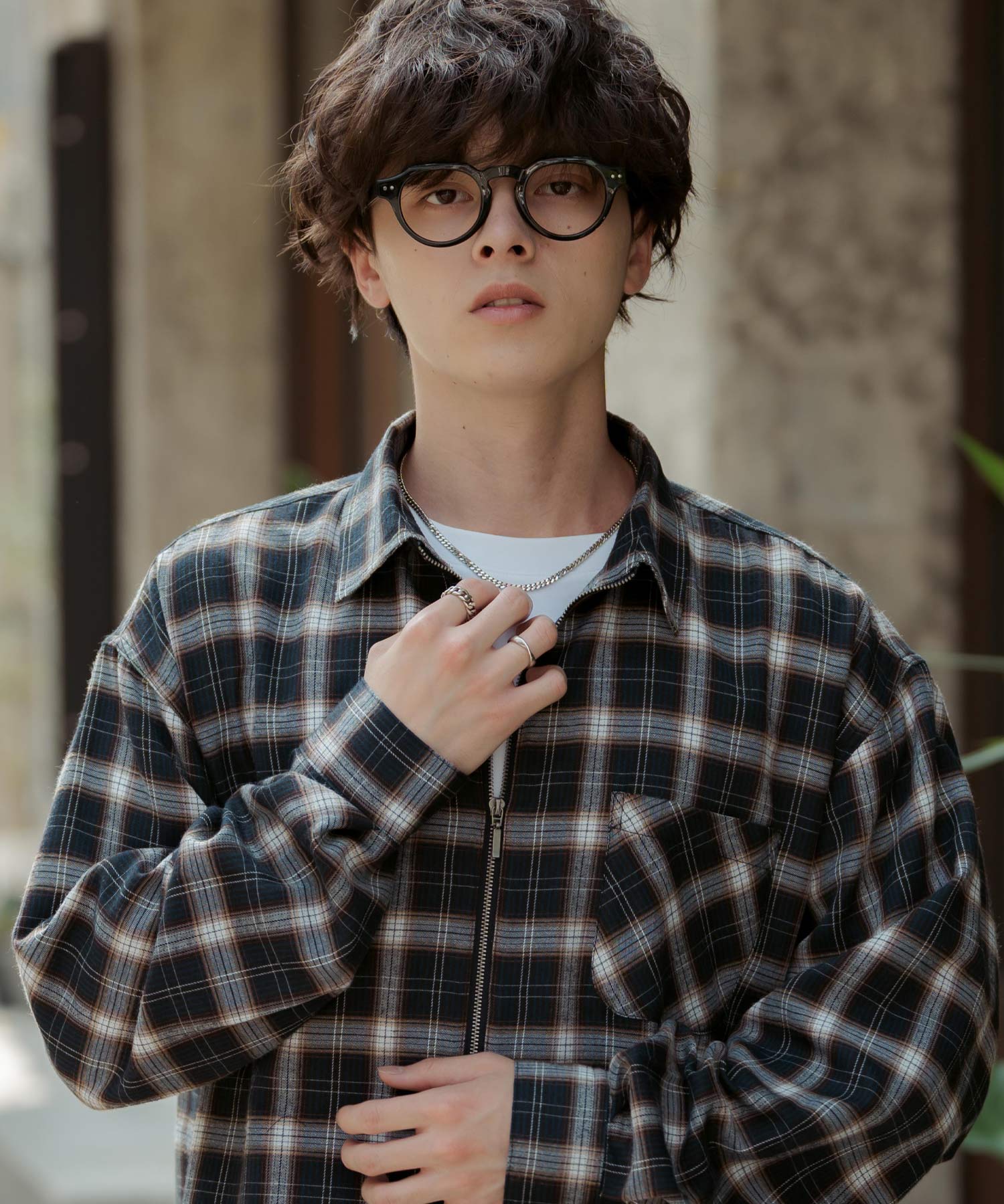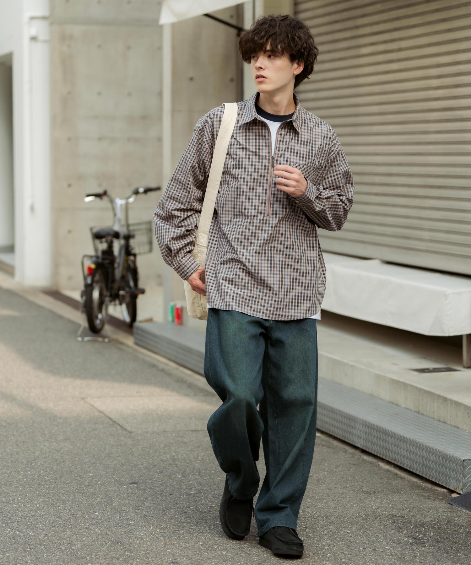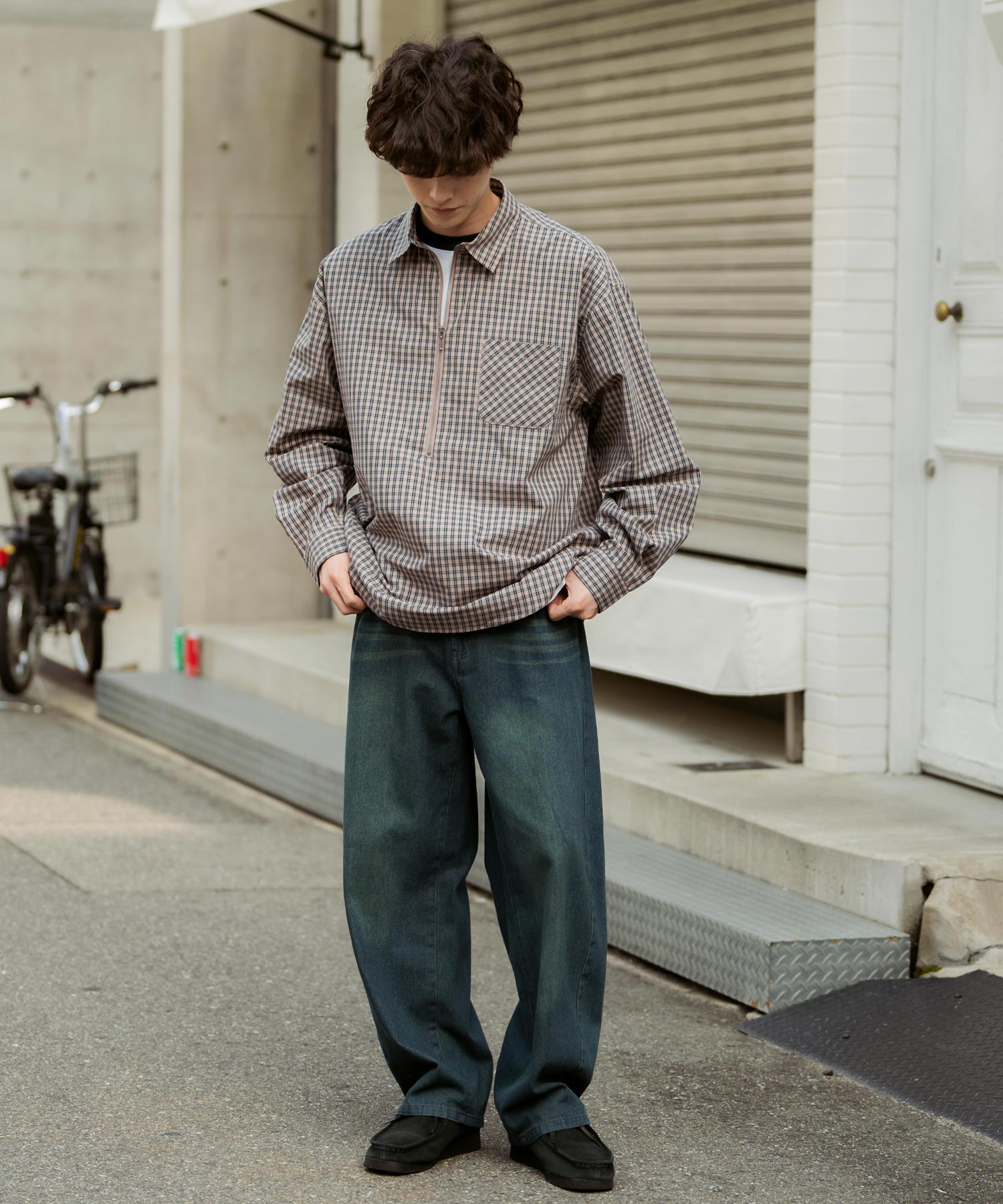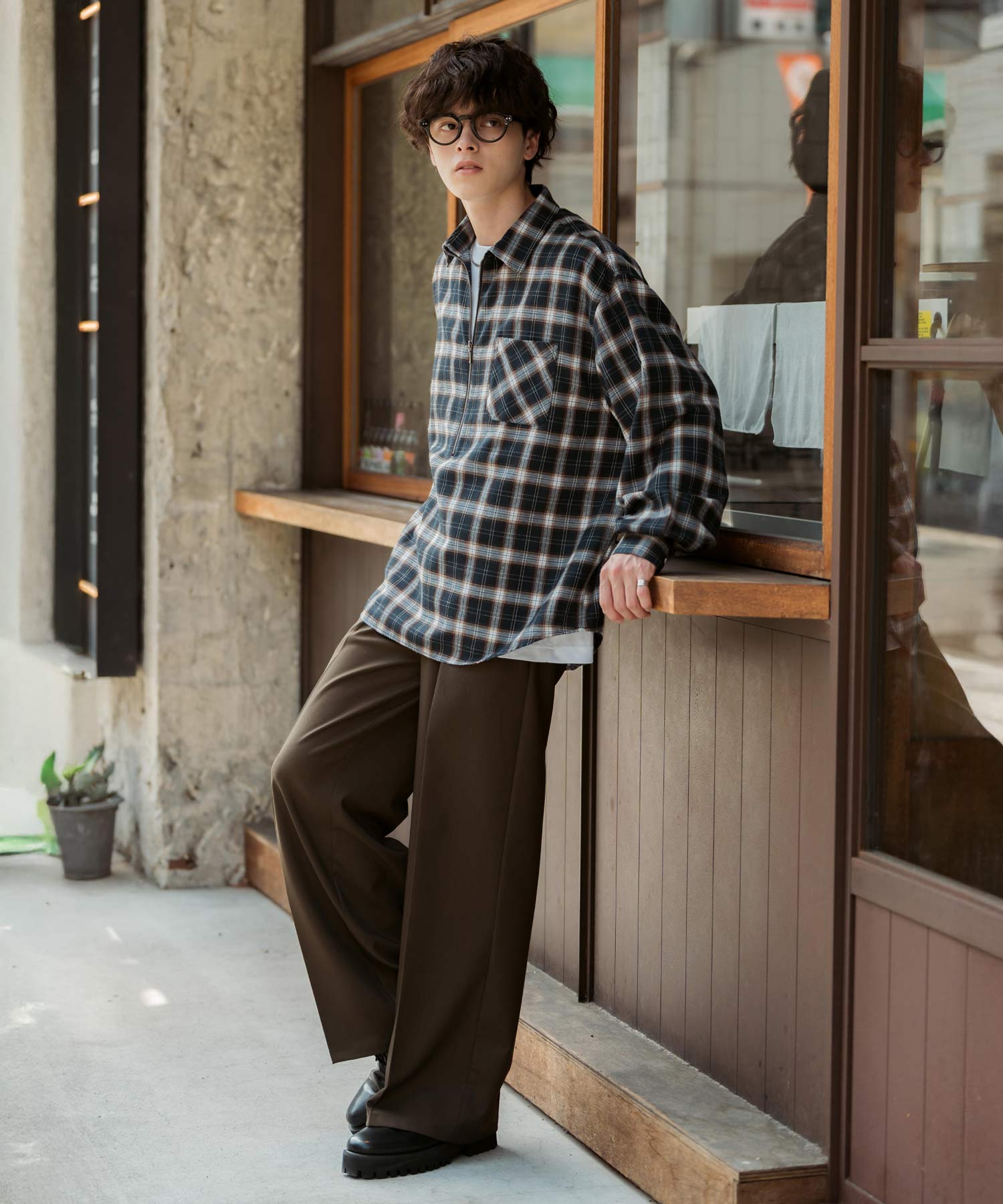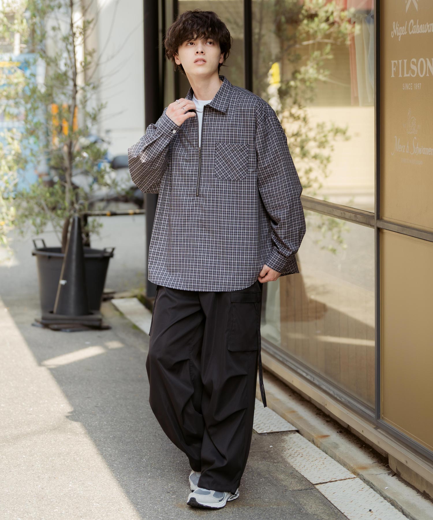 着るだけでサマになるチェック柄!ハーフジップオーバーサイズチェックシャツ。