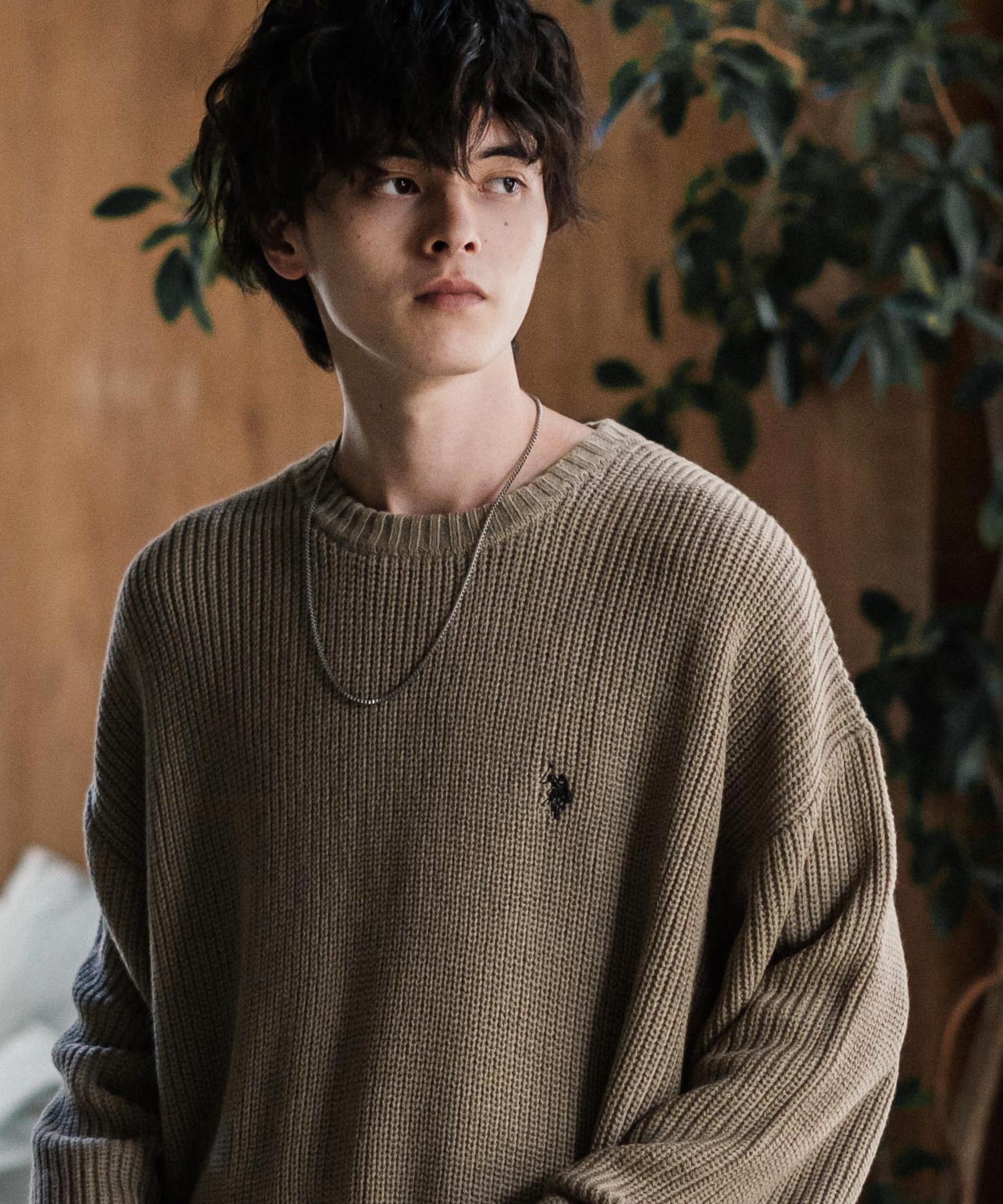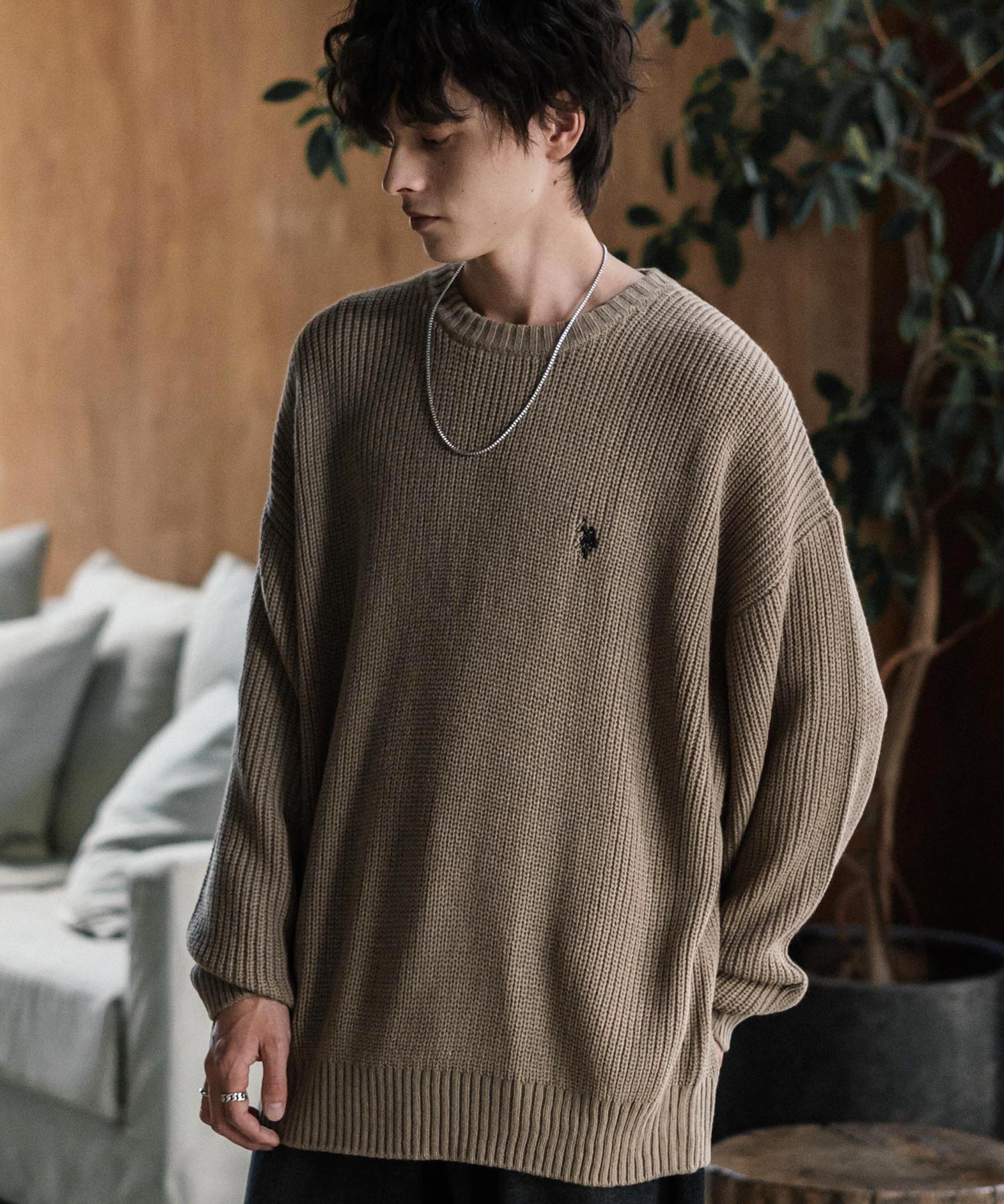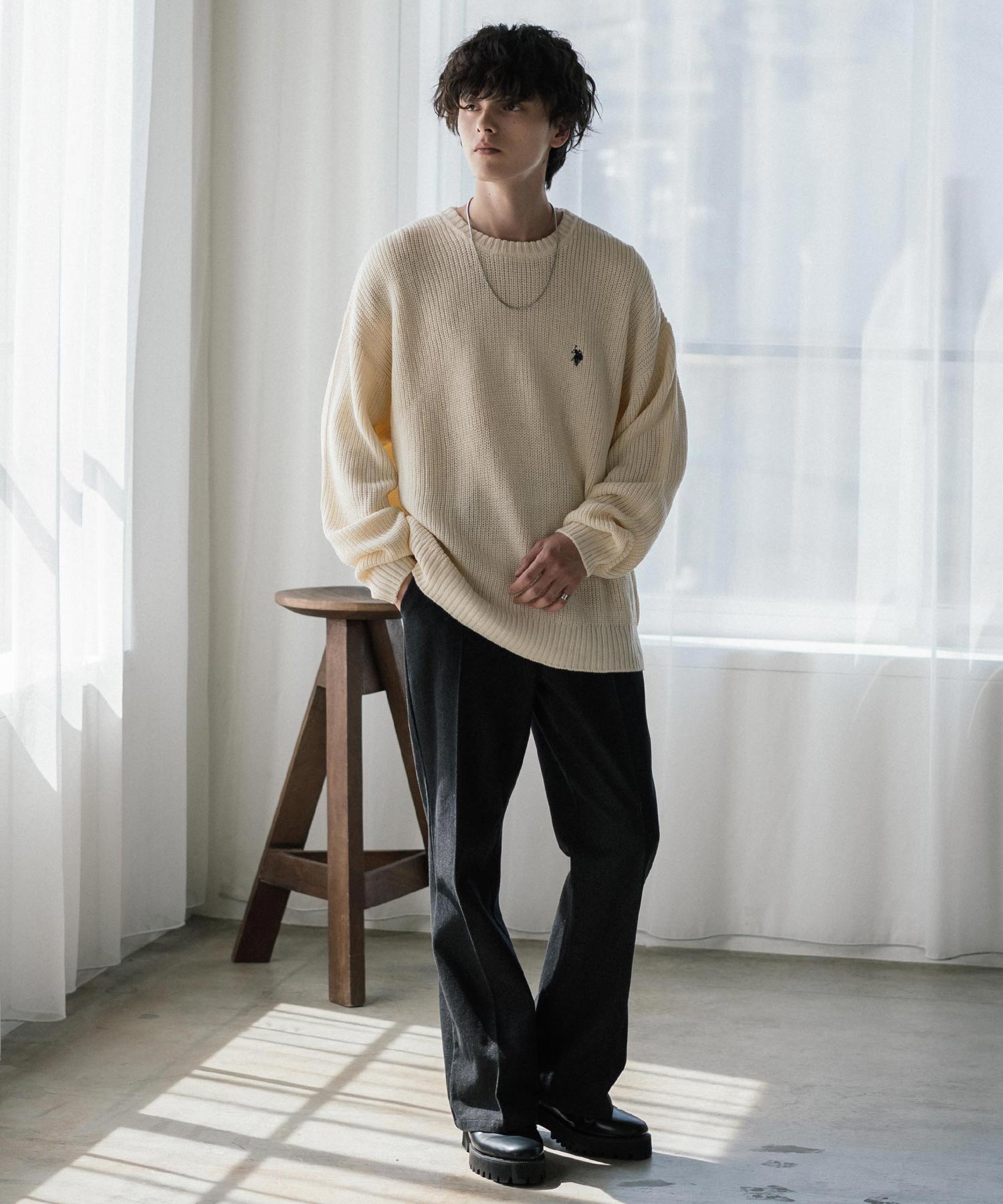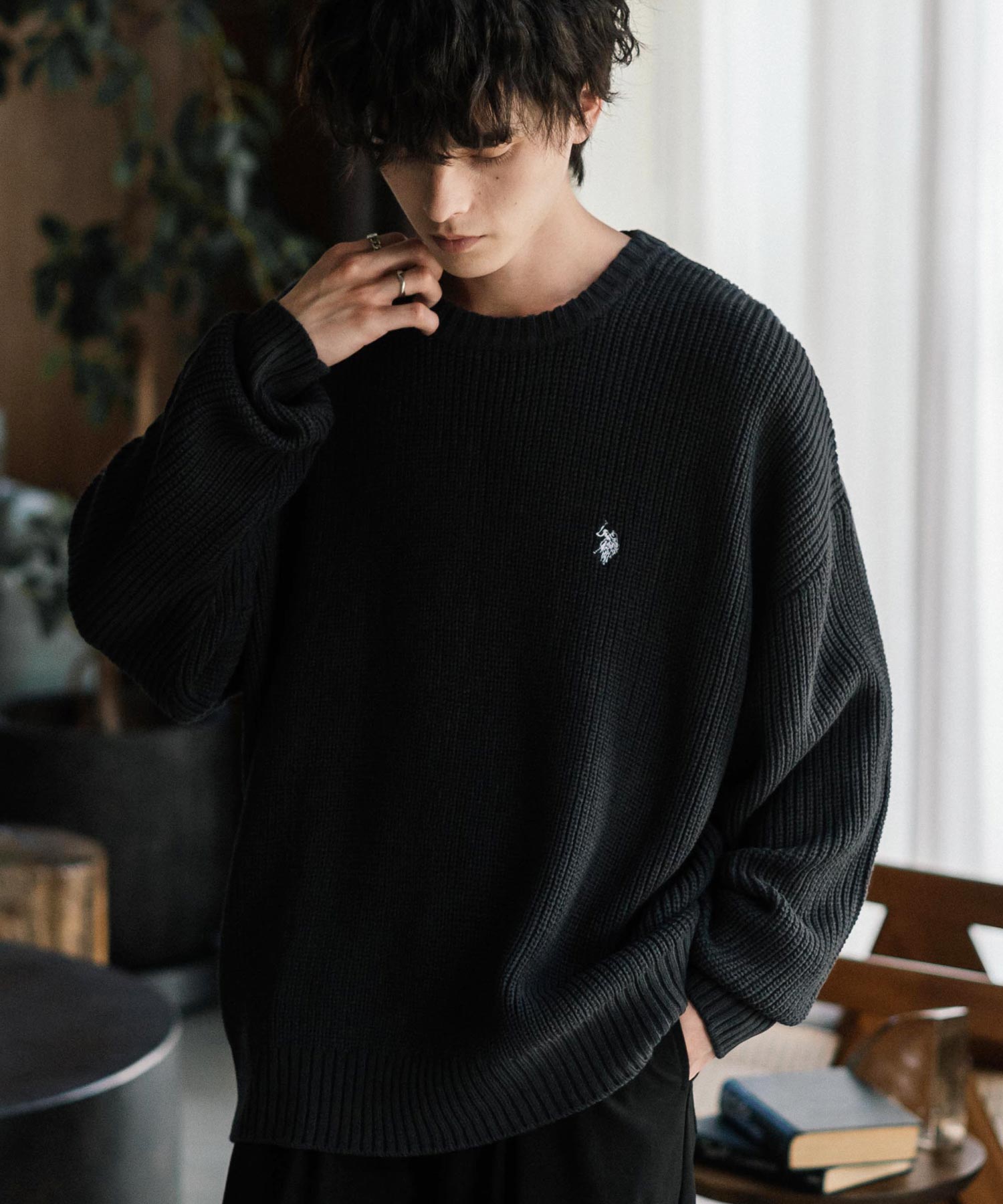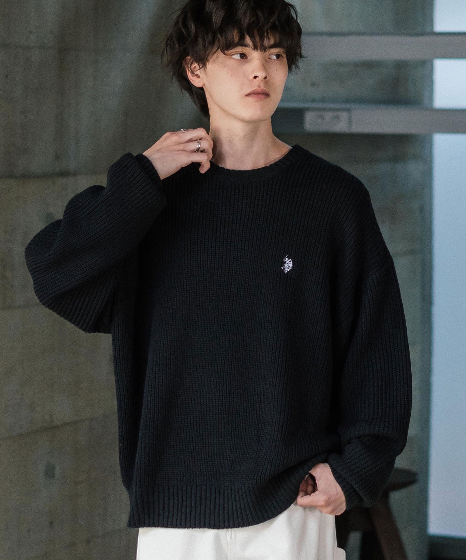 マルチに活躍!U.S. POLO ASSN.別注コラボワンポイント畦編みクルーニット。