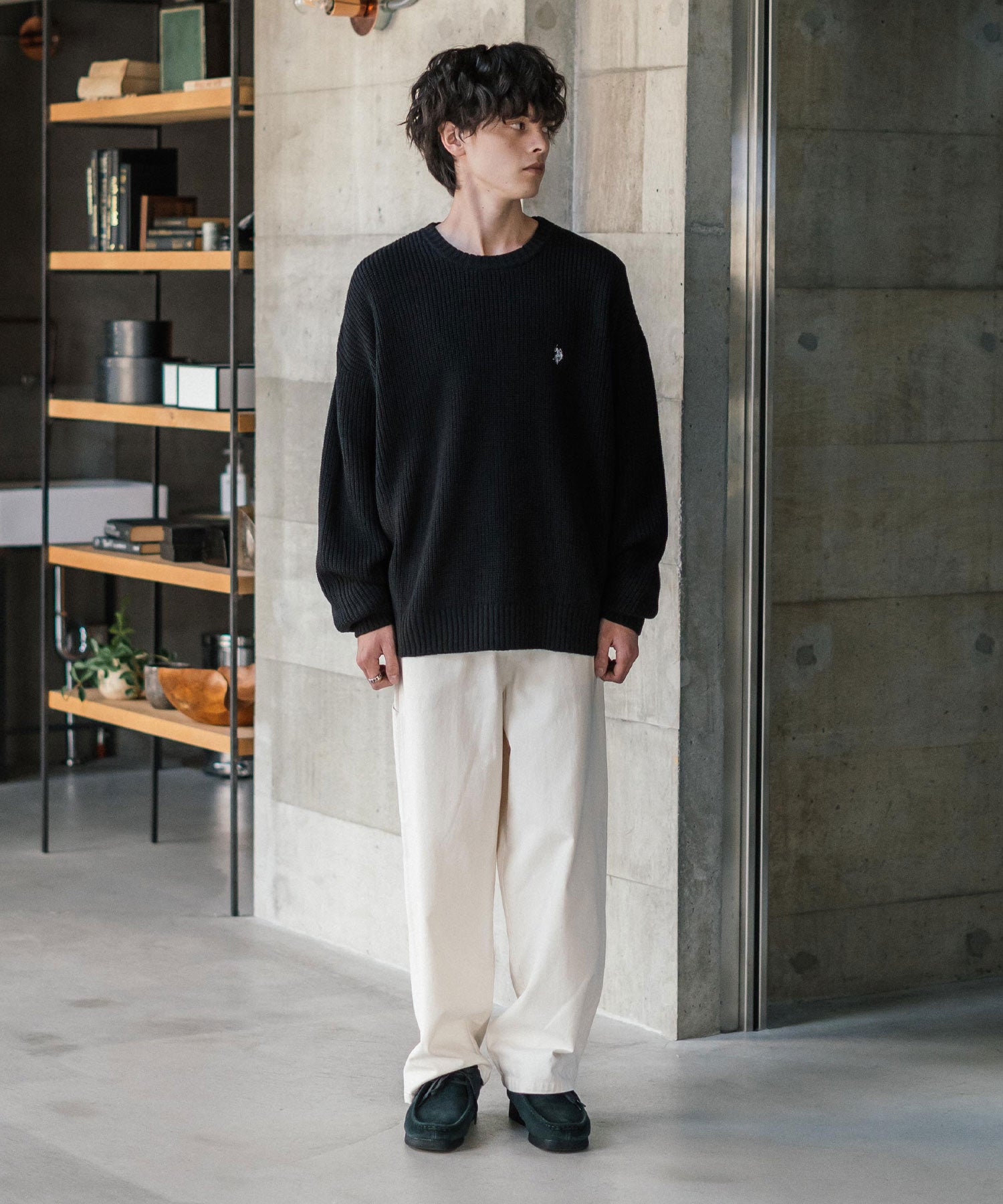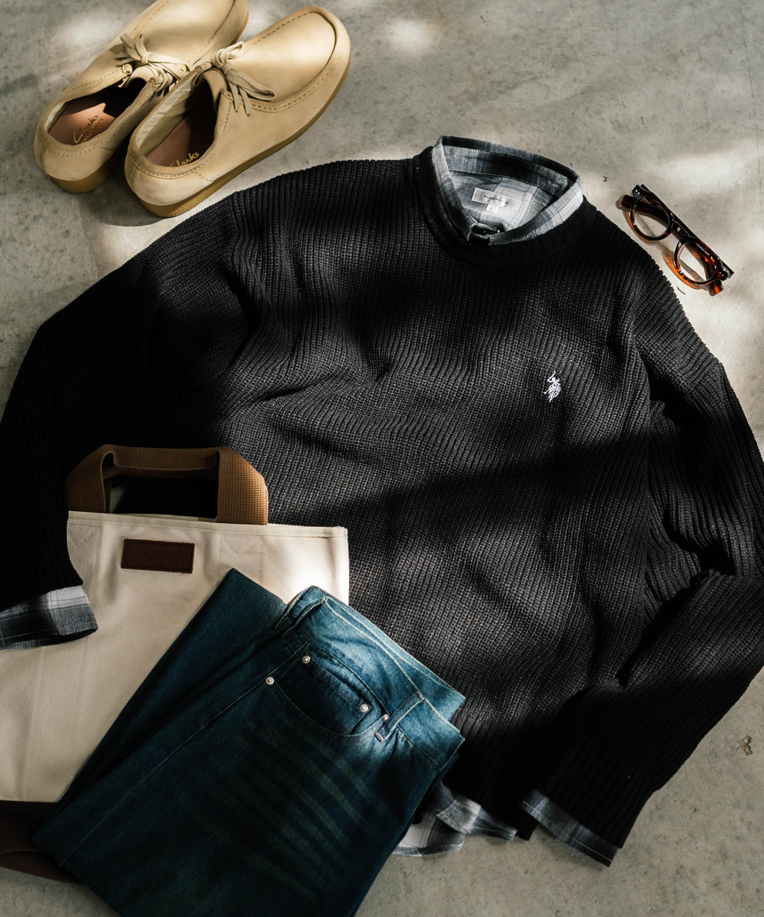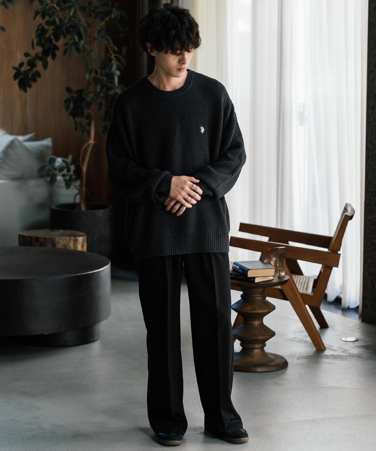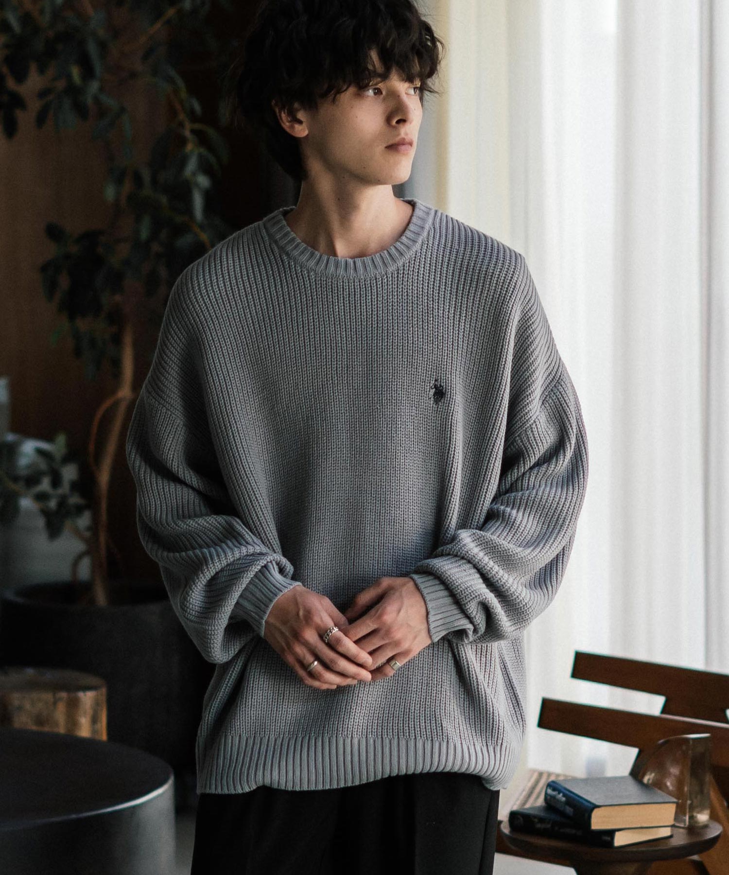 マルチに活躍!U.S. POLO ASSN.別注コラボワンポイント畦編みクルーニット。