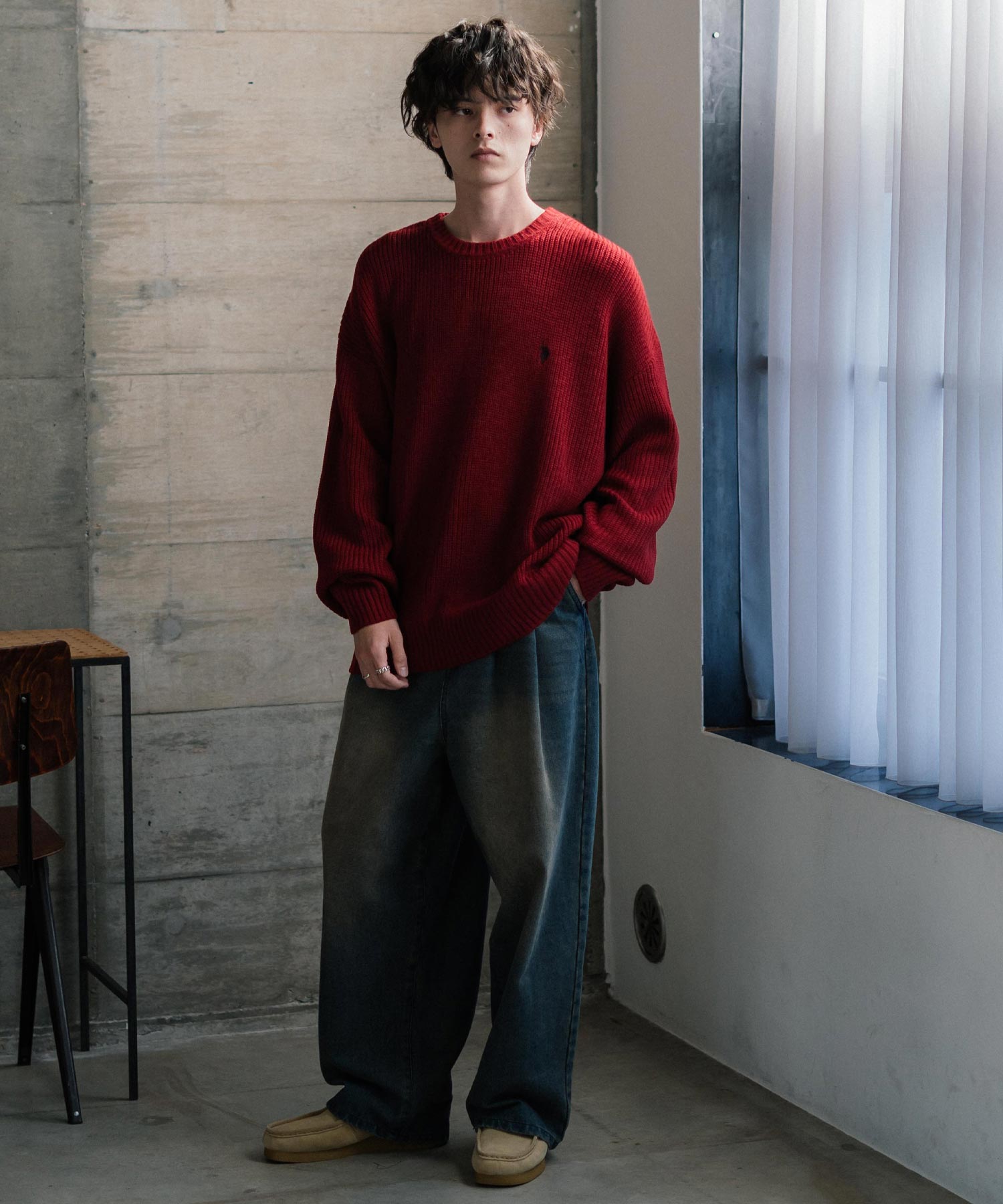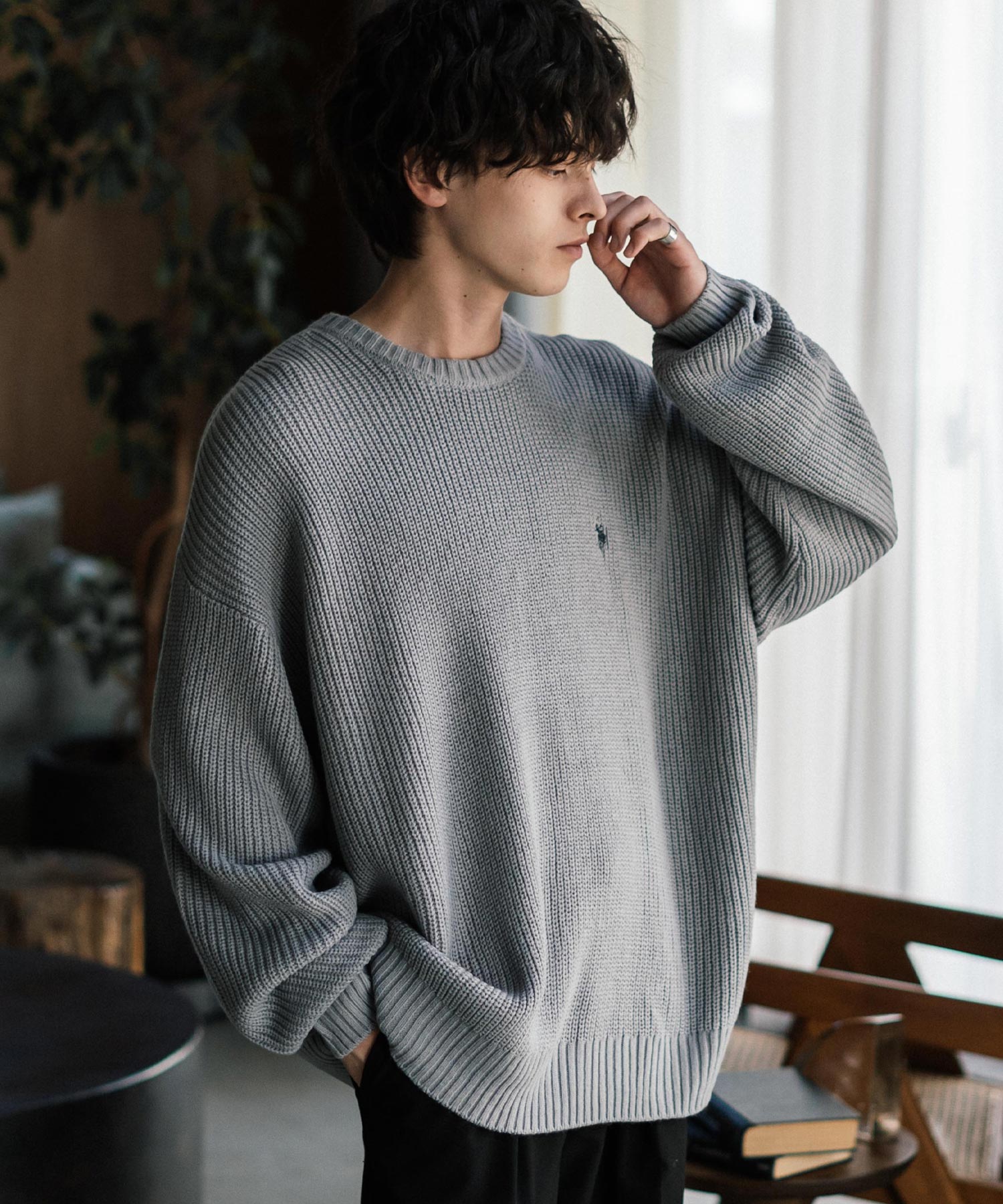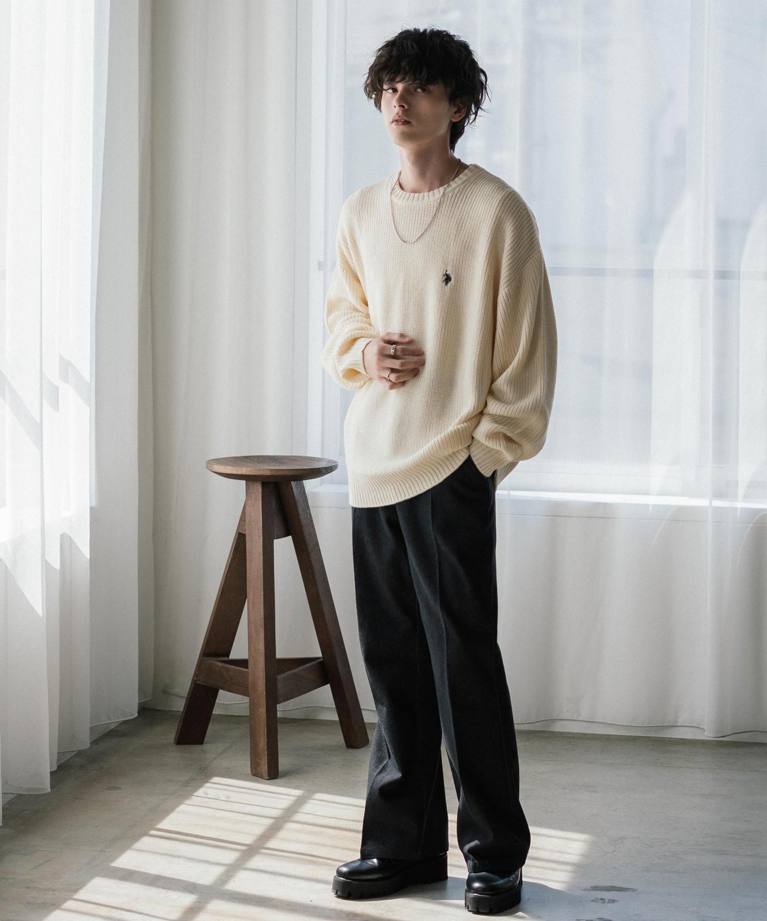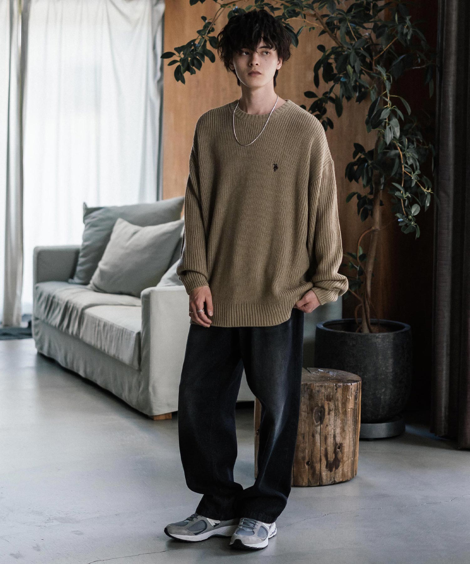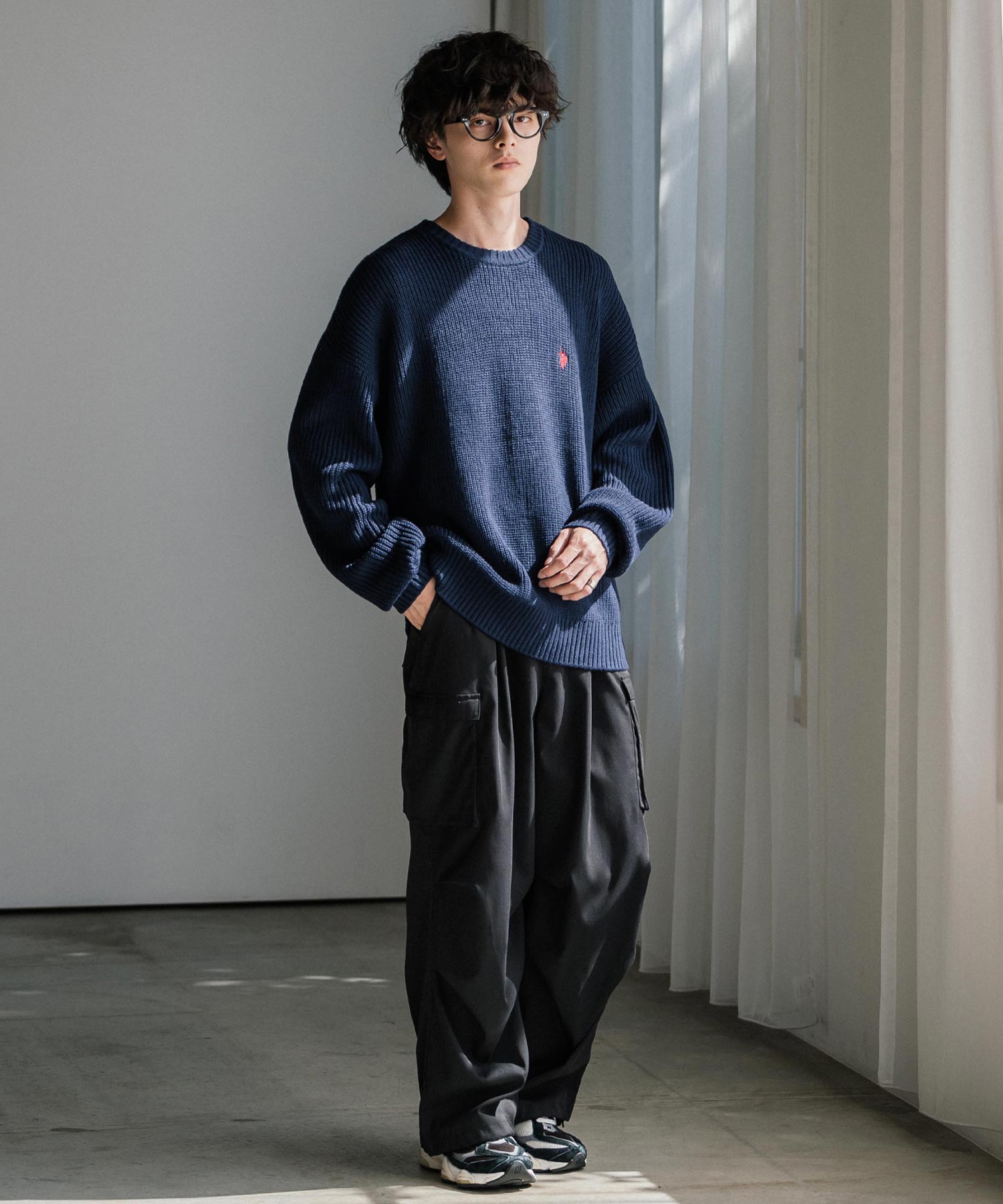 マルチに活躍!U.S. POLO ASSN.別注コラボワンポイント畦編みクルーニット。