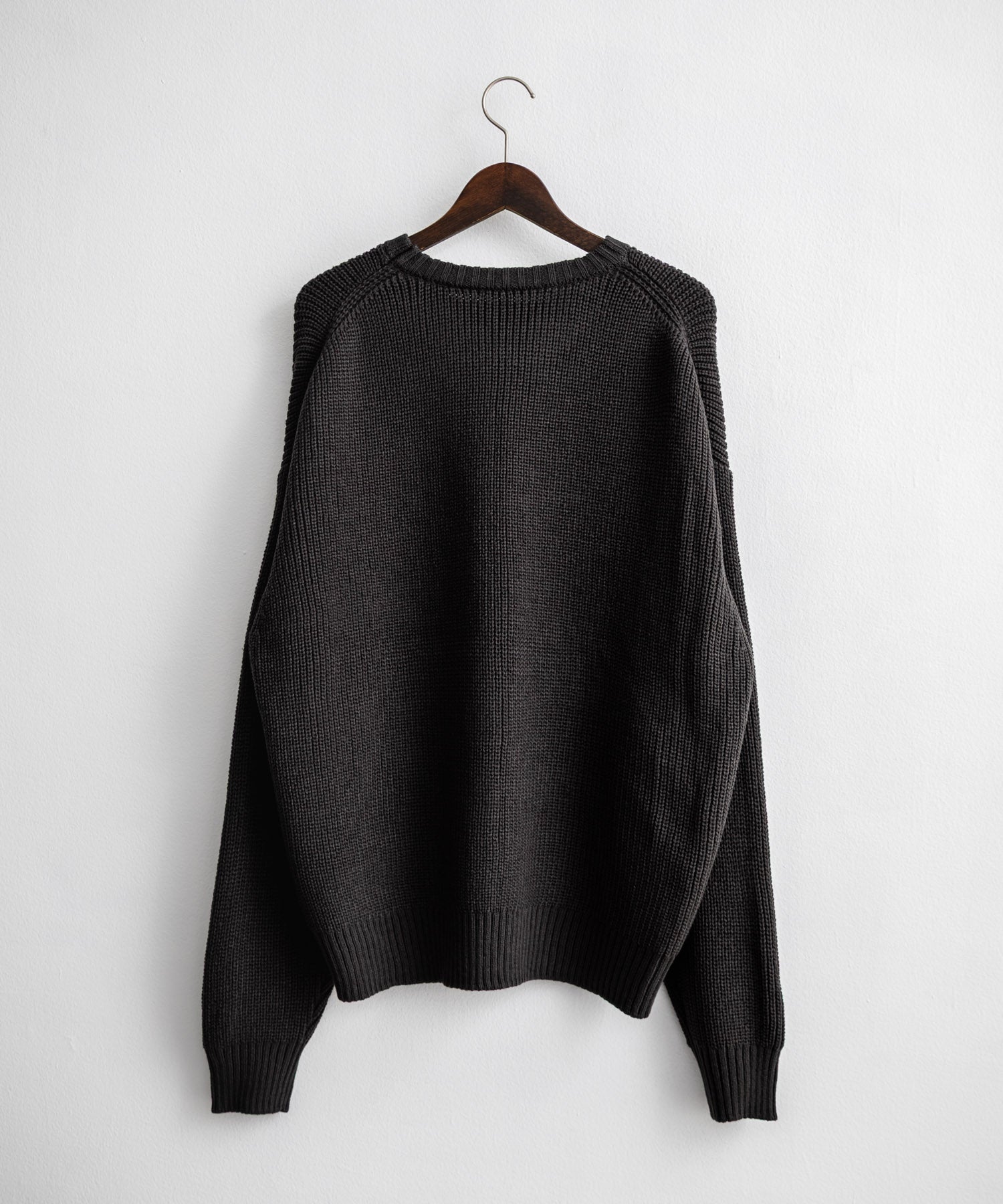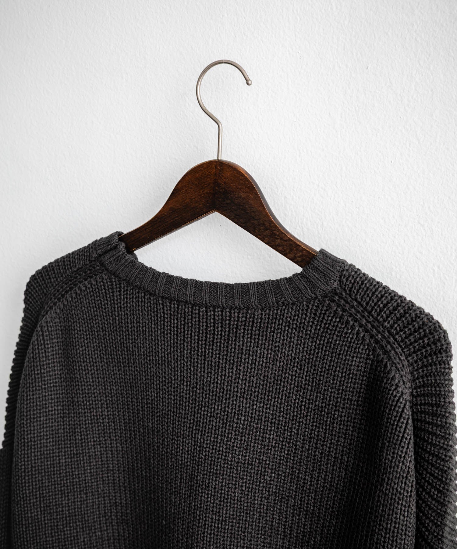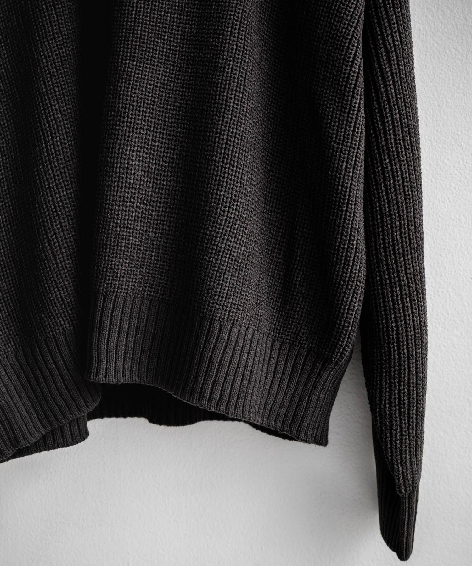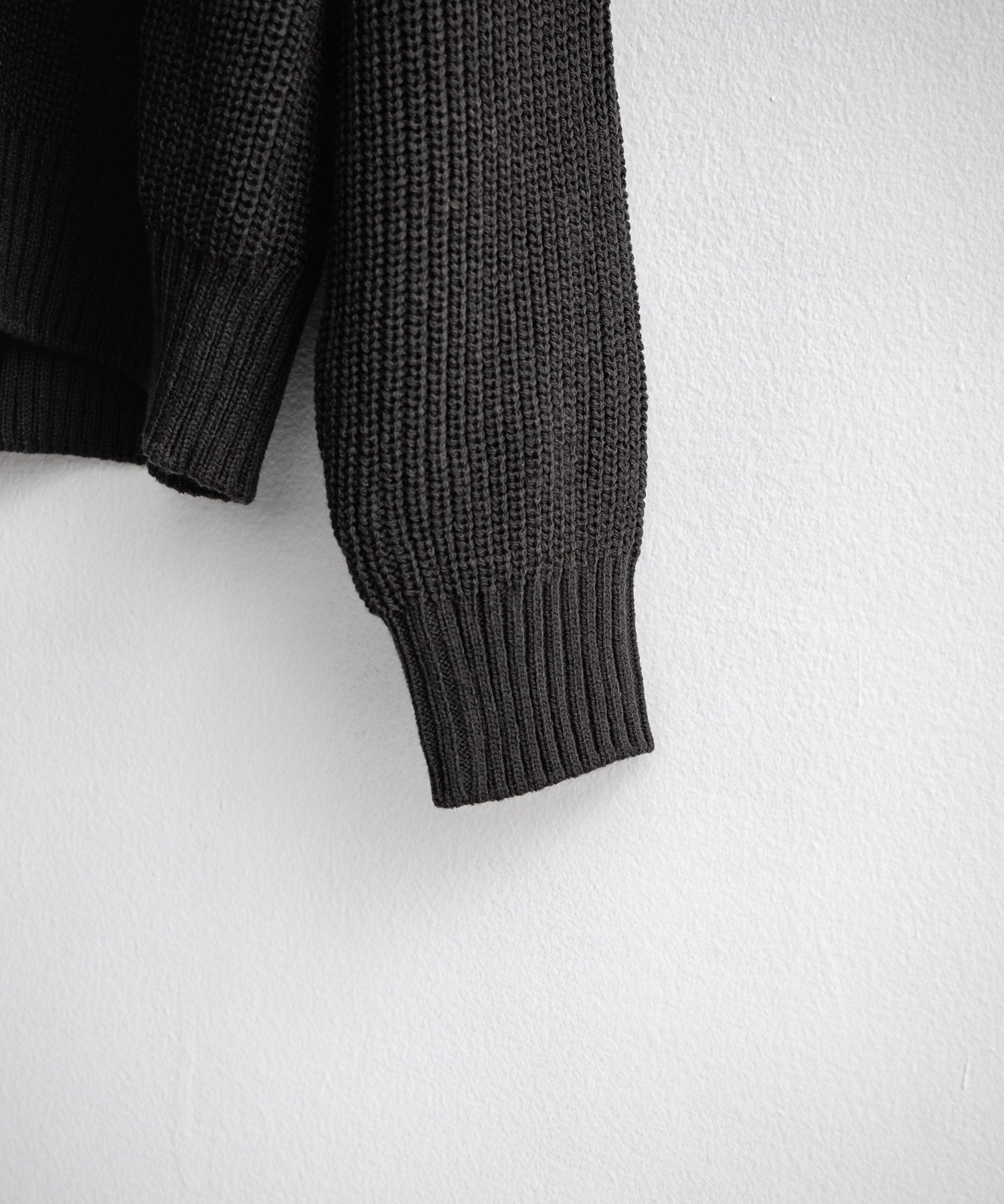 7ゲージ片畦編みでしっかりと目を詰めて編み上げたボリュームニット。