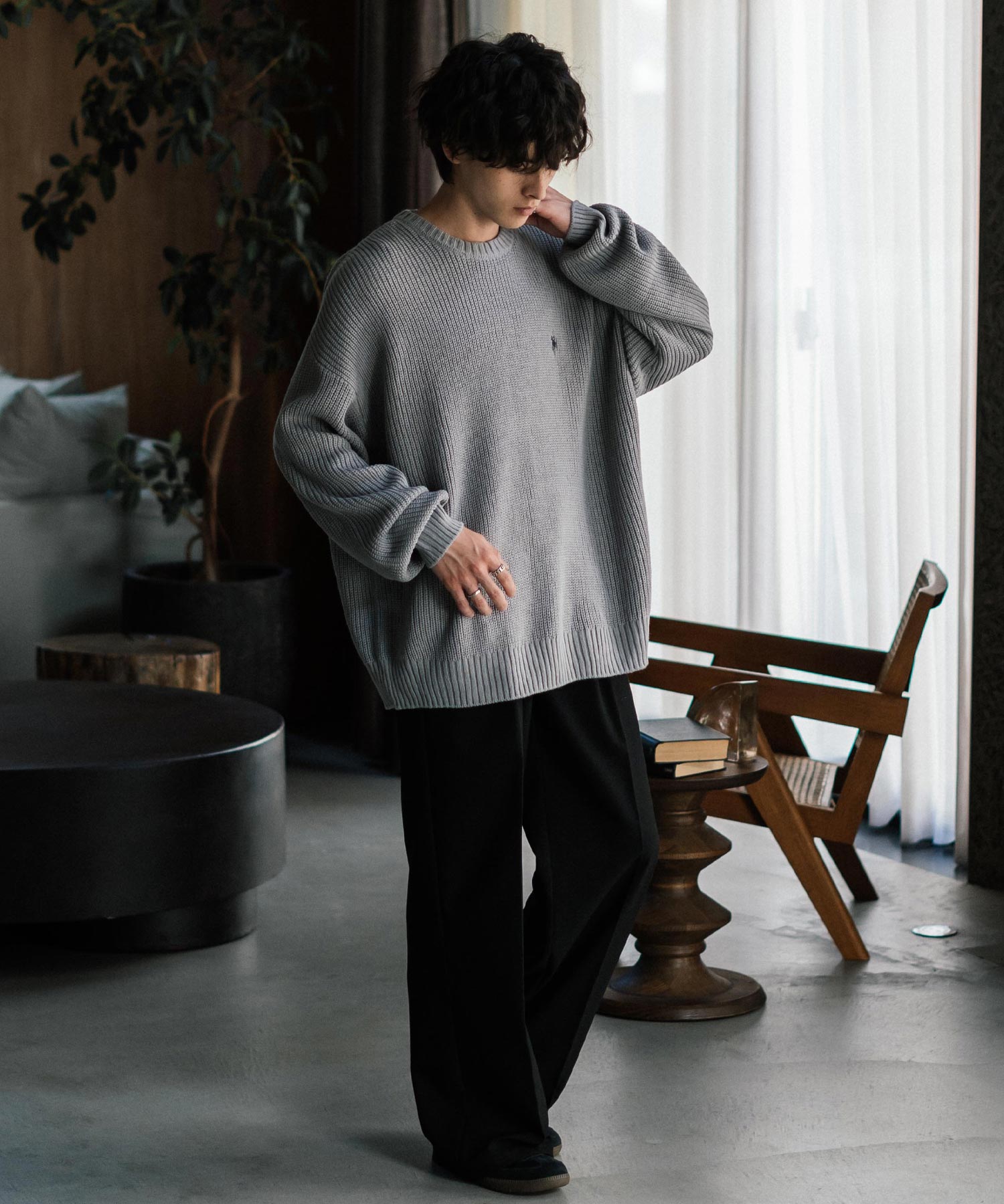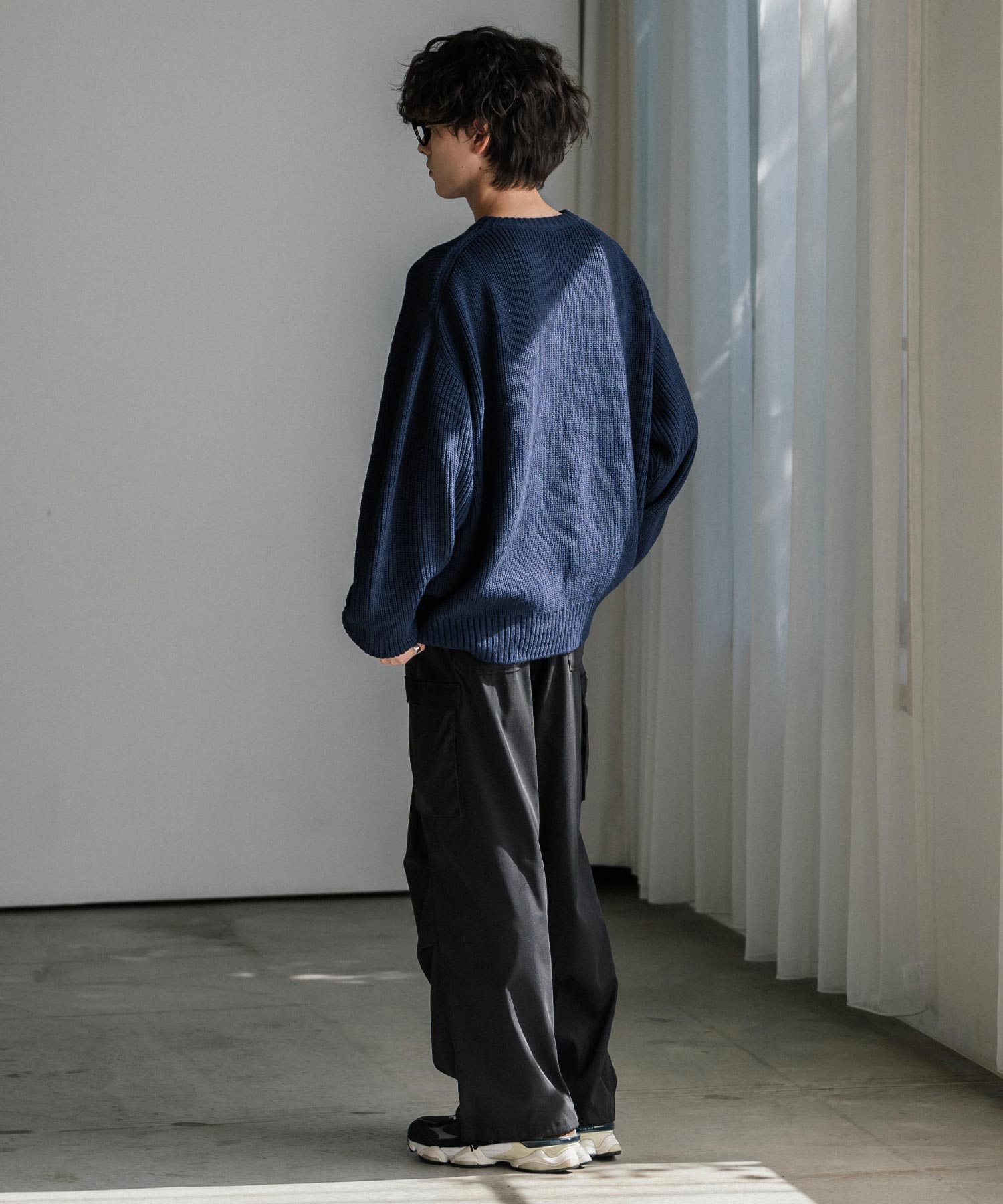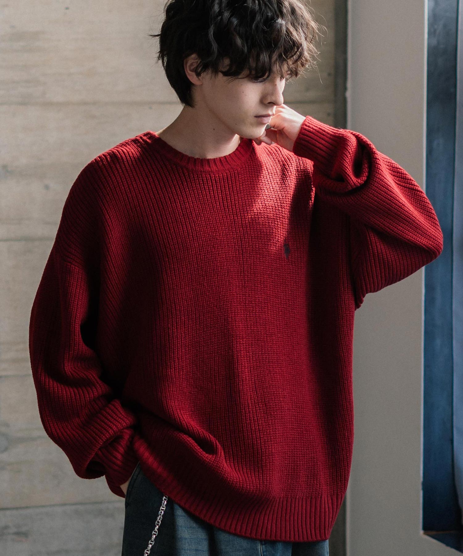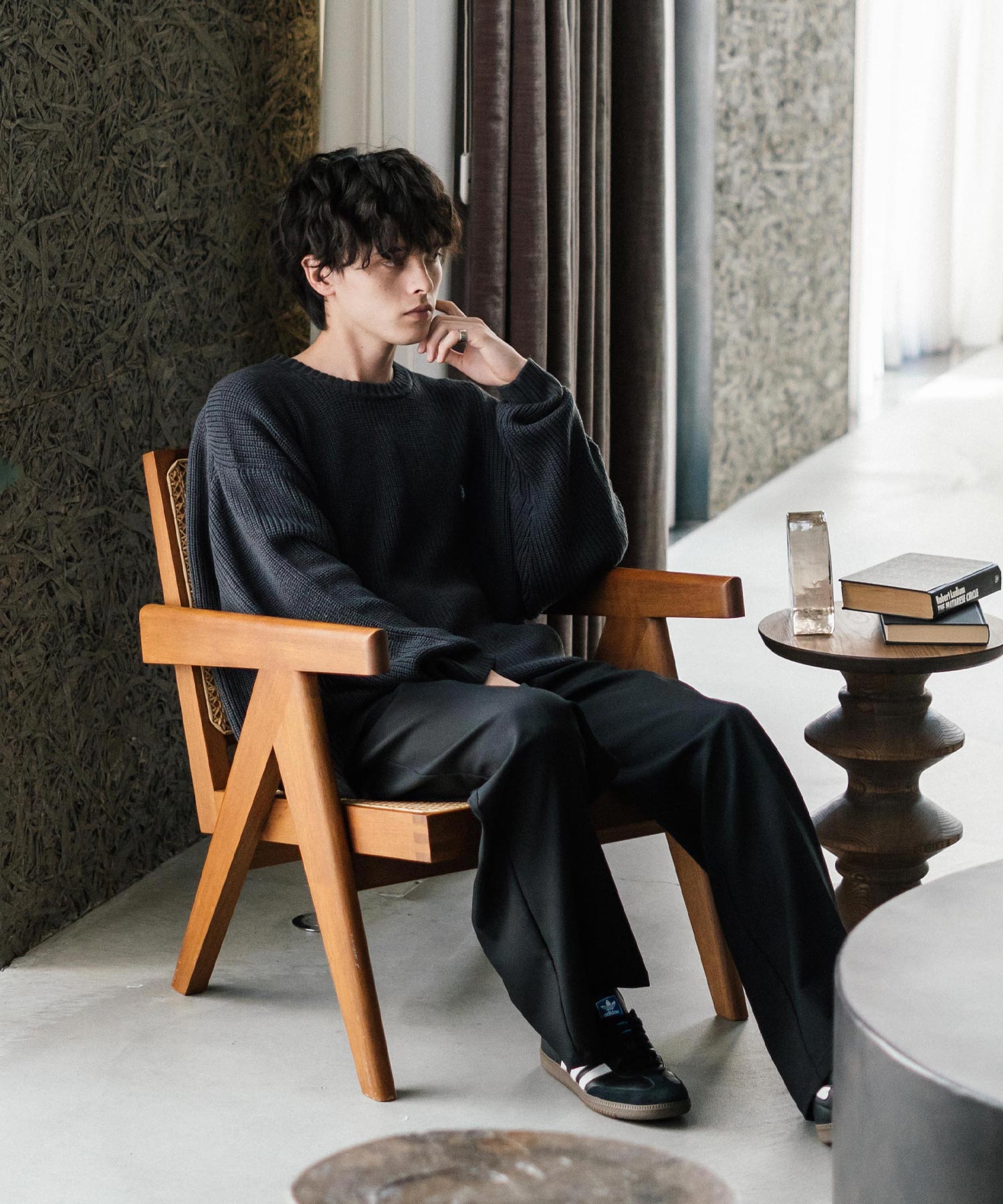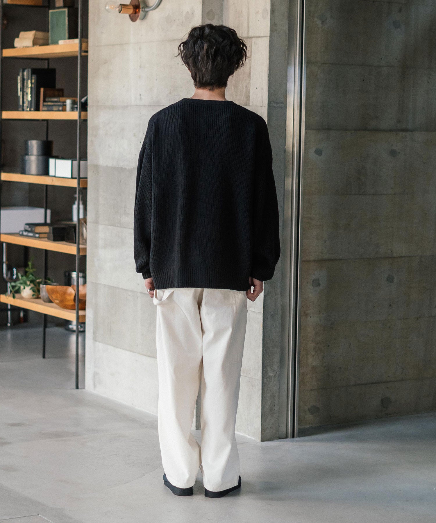 7ゲージ片畦編みでしっかりと目を詰めて編み上げたボリュームニット。