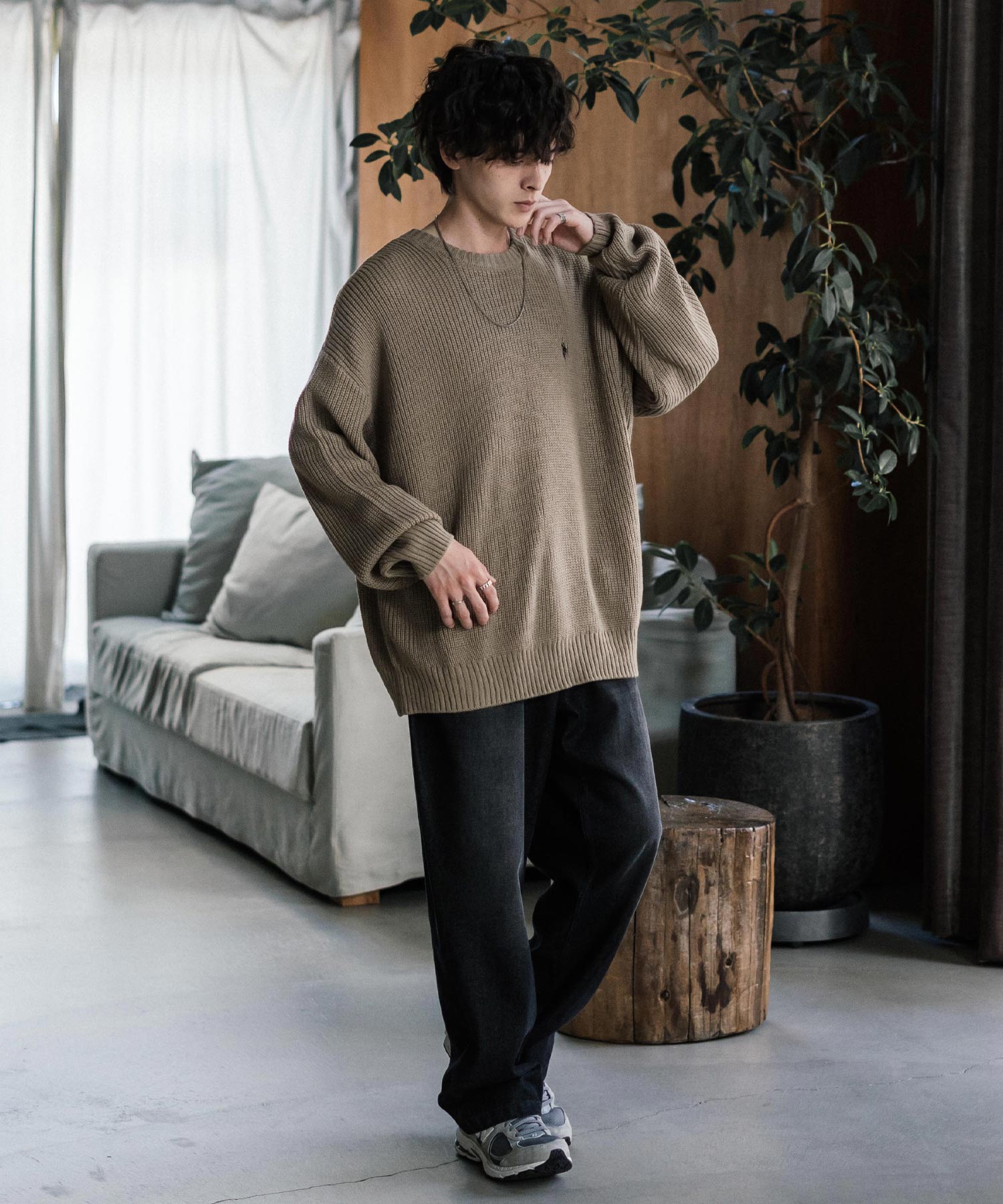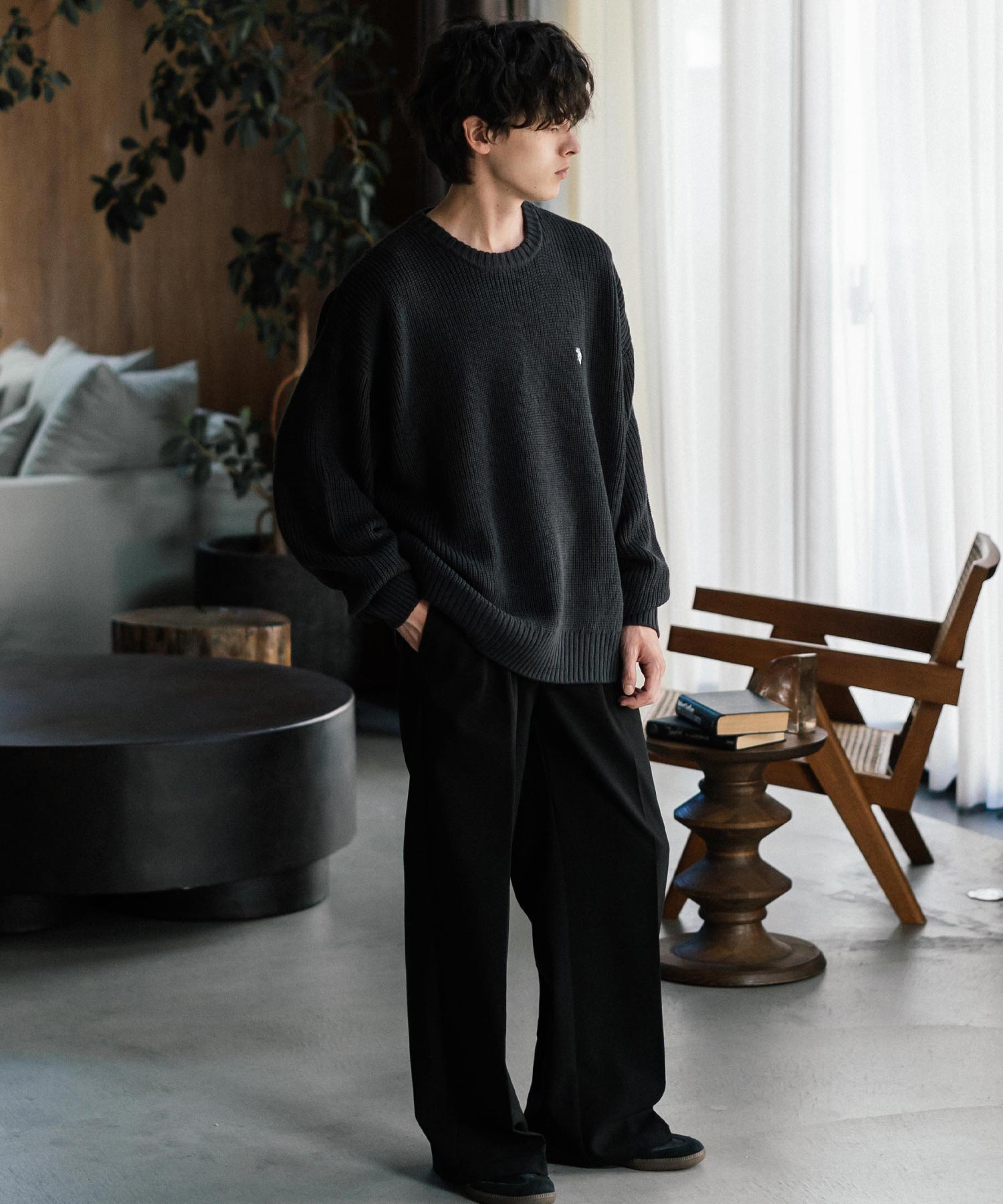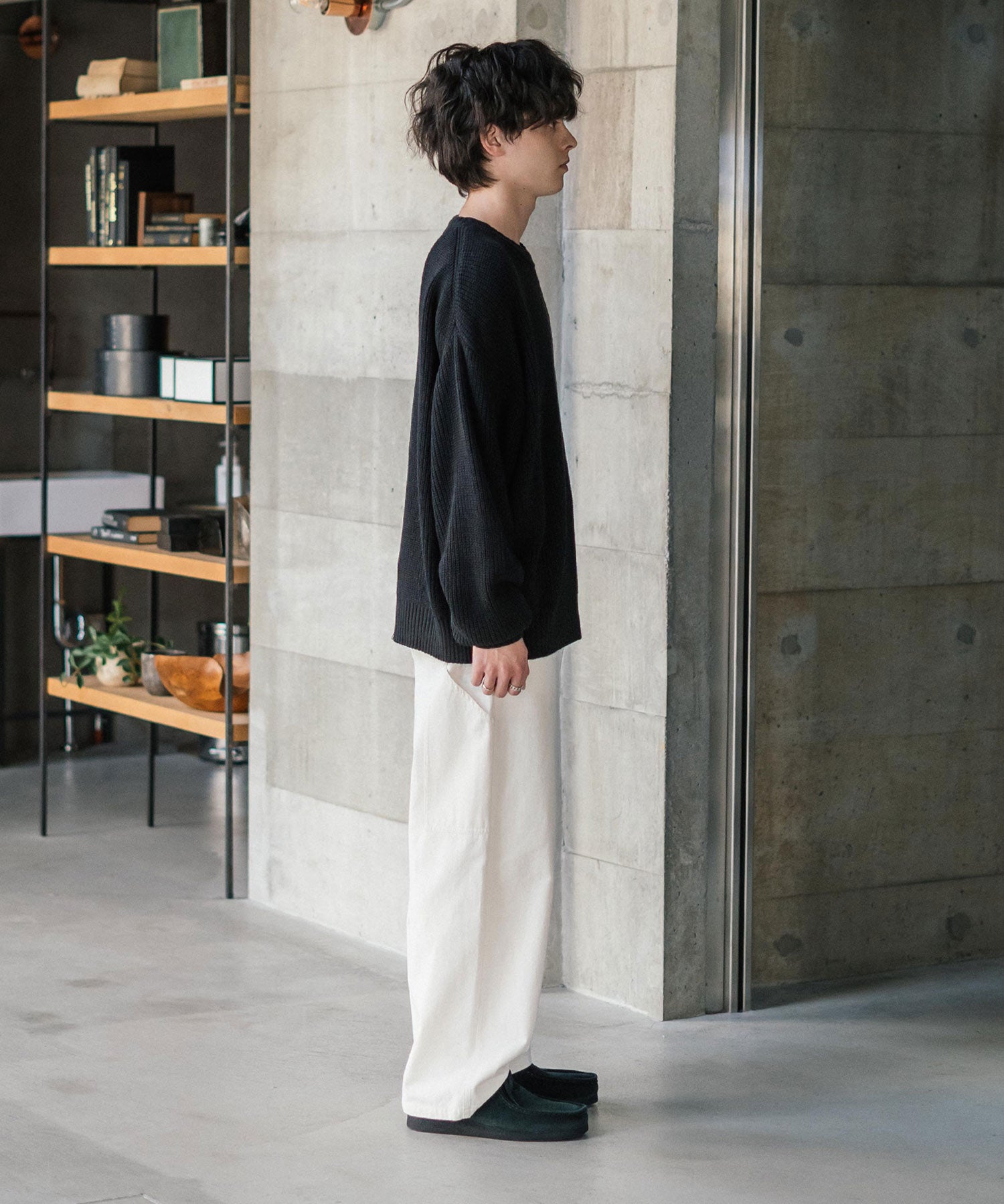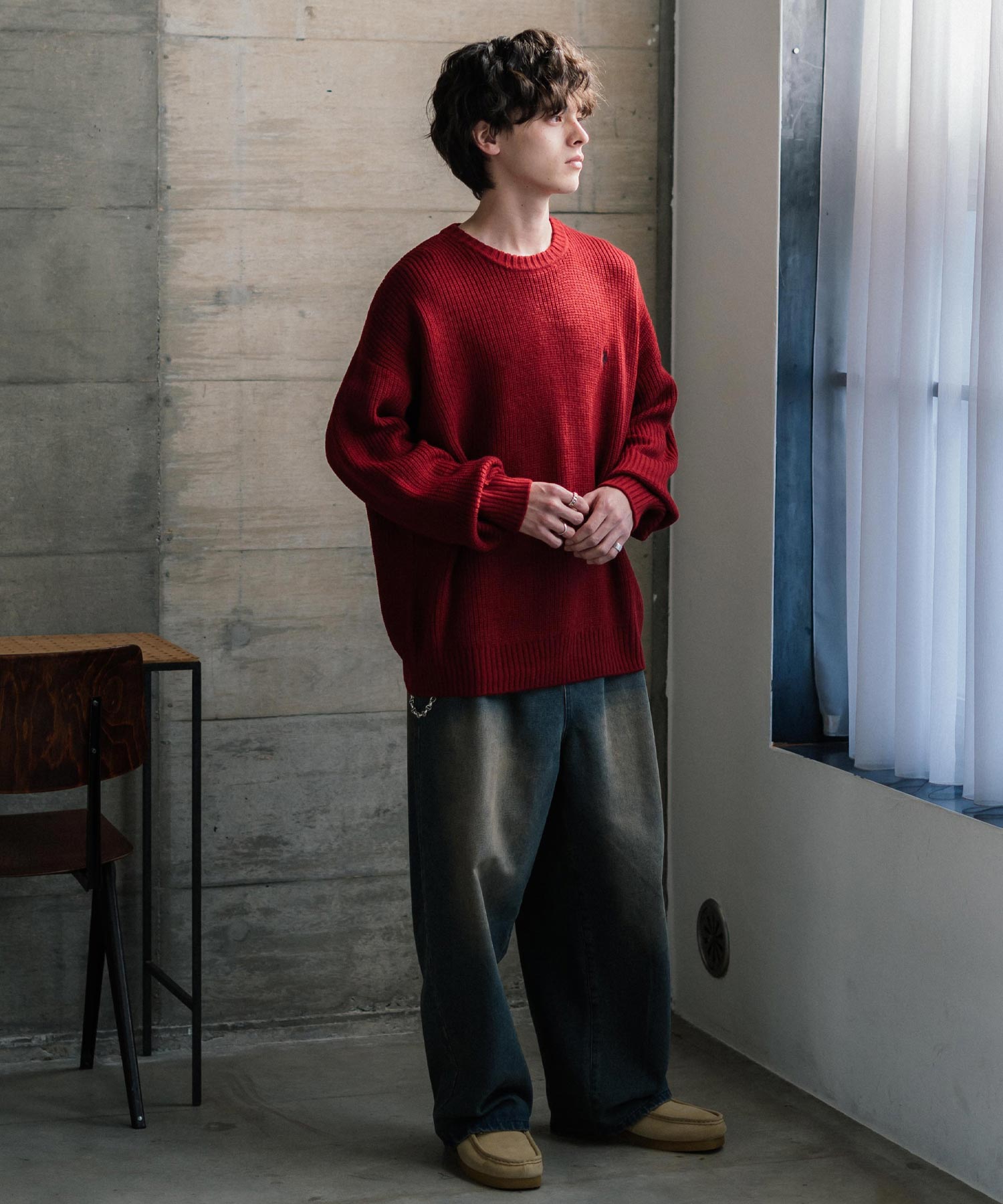 7ゲージ片畦編みでしっかりと目を詰めて編み上げたボリュームニット。