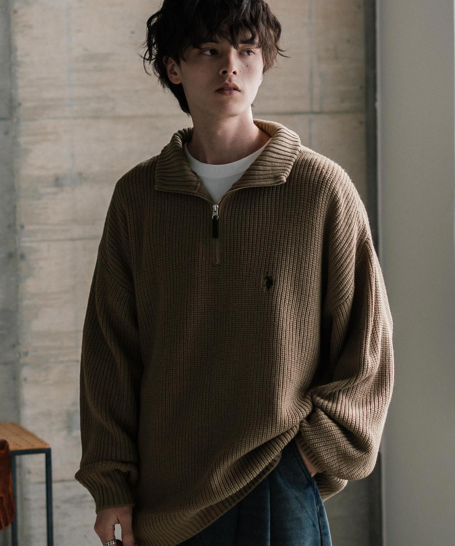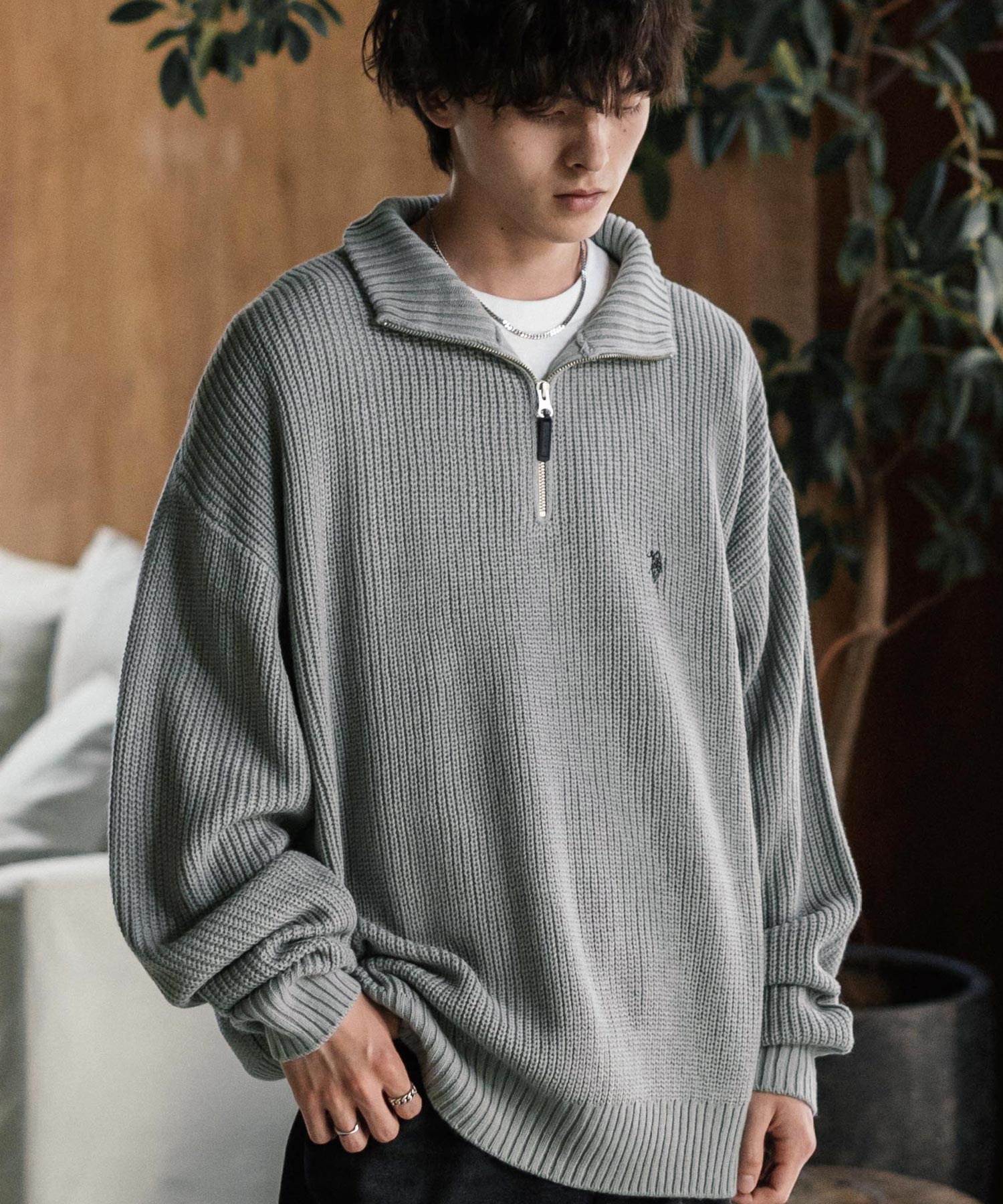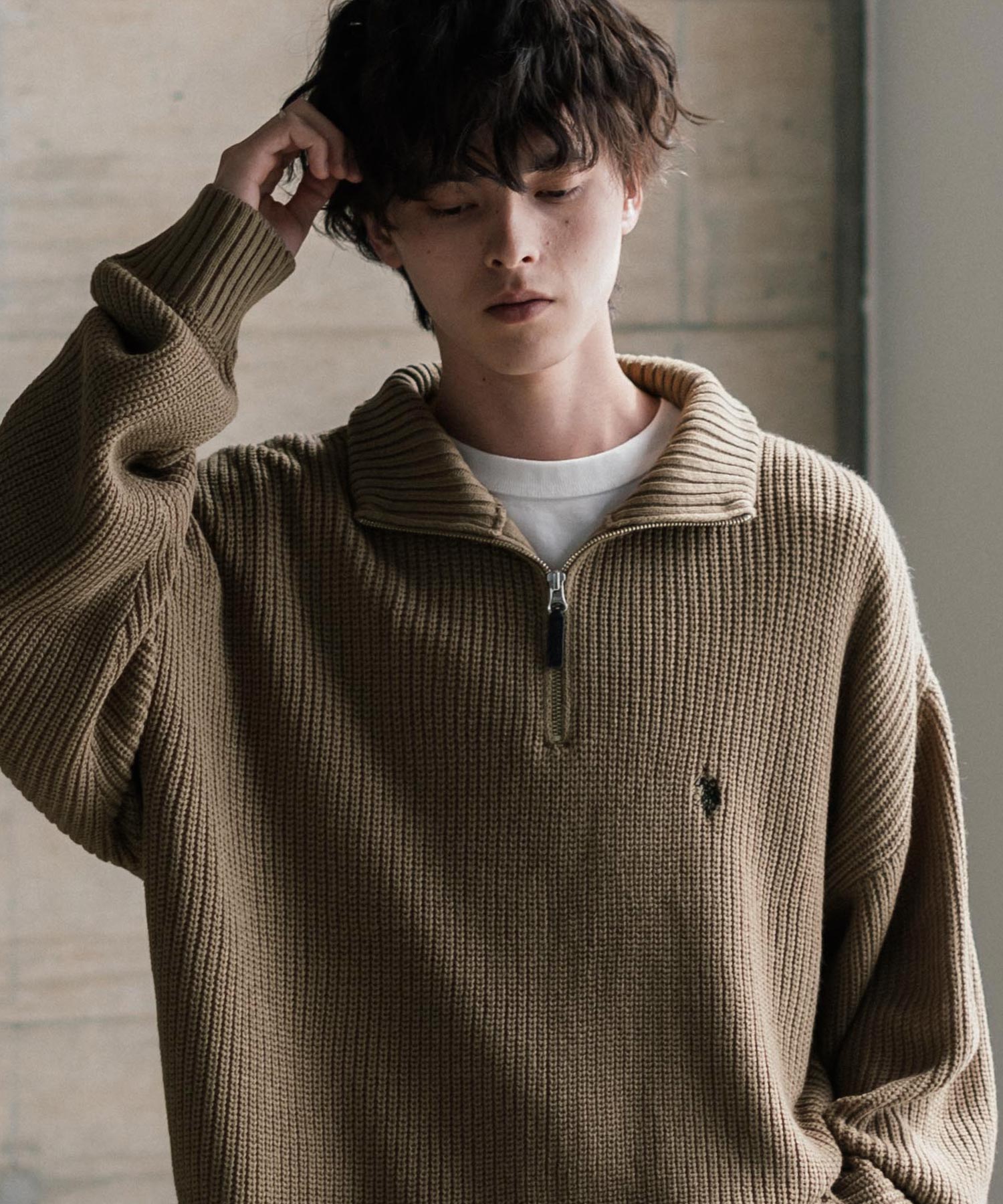 首元の印象を簡単にアレンジ!U.S. POLO ASSN.コラボ畦編みハーフジップニット。