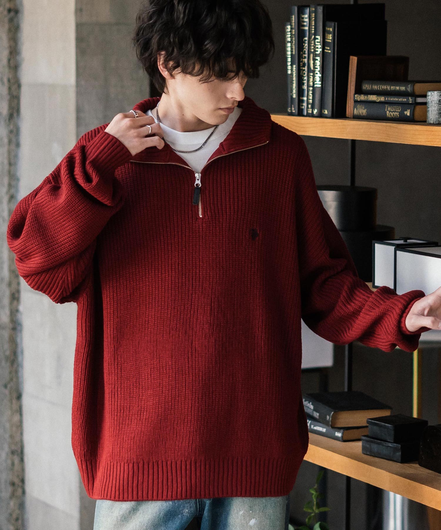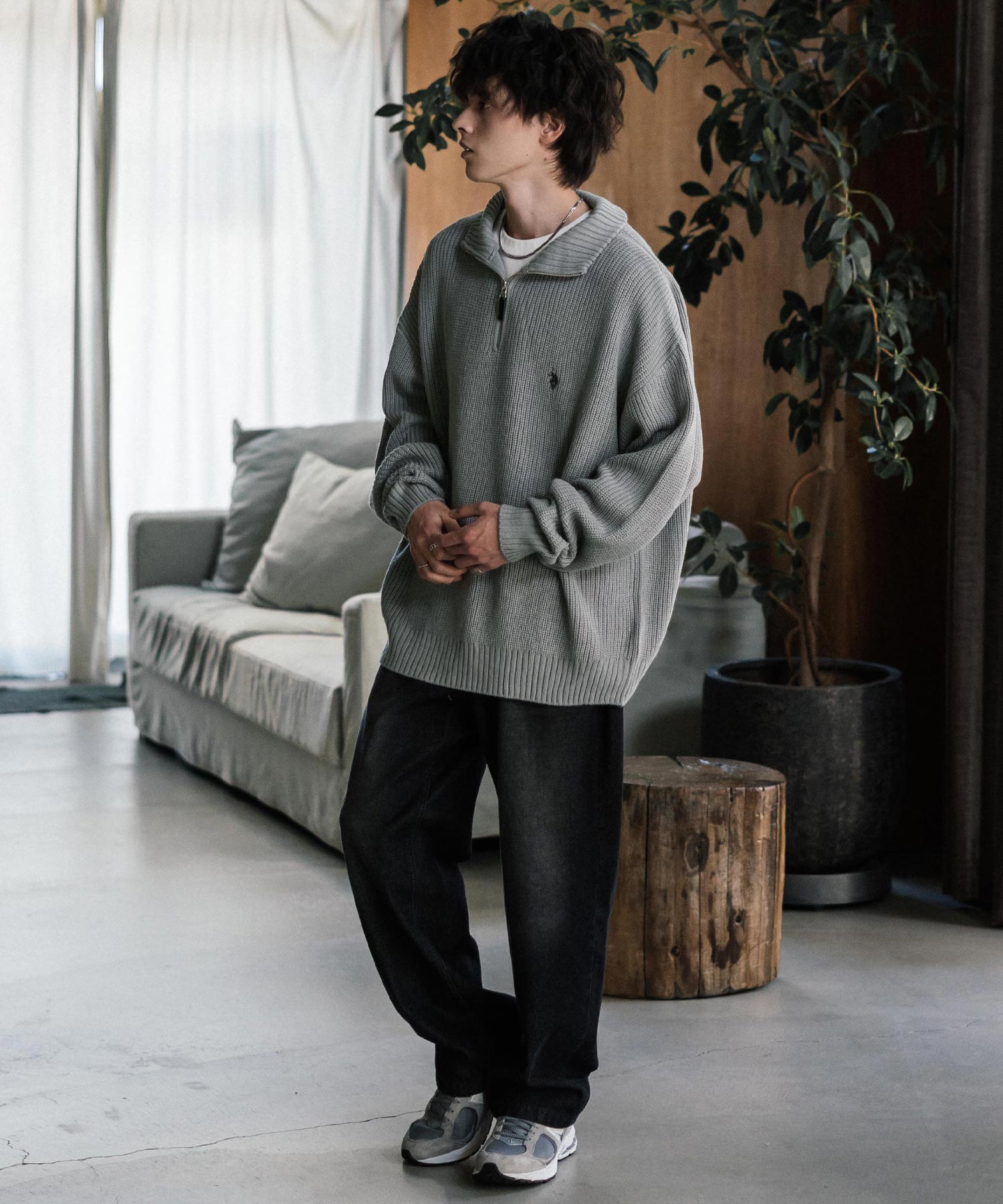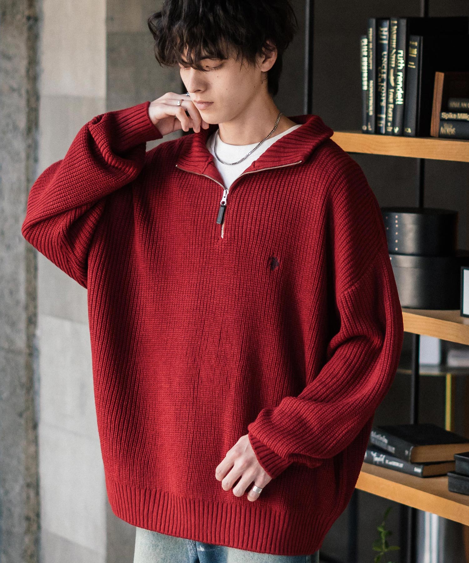 首元の印象を簡単にアレンジ!U.S. POLO ASSN.コラボ畦編みハーフジップニット。