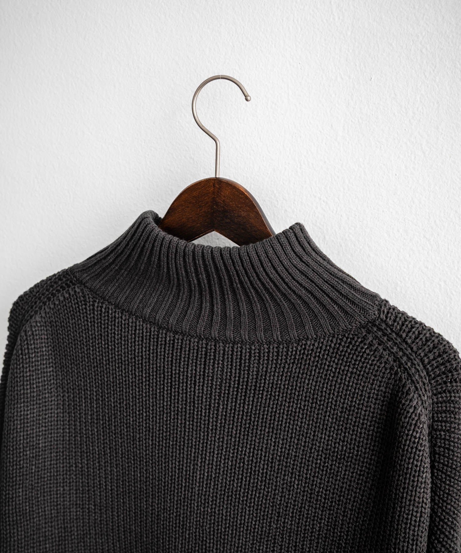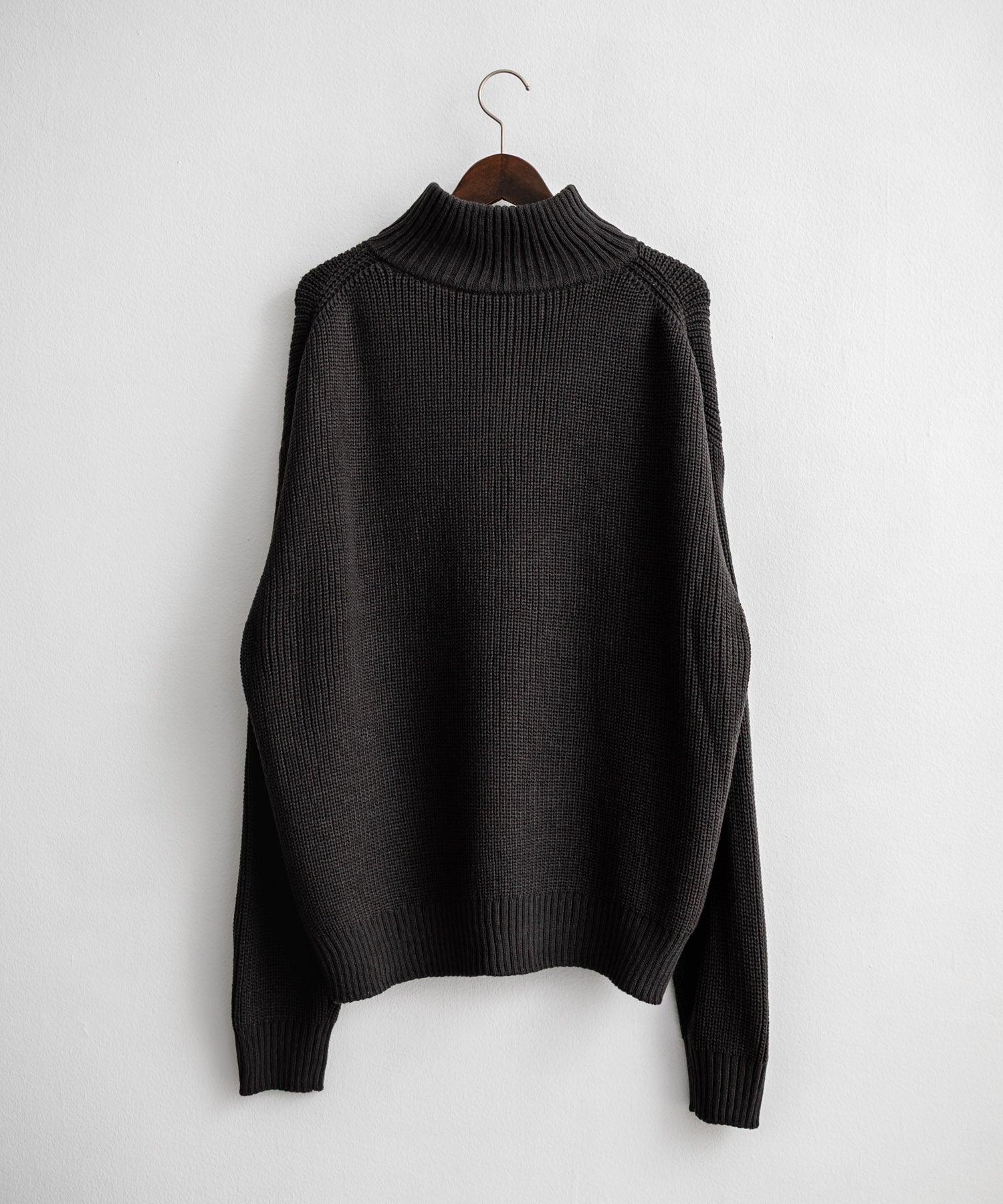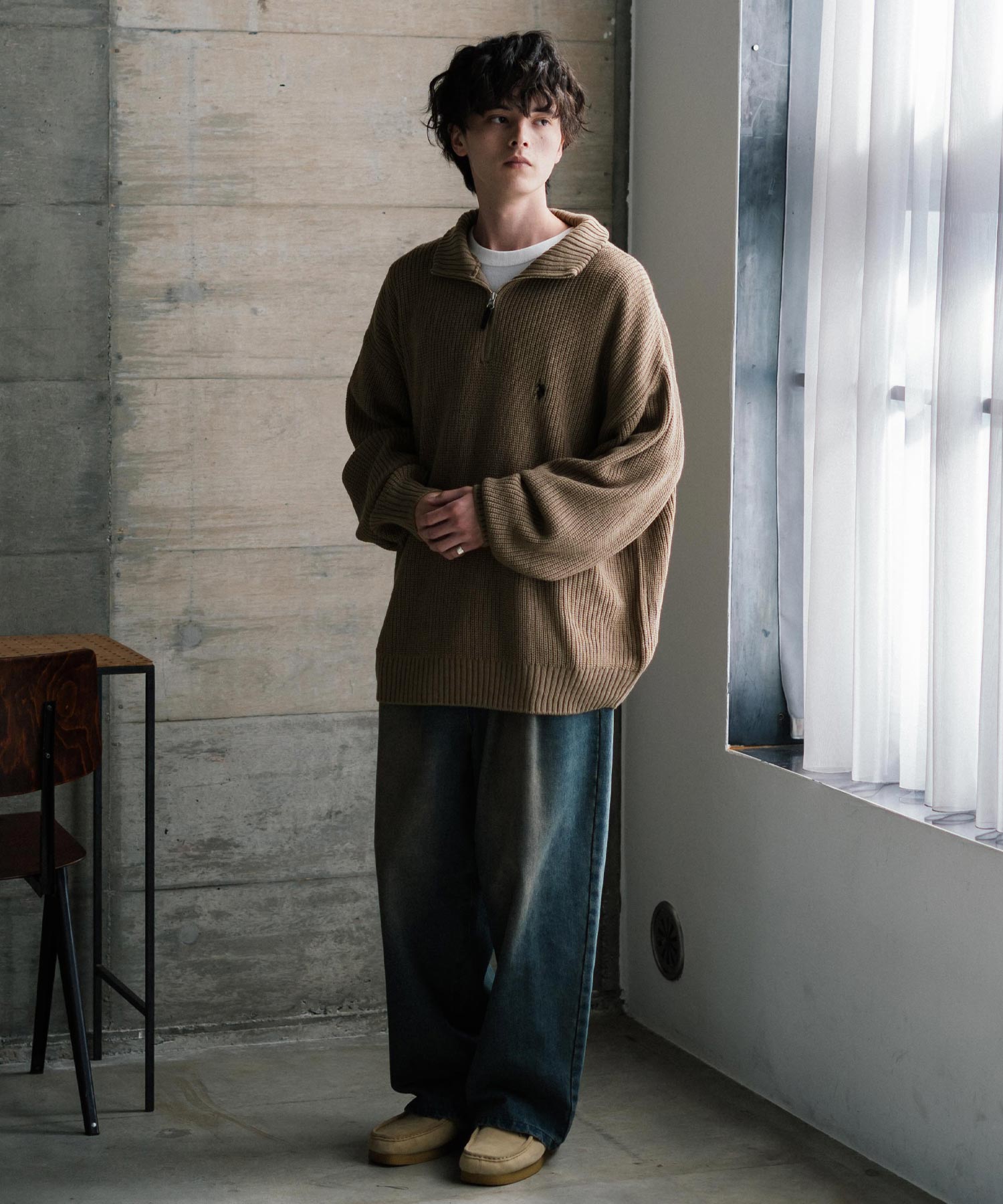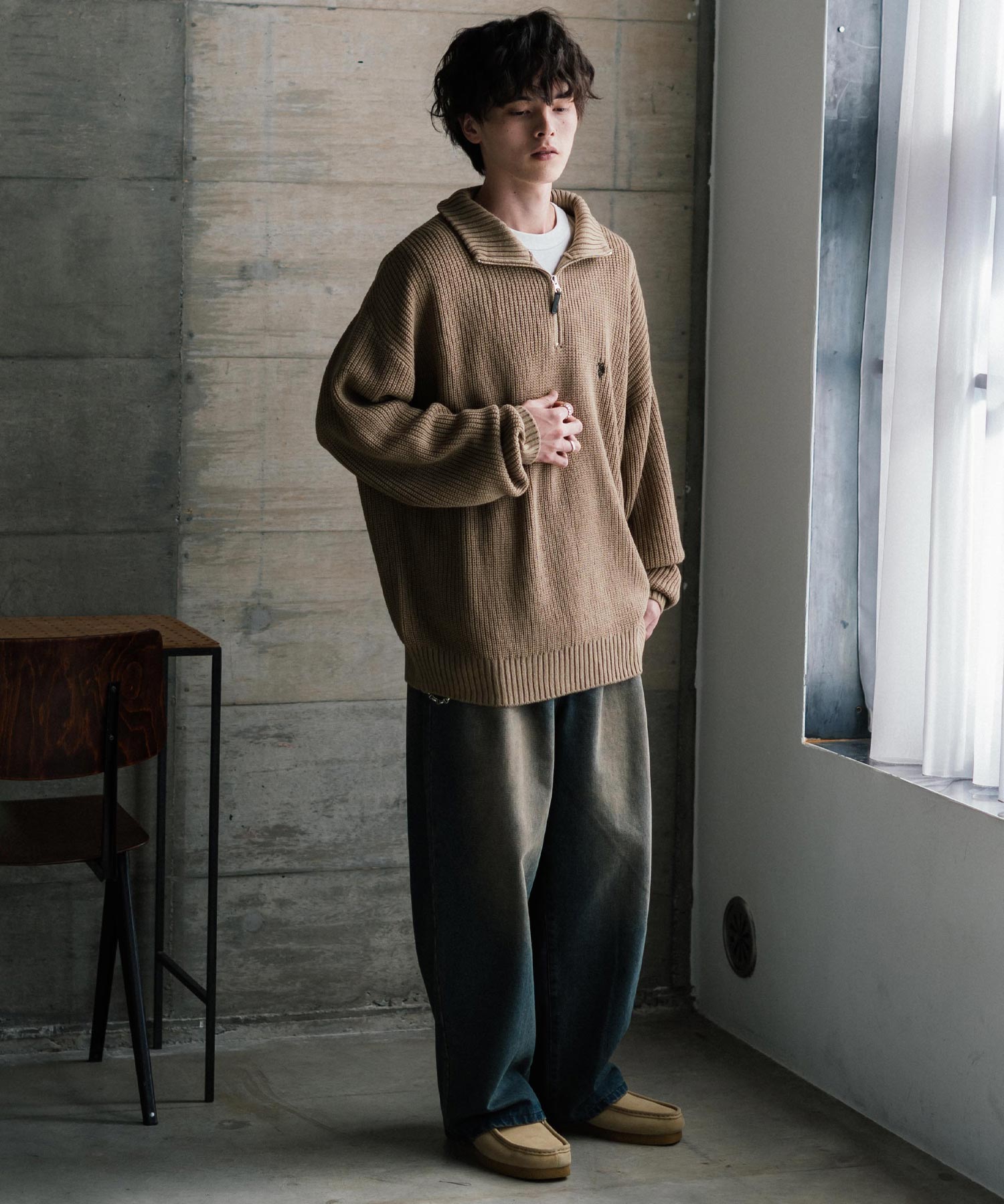 立体的なボリュームと豊かな表情がポイントのハーフジップデザインニット。