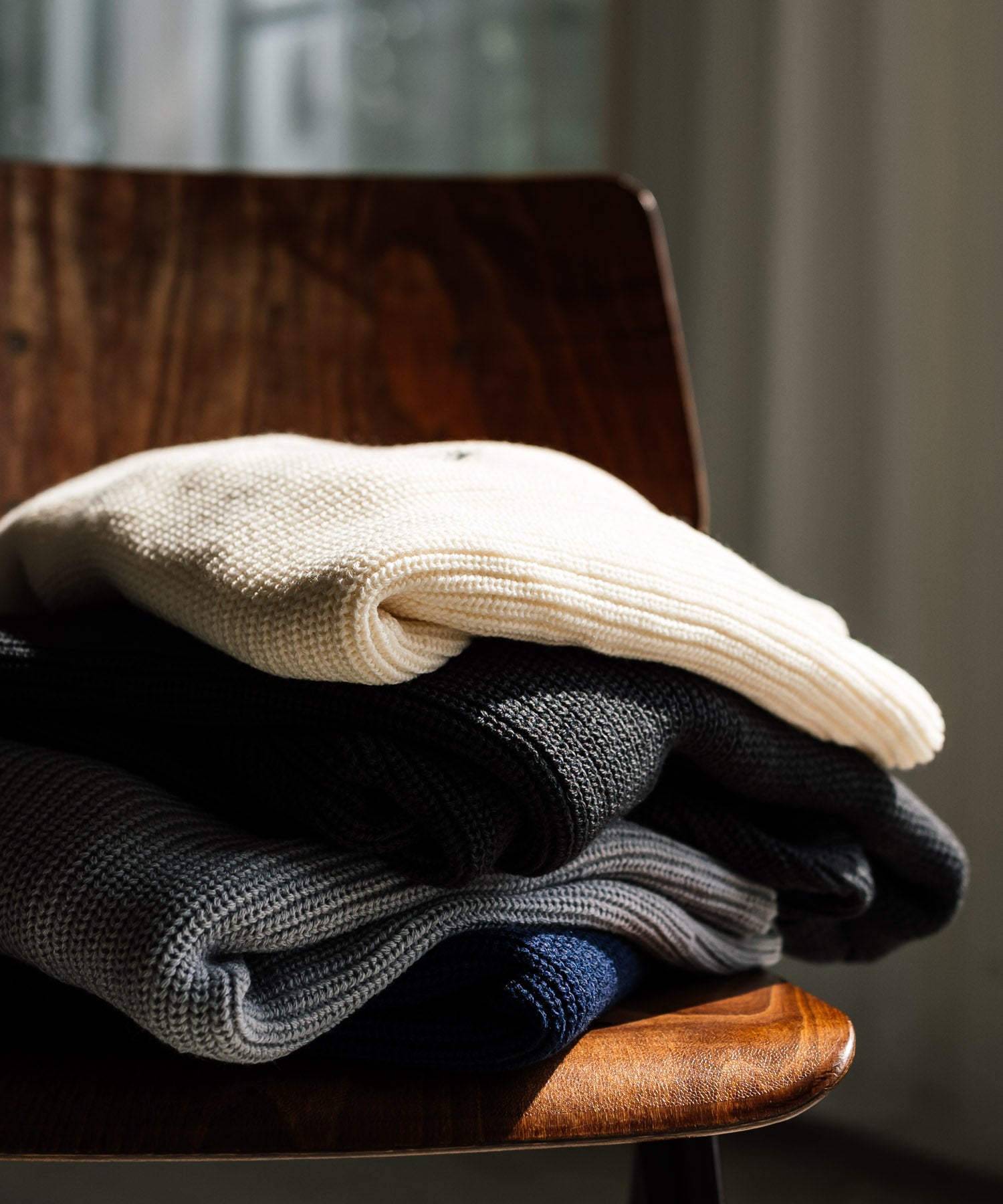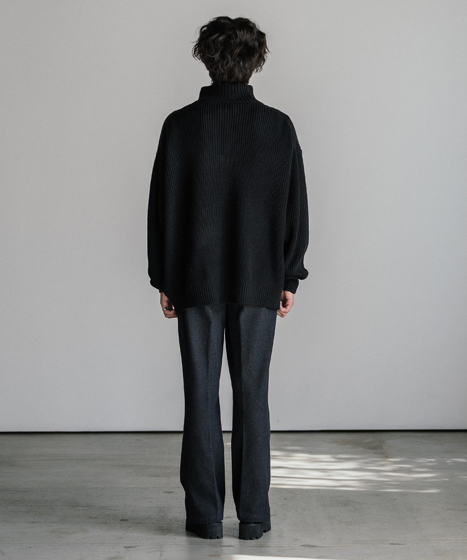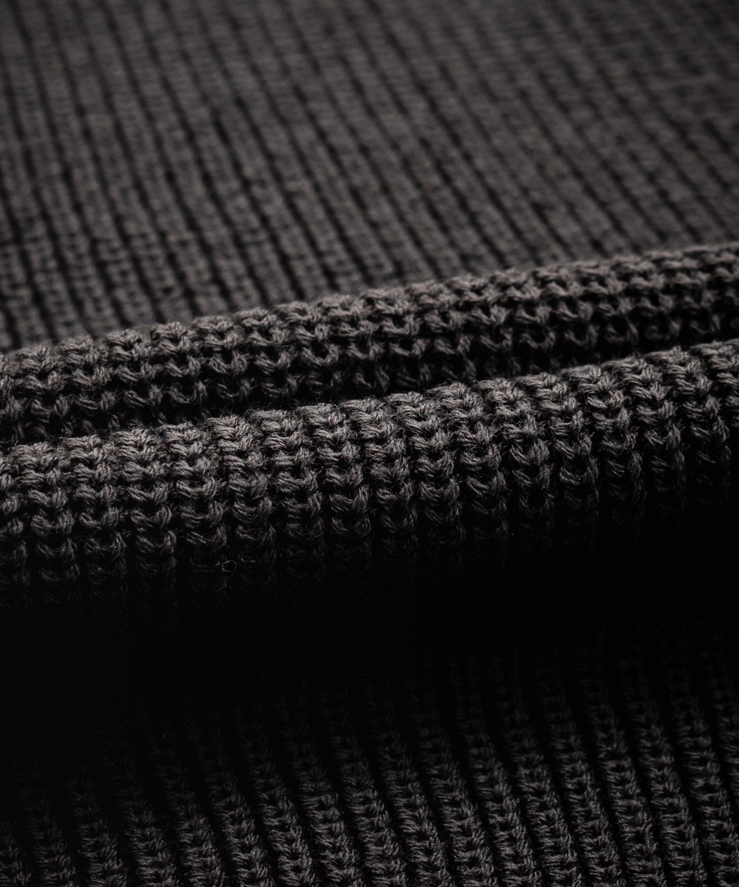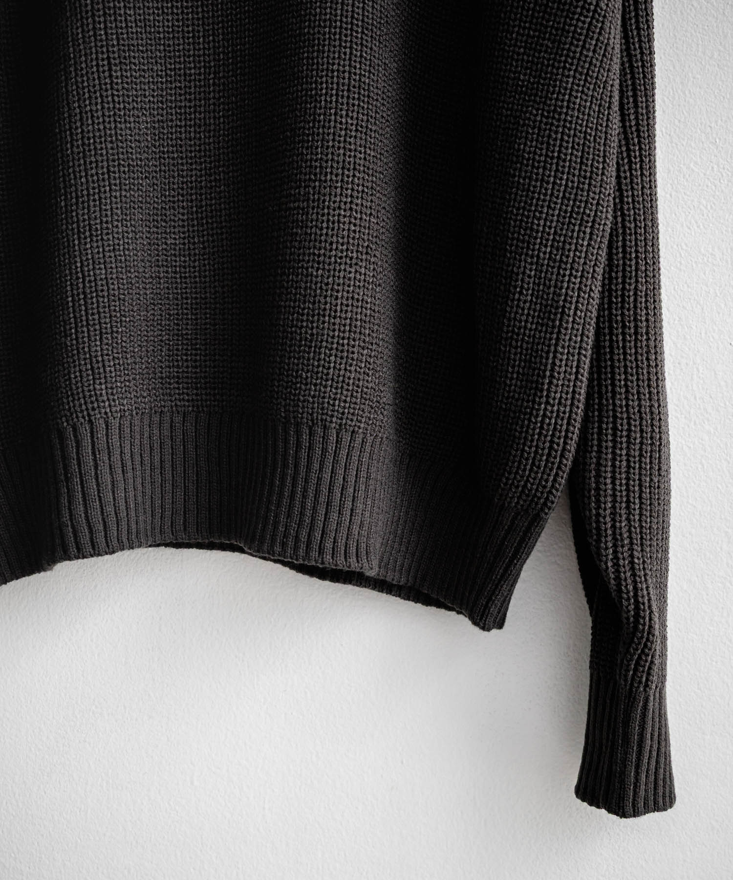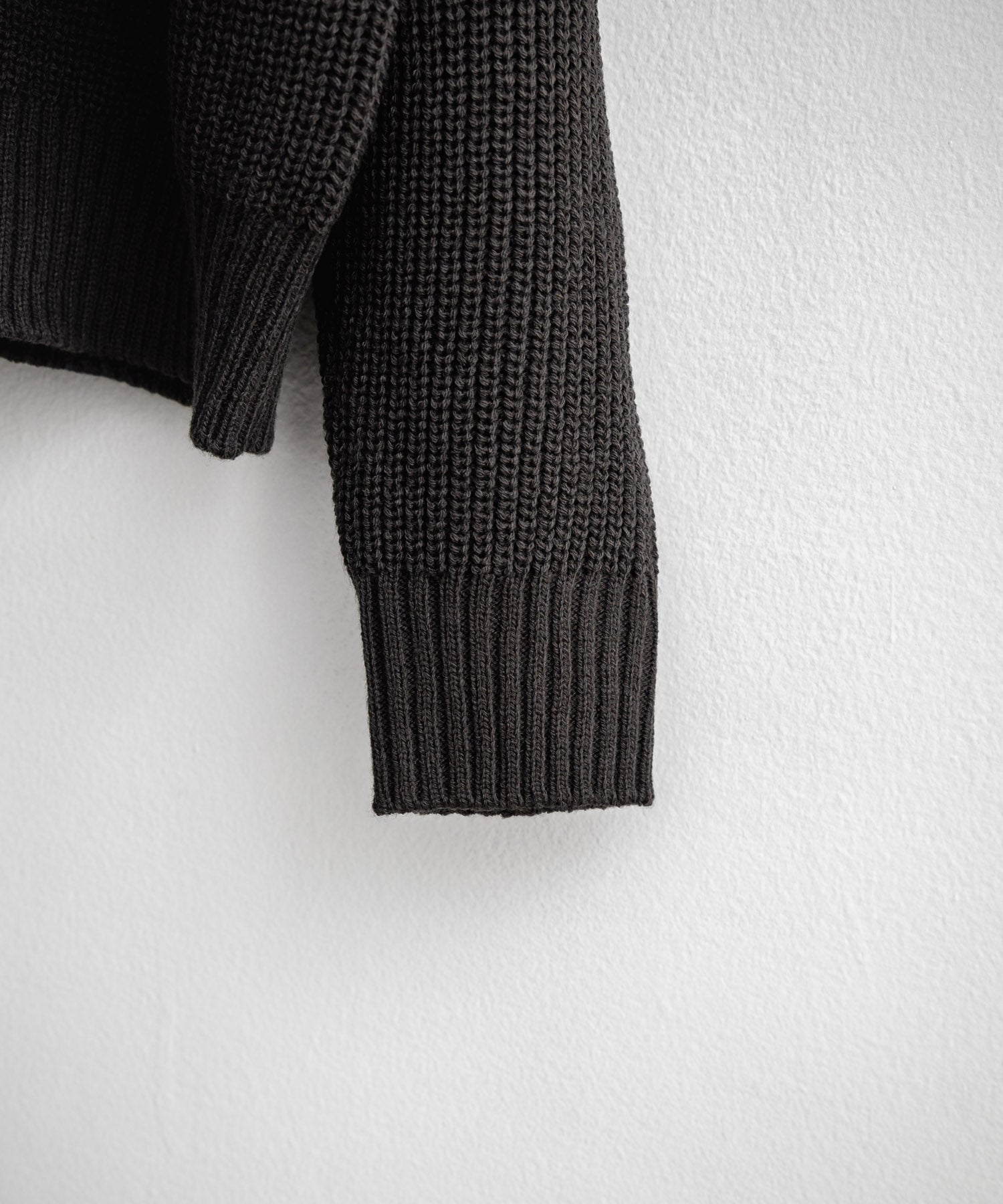 7ゲージ片畦編みでしっかりと目を詰めて編み上げたボリュームニット。