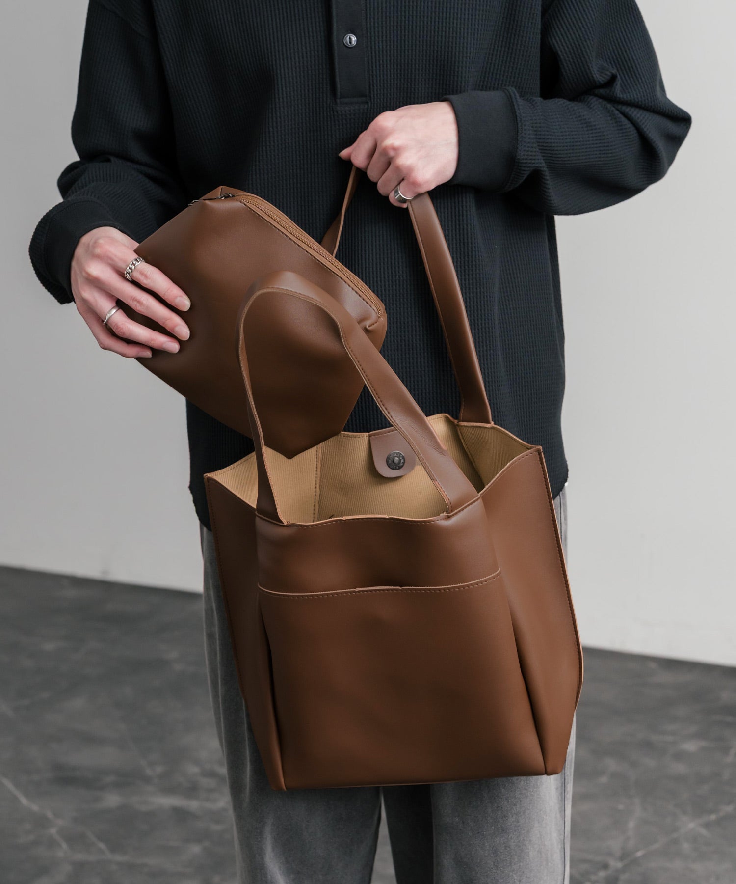 新色追加 PUワンショルダートートバッグ ポーチセット 14772