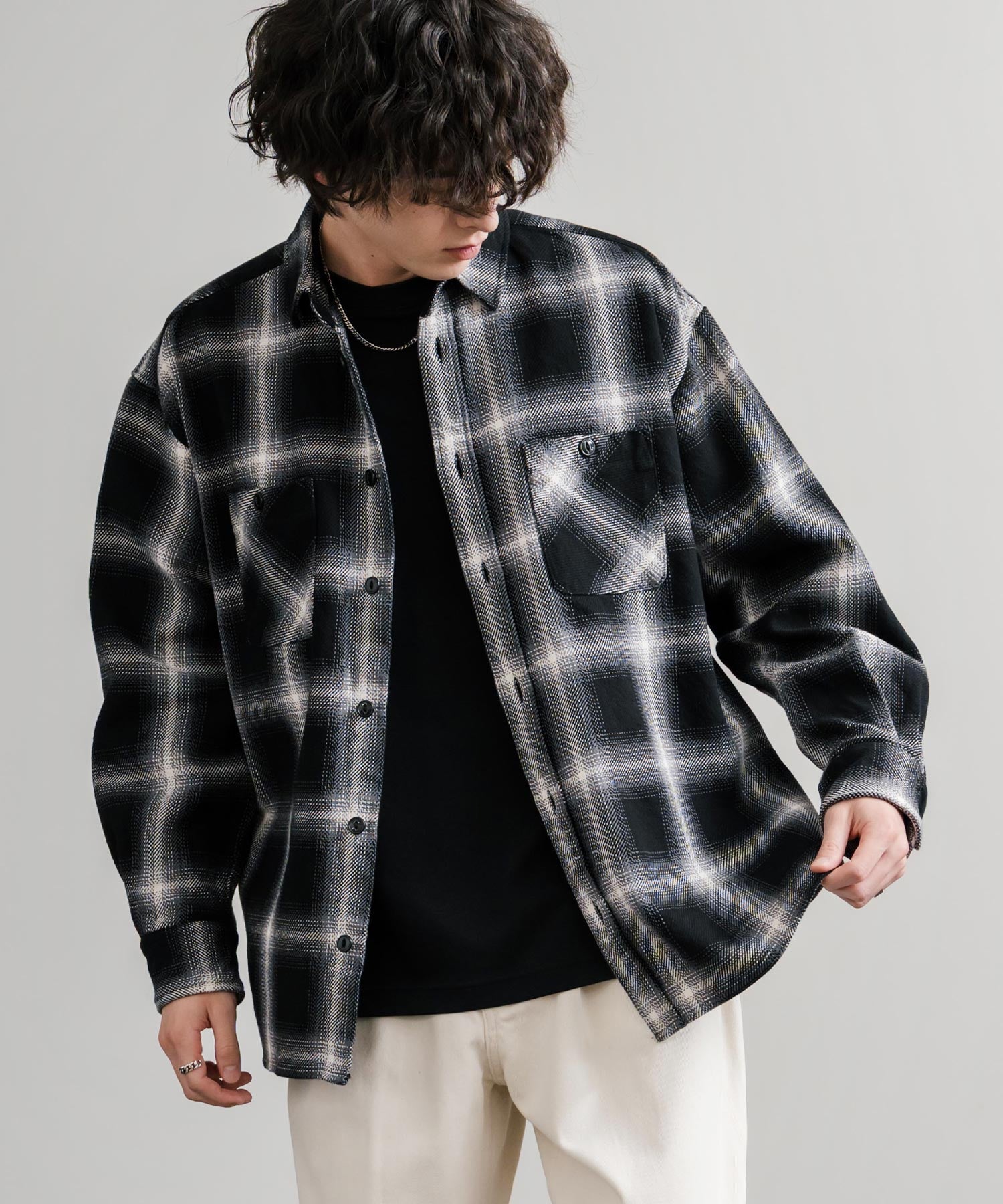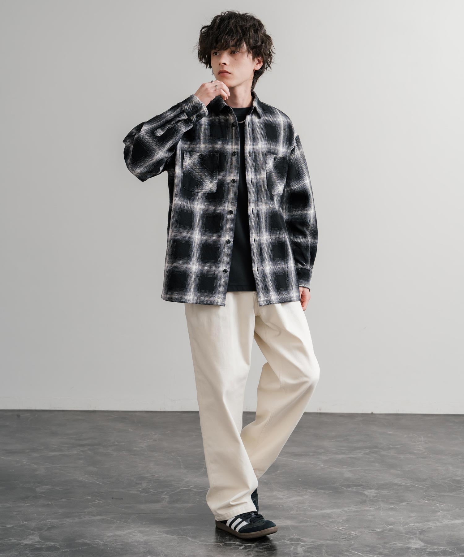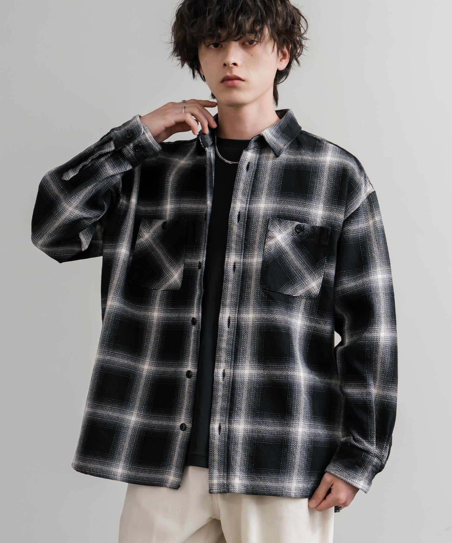 袖口をロールアップしてラフに着崩せるゆとりあるシルエットが特徴!