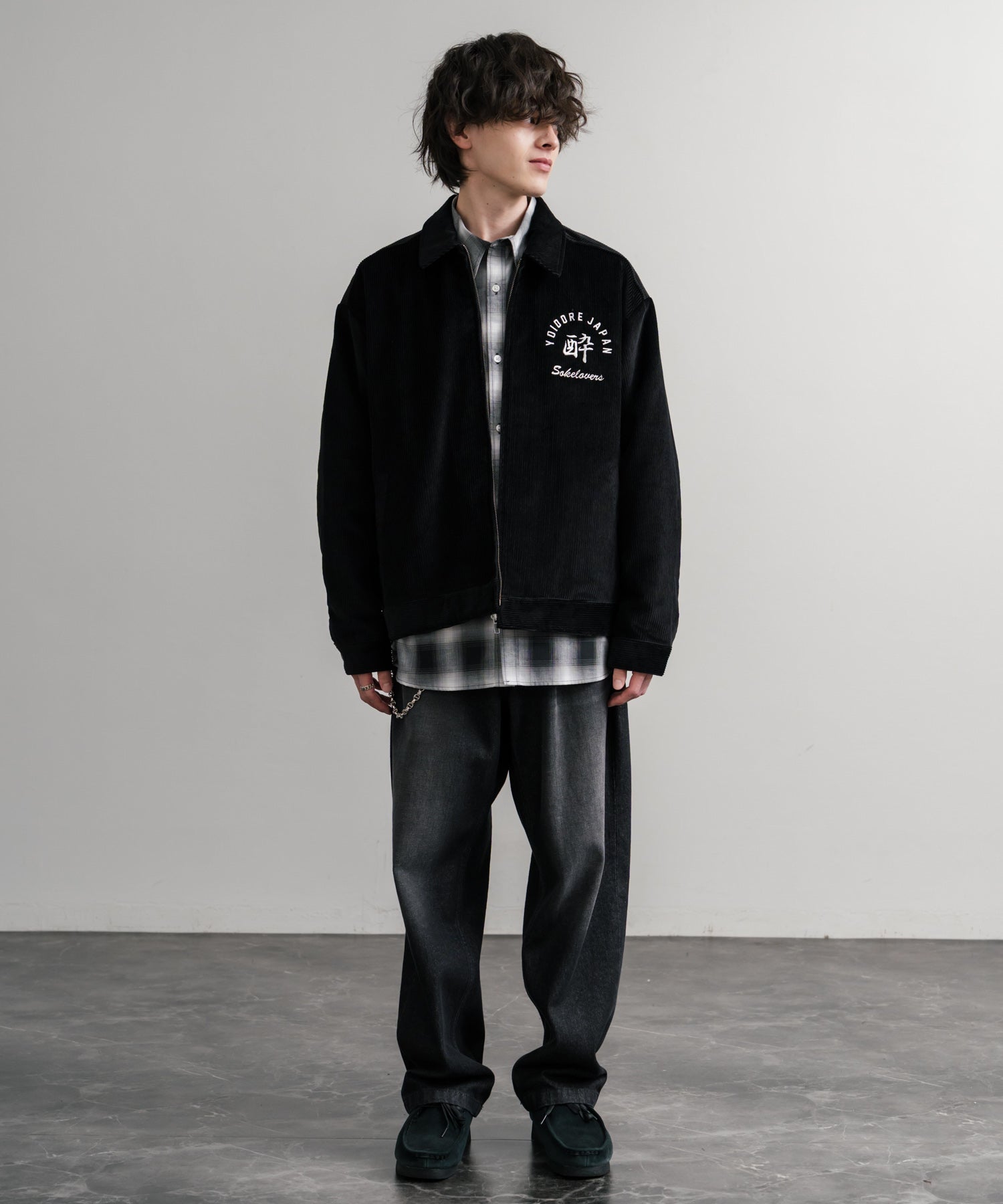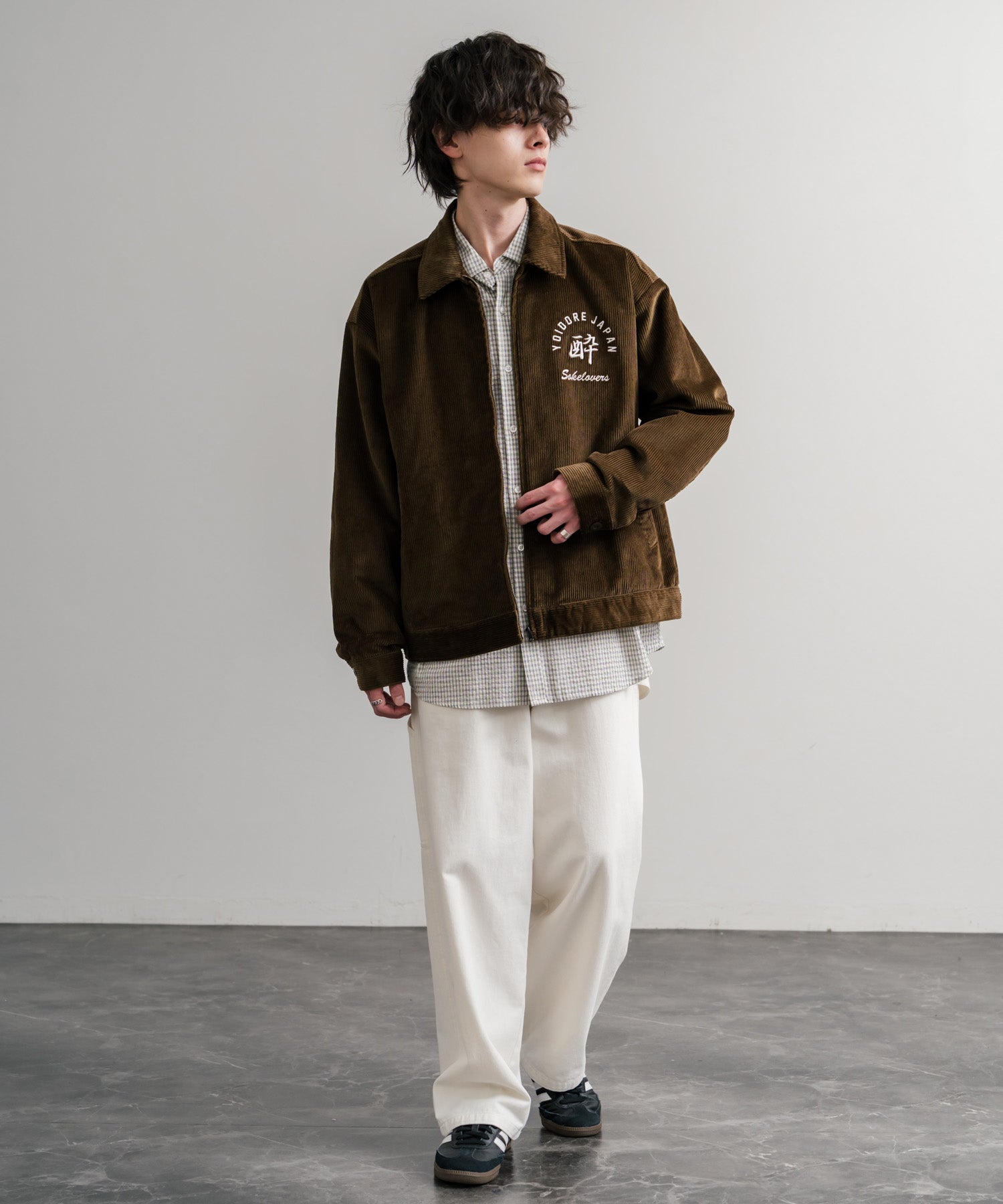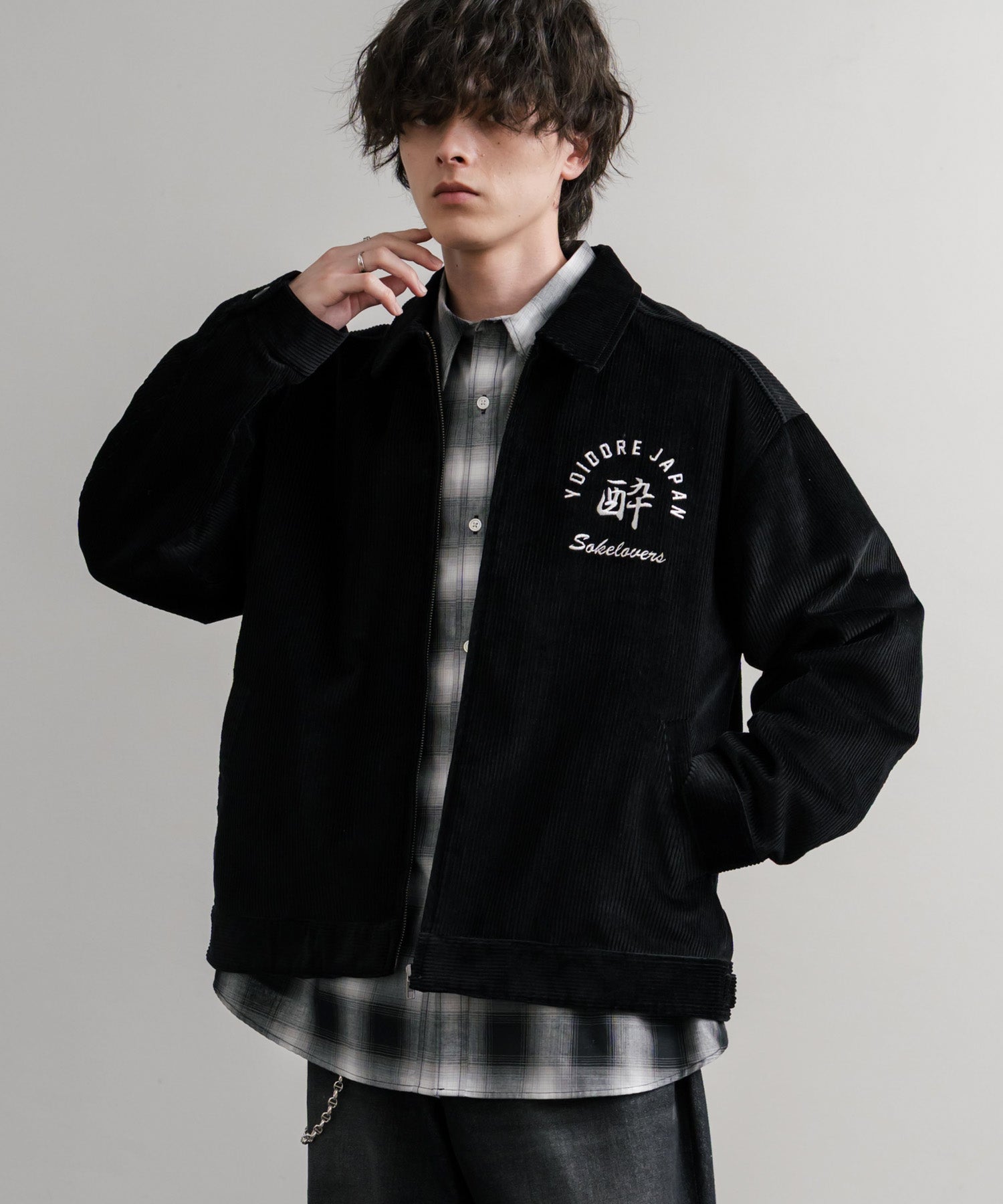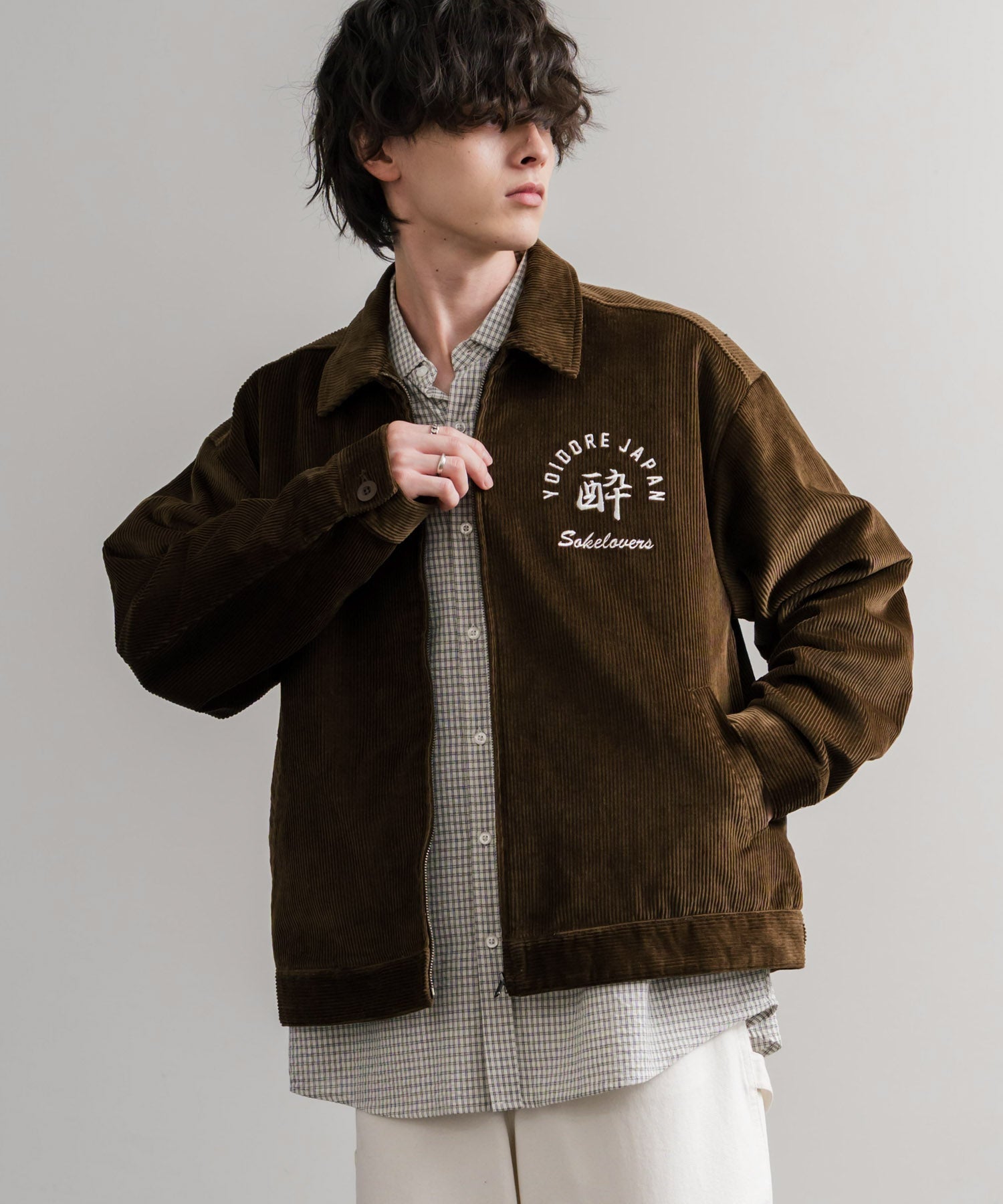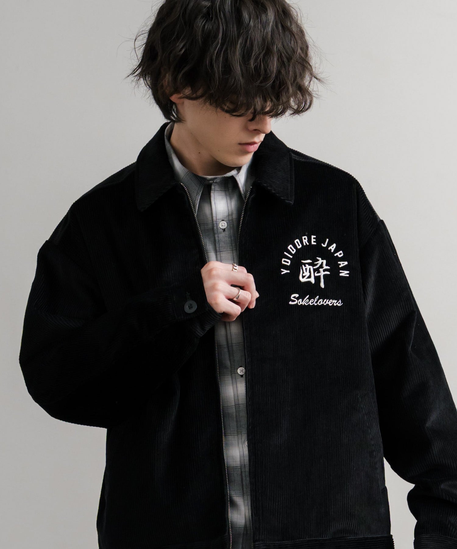 バッグに「酒愛好家」刺繍デザインが施された!YOIDOREコーデュロイジャケット。