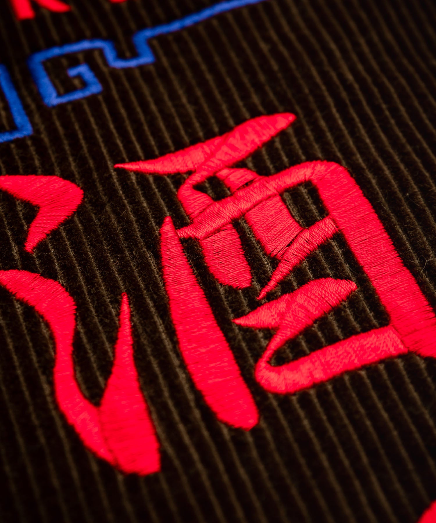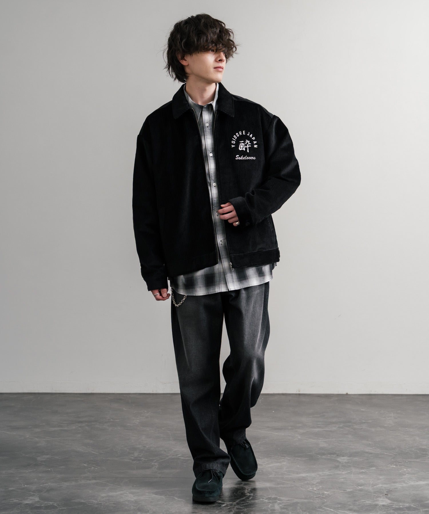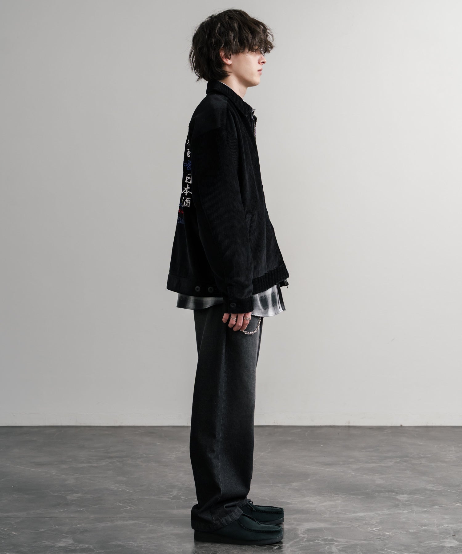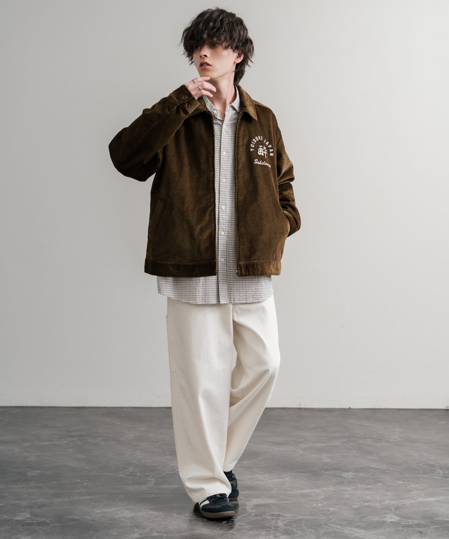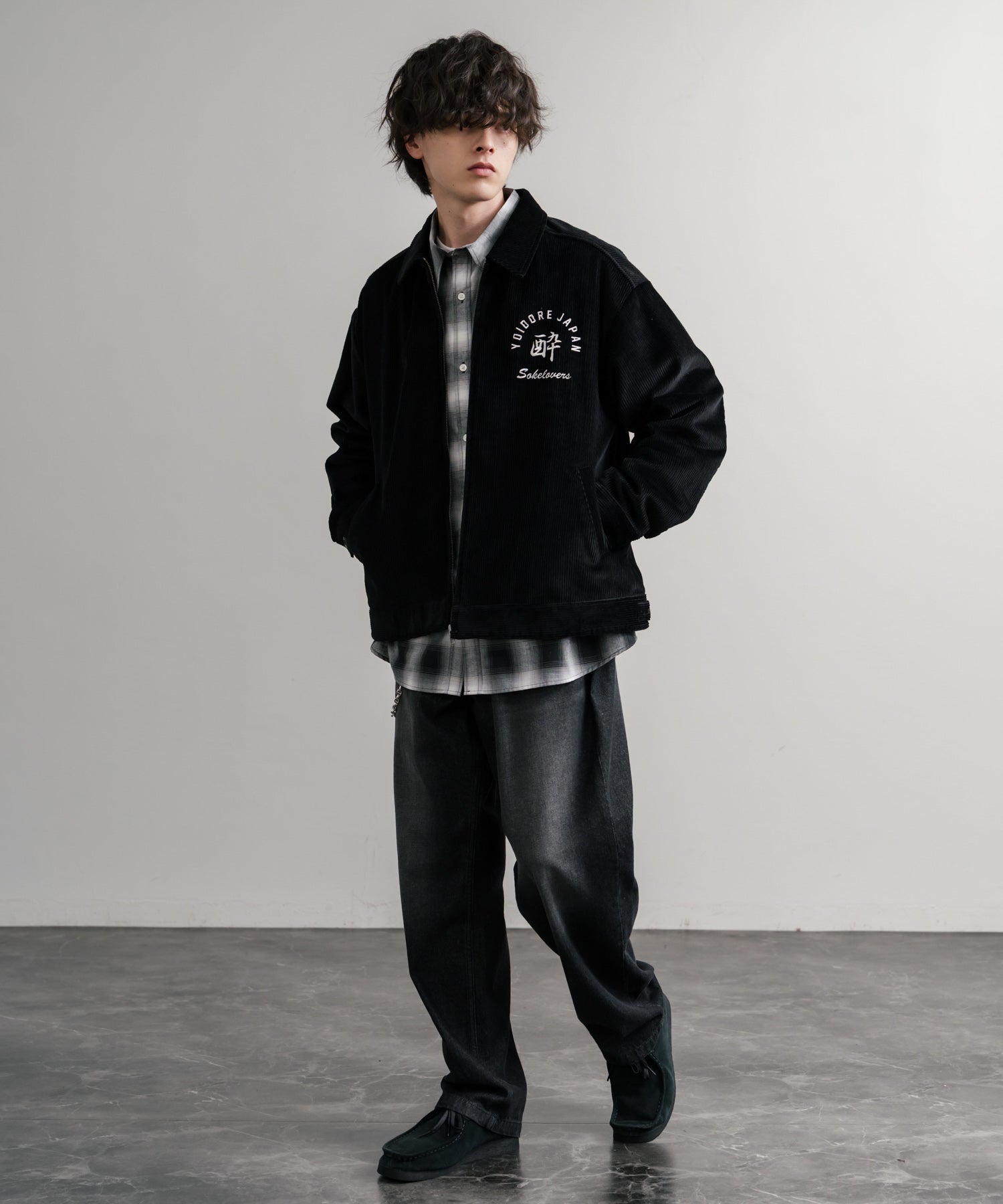 バッグに「酒愛好家」刺繍デザインが施された!YOIDOREコーデュロイジャケット。