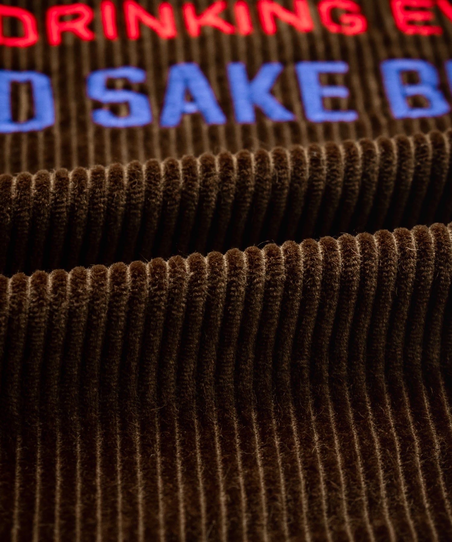 バッグに「酒愛好家」刺繍デザインが施されたコーデュロイジャケット。