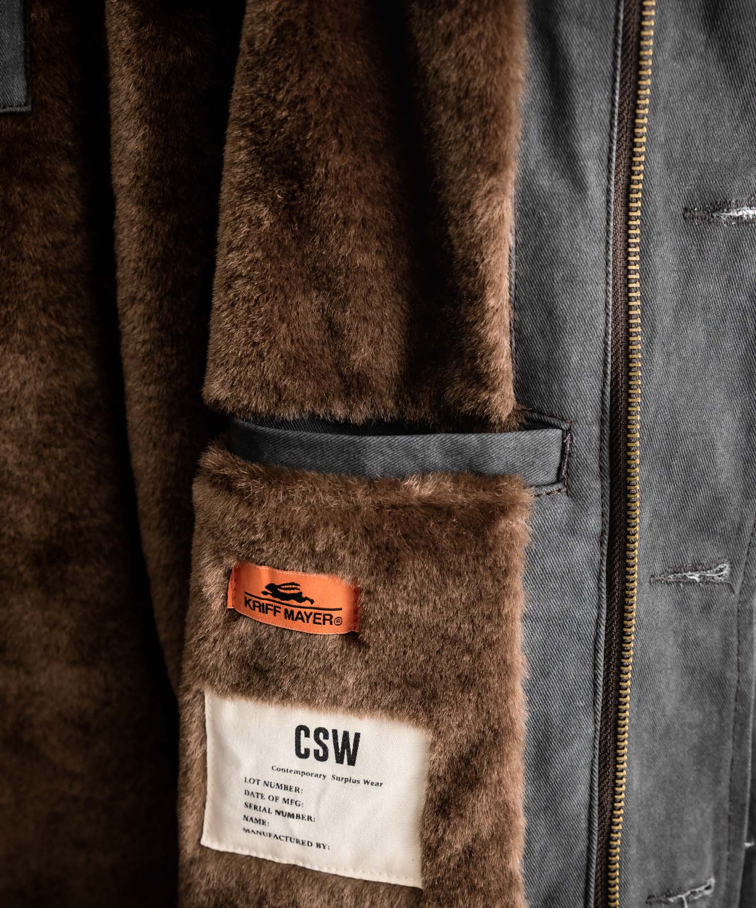 襟と裏地はアルパカ調の肉厚なボアライナーで、優れた保温性を発揮!