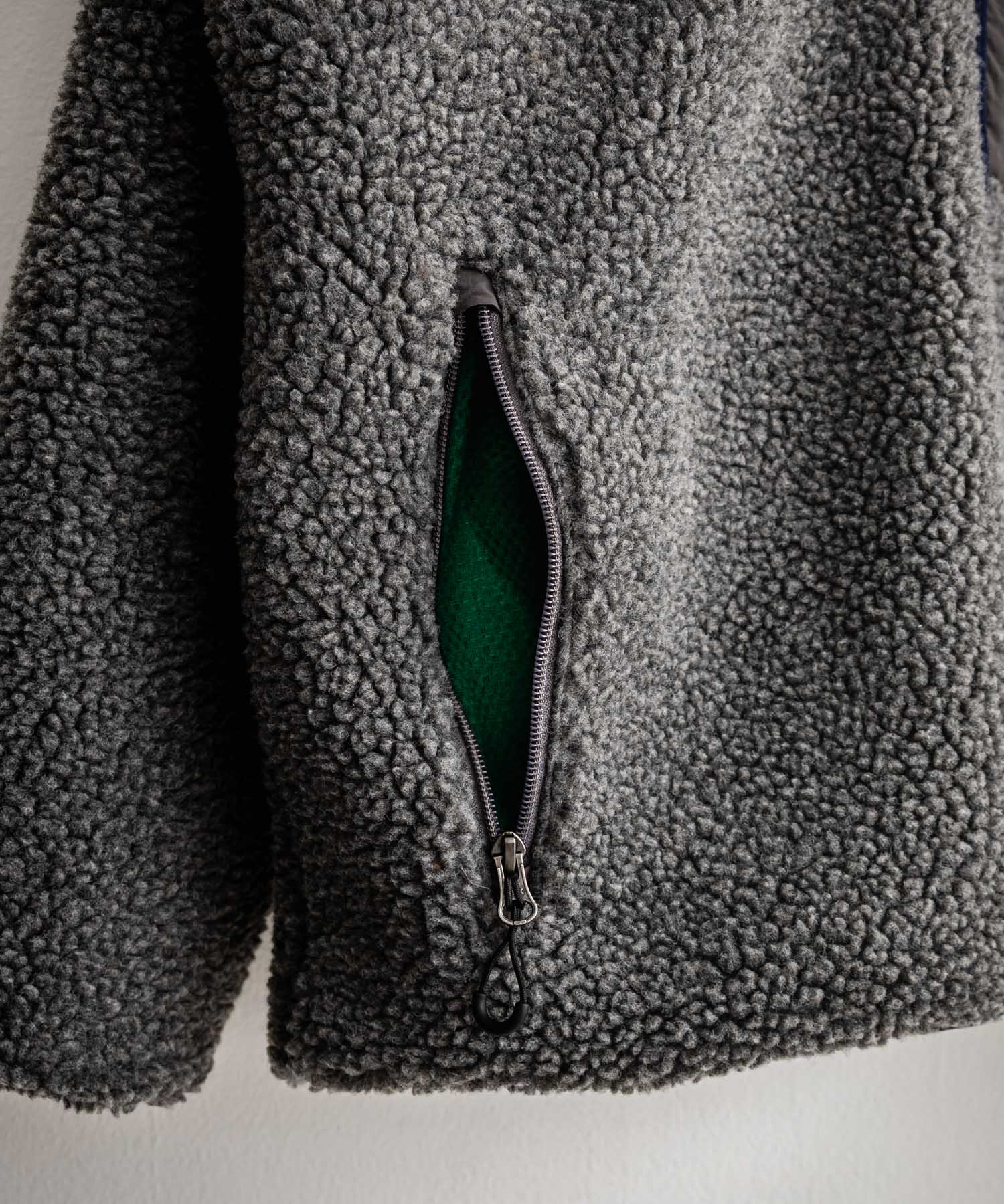 左胸のジップポケット&ワンポイントロゴが特徴のボアジャケット。