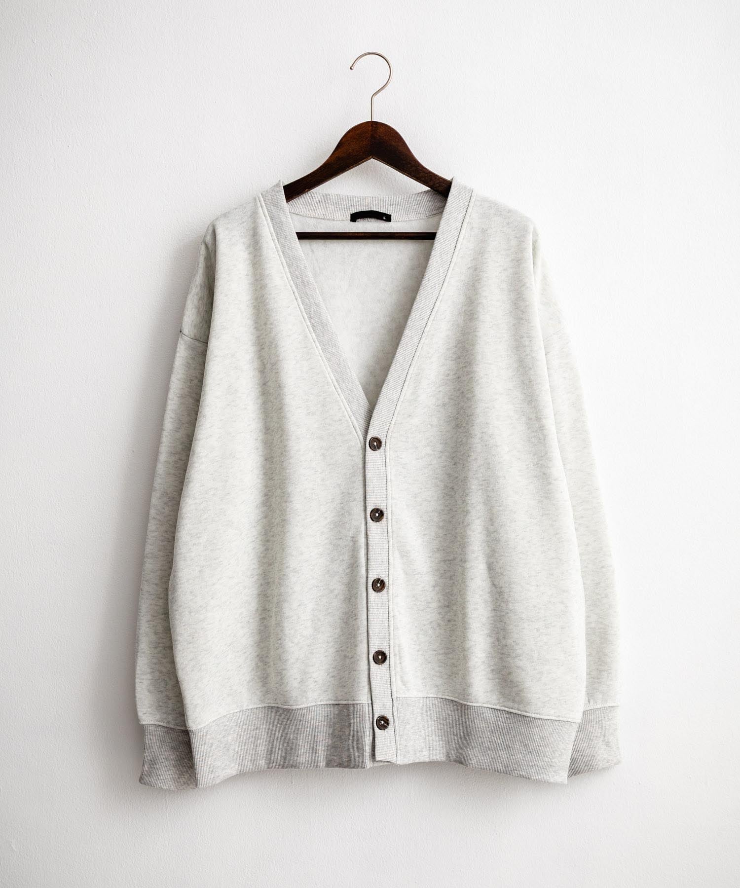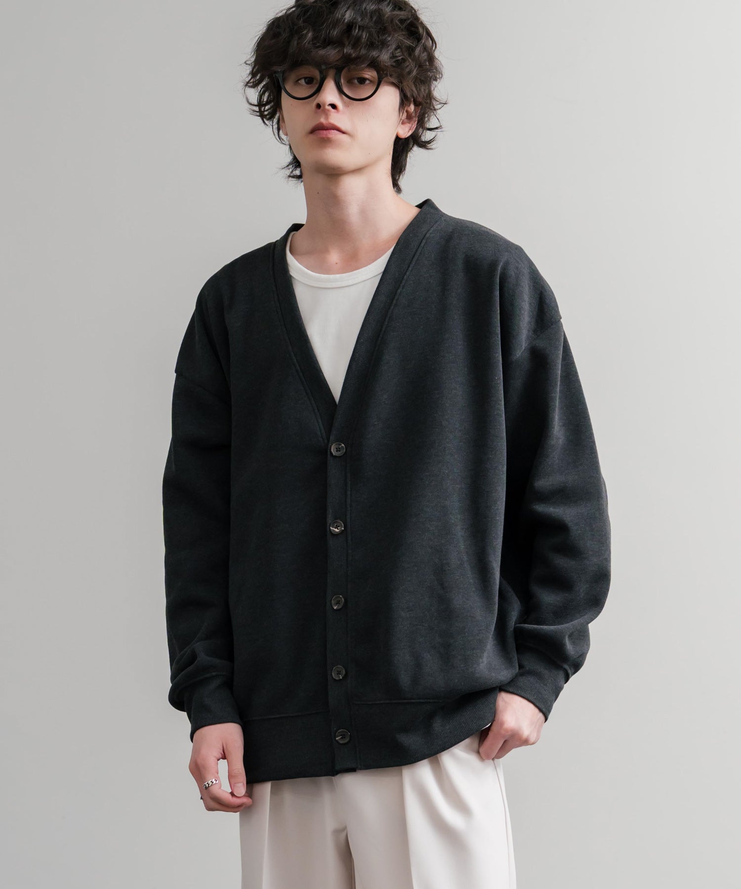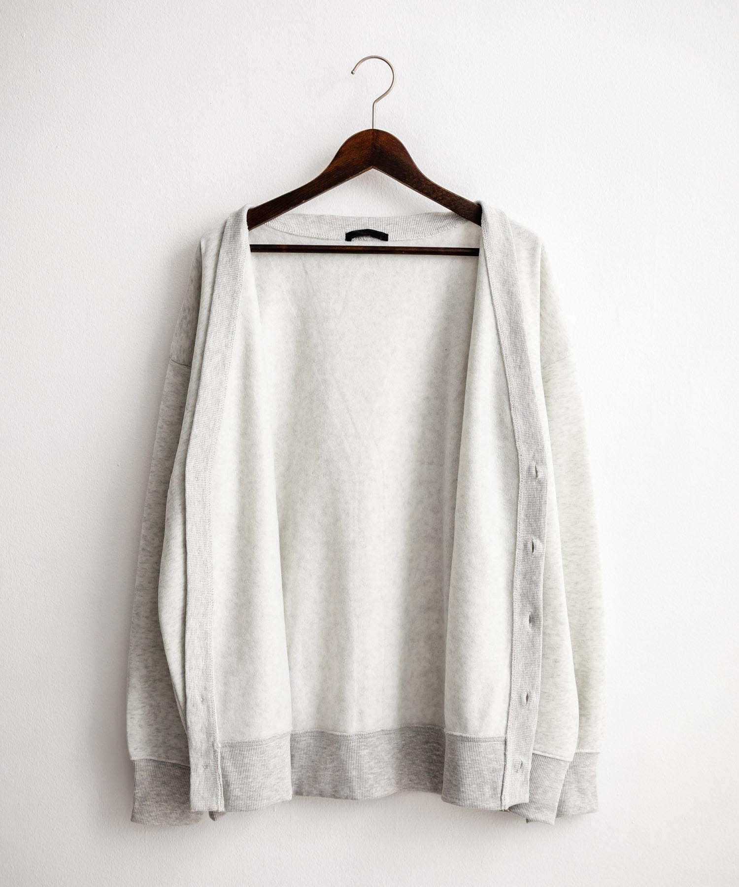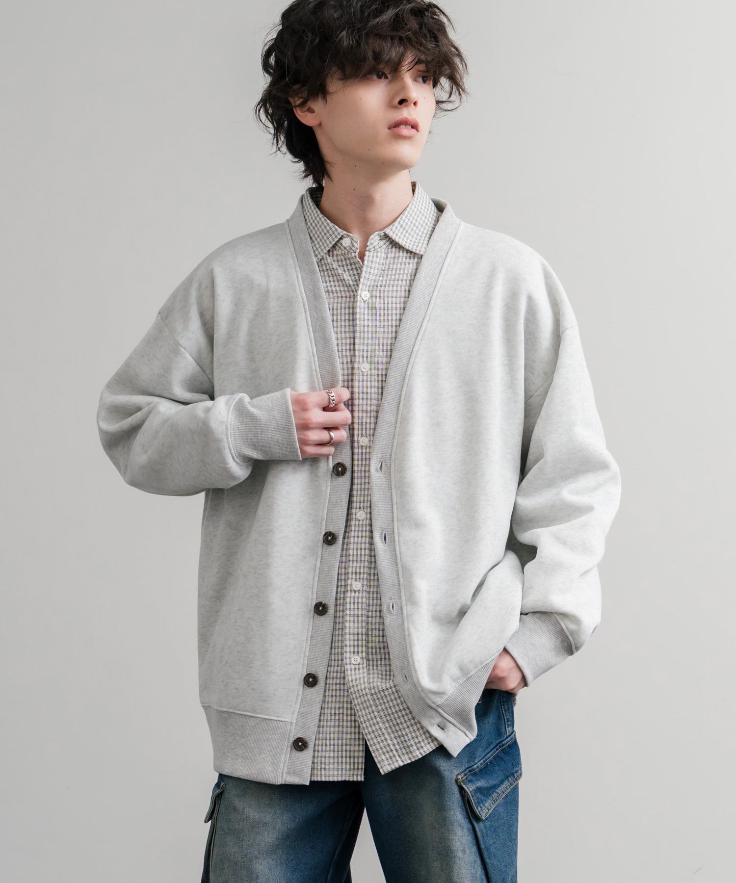 Vネックに5つのボタンを配した上品なデザイン!綿タッチ裏起毛カーディガン。