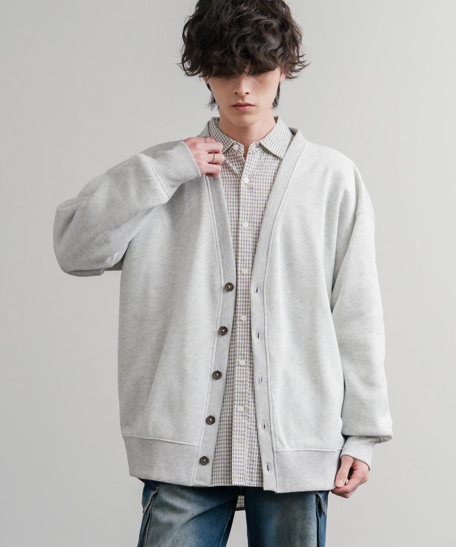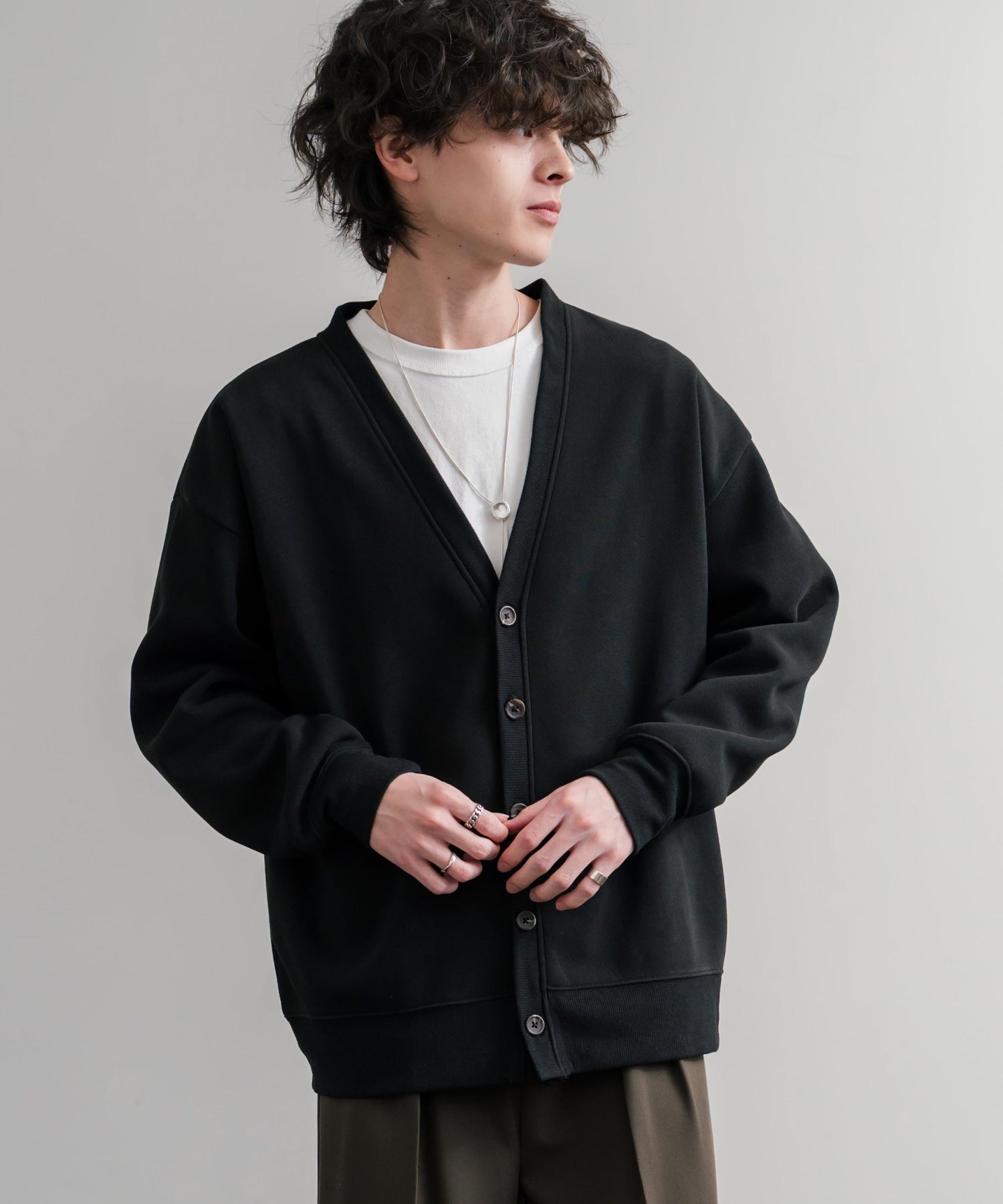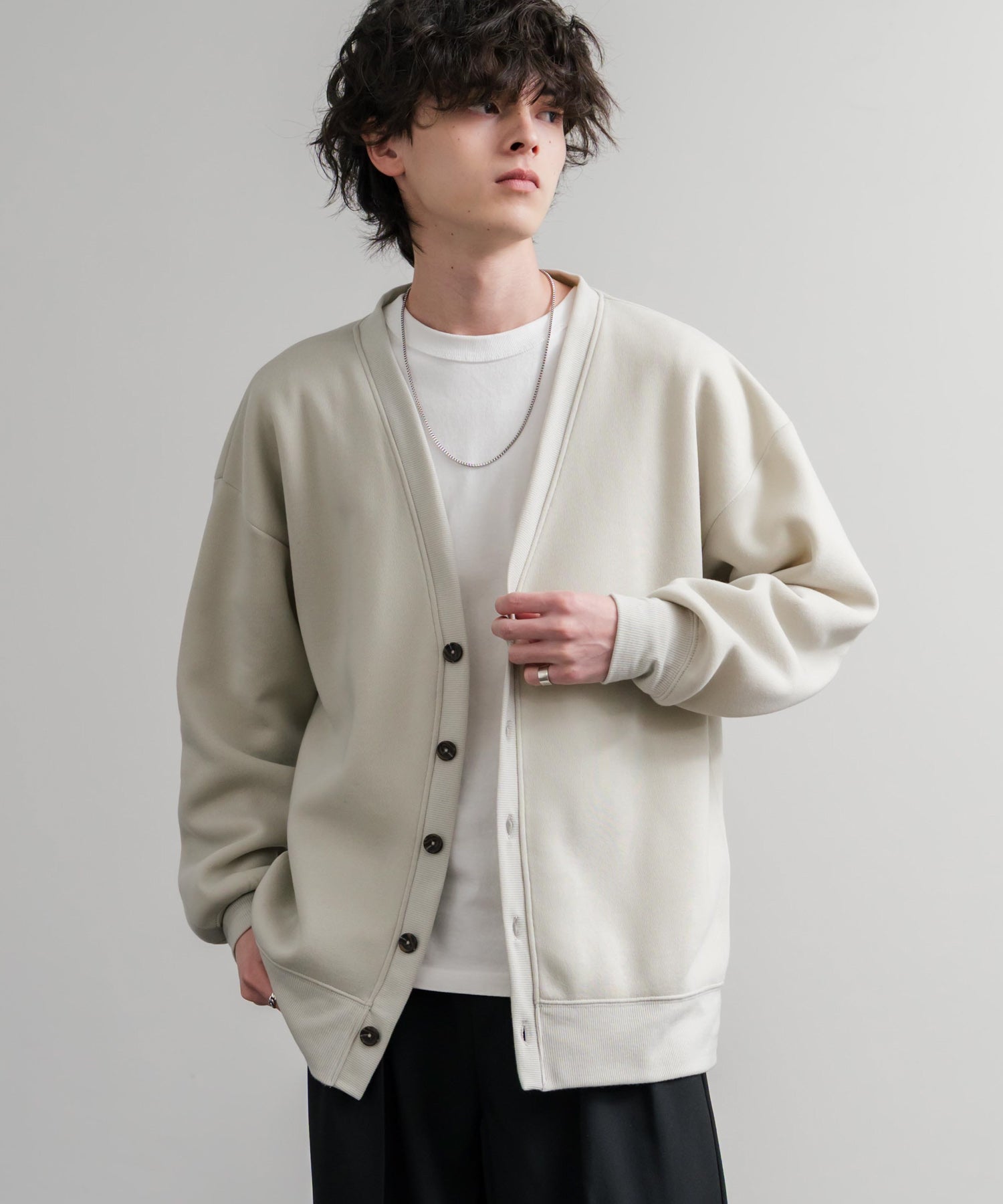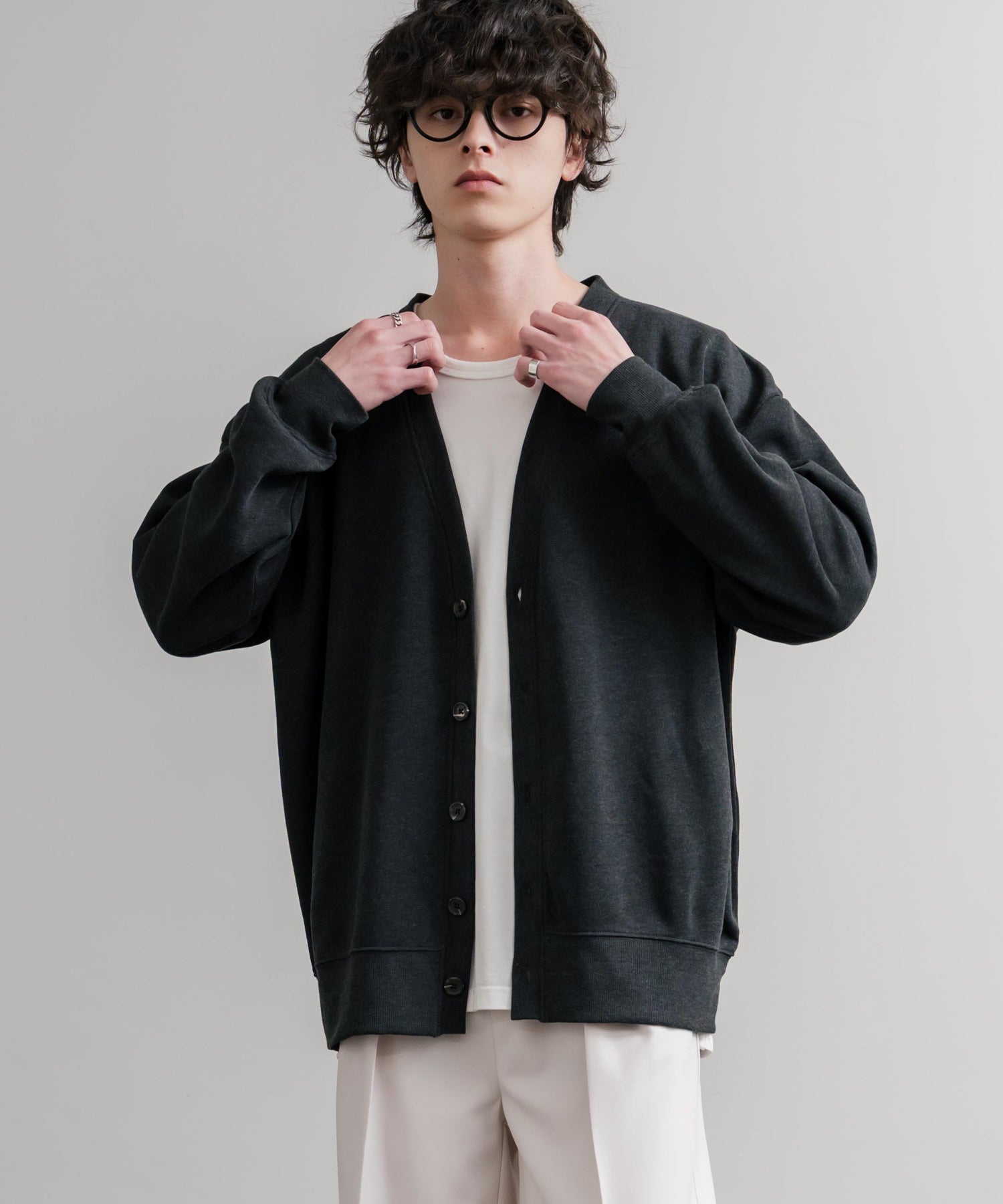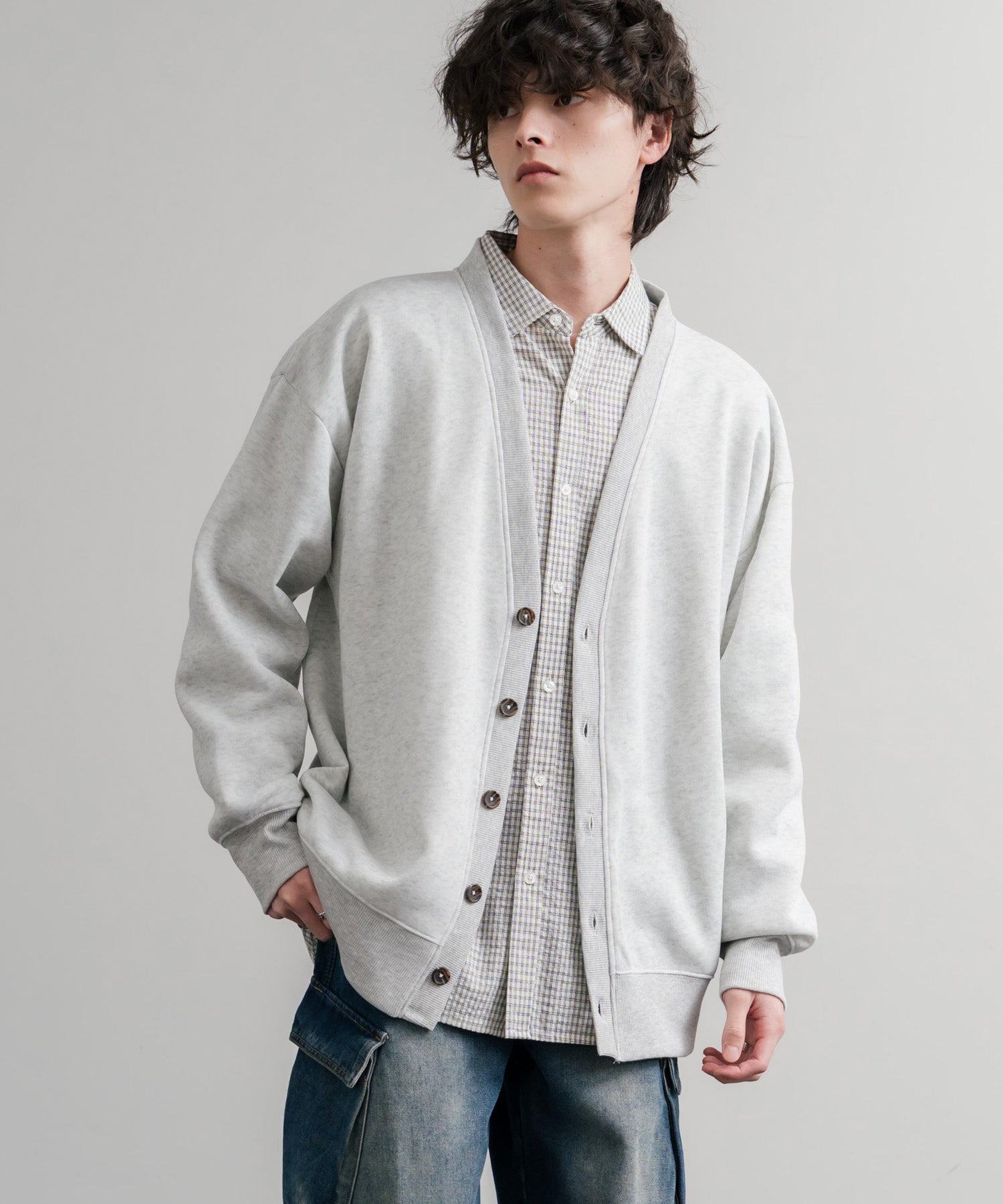 Vネックに5つのボタンを配した上品なデザイン!綿タッチ裏起毛カーディガン。