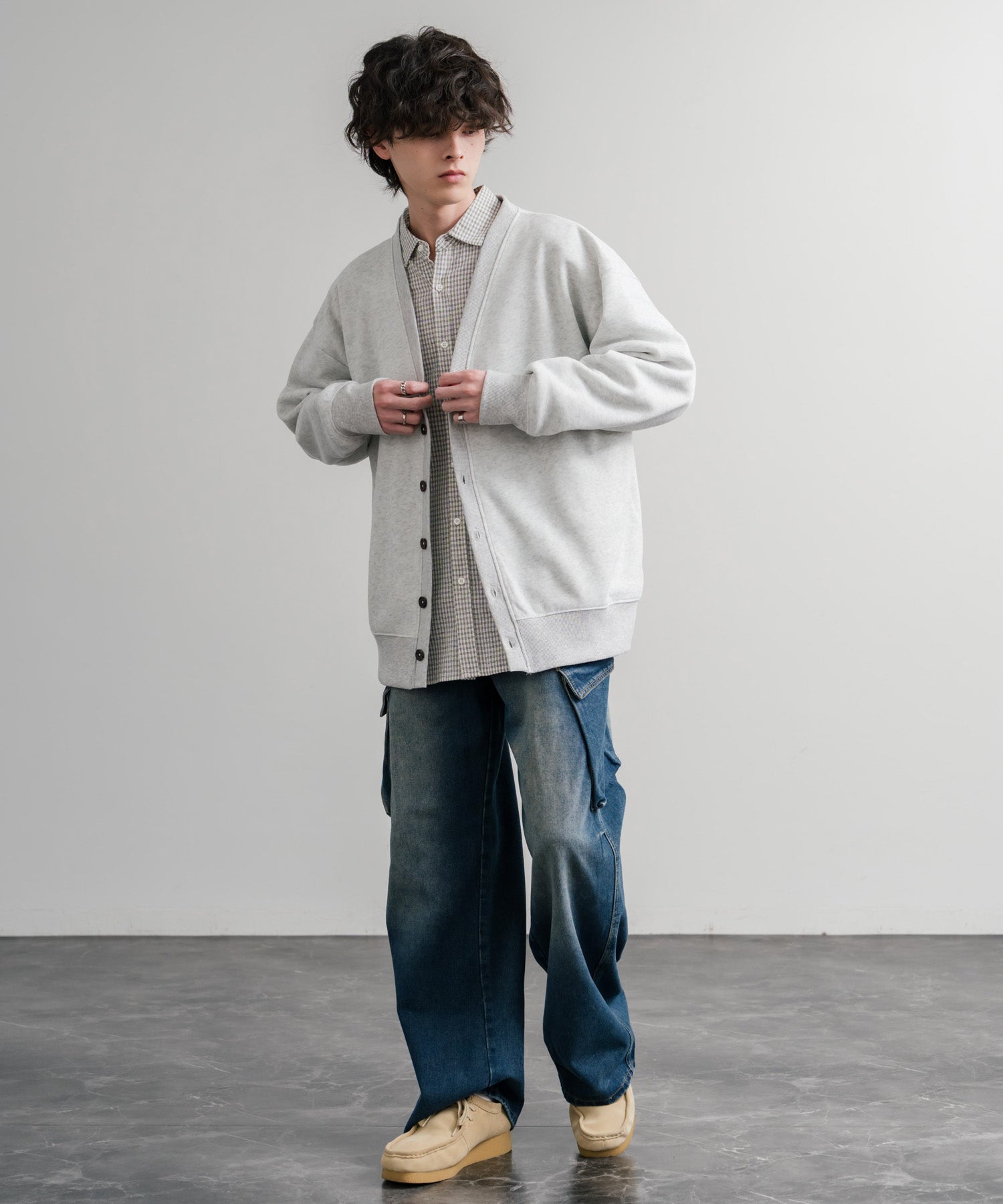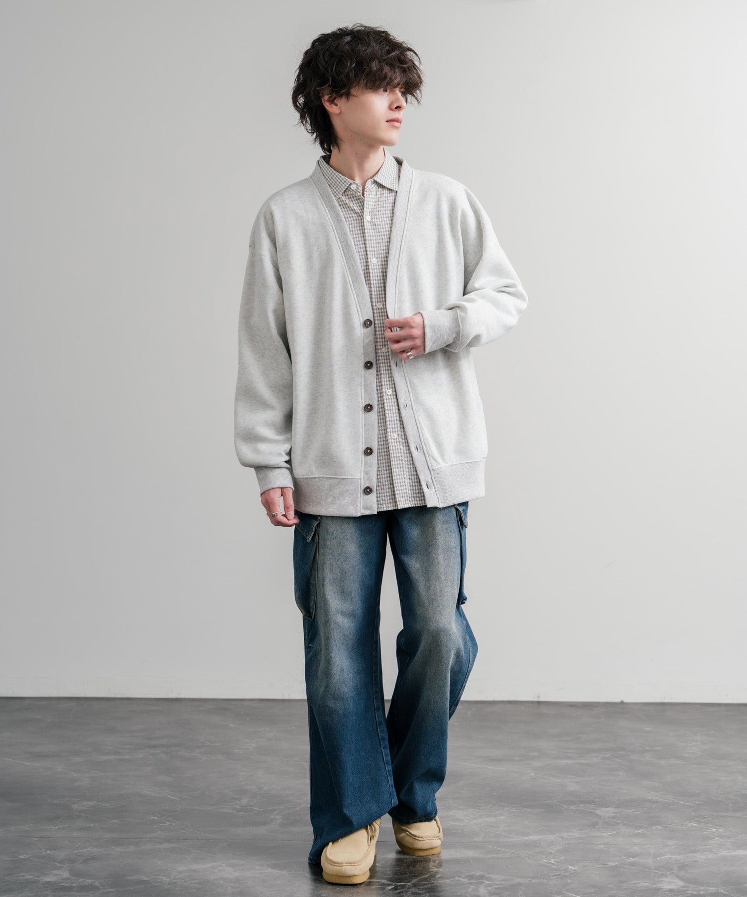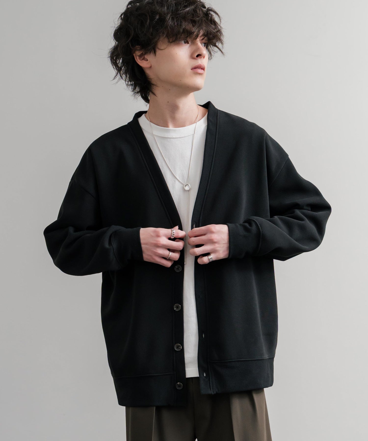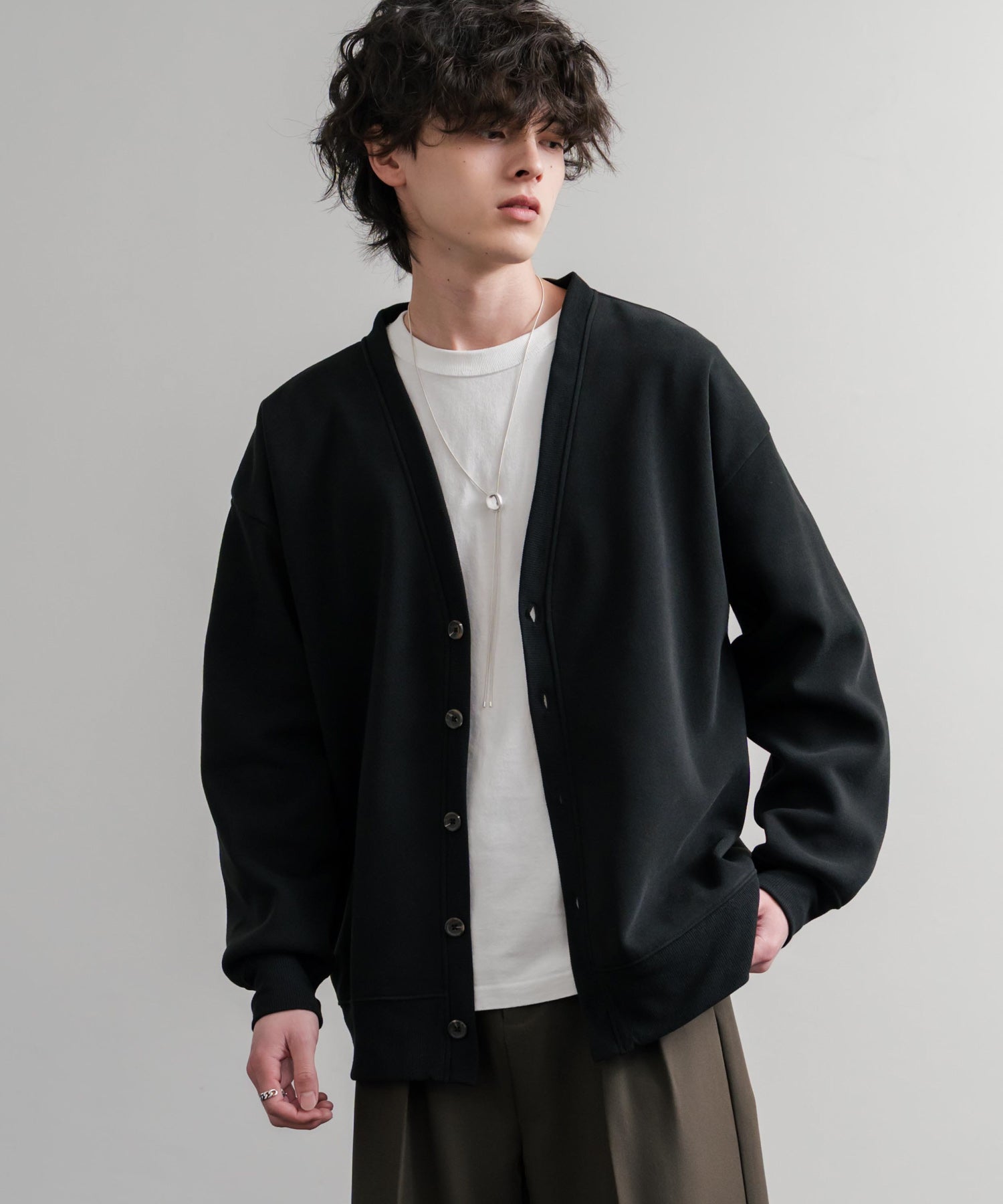Vネックに5つのボタンを配した上品なデザイン!綿タッチ裏起毛カーディガン。