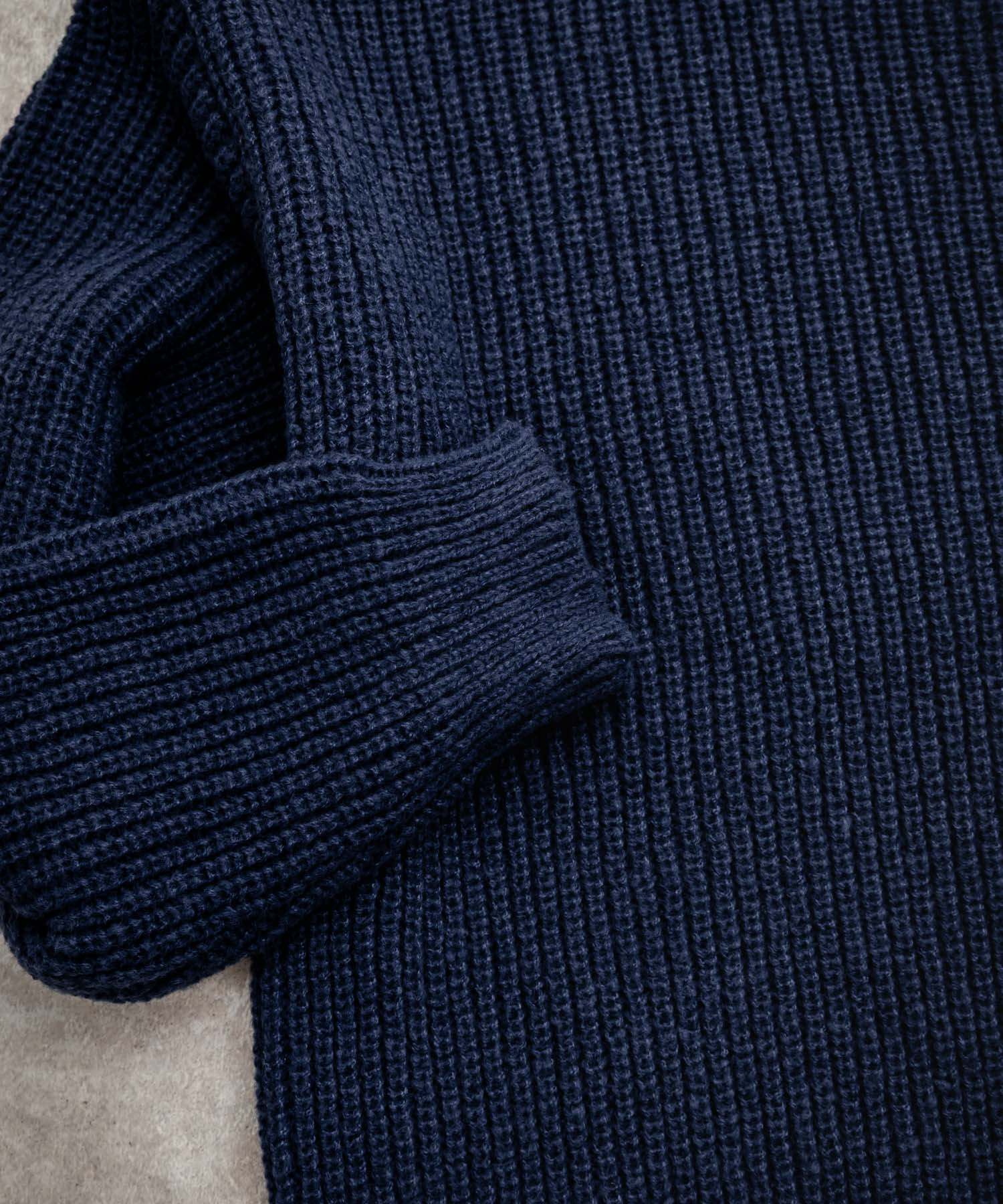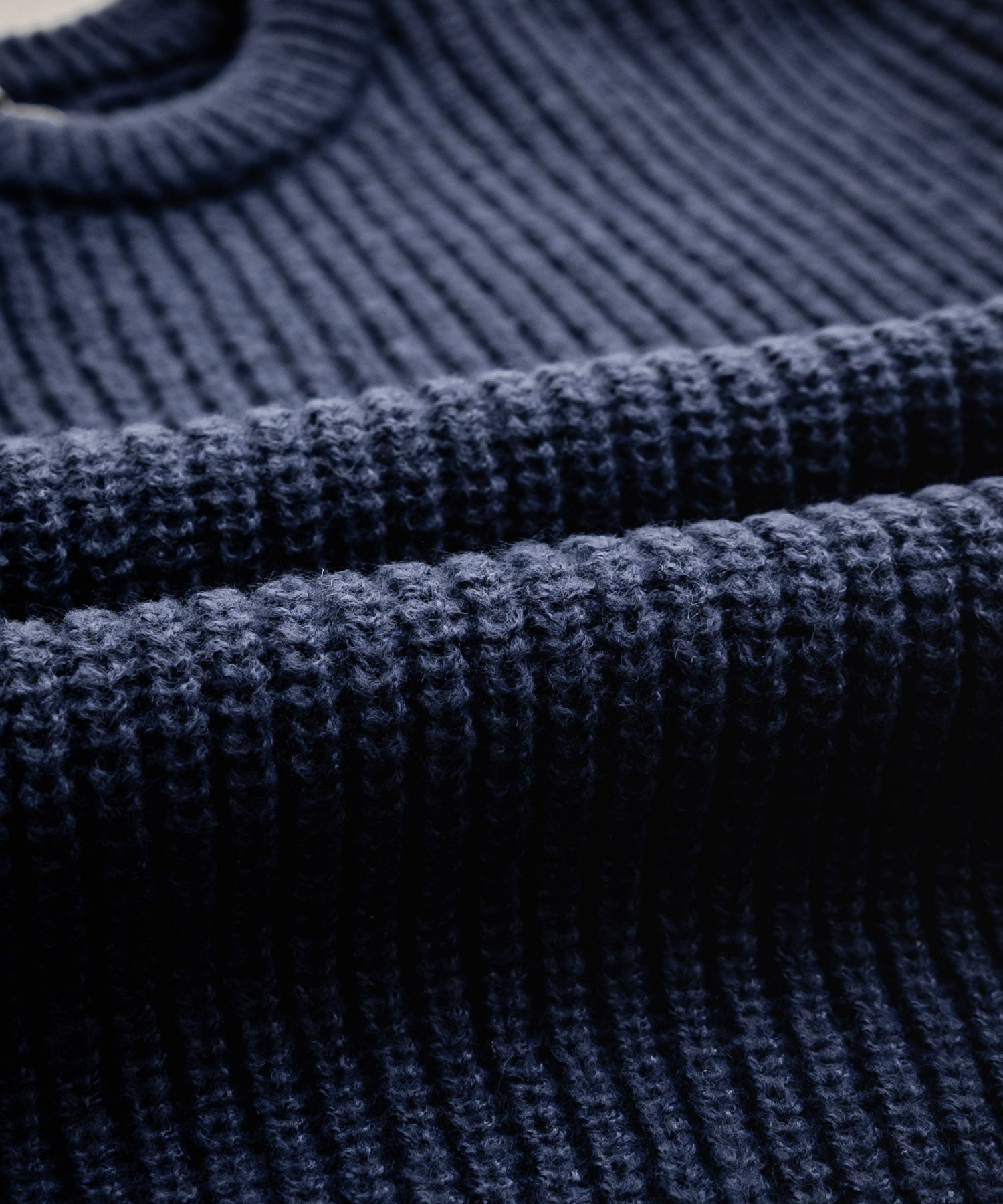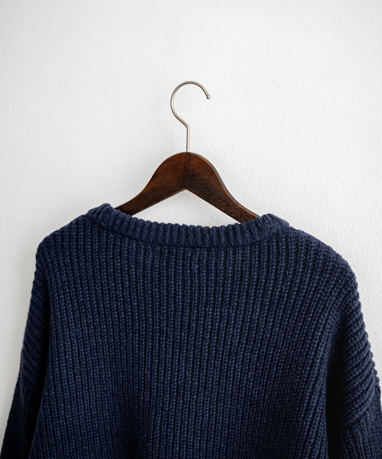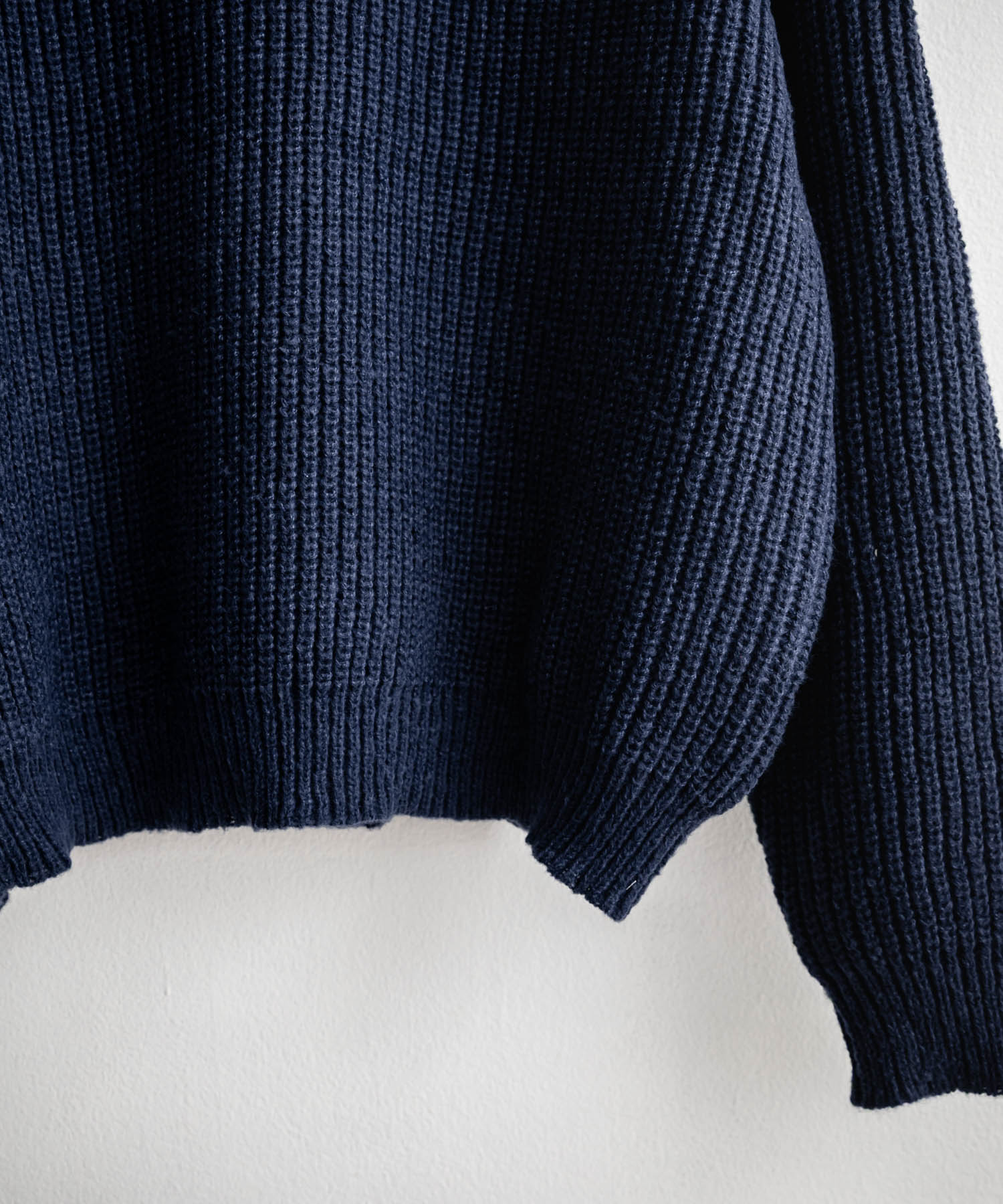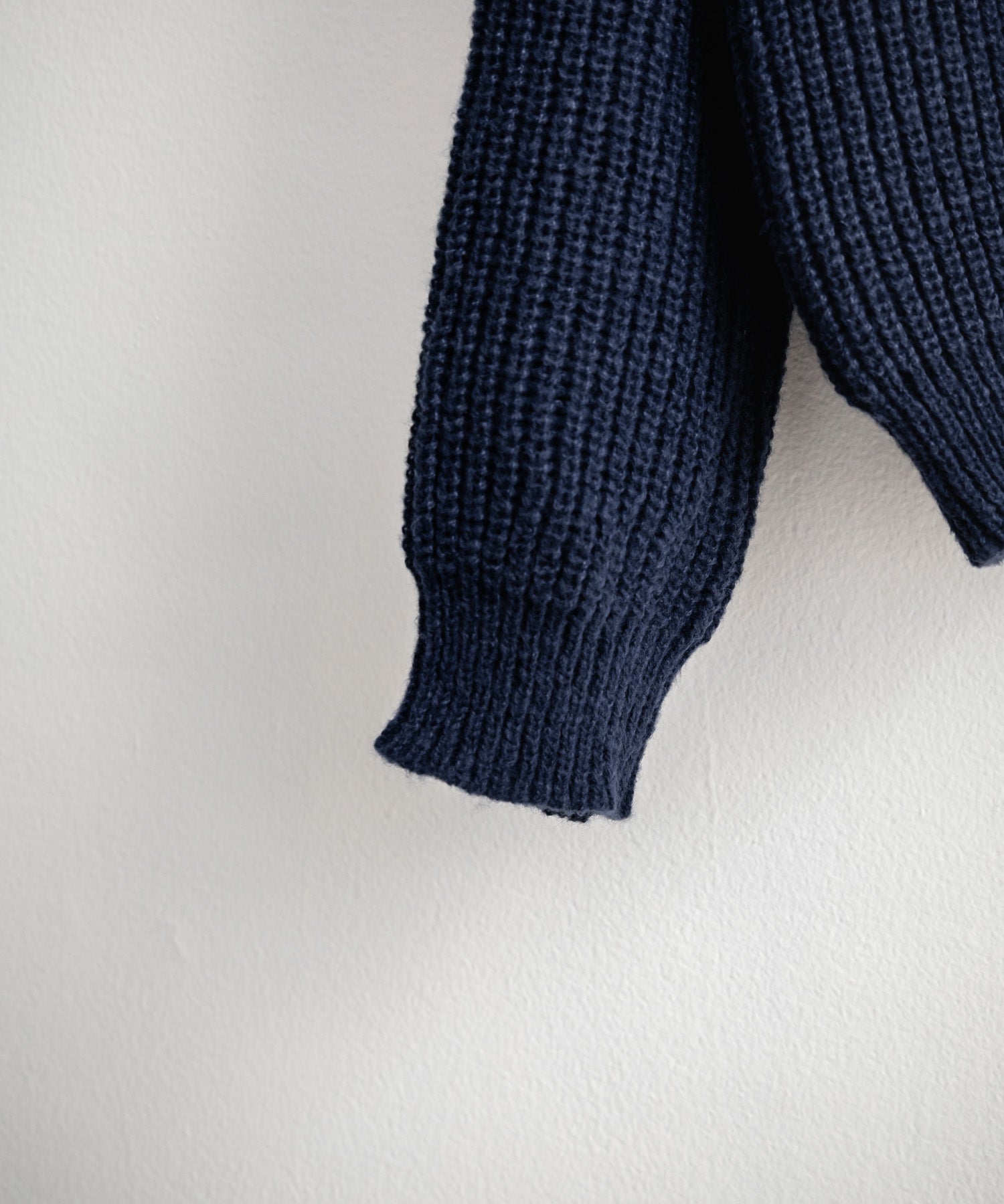 凹凸と立体感のある畦編みで、ざっくりと編まれたボリュームニット。