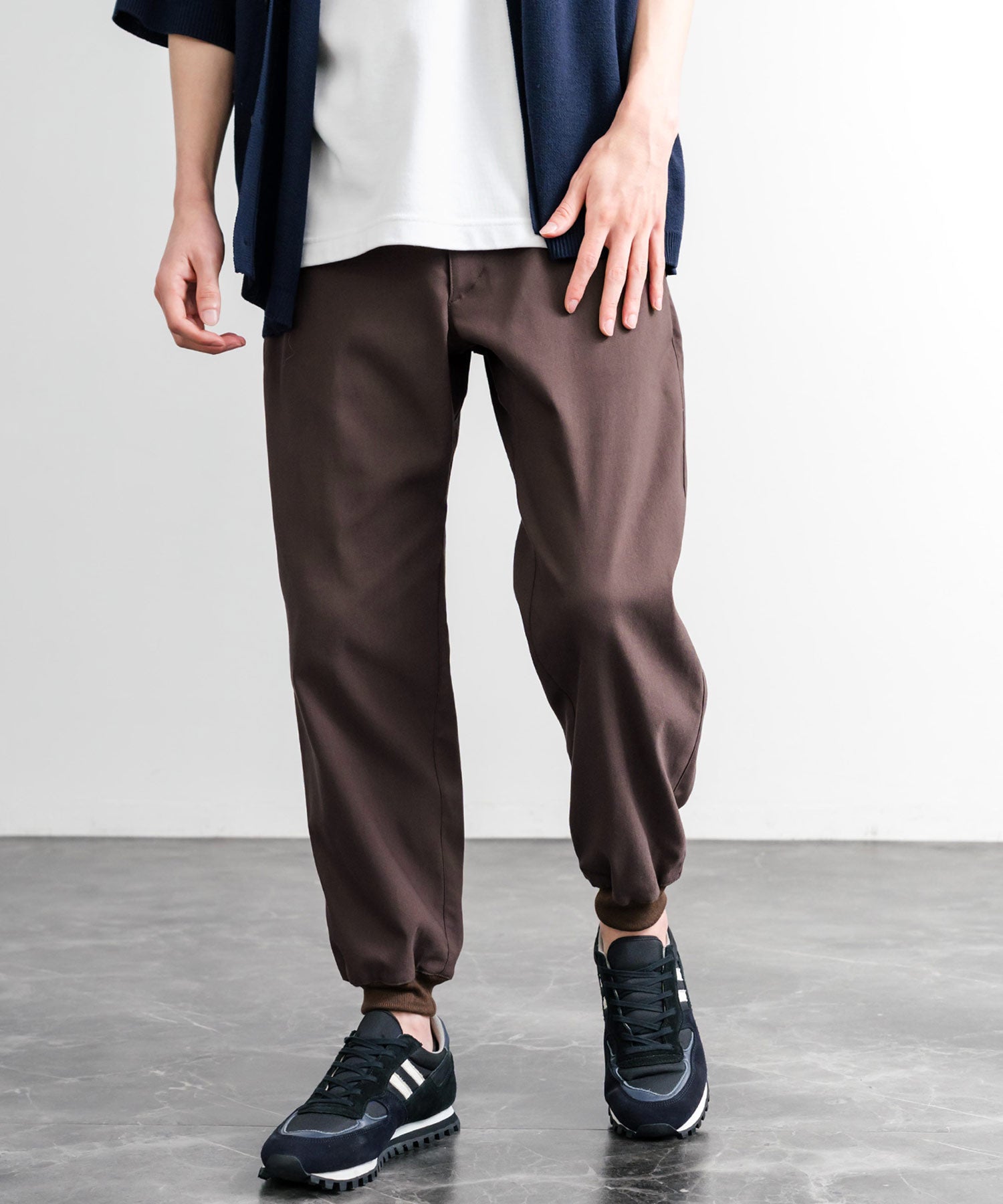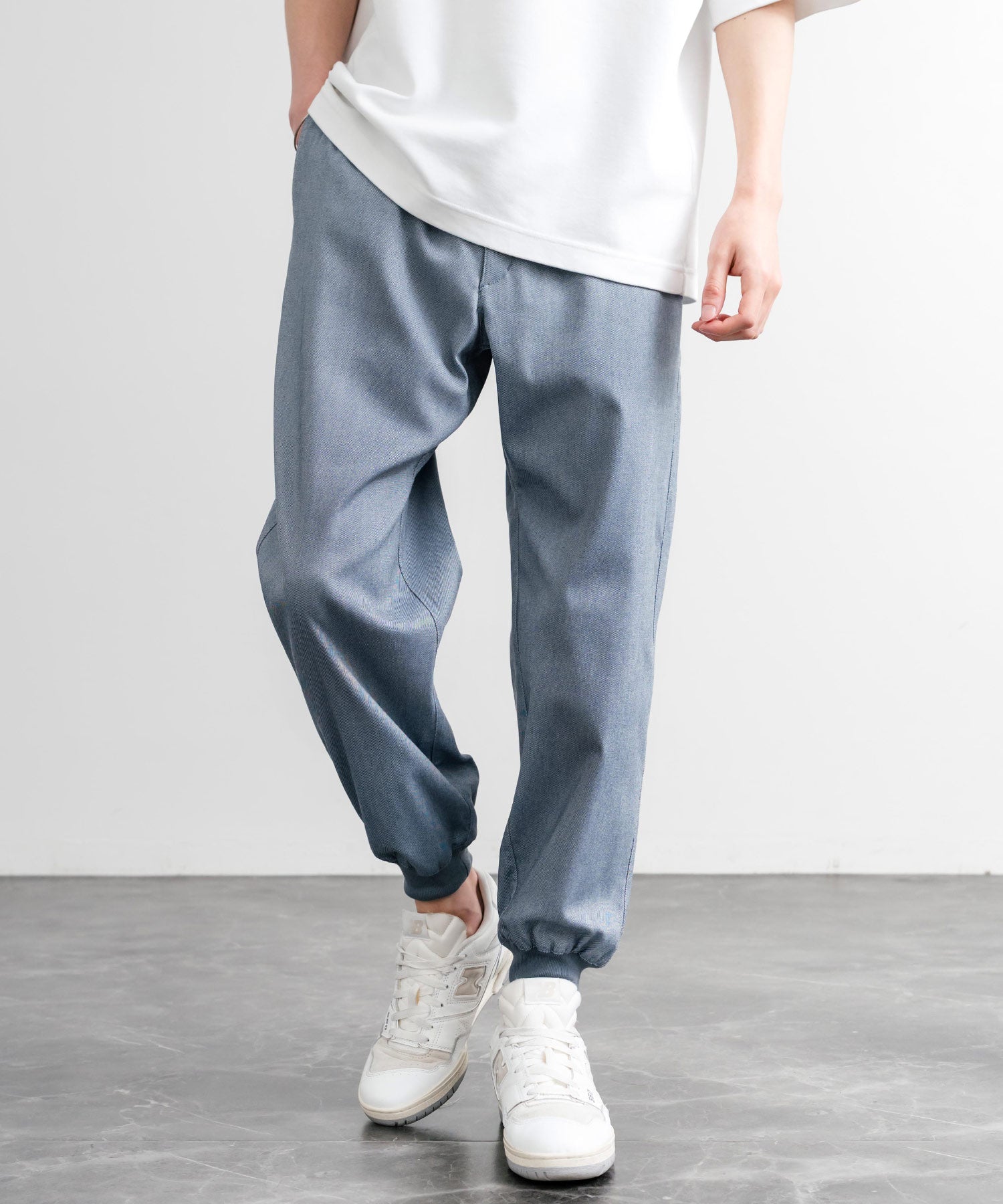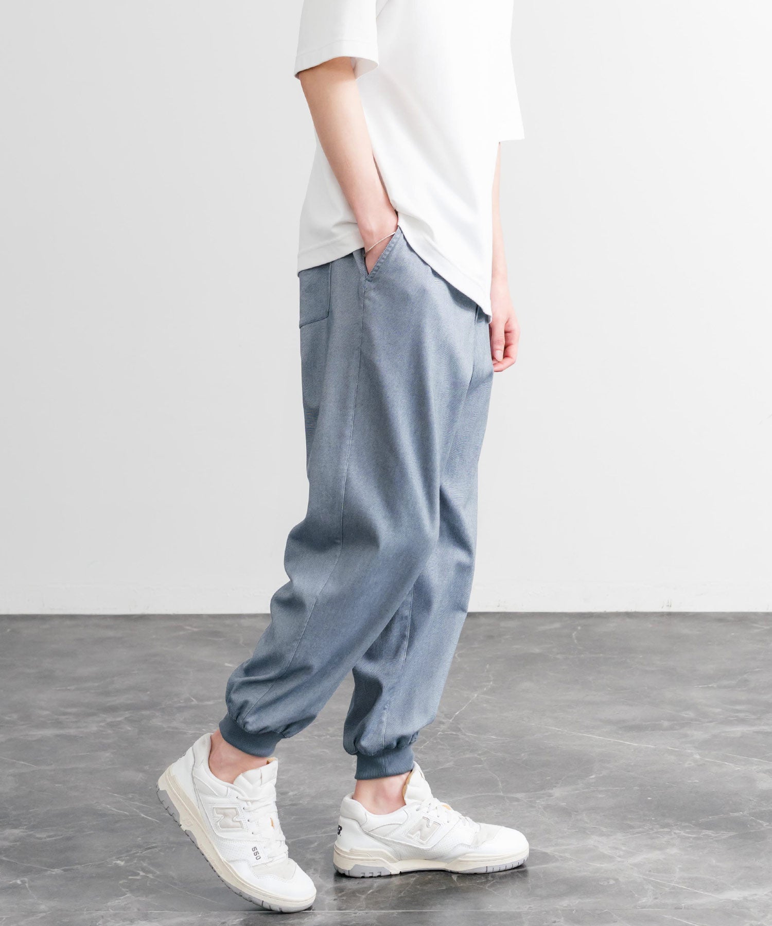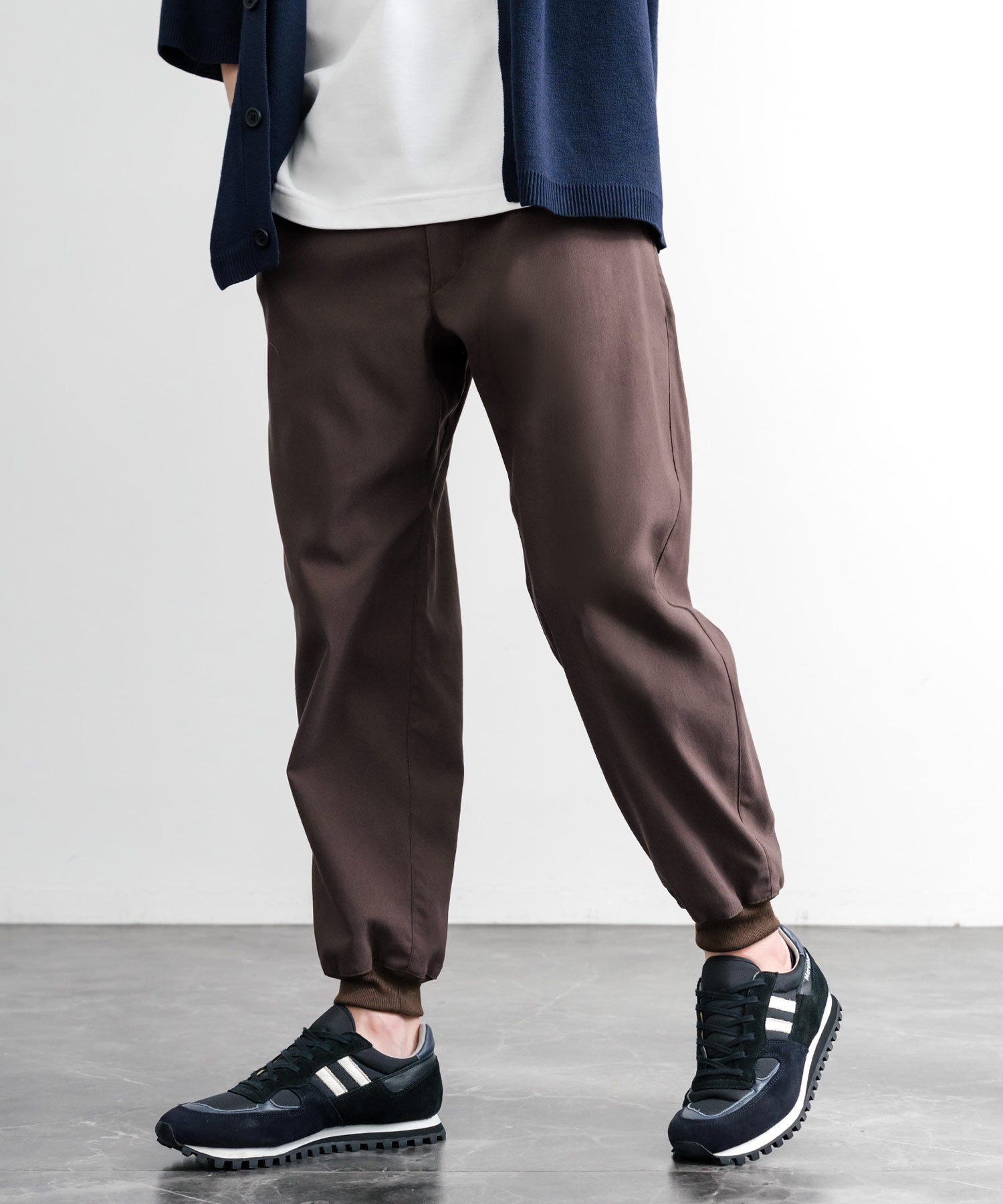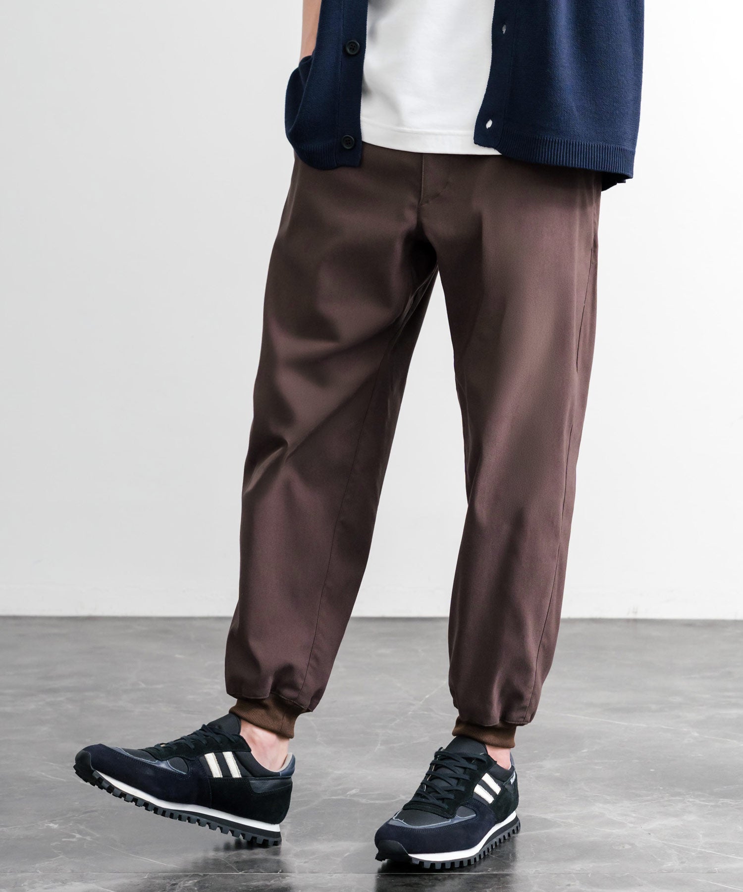裾に向かってゆるくテーパードし、リブ仕様で仕上げたジョガースタイル。
