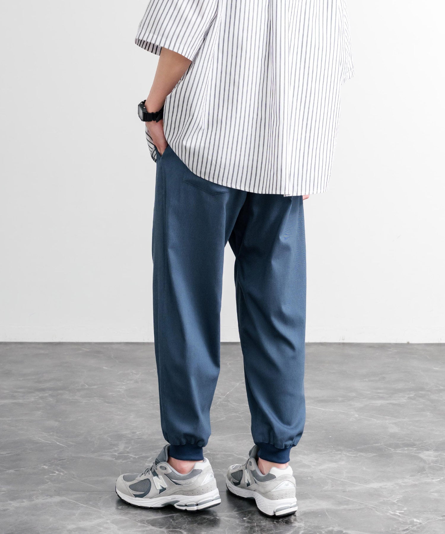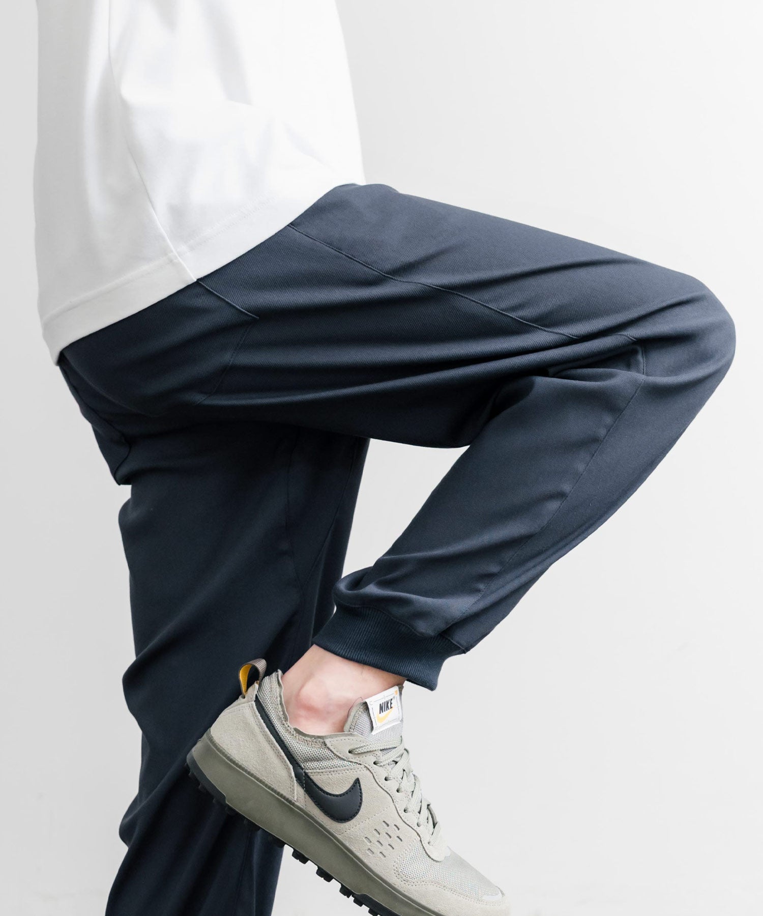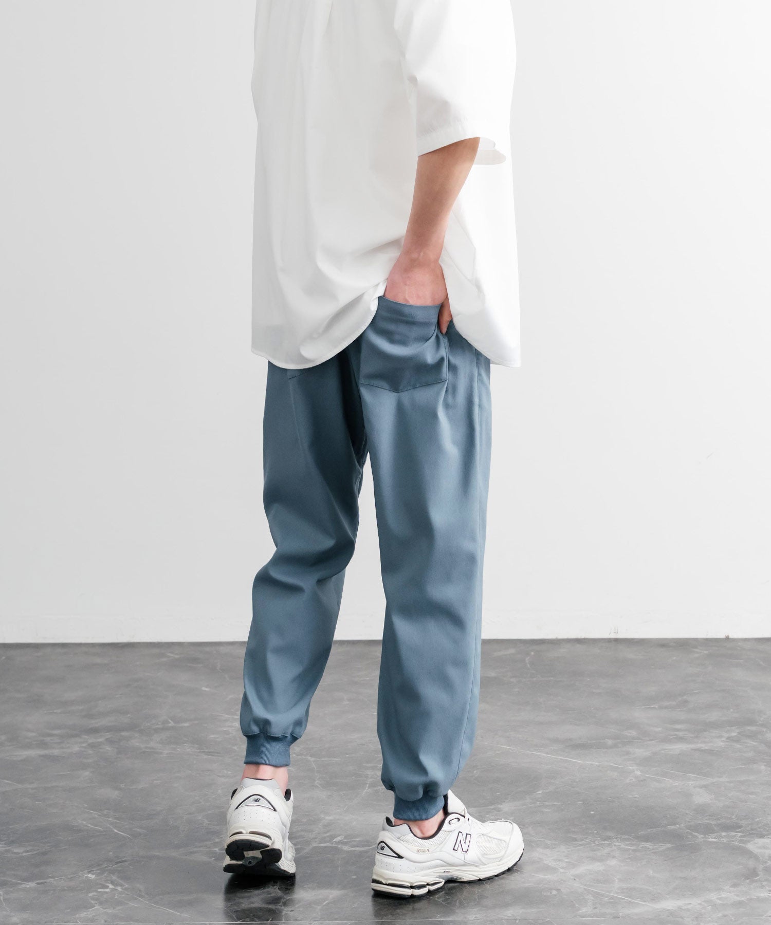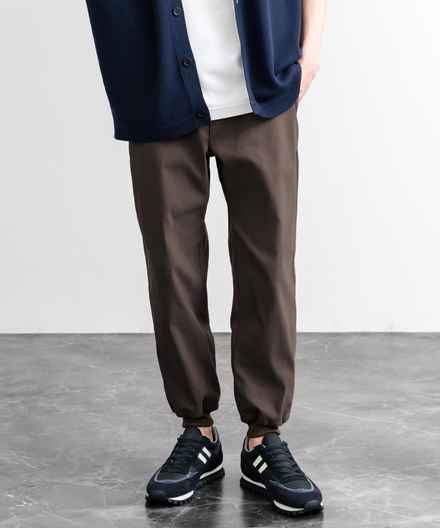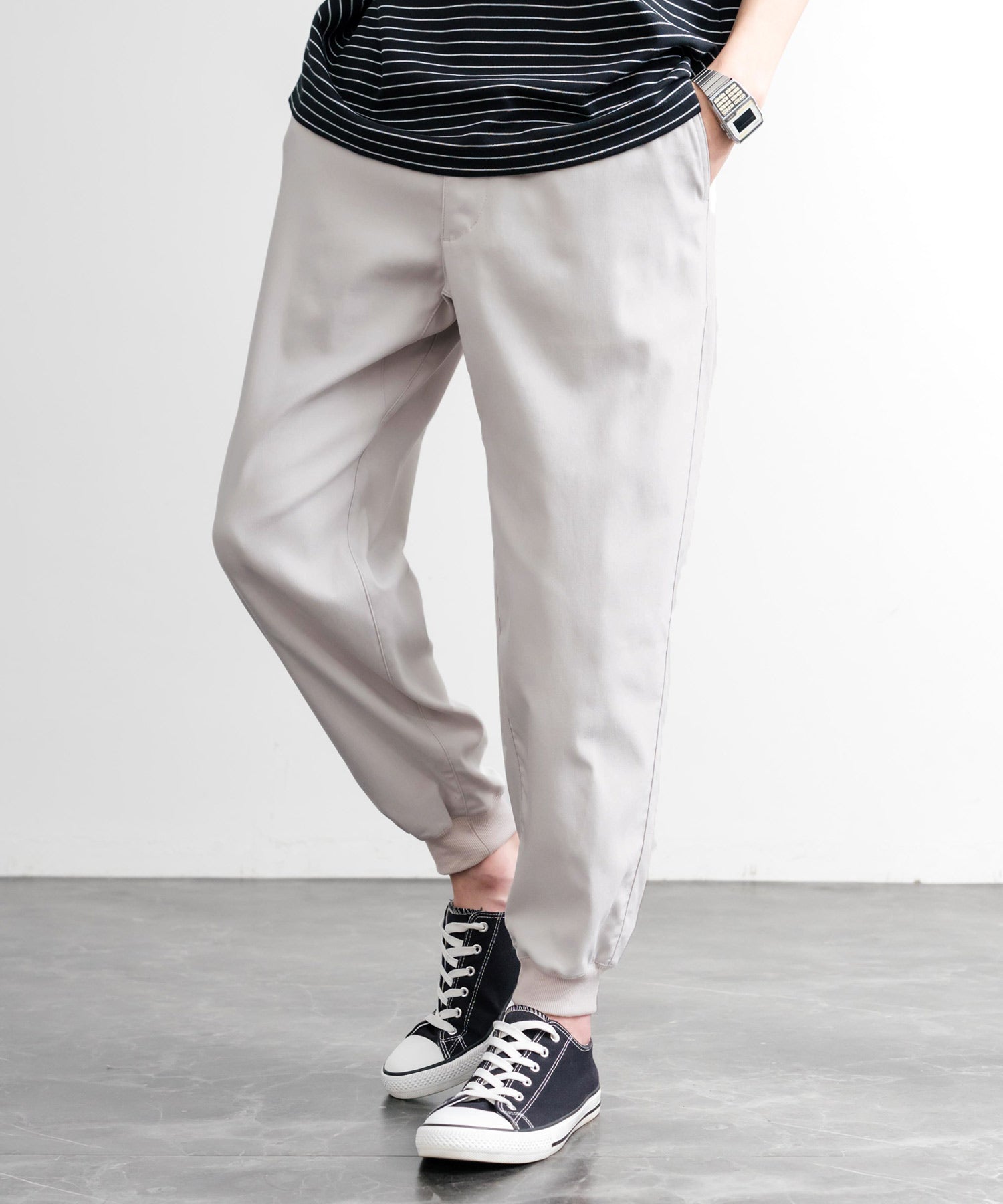 裾に向かってゆるくテーパードし、リブ仕様で仕上げたジョガースタイル。