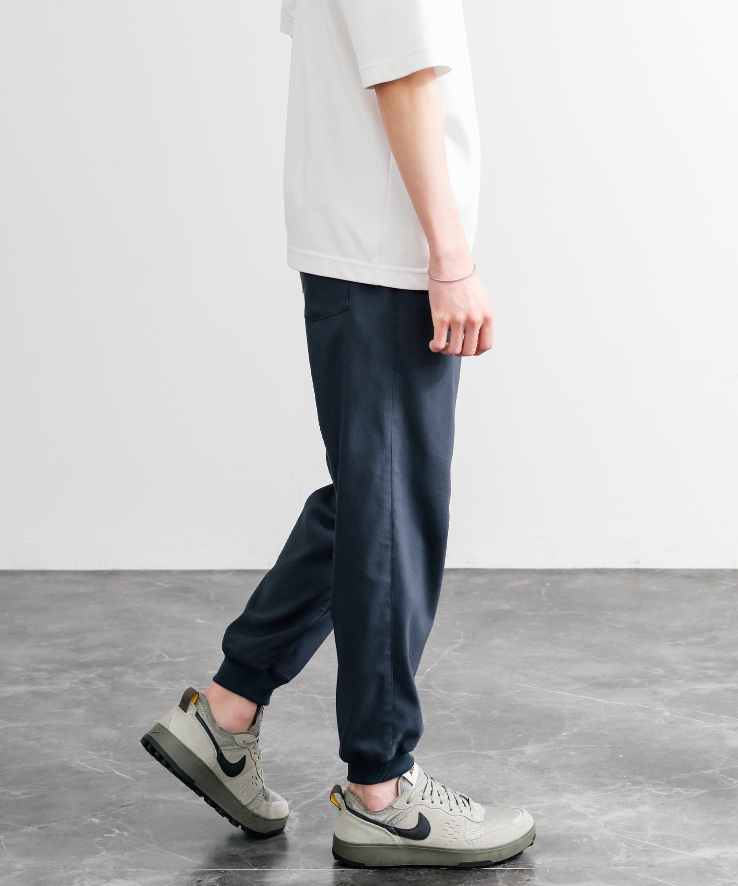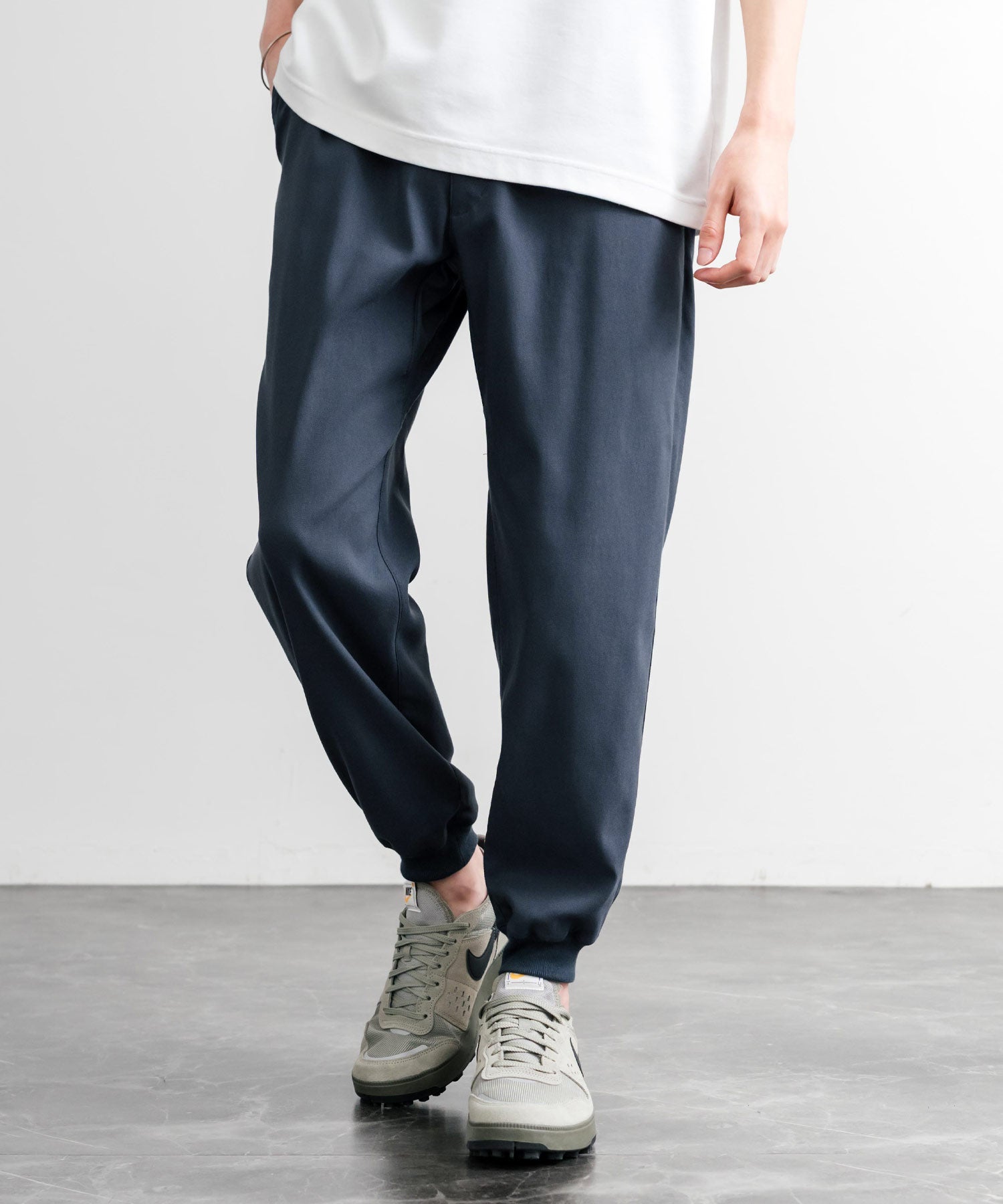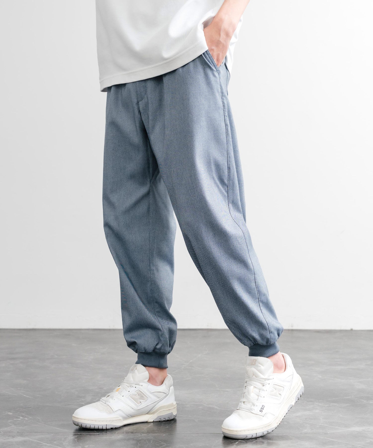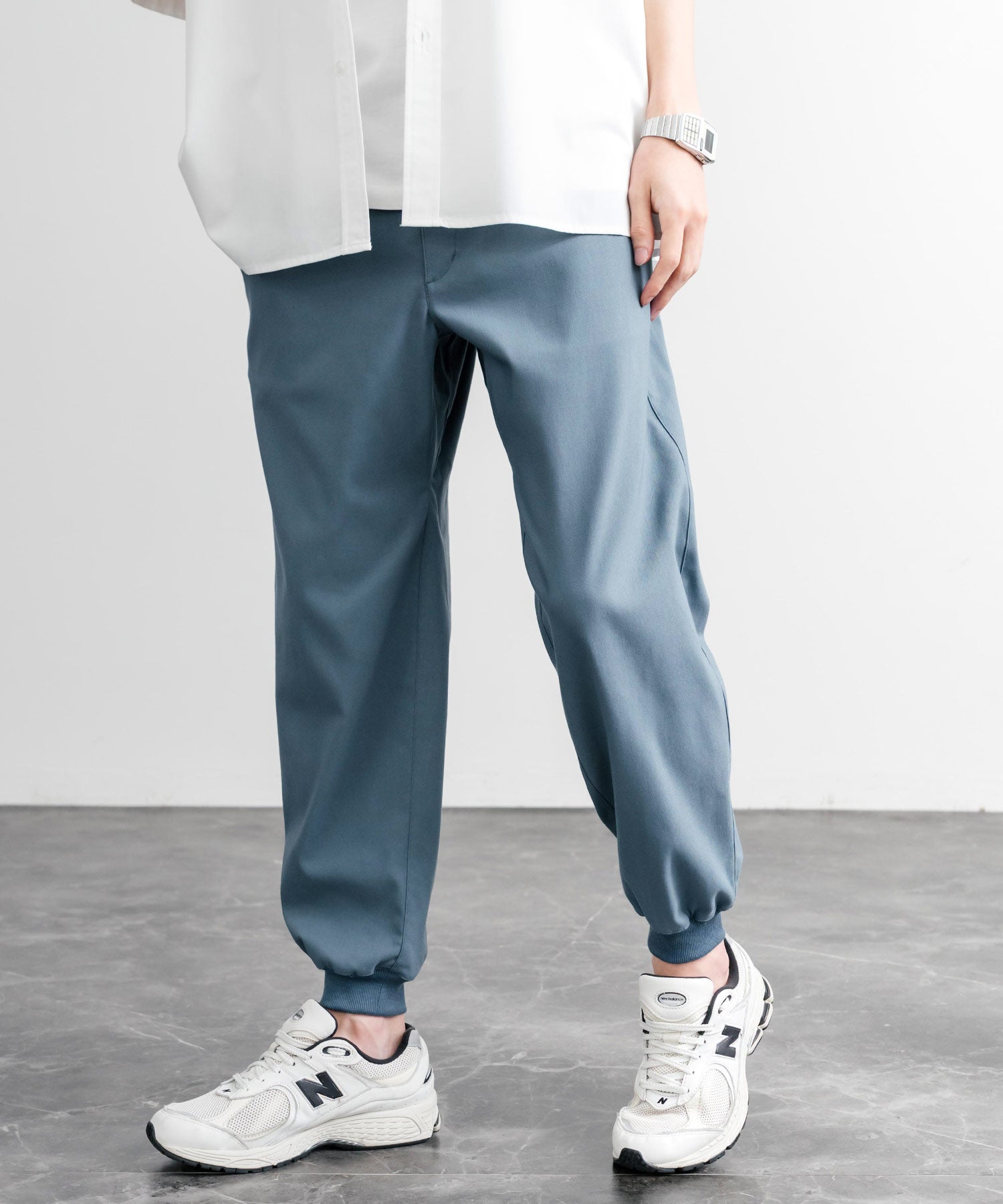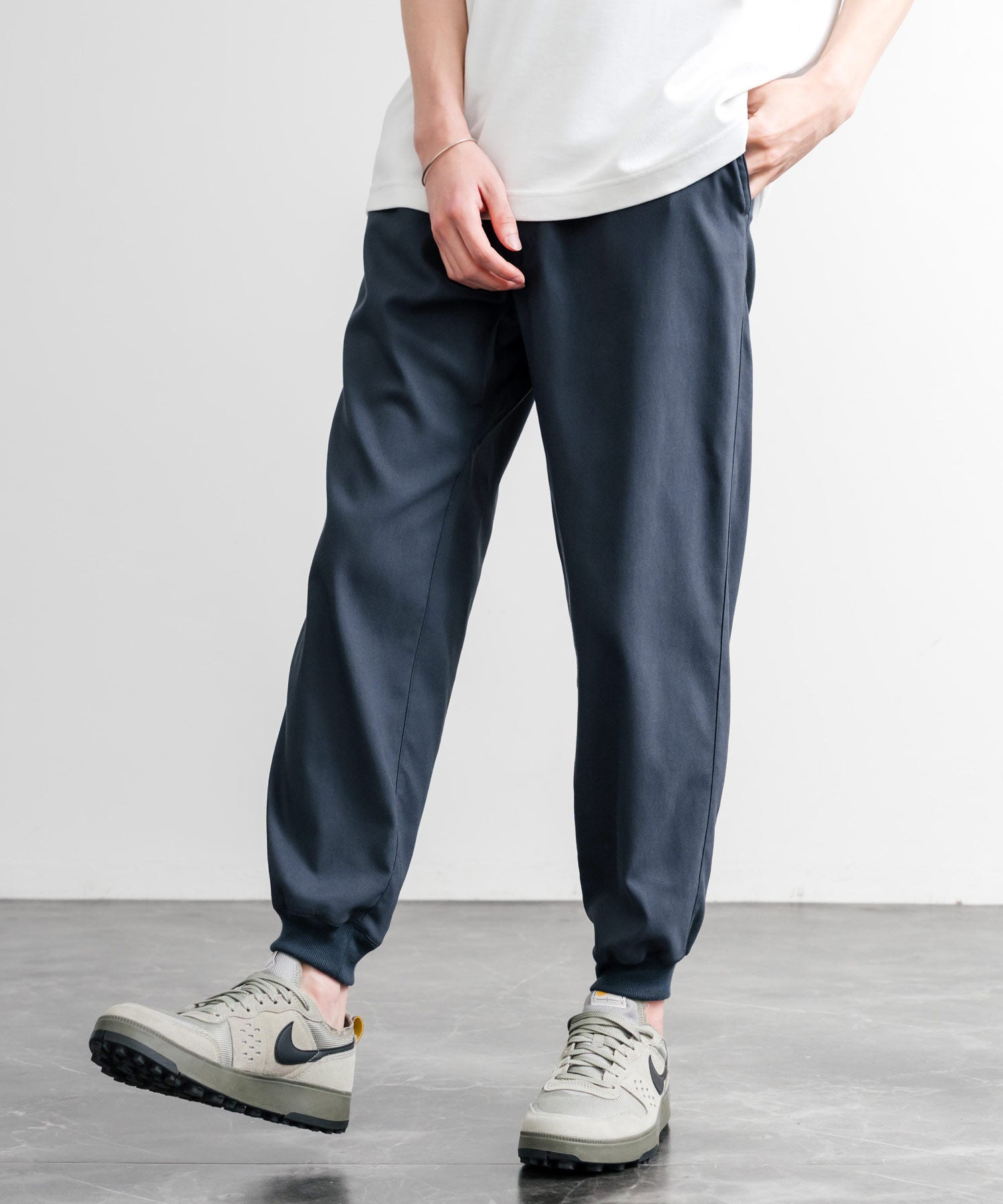 裾に向かってゆるくテーパードし、リブ仕様で仕上げたジョガースタイル。
