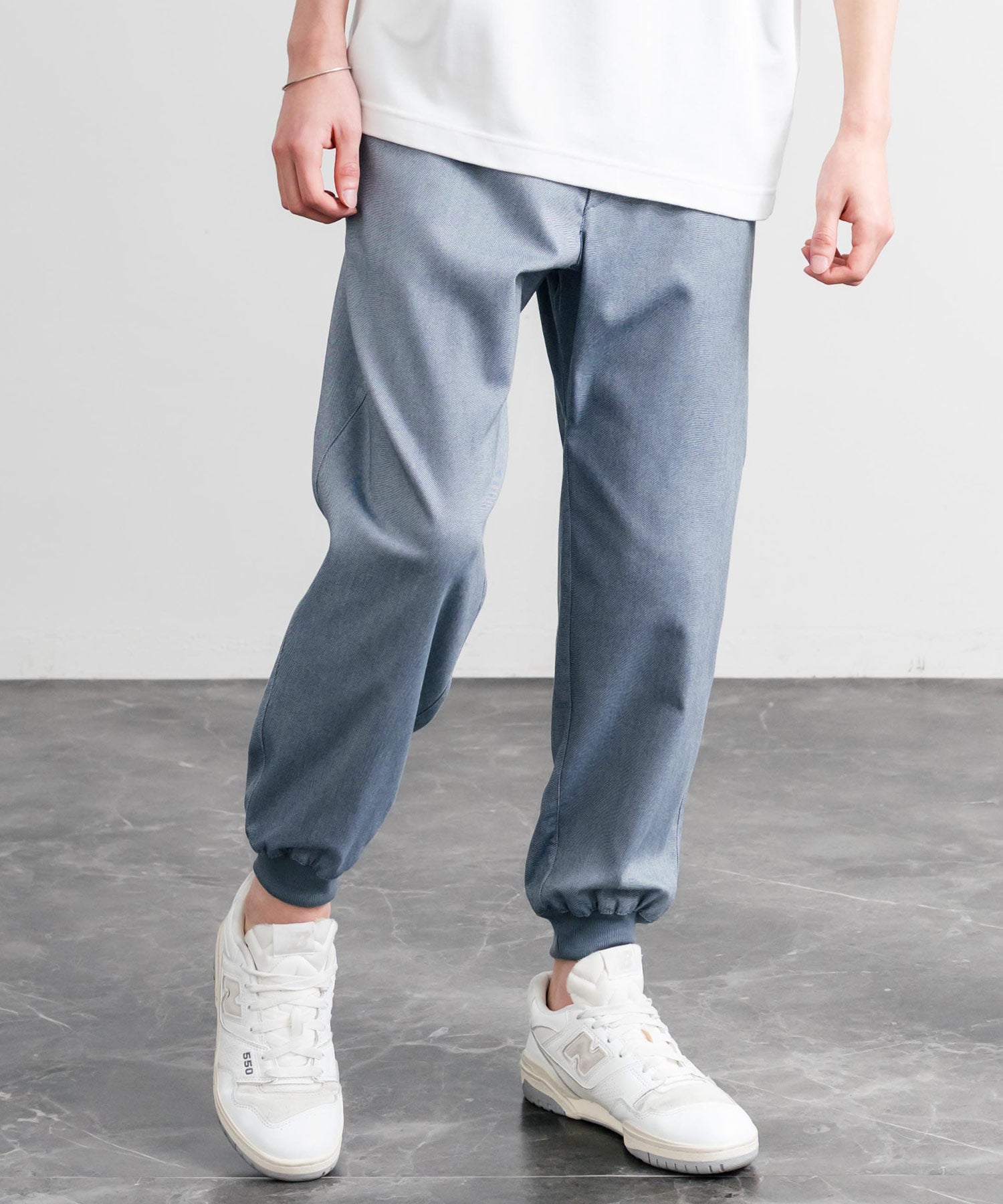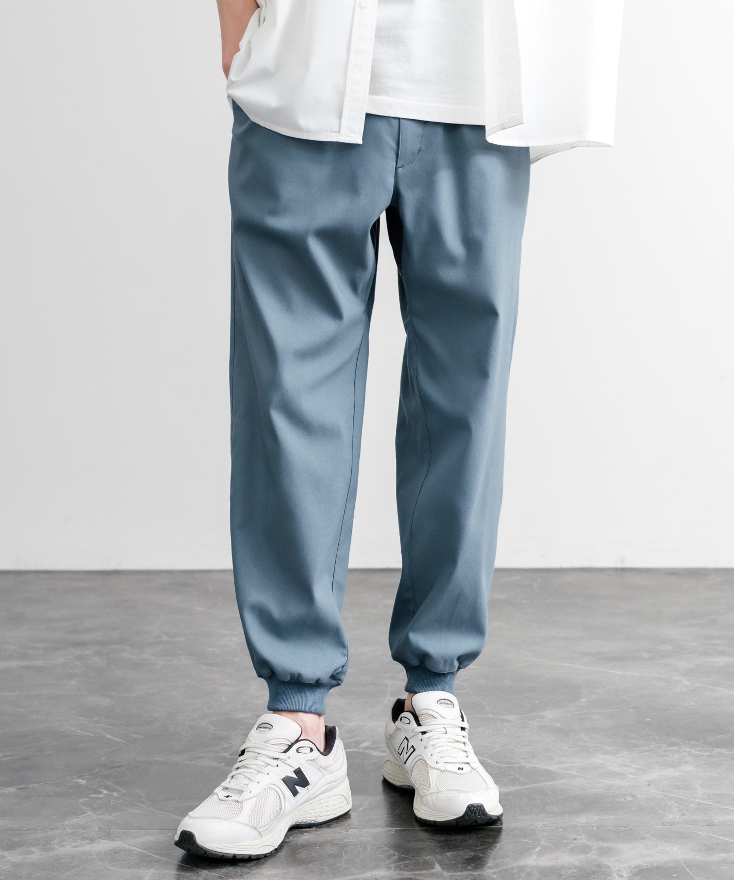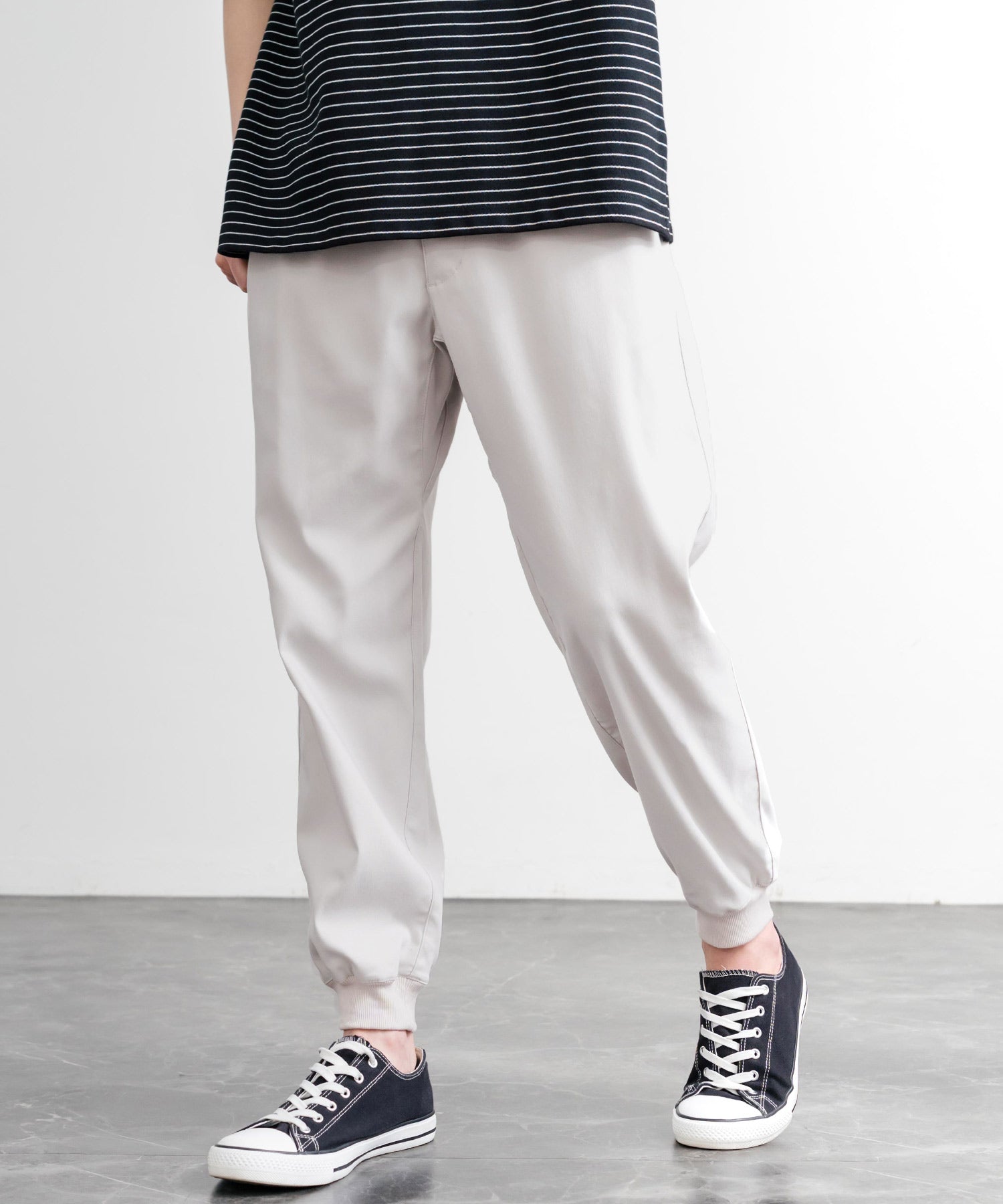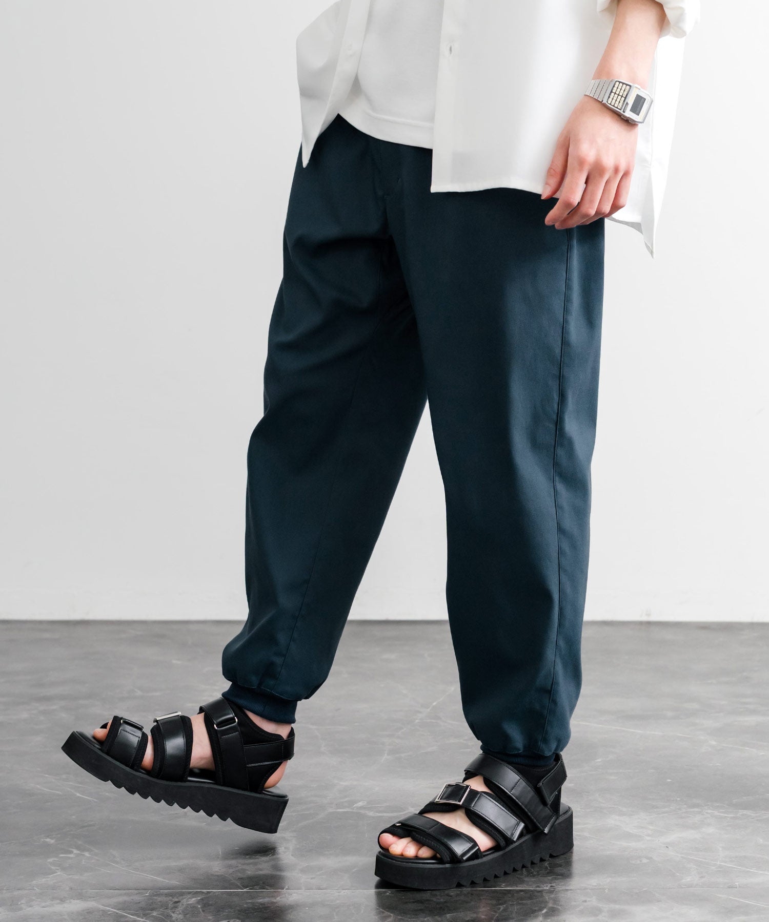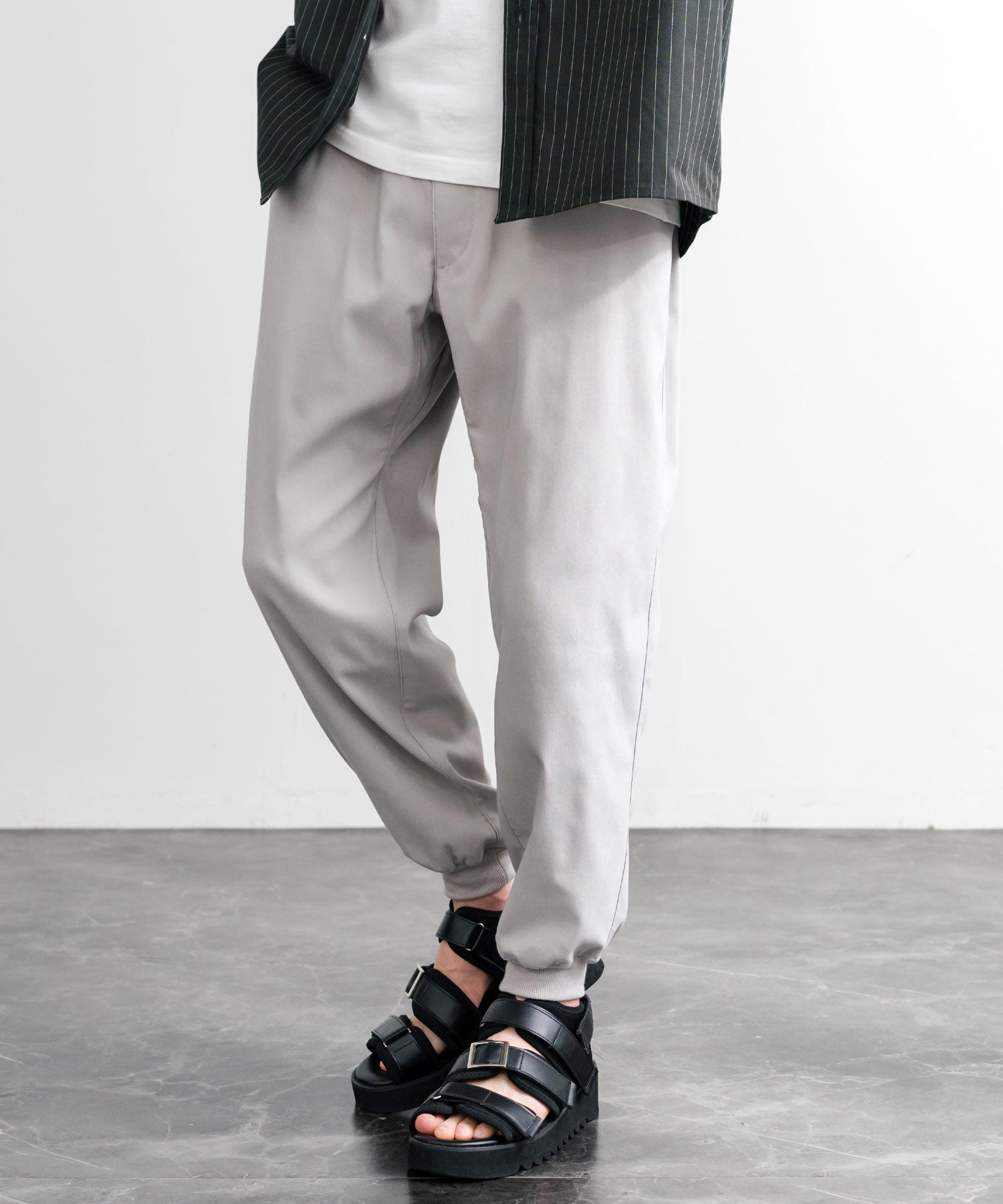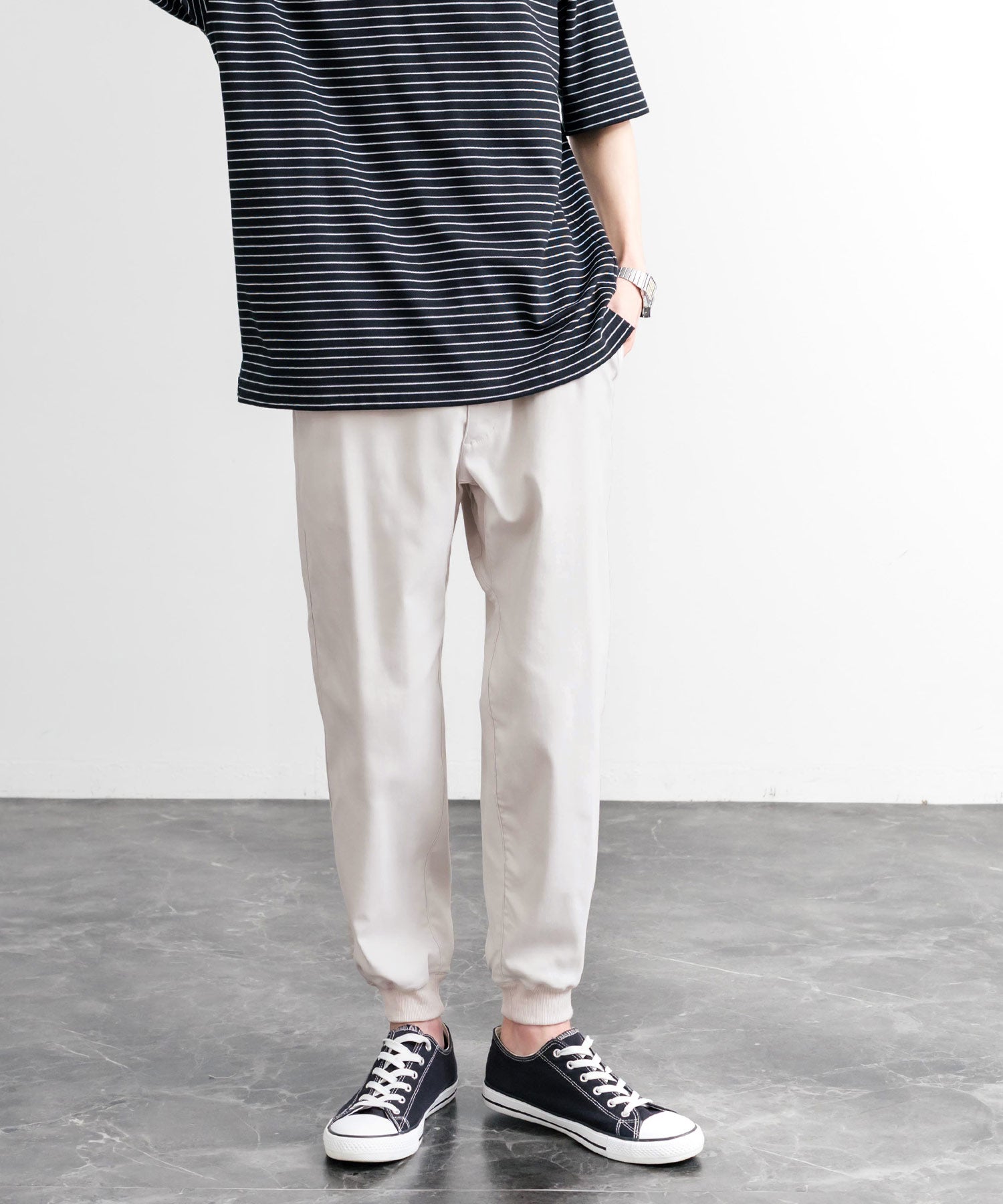 裾に向かってゆるくテーパードし、リブ仕様で仕上げたジョガースタイル。