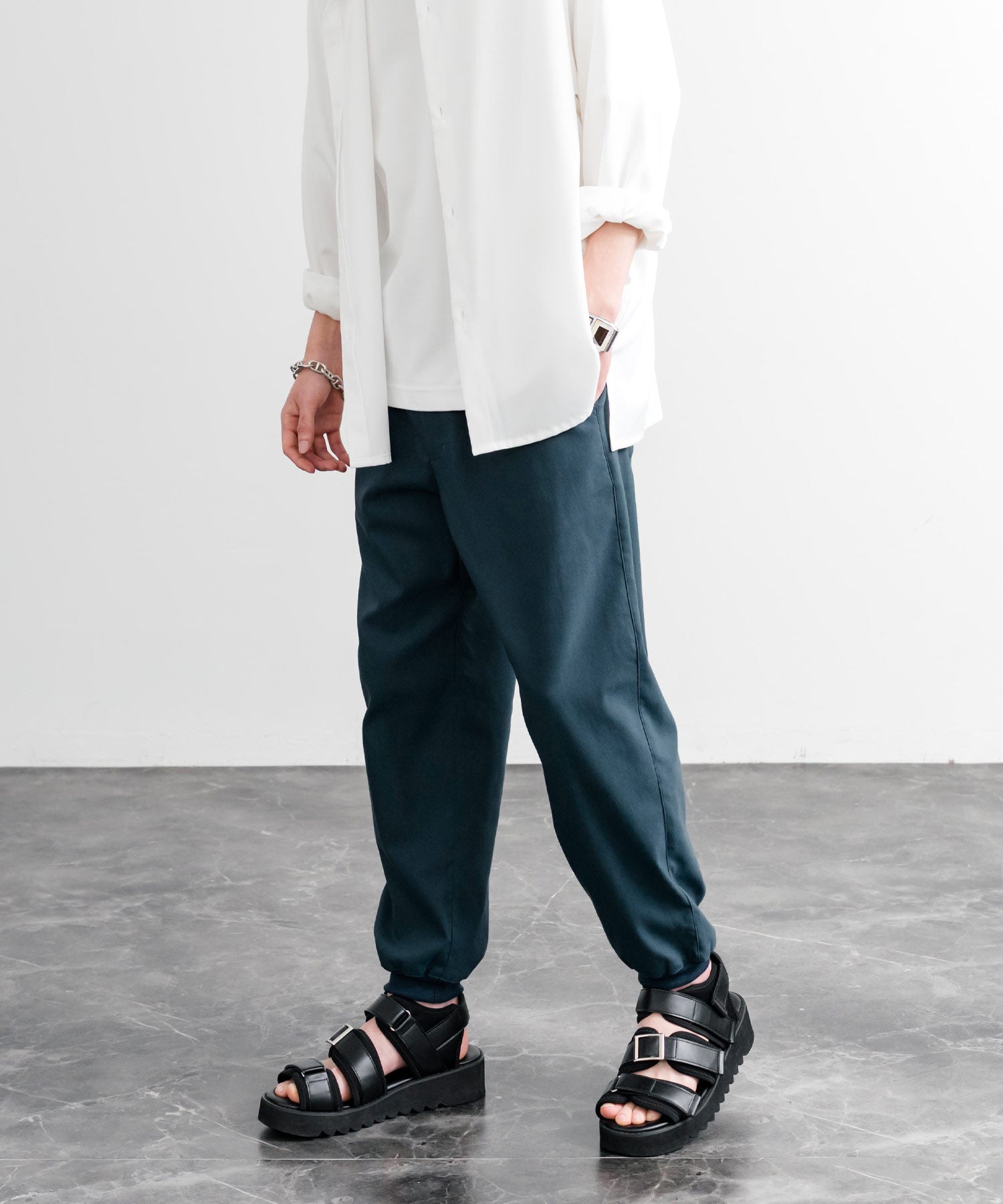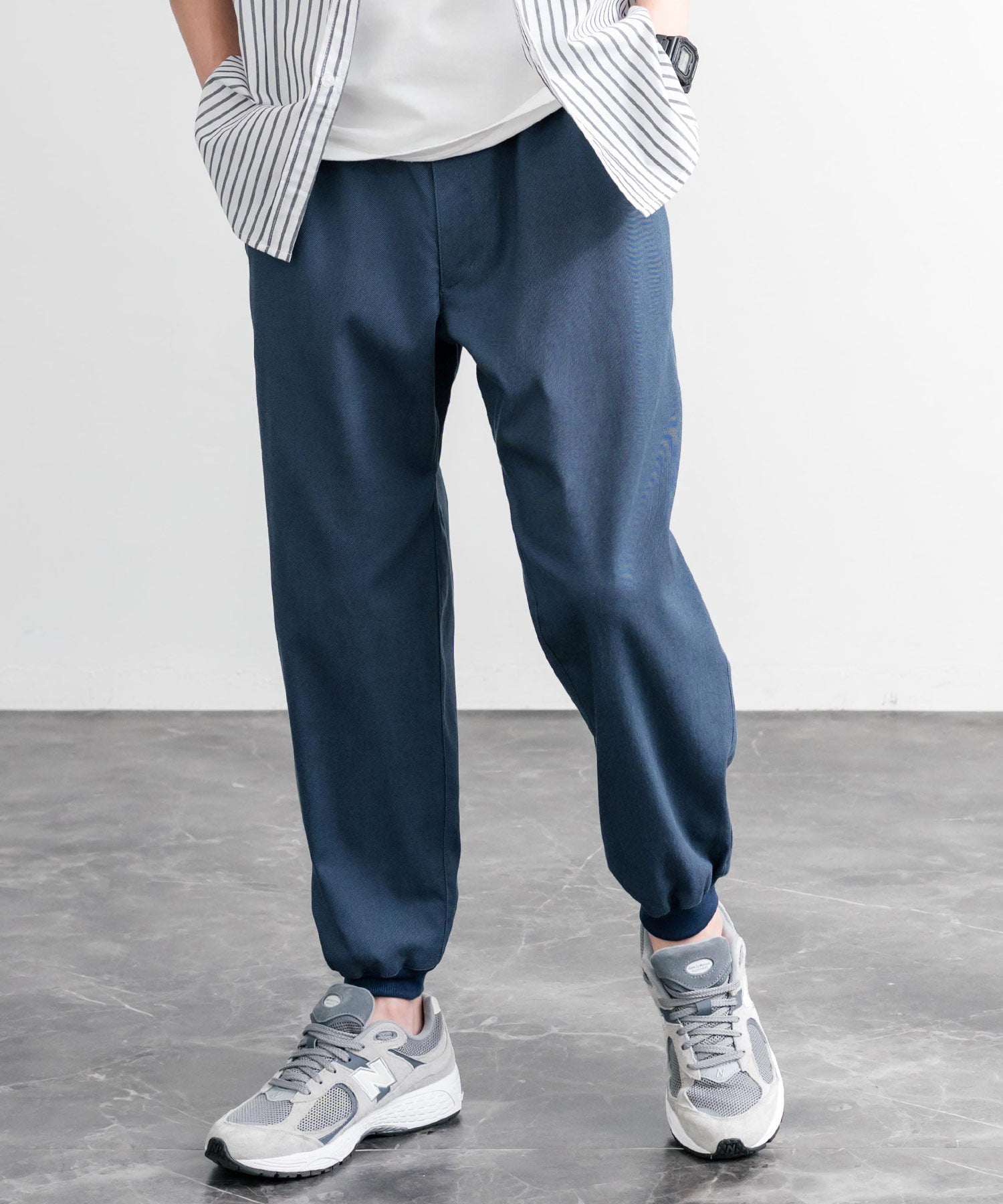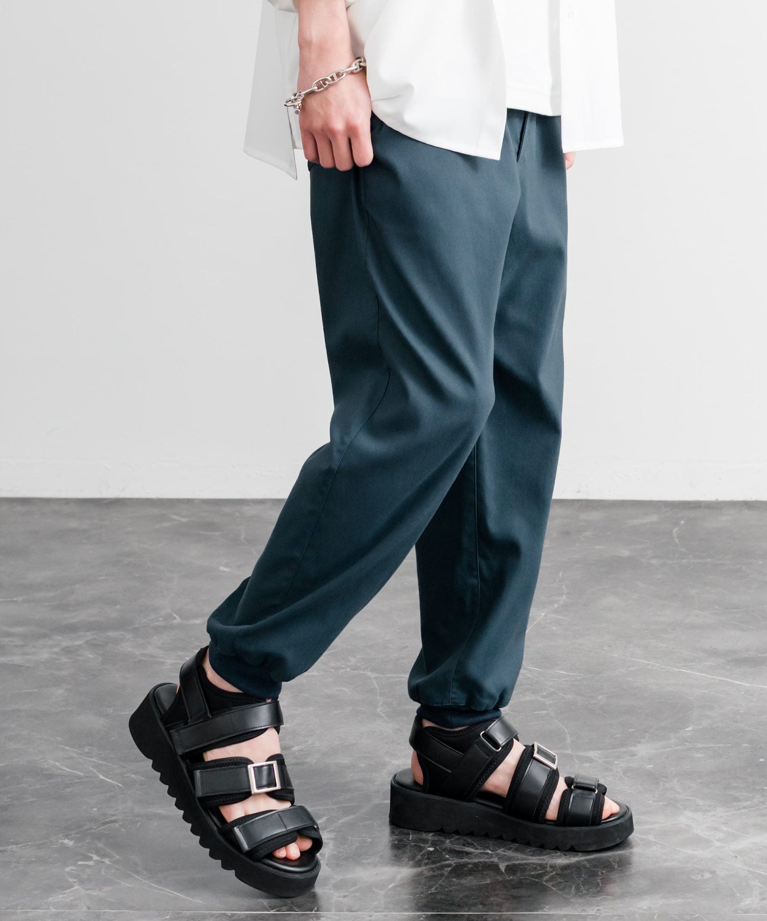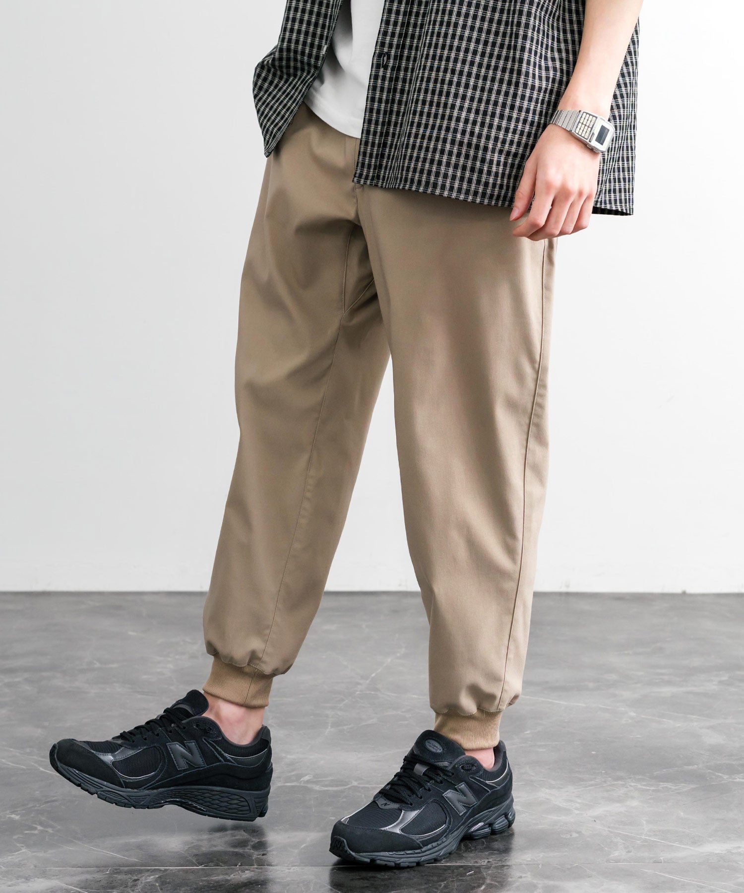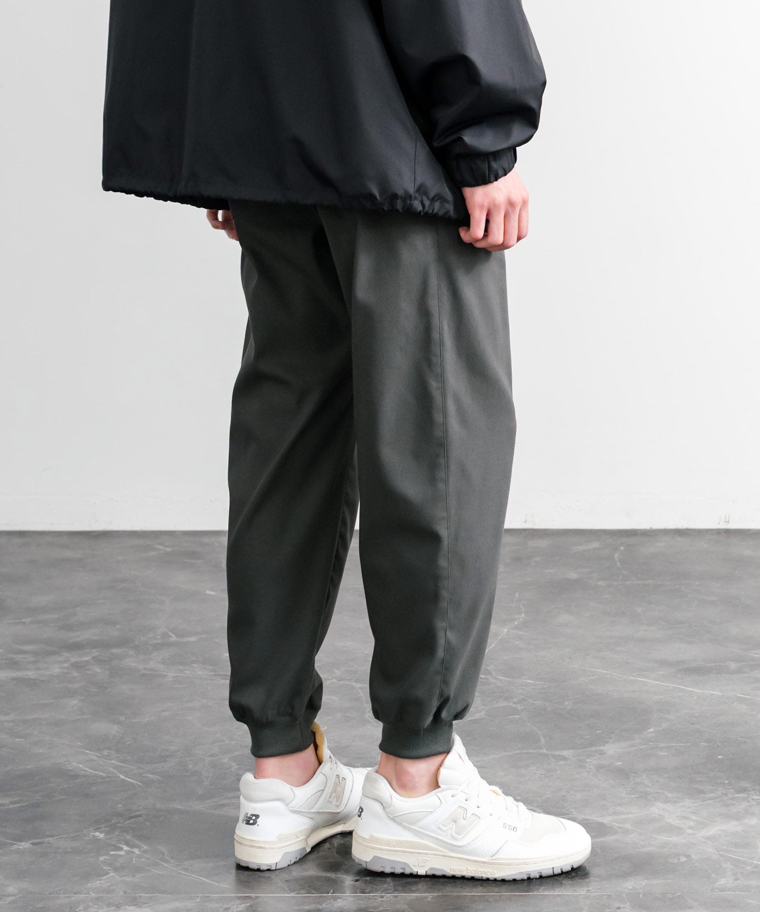 裾に向かってゆるくテーパードし、リブ仕様で仕上げたジョガースタイル。