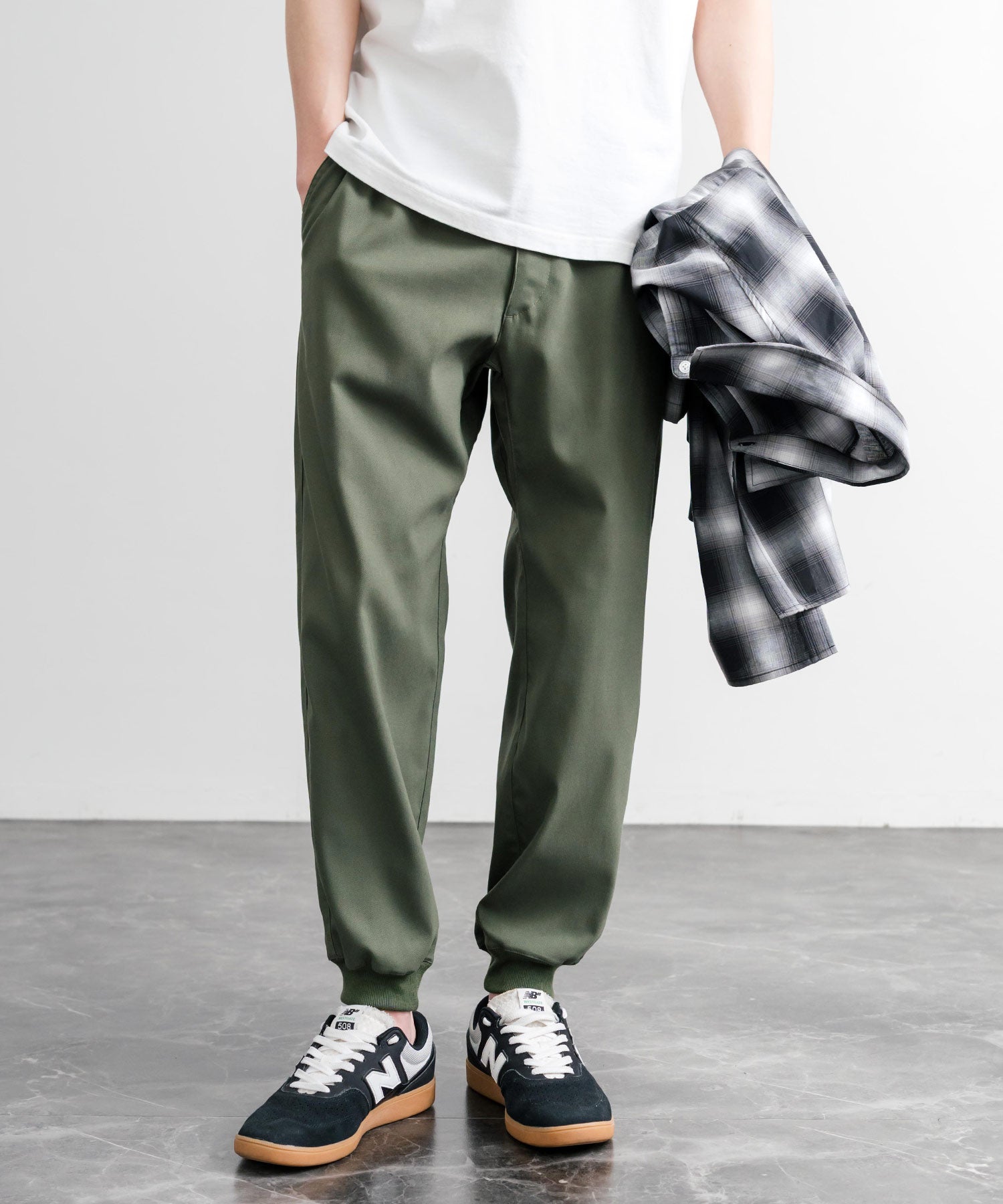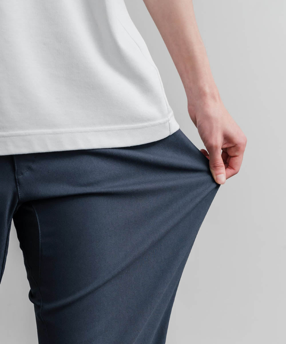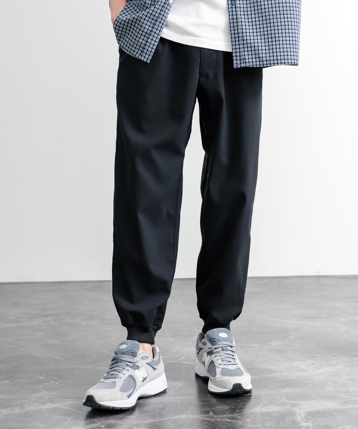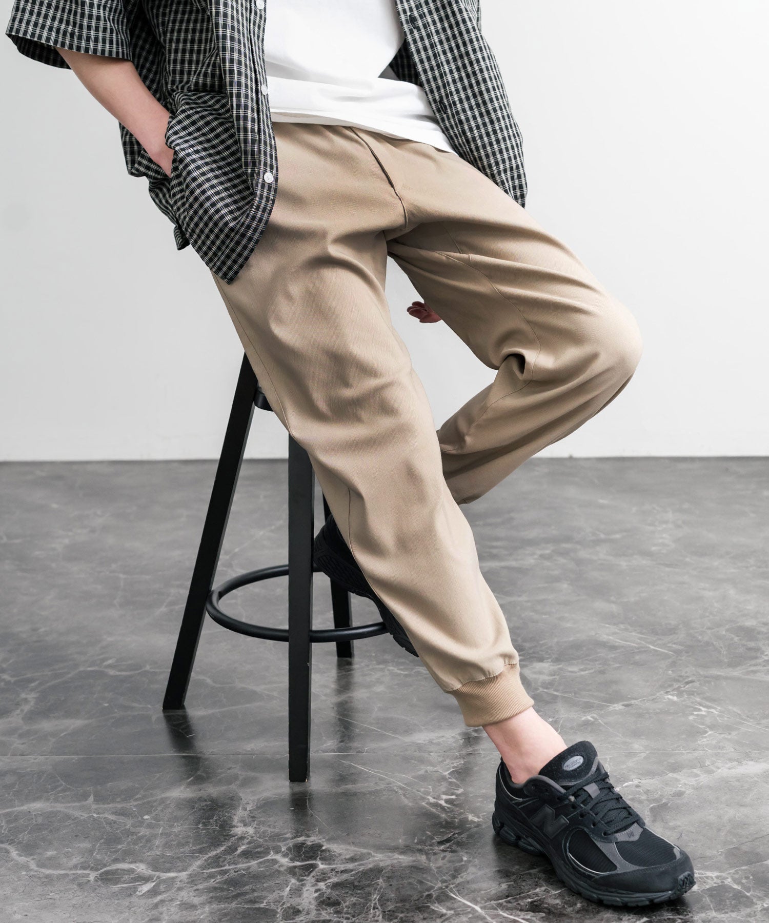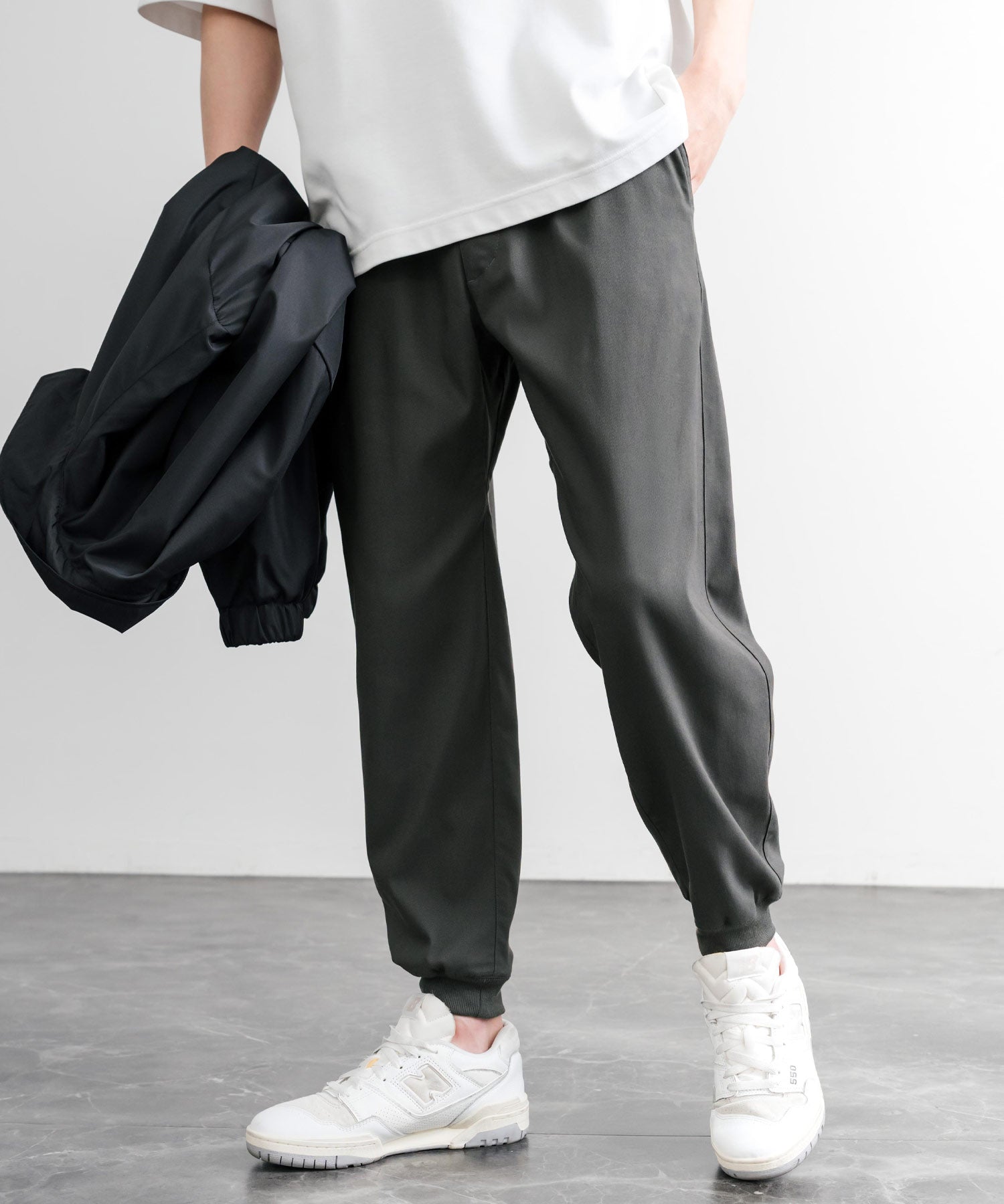 裾に向かってゆるくテーパードし、リブ仕様で仕上げたジョガースタイル。