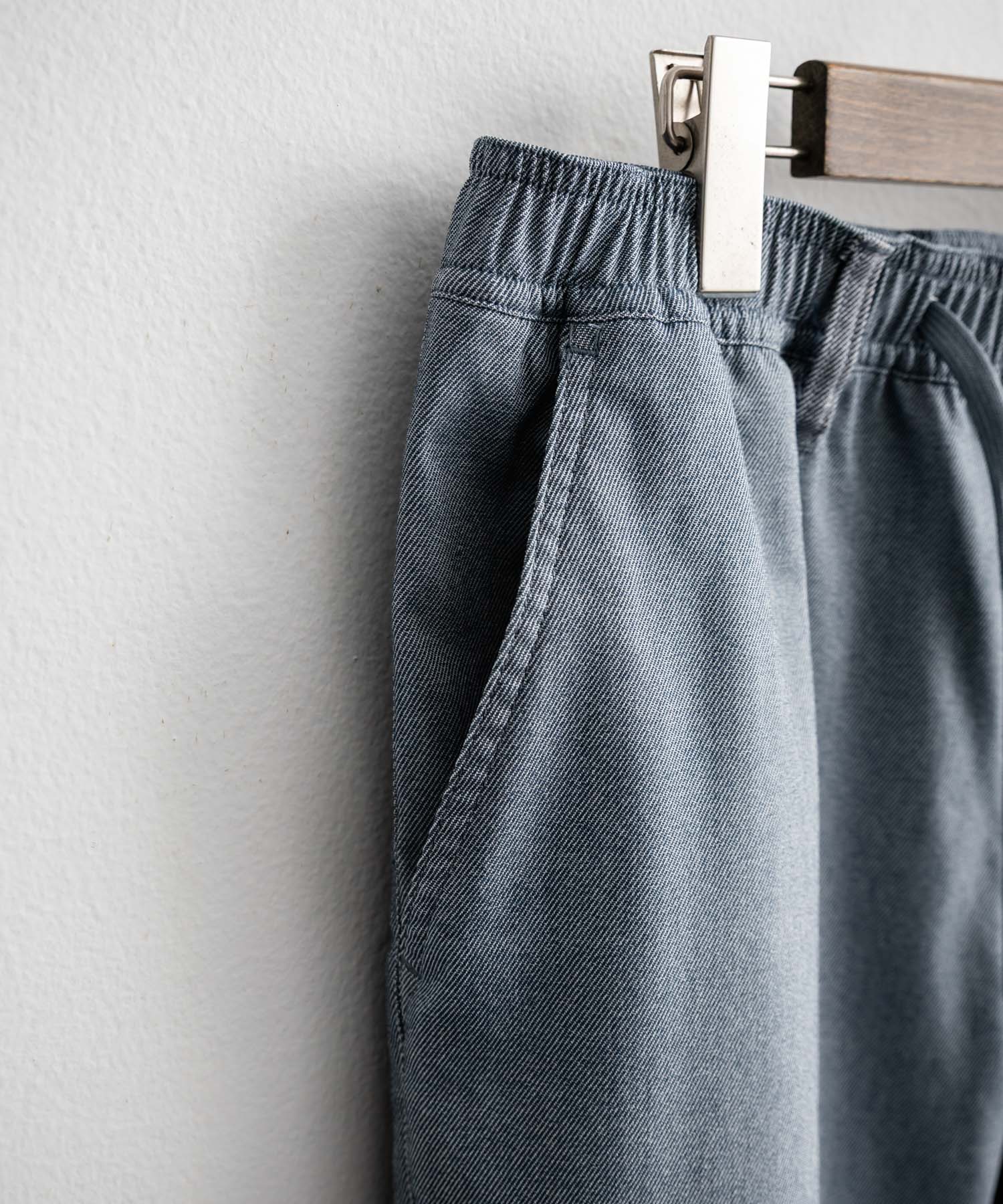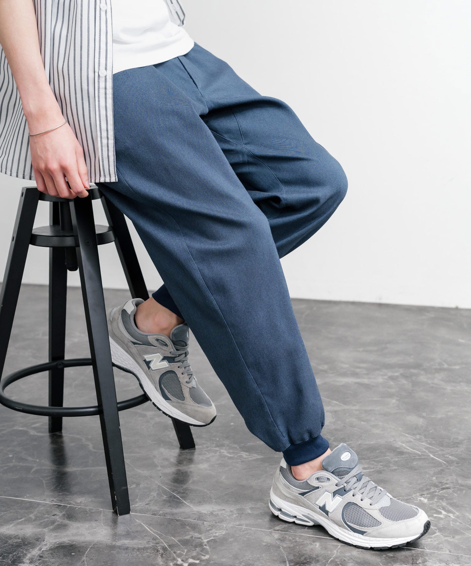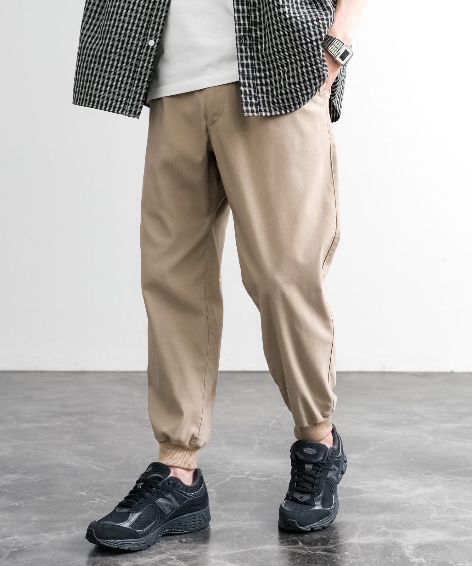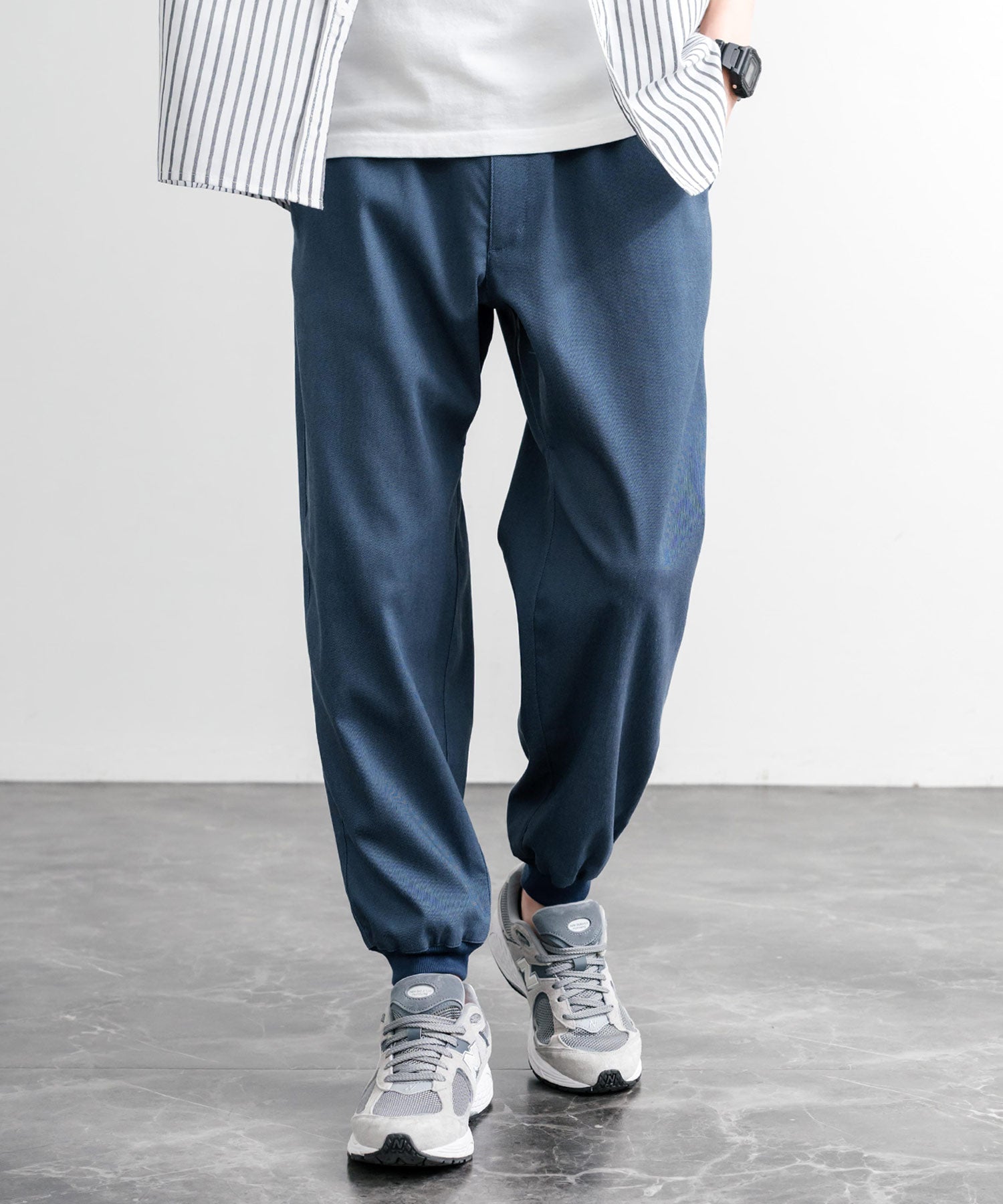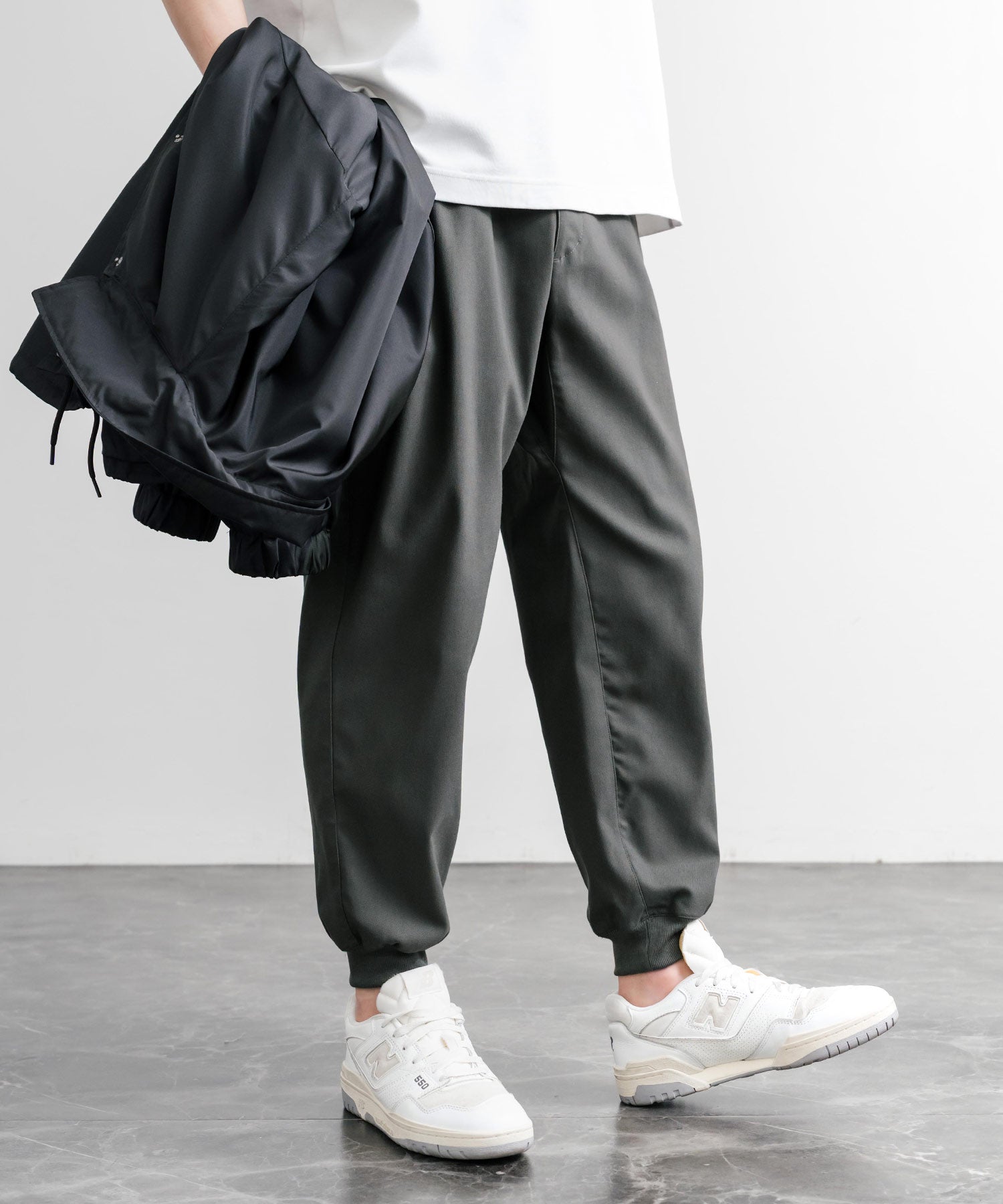 裾に向かってゆるくテーパードし、リブ仕様で仕上げたジョガースタイル。